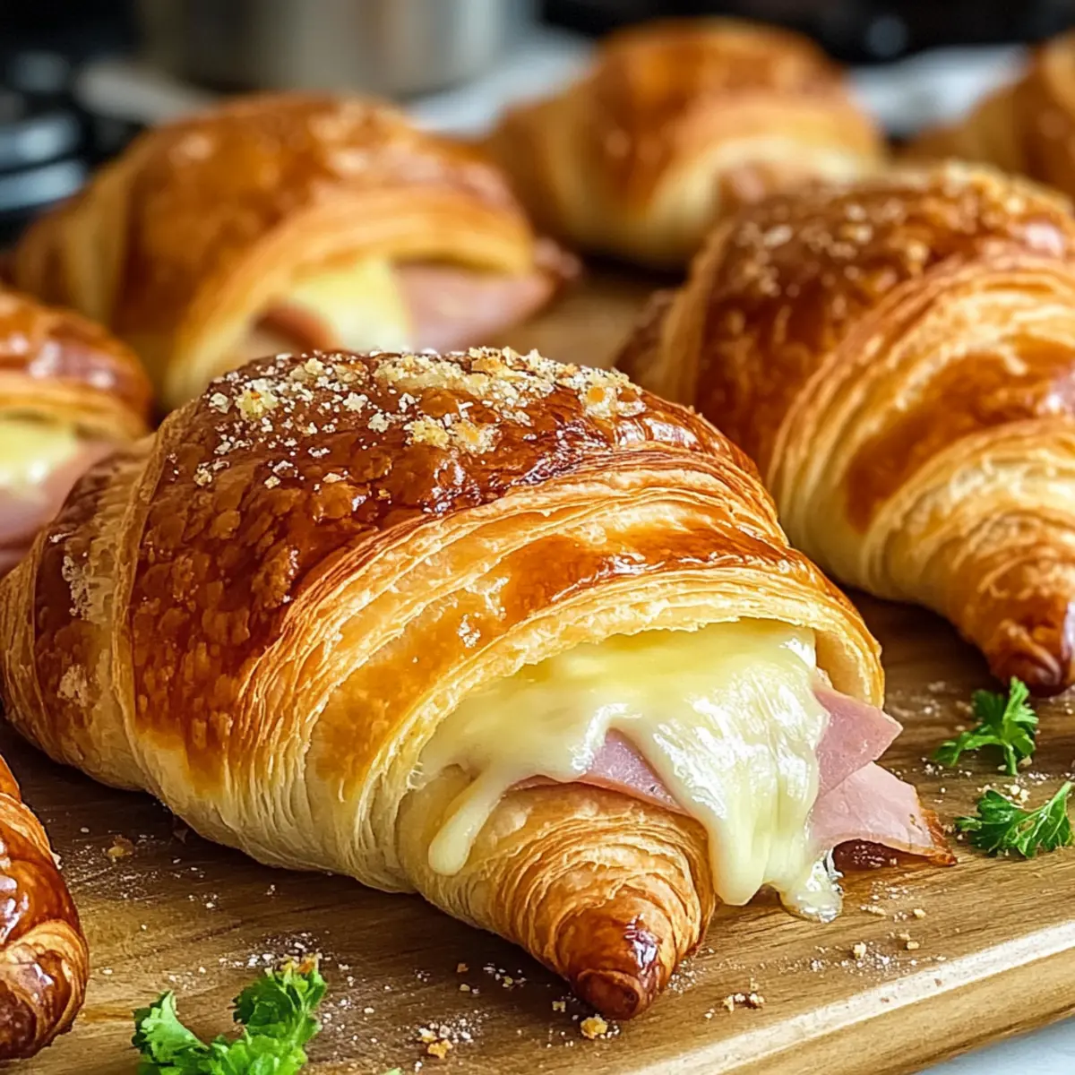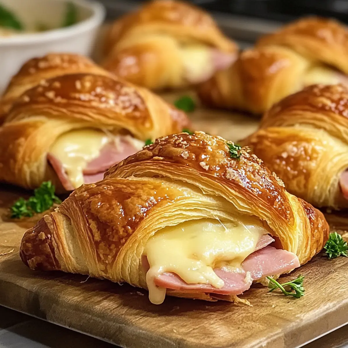 Während ich in der Küche stehe, werde ich von dem verführerischen Duft warmer, überbackener Croissants mit Schinken und Käse umhüllt. In nur 30 Minuten kann ich diesen himmlischen Genuss zaubern – perfekt für ein schnelles Frühstück oder ein entspanntes Brunch mit Freunden. Diese 30-Minuten-Überbackene Schinken-Käse-Croissants sind nicht nur ein wahrhaft köstlicher Appetitanreger, sondern auch eine ideale Lösung, um den hektischen Morgen mit einer kleinen Gourmetnote zu bereichern. Flaky, mit schmelzendem Käse und herzhaftem Schinken gefüllt, überzeugen sie mit minimalem Aufwand, während sie ganz sicher die Herzen Ihrer Gäste erobern werden. Wer könnte da widerstehen? Lassen Sie uns gemeinsam in die Details eintauchen und entdecken, welchen Geheimtipp ich für zusätzliche Variationen dieser köstlichen Croissants habe! Warum wirst du diese Croissants lieben? Schnelligkeit: In nur 30 Minuten zaubern Sie ein köstliches Frühstück, das selbst die hektischsten Morgen entschleunigt. Cremige Füllung: Die Kombination aus geschmolzenem Käse und herzhaftem Schinken macht jeden Bissen zu einem geschmacklichen Erlebnis. Vielseitigkeit: Variieren Sie die Zutaten nach Lust und Laune – probieren Sie beispielsweise anstelle von Schinken Hühnchen oder ergänzen Sie mit frischem Gemüse. Beeindruckend: Ihre Gäste werden von der Gourmet-Note begeistert sein, ohne dass Sie viel Aufwand betreiben müssen. Sofortiger Genuss: Diese Croissants sind am besten frisch aus dem Ofen – knusprig und warm für den ultimativen Geschmack. Für weitere schnelle Rezepte wie Ofen Gebackene Feta oder Gebackene Kartoffelscheiben Rezept schauen Sie sich die Vorschläge auf unserem Blog an! 30-Minuten-Überbackene Schinken-Käse-Croissants Zutaten • Hinweis: Diese köstlichen 30-Minuten-Überbackene Schinken-Käse-Croissants sind schnell zubereitet und vielseitig! Für die Croissants Croissants – Flaky und buttrig, ideal als Grundlage für die Füllung. Am besten eignen sich Tagesalte für eine perfekte Struktur. Schinken – Herzhaft und proteinreich; kann durch Truthahn oder Hähnchen ersetzt werden. Schweizer Käse – Schmilzt gut und sorgt für eine cremige Konsistenz; kann auch durch Cheddar oder Mozzarella ersetzt werden. Für die Butter-Mischung Ungesalzene Butter – Fügt Feuchtigkeit und Geschmack hinzu, hochwertige Butter verbessert das Aroma. Dijon-Senf – Bringt eine pikante Note, die das Gesamtaroma hebt; gelber Senf ist eine andere Option. Honig – Ein Hauch von Süße, um die Aromen auszubalancieren; Sie können auch Ahornsirup verwenden. Frühlingszwiebeln – Fügt Frische und milde Zwiebelnoten hinzu; können durch Schnittlauch ersetzt oder ganz weggelassen werden. Für das Topping Eiweiß – Verwendet für den Eierwasch, um eine goldene Farbe zu erzielen; ein ganzes Ei kann ebenfalls genutzt werden. Mohnsamen – Fügt eine knusprige Textur hinzu und sieht beeindruckend aus. Ist optional und kann weggelassen werden. Step-by-Step Instructions für 30-Minuten-Überbackene Schinken-Käse-Croissants Step 1: Ofen vorheizen Heizen Sie den Ofen auf 190 °C (375 °F) vor und bereiten Sie eine Backform vor, indem Sie sie leicht einfetten oder mit Backpapier auslegen. Dies sorgt dafür, dass Ihre 30-Minuten-Überbackene Schinken-Käse-Croissants beim Backen nicht ankleben und gleichmäßig bräunen. Step 2: Butter-Mischung zubereiten In einer Schüssel die geschmolzene ungesalzene Butter, Dijon-Senf, Honig, gehackte Frühlingszwiebeln sowie eine Prise Salz und Pfeffer vermischen. Rühren Sie die Zutaten gut um, bis eine gleichmäßige Mischung entsteht, und stellen Sie die Schüssel dann beiseite. Diese Mischung wird den Croissants eine herrliche Würze verleihen. Step 3: Croissants vorbereiten Schneiden Sie die Croissants horizontal in zwei Hälften, sodass Sie eine Unter- und Oberseite erhalten. Nehmen Sie dann die vorbereitete Butter-Mischung und streichen Sie diese großzügig auf die Innenseiten der Croissant-Hälften, um jedem Bissen Geschmack zu verleihen. Step 4: Füllen und anrichten Legen Sie die untere Hälfte der Croissants in die Backform und belegen Sie sie gleichmäßig mit dem herzhaften Schinken und dem schmelzenden Schweizer Käse. Setzen Sie dann die obere Hälfte der Croissants darauf und drücken Sie sie leicht zusammen, um sie zu fixieren. Step 5: Ei-Wasch und Topping Verquirlen Sie das Eiweiß in einer kleinen Schüssel und bestreichen Sie die Oberseiten der Croissants damit. Diese Ei-Wasch wird ihnen eine schöne goldene Farbe verleihen. Wenn gewünscht, können Sie auch Mohnsamen darüberstreuen, um einen zusätzlichen Crunch und eine ansprechende Optik zu bieten. Step 6: Backen Backen Sie die 30-Minuten-Überbackene Schinken-Käse-Croissants im vorgeheizten Ofen für 15 bis 18 Minuten, bis sie goldbraun und knusprig sind. Achten Sie darauf, sie während des Backens im Auge zu behalten, da sie schnell fertig sein können. Step 7: Abkühlen und Servieren Nehmen Sie die Croissants nach dem Backen aus dem Ofen und lassen Sie sie etwa 5 Minuten abkühlen. Dies sorgt dafür, dass sich die Aromen setzen und die Croissants leichter zu genießen sind. Servieren Sie sie warm als köstliches Frühstück oder Brunch-Highlight! Was passt zu 30-Minuten-Überbackenen Schinken-Käse-Croissants? Genießen Sie eine Mahlzeit, die sowohl schneller geht als auch köstlich ist, während Sie diesen außergewöhnlichen Genuss zaubern. Frischer grüner Salat: Kombination aus knackigem Gemüse sorgt für eine erfrischende Balance und ausgewogene Nährstoffe. Fruchtiger Obstsalat: Süße und saftige Früchte bringen Farbe und Frische auf den Tisch, perfekt als erfrischende Beigabe. Kartoffelchips: Knusprige Chips bieten einen schönen Kontrast zu den weichen Croissants und sind ein unterhaltsamer Snack. Eistee oder Limonade: Diese Erfrischungsgetränke runden das Ganze ab und liefern eine köstlich spritzige Begleitung. Gegrilltes Gemüse: Herzhaftes Gemüse, leicht gewürzt, br