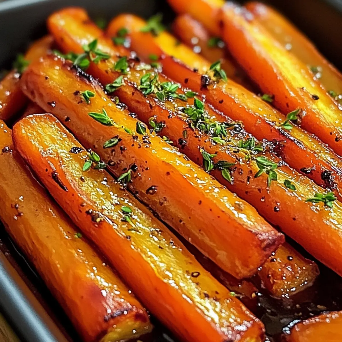 Genießen Sie die köstlichen Ahorn-Dijon-gerösteten Karotten, die süß und würzig zugleich sind.