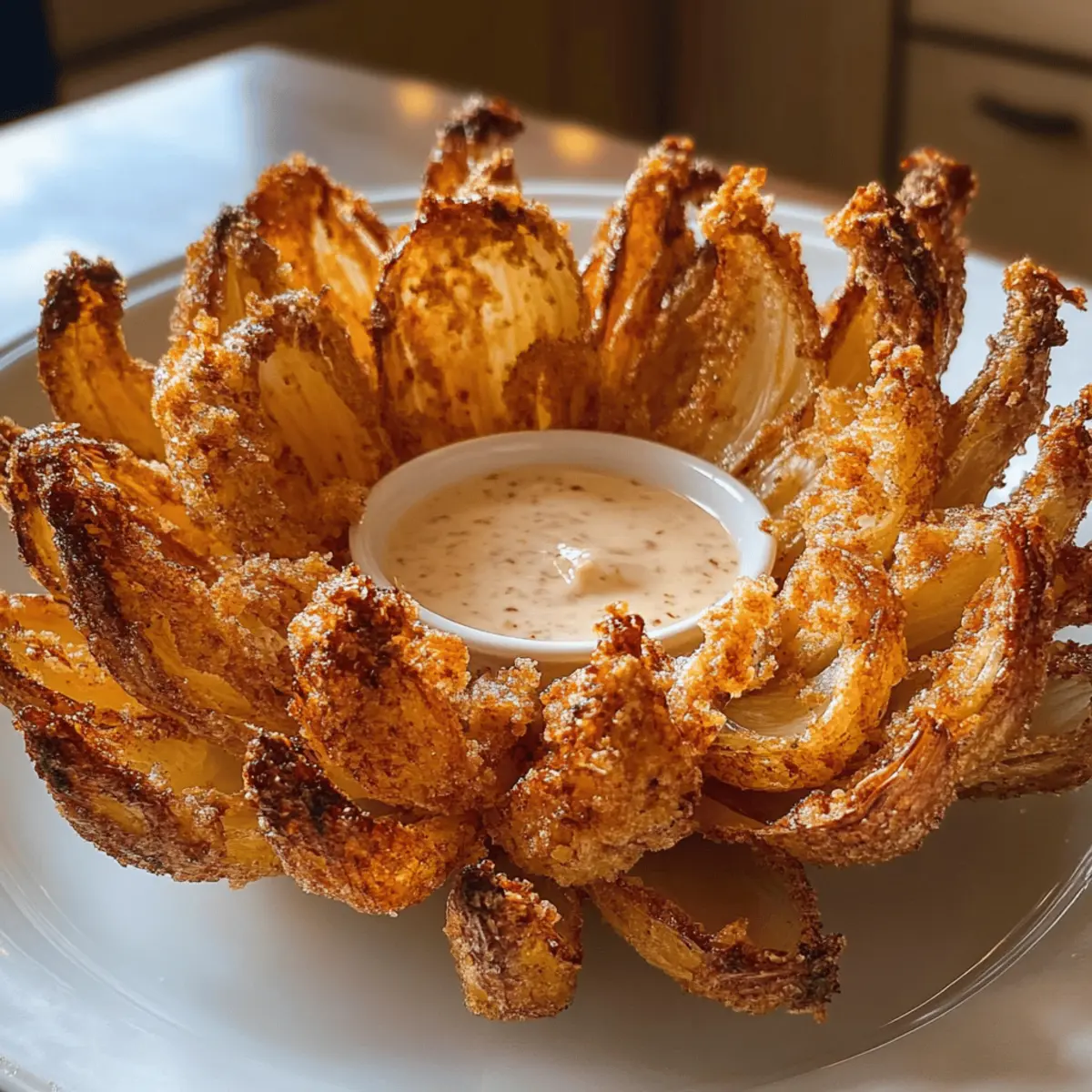 Es war ein ganz normaler Abend, als ich plötzlich Lust auf einen besonderen Snack verspürte – etwas, das meine Sinne kitzelt und gleichzeitig ein bisschen von dem klassischen Junkfood wegnimmt. Wenn ihr auch schon mal ein knuspriges Air Fryer Blooming Onion probiert habt, wisst ihr, wovon ich spreche! Diese guilt-free Version zaubert den typischen Restaurant-Geschmack in eure Küche und das ganz ohne das lästige Frittieren. Mit minimalem Aufwand und nur wenigen Zutaten wird diese köstliche Vorspeise zum Highlight eurer nächsten Feier oder dem nächsten Spielabend. Lasst uns gemeinsam in die Welt der knusprigen Leckereien eintauchen – seid ihr bereit, euer neues Lieblingsrezept zu entdecken? Warum solltest du dieses Rezept lieben? Einfachheit: Der Zubereitungsprozess ist unkompliziert und benötigt keine besonderen Kochfähigkeiten – perfekt für jeden! Aromatischer Genuss: Die Kombination aus Gewürzen und Zwiebel sorgt für einen intensiven Geschmack, der süchtig macht. Vielseitigkeit: Die möglichen Dips – von klassischem Ranch bis zu würzigem Senf – heben die Geschmackserlebnisse hervor. Gesundes Vergnügen: Diese guilt-free Variante bietet dir das köstliche Gefühl von Fast Food, aber mit weniger schlechtem Gewissen. Schnell & Lecker: In wenigen Schritten kannst du dieses köstliche Air Fryer Blooming Onion zaubern und es im Handumdrehen genießen. Bei deinem nächsten Spielabend wird es sicher ein Hit sein! Zutaten für das Air Fryer Blooming Onion • Entdecke die perfekten Komponenten für dein Air Fryer Blooming Onion! Für die Zwiebel Große weiße Zwiebel – Die Basis des Gerichts, die für Geschmack und Textur sorgt, kann auch durch gelbe Zwiebeln ersetzt werden, die jedoch schärfer im Geschmack sind. Für die Panade Allzweckmehl – Sorgt für eine knusprige äußere Schicht; verwende glutenfreies Mehl für eine glutenfreie Variante. Milch (⅓ Tasse) – Spendet Feuchtigkeit und hilft, das Mehl haften zu lassen; pflanzliche Milch kann als Ersatz verwendet werden. Eier (2) – Binden die Panade; für eine vegane Option kannst du Leinsamen-Eier verwenden. Paprika (1 Esslöffel) – Fügt Geschmack und Farbe hinzu; ersetze sie durch geräucherte Paprika für einen anderen Geschmacksprofil. Knoblauchsalz (1 Esslöffel) – Verstärkt den herzhaften Geschmack; kann durch normales Salz und Knoblauchpulver ersetzt werden. Getrockneter Thymian (1 Teelöffel) & Getrockneter Oregano (1 Teelöffel) – Fügen aromatische Kräuternoten hinzu; italienische Gewürzmischung kann als Ersatz genutzt werden. Für das Öl Olivenöl Spray – Für die Knusprigkeit; ein anderes Kochspray kann verwendet werden. Für die Dipsauce Dipsauce – Eine Kombination aus Mayonnaise, Sauerrahm, Ketchup, cremigem Meerrettich, Worcestersauce, Paprika und Cayenne; passe die Gewürze je nach Geschmacksvorlieben an. Schritt-für-Schritt-Anleitung für das Air Fryer Blooming Onion Step 1: Zwiebel vorbereiten Schäle die große weiße Zwiebel und schneide das obere Ende ab. Mache mehrere vertikale Schnitte bis zur Wurzel, dann schneide die Blütenblätter, um einen blühenden Effekt zu erzeugen. Lege die Zwiebel für 10 Minuten in kaltes Wasser, damit sich die Blütenblätter besser öffnen. Step 2: Panade mischen In einer Schüssel verquirlst du die Milch und die Eier gut miteinander. In einer zweiten Schüssel mischst du das Allzweckmehl zusammen mit Paprika, Knoblauchsalz, getrocknetem Thymian und Oregano. Diese gemischte Panade wird die Grundlage für dein köstliches Air Fryer Blooming Onion sein. Step 3: Zwiebel panieren Trockne die Zwiebel gründlich ab, bevor du sie in der Mehlmischung wälzt. Danach tauchst du die Zwiebel in die Eier-Milch-Mischung und wälzt sie erneut in der Mehlmischung, damit sie gleichmäßig bedeckt ist. Achte darauf, dass jedes Blütenblatt gut mit der Panade überzogen ist, um die optimale Knusprigkeit zu erreichen. Step 4: Air Fryer vorheizen und garen Heize den Air Fryer auf 170 °C vor. Lege die panierte Zwiebel vorsichtig in den Frittiertopf, sprühe sie mit Olivenöl ein und lege eine leichte Folie darüber. Gare die Zwiebel 10 Minuten lang. Nimm die Folie ab und erhöhe die Temperatur auf 180 °C, koche sie weitere 10-12 Minuten, bis sie goldbraun ist. Step 5: Dipsauce zubereiten Während die Zwiebel im Air Fryer gart, mische alle Zutaten für die Dipsauce in einer Schüssel. Kombiniere Mayonnaise, Sauerrahm, Ketchup, cremigen Meerrettich, Worcestersauce, Paprika und Cayenne sowie nach Belieben Gewürze. So hast du eine leckere Kombination, die dein Air Fryer Blooming Onion perfekt ergänzt. Step 6: Anrichten und servieren Übertrage das vollständig gegarte Air Fryer Blooming Onion vorsichtig auf einen Teller. Platziere die Dipsauce in der Mitte und serviere das Gericht sofort heiß. Diese köstliche Vorspeise wird auf deinem nächsten Spielabend garantiert zum Star! Was passt gut zu Crispy Air Fryer Blooming Onion? Möchtest du dein köstliches Air Fryer Blooming Onion zu einem echten Festmahl erweitern? Hier sind einige wunderbare Ideen, die die Aromen und Texturen perfekt ergänzen. Cremige Kartoffelbrei: Klassiker, die die knusprige Textur des Zwiebelblüten perfekt ausgleicht. Die cremige Konsistenz verleiht jedem Bissen ein Gefühl von Zufriedenheit. Frischer Gemüsesalat: Ein leichter, knackiger Salat bringt Frische ins Spiel. Die Kombination aus knackigen Blättern und einer leichten Vinaigrette hebt die Aromen des Dips hervor. Knoblauchbrot: Geröstetes Brot mit Knoblauchbutter bringt zusätzliches Aroma ins Spiel. Es eignet sich hervorragend, um die restlichen Dipsauce aufzutunken. Würzige Chili: Ein herzhaftes Chili ergänzt den zarten Geschmack der Zwiebelblüten mit einer würzigen Note. Die Gelassenheit einer Portion Chili kann dein Gericht erheblich aufwerten. Hausgemachte Limonade: Ein erfrischendes Getränk, das perfekt die salzigen Aromen ausgleicht. Die Süße der Limonade harmoniert wunderbar mit dem würzigen Snack! Schokoladen-Mou
