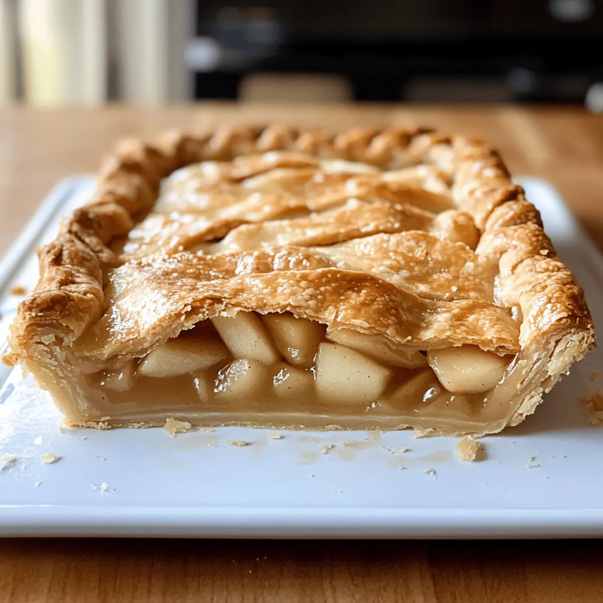 Wenn ich die ersten warmen Düfte von frisch gebackenem Apfelkuchen wahrnehme, zaubert es mir sofort ein Lächeln ins Gesicht. Diese köstliche Apfel-Slab-Pielfalt ist nicht nur ein Genuss für die Sinne, sondern auch die perfekte Lösung für alle, die ihre Tischgesellschaft mit einem stressfreien, aber beeindruckenden Dessert erfreuen möchten. Mit einer wunderbar knusprigen Kruste und einer großzügigen Portion saftiger Äpfel ist dieser Apple Slab Pie nicht nur ein echter Hingucker auf jeder Feier, sondern auch ein großartiger Begleiter für Thanksgiving oder gesellige Runden. Ideal in der Zubereitung, lässt er sich problemlos schneiden und servieren, wodurch er ideal für Freunde und Familie ist. So, worauf warten wir noch? Lasst uns gemeinsam dieses leckere Rezept entdecken! Warum wird dieser Apfel-Blechkuchen geliebt? Einfache Zubereitung: Das Rezept ist leicht verständlich und benötigt keine ausgefallenen Backkünste, sodass jeder es meistern kann. Perfekte Portionen: Dieses Rezept ist ideal für große Versammlungen, da es in großzügige Stücke geschnitten werden kann. Vielseitiger Genuss: Experimentiere mit verschiedenen Obstsorten wie Pfirsichen oder Blaubeeren für eine persönliche Note. Herzhaft und Süß: Die harmonische Mischung aus süßen und säuerlichen Äpfeln sorgt für ein unvergessliches Geschmackserlebnis. Beeindruckende Präsentation: Mit einer goldbraunen, knusprigen Kruste wird dieser Kuchen sicherlich alle Blicke auf sich ziehen und zu Gesprächsthemen führen. Wenn du nach weiteren köstlichen Rezepten suchst, schau dir auch unser Cremiger Lachs Florentiner Rezept an! Apfel-Blechkuchen Zutaten Für den Teig • Allzweckmehl – Essentiell für die Kruste; kann durch glutenfreies Mehl ersetzt werden. • Zucker – Balanciert die Aromen im Teig und Füllung; für säuerliche Äpfel reduzieren. • Speisesalz – Verstärkt den Geschmack; wichtig für die Balance. • Ungesalzene Butter – Sorgt für Reichhaltigkeit und Flakigkeit; sollte kalt verwendet werden, kein Ersatz empfohlen. • Kaltes Wasser – Notwendig für die Konsistenz des Teigs; nach Bedarf anpassen. Für die Füllung • Äpfel – Grundzutaten; eine Mischung aus süßen und säuerlichen Sorten (z.B. Granny Smith, Honeycrisp) verwenden. • Zitronensaft – Verhindert das Braunwerden der Äpfel und hebt den Geschmack hervor. • Maisstärke – Verdickungsmittel; sorgt dafür, dass die Füllung nicht zu flüssig wird, kann durch Mehl ersetzt werden. • Gemahlener Zimt, Muskatnuss, Piment – Gewürze für Wärme; nach Geschmack anpassen. Für den Belag • Schlagsahne oder Eigelb-Wäsche – Sorgt für eine goldene Kruste; optional, aber empfohlen für die Ästhetik. Schritt-für-Schritt-Anleitung für Apfel-Blechkuchen Step 1: Teig vorbereiten Mische das Allzweckmehl, den Zucker und das Salz in einer großen Schüssel. Füge die kalte, ungesalzene Butter in kleinen Stückchen hinzu und knete sie mit den Fingerspitzen, bis die Mischung krümelig aussieht, ähnlich wie Erbsen. Gib nach und nach kaltes Wasser hinzu, bis ein homogener Teig entsteht. Wickele den Teig in Frischhaltefolie und lege ihn für mindestens 30 Minuten in den Kühlschrank. Step 2: Füllung herstellen Schäle die Äpfel und schneide sie in dünne Stücke. Vermische die Apfelstücke in einer großen Schüssel mit Zitronensaft, Zucker, Maisstärke und den gemahlenen Gewürzen. Achte darauf, dass die Äpfel gleichmäßig beschichtet sind. Lass die Mischung etwas ruhen, damit die Aromen gut durchziehen können und die Apfelstücke ihren Saft abgeben. Step 3: Ofen vorheizen Heize deinen Ofen auf 190 °C (375 °F) vor. Diese Temperatur sorgt dafür, dass der Apfel-Blechkuchen gleichmäßig backt und die Kruste schön goldbraun wird. Während der Ofen sich aufheizt, kannst du dich um das Ausrollen des Teigs kümmern, um Zeit zu sparen. Step 4: Teig ausrollen Nimm den größeren Teil des gekühlten Teigs aus dem Kühlschrank. Rolle ihn auf einer leicht bemehlten Arbeitsfläche aus, bis er groß genug ist, um eine 10×15 Zoll große Backform zu bedecken. Achte darauf, dass der Teig gleichmäßig dünn ausgerollt ist, damit der Boden stabil bleibt. Lege den ausgerollten Teig vorsichtig in die Backform. Step 5: Apfel-Blechkuchen zusammenstellen Fülle die vorbereitete Apfelmischung gleichmäßig in den Teigboden. Rolle den restlichen Teig aus und lege ihn als Deckel über die Füllung. Drücke die Ränder gut zusammen und schneide einige kleine Schlitze in die Oberseite, damit der Dampf entweichen kann. Wenn gewünscht, kannst du die Oberseite mit Schlagsahne oder einem Eigelb-Wäsche bestreichen, um eine schön goldene Kruste zu erzielen. Step 6: Backen Platziere die Backform auf einem größeren Backblech, um eventuelles Auslaufen aufzufangen. Backe den Apfel-Blechkuchen 40 bis 45 Minuten lang im vorgeheizten Ofen, bis die Kruste goldbraun ist und die Säfte der Äpfel sprudeln. Halte während des Backens ein Auge darauf, damit die Kruste nicht zu dunkel wird. Step 7: Abkühlen Nehme den Apfel-Blechkuchen aus dem Ofen und lasse ihn für mindestens 45 Minuten abkühlen. Dies ist wichtig, damit die Füllung fest wird und beim Schneiden nicht ausläuft. Der Kuchen wird nach dem Abkühlen noch schmackhafter, da sich die Aromen setzen können. Vorbereitung für den Apfel-Blechkuchen Die Zubereitung des Apfel-Blechkuchens lässt sich wunderbar im Voraus planen, was Ihnen wertvolle Zeit an besonders geschäftigen Tagen spart. Sie können den Teig bis zu 24 Stunden im Voraus zubereiten und im Kühlschrank aufbewahren – achten Sie darauf, ihn gut in Frischhaltefolie einzuwickeln, um ein Austrocknen zu verhindern. Auch die Apfelfüllung lässt sich bereits bis zu 3 Tage im Voraus zubereiten; geben Sie den Zitronensaft hinzu, um das Braunwerden der Äpfel zu verhindern. Wenn Sie bereit sind, den Apfel-Blechkuchen zu backen, rollen Sie einfach den gekühlten Teig aus, fügen die vorbereitete Füllung hinzu und backen ihn wie im Rezep