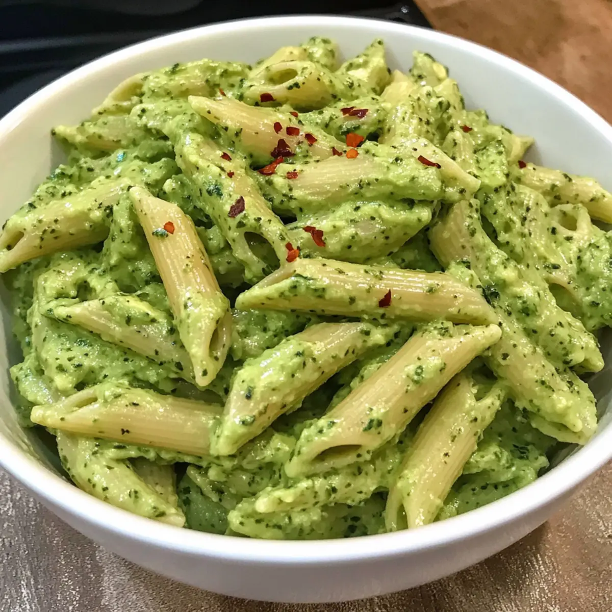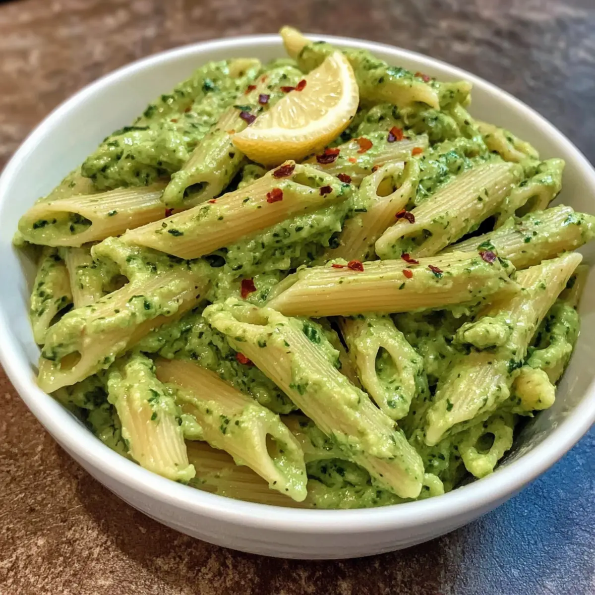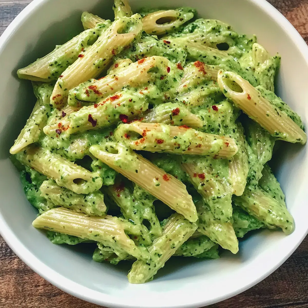 „Du wirst nicht glauben, wie einfach und schnell dieses Rezept für Avocado-Nudeln ist.“ Manchmal möchte ich einfach ein Gericht, das meine Geschmacksknospen erfrischt, ohne dabei viel Zeit in der Küche zu verbringen. Diese cremigen Avocado-Nudeln sind genau das, was ich suche. In nur 20 Minuten hast du ein gesundes, veganes Gericht, das nicht nur vollgepackt ist mit Nährstoffen, sondern auch die ganze Familie begeistert – selbst die kleinen Feinschmecker! Mit einer versteckten Portion Babyspinat und der cremigen Textur der Avocado ist dies nicht nur ein Genuss für den Gaumen, sondern auch eine echte Wohltat für den Körper. Lass uns gemeinsam herausfinden, wie du mit einfachen Zutaten ein köstliches Abendessen zaubern kannst! Warum sind Avocado-Nudeln so beliebt? Einfachheit, die begeistert: Dieses Rezept für Avocado-Nudeln ist so simpel, dass selbst Anfänger mühelos damit zurechtkommen. Frische Aromen: Die Kombination aus Avocado und Zitrone sorgt für einen frischen, cremigen Genuss, der jeden begeistert. Gesund und nährstoffreich: Mit einer großzügigen Portion Babyspinat ist es eine hervorragende Quelle für Vitamine und Mineralstoffe. Vielseitig einsetzbar: Du kannst verschiedene Nudelsorten oder zusätzliche Proteine wie griechischen Joghurt hinzufügen. Perfekt für jede occasion, ob Familienessen oder schnelles Mittagessen! Avocado-Nudeln Zutaten Für die Nudeln • Penne-Nudeln – Hauptquelle für Kohlenhydrate; du kannst sie durch Spaghetti, Makkaroni oder Zucchininudeln ersetzen, um das Gericht kohlenhydratärmer zu machen. • Wasser – Wird zum Kochen der Nudeln verwendet; die Menge kann je nach Nudelsorte angepasst werden. • Salz – Intensiviert den Geschmack; passe es nach deinem persönlichen Geschmack an. Für die Avocado-Sauce • Avocado – Sorgt für Cremigkeit und gesunde Fette; stelle sicher, dass sie reif ist, um die beste Textur zu erzielen. • Knoblauchzehen – Fügt Aroma und Tiefe der Sauce hinzu; du kannst auch Knoblauchpulver verwenden. • Babyspinat – Liefert Nährstoffe und balanciert die Aromen; kann durch Grünkohl oder Basilikum ersetzt oder weggelassen werden. • Olivenöl – Verleiht der Sauce zusätzliche Cremigkeit; ist optional, aber empfehlenswert. • Zitronensaft – Verhindert die Oxidation der Avocado und verleiht Frische; ist für den Geschmack unerlässlich. • Schwarzer Pfeffer – Für die Würze; verfeinere nach Geschmack. • Rote Pfefferflocken – Optional für eine würzige Note, wenn du es schärfer magst. Mit diesem einfachen und schnellen Rezept für Avocado-Nudeln wirst du garantiert viel Freude beim Kochen und Genießen haben! Schritt-für-Schritt-Anleitung für Avocado-Nudeln Schritt 1: Nudeln kochen Bringe einen großen Topf mit Wasser zum Kochen und füge eine Prise Salz hinzu. Koche die Penne-Nudeln gemäß den Anweisungen auf der Verpackung für 10-12 Minuten, bis sie al dente sind. Achte darauf, dass die Nudeln weich, aber noch bissfest sind. Nach dem Kochen die Nudeln abgießen und beiseite stellen. Schritt 2: Avocado-Sauce zubereiten Gib die reife Avocado, den Zitronensaft, das Olivenöl, die Knoblauchzehen, den Babyspinat, Salz und Pfeffer in eine Küchenmaschine. Füge einen Schuss Wasser hinzu, um die Mischung geschmeidiger zu machen. Püriere die Zutaten, bis eine glatte und cremige Konsistenz erreicht ist. Achte darauf, dass keine klumpigen Stücke bleiben. Schritt 3: Pasta und Sauce kombinieren Gib die gekochten Penne-Nudeln in eine große Schüssel und füge die cremige Avocado-Sauce hinzu. Mische alles gut durch, bis die Nudeln gleichmäßig mit der Sauce bedeckt sind. Achte darauf, dass die Sauce in jeder Nudel gut verteilt ist, sodass der leckere Geschmack von Avocado-Nudeln überall präsent ist. Schritt 4: Servieren und Garnieren Serviere die Avocado-Nudeln sofort, um die beste Frische zu genießen. Garniere das Gericht nach Belieben mit roten Pfefferflocken für eine scharfe Note oder bestäube es mit veganem Parmesan für zusätzliche Cremigkeit. Achte darauf, dass die Farben lebendig sind, um das appetitliche Aussehen hervorzubringen. Lagerungstipps für Avocado-Nudeln Zimmertemperatur: Lagere die Avocado-Nudeln nicht bei Zimmertemperatur, da die Zutaten schnell verderben können; frische Produkte sollten immer zügig verzehrt werden. Kühlschrank: Bewahre die Reste in einem luftdichten Behälter im Kühlschrank auf und genieße sie innerhalb von 24 Stunden, um Oxidation und Geschmacksverlust zu vermeiden. Einfrieren: Vermeide das Einfrieren dieser Avocado-Nudeln, da die cremige Textur der Avocado beim Auftauen leidet und das Gericht somit seinen Geschmack und seine Qualität verliert. Wiedererwärmen: Wenn du Reste aufwärmen möchtest, mache dies vorsichtig in der Mikrowelle oder in einer Pfanne bei niedriger Hitze; füge eventuell einen Spritzer Zitronensaft hinzu, um die Frische zu unterstützen. Avocado-Nudeln, die sich bestens vorbereiten lassen Diese Avocado-Nudeln sind einer der besten Meal-Prep-Favoriten für alle, die wenig Zeit haben! Du kannst die Avocado-Sauce bis zu 24 Stunden im Voraus zubereiten. Bewahre sie in einem luftdichten Behälter im Kühlschrank auf, wobei du sicherstellst, dass sie mit etwas Zitronensaft bedeckt ist, um die Oxidation zu verhindern. Die Pasta kannst du ebenfalls vorab kochen und bis zu 3 Tage im Kühlschrank aufbewahren. Achte darauf, die Nudeln vor dem Servieren nicht mit der Sauce zu vermengen, um die cremige Textur zu bewahren. Wenn du bereit bist, das Gericht zu genießen, erwärme die Nudeln kurz, gib die kalte Avocado-Sauce darüber und vermenge alles gut – so bleibt der Geschmack frisch und köstlich! Avocado-Nudeln: Variationen & Alternativen Lass deiner Kreativität freien Lauf und entdecke, wie du diese leckeren Avocado-Nudeln nach deinem Geschmack anpassen kannst! Vegan: Ersetze die Parmesanwurst durch eine vegane Alternativ für einen rein pflanzlichen Genuss. Zusätzlicher Protein-Kick: Füge griechischen Joghurt hinzu, 