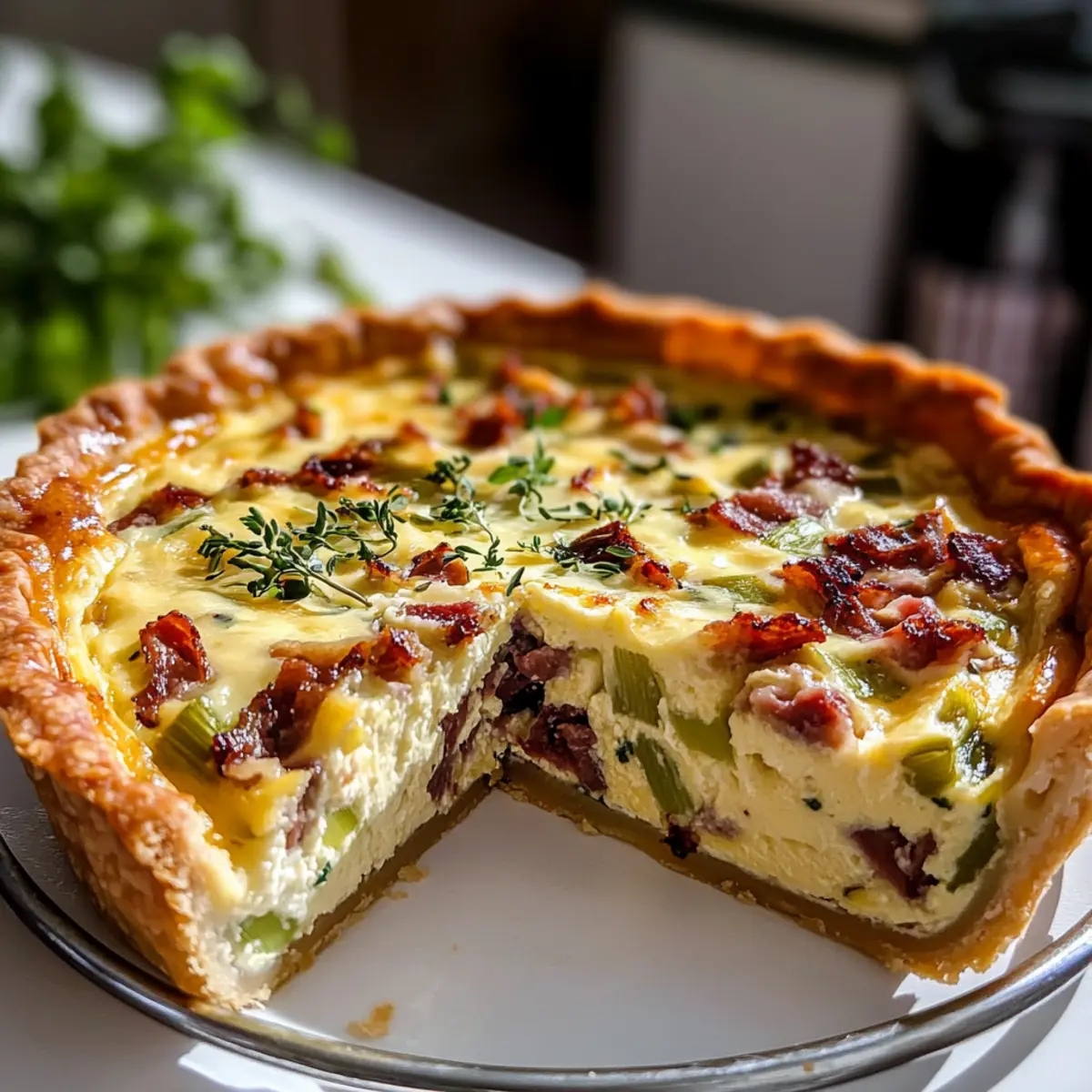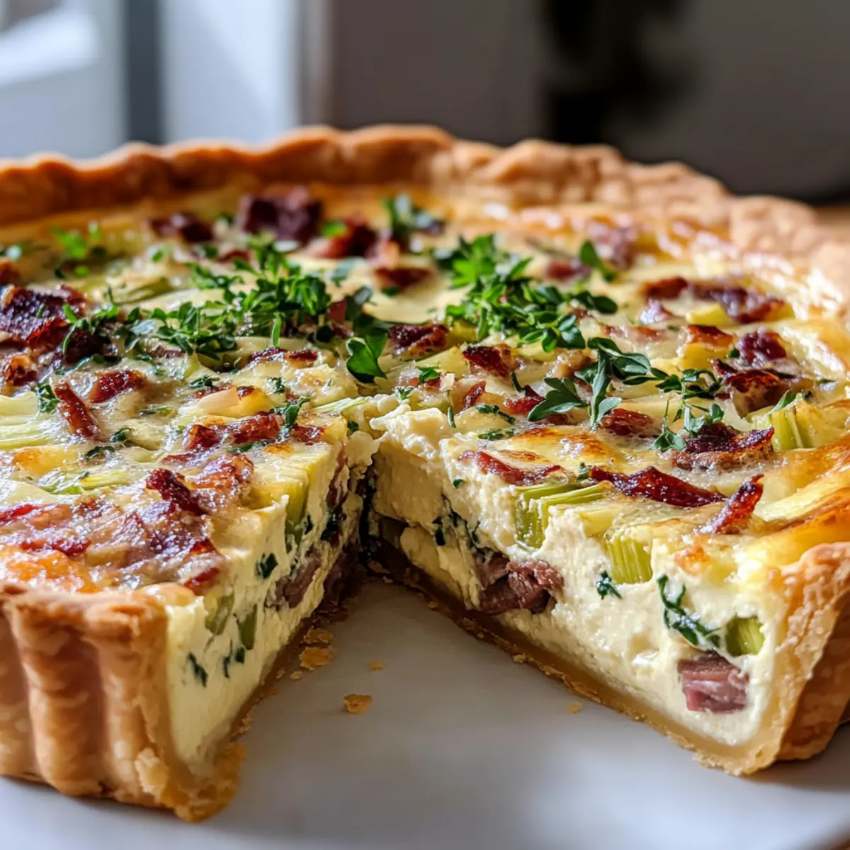 Die Sonne bricht durch die Wolken, und der Duft von frischem Bärlauch liegt in der Luft. Jedes Jahr freue ich mich, wenn ich dieses sanfte, knoblauchartige Aroma in den lokalen Märkten entdecke. Heute lade ich dich ein, mit mir eine köstliche Bärlauch Quiche mit Rindfleisch zuzubereiten – ein Rezept, das die Frische des Frühlings perfekt einfängt. Diese Quiche ist nicht nur einfach zuzubereiten, sondern auch ein echter Hingucker für dein nächstes Brunch oder ein entspanntes Abendessen. Der knusprige Teig umschließt eine cremige Füllung aus zartem Rindfleisch und süßen Lauch, die zusammen einfach unwiderstehlich sind. Bist du bereit, dein Zuhause mit diesem Duft zu füllen und deine Gäste zu begeistern? Lass uns loslegen! Warum wirst du diese Quiche lieben? Frühlingsfrische: Diese Bärlauch Quiche bringt den Geschmack des Frühlings direkt auf deinen Tisch, perfekt für jedes Menü. Einfache Zubereitung: Mit nur wenigen Zutaten ist sie eine einfache Wahl, selbst für unerfahrene Köche. Wohlfühl-Geschmack: Die Kombination aus Bärlauch, Rindfleisch und Lauch sorgt für ein Geschmackserlebnis, das in Erinnerung bleibt. Vielseitig einsetzbar: Ideal für Brunch, Mittagessen oder ein entspanntes Abendessen – die Quiche macht immer eine gute Figur. Schnell zubereitet: Mit einer Vorbereitungszeit von nur 30 Minuten kannst du im Handumdrehen ein köstliches Gericht zaubern. Du wirst diese Quiche auch lieben, wenn du Rezepte suchst, die unkompliziert sind, aber trotzdem ein WOW-Erlebnis bieten. Wenn du nach einem weiteren leckeren Gericht suchst, schau dir doch auch unser Hähnchen Spinat Auflauf an! Bärlauch Quiche Zutaten • Hier sind die Zutaten für deine köstliche Bärlauch Quiche: Für den Teig Allzweckmehl – sorgt für die Struktur des Mürbeteigs; verwende Vollkornmehl für einen nussigeren Geschmack. Salz – hebt den Geschmack sowohl im Teig als auch in der Füllung hervor. Kaltes Butter – sorgt für eine flauschige Textur im Teig; du kannst Margarine verwenden, aber die Fluffigkeit könnte darunter leiden. Kaltes Wasser – hilft, den Teig zu binden, ohne ihn zu erwärmen; nimm am besten Eiswasser für optimale Ergebnisse. Für die Füllung Rindfleisch (Rindfleischspeck) – verleiht der Quiche eine herzhafte Tiefe; für eine leichtere Variante kannst du Truthahnspeck verwenden. Lauch – bringt Süße in die Füllung und ergänzt den erdigen Geschmack des Bärlauchs; du kannst auch Frühlingszwiebeln verwenden, wenn nötig. Frischer Bärlauch – bietet einen einzigartigen Geschmack; ersetze ihn durch Knoblauchchives, falls erforderlich. Eier – binden die Füllung zusammen und schaffen eine cremige Textur. Sahne – sorgt für Reichhaltigkeit in der Füllung; benutze Halbrahm für eine leichtere Version. Milch – balanciert die Cremigkeit aus; eine pflanzliche Milch kann für eine leichtere Zubereitung verwendet werden. Geriebener Käse (Gruyère/Emmental) – fügt Geschmack und Textur hinzu; Cheddar kann für ein intensiveres Aroma verwendet werden. Muskatnuss – verbessert das Geschmacksprofil; frisch geriebene Muskatnuss ist bevorzugt, aber gemahlene ist akzeptabel. Pfeffer – zum Würzen. Diese Zutaten werden zusammen eine unverwechselbare Bärlauch Quiche kreieren, die im Frühling perfekt ist. Schritt-für-Schritt-Anleitung für Bärlauch Quiche mit Rindfleisch Step 1: Teig vorbereiten Mische in einer großen Schüssel das Allzweckmehl mit dem Salz und der kalten Butter, bis eine krümelige Konsistenz entsteht. Füge nach und nach kaltes Wasser hinzu, bis ein glatter Teig entsteht. Forme den Teig zu einer Kugel, drücke ihn flach und lasse ihn 30 Minuten im Kühlschrank ruhen, damit er fest wird. Step 2: Ofen vorheizen und den Teig blindbacken Heize den Ofen auf 180°C vor. Rolle den gekühlten Teig auf einer bemehlten Fläche aus und lege ihn in eine gefettete Quicheform. Decke den Teig mit Backpapier ab und beschwere ihn mit Backgewichten oder Bohnen. Backe ihn 15 Minuten blind, entferne die Gewichte und backe ihn weitere 5-7 Minuten, bis er leicht goldbraun ist. Step 3: Füllung zubereiten Schneide das Rindfleisch in kleine Würfel und brate es in einer Pfanne bei mittlerer Hitze, bis es knusprig ist. Nimm das Rindfleisch heraus und lass das überschüssige Fett in der Pfanne. Füge die gehackten Lauch zu dem Residuum hinzu und sautierte sie, bis sie weich sind, danach mische den gehackten Bärlauch unter. Step 4: Eiermischung mischen Schlage in einer Schüssel die Eier mit der Sahne, Milch, geriebenem Käse, Muskatnuss, Salz und Pfeffer gut durch. Achte darauf, dass die Mischung gut homogen ist, da sie der Bärlauch Quiche die perfekte cremige Textur verleihen wird. Step 5: Quiche zusammensetzen Verteile das knusprige Rindfleisch, die saftigen Lauchstücke und den frischen Bärlauch gleichmäßig auf dem vorgebackenen Teig. Gieße anschließend die Eiermischung gleichmäßig über die Füllung, sodass sich alles gut verbindet und die Aromen der Bärlauch Quiche entfalten können. Step 6: Quiche backen Backe die Quiche für 35-45 Minuten im vorgeheizten Ofen. Achte darauf, dass die Oberseite goldbraun und die Füllung fest ist. Lass sie nach dem Backen 10-15 Minuten abkühlen, bevor du sie in Stücke schneidest und servierst. Tipps für die beste Bärlauch Quiche Teig nicht überarbeiten: Achte darauf, den Teig nur so lange zu kneten, bis er zusammenkommt. Zu viel Bearbeitung kann die Quiche zäh machen. Zutaten zimmerwarm: Lass die Zutaten vor der Verarbeitung auf Raumtemperatur kommen. So garen sie gleichmäßiger und die Füllung wird perfekt. Blindbacken unbedingt nötig: Dies verhindert eine matschige Kruste. Nimm dir die Zeit, um die Quiche richtig vorzubacken. Frischer Bärlauch bevorzugt: Verwende frischen Bärlauch für den besten Geschmack. Wenn du keinen findest, sind Knoblauchchives ein guter Ersatz. Quiche im Kühlschrank lagern: Solltest du Reste haben, verwahre die Quiche bis zu 3 Tage im Kühlschrank. Reheize sie im Ofen für de