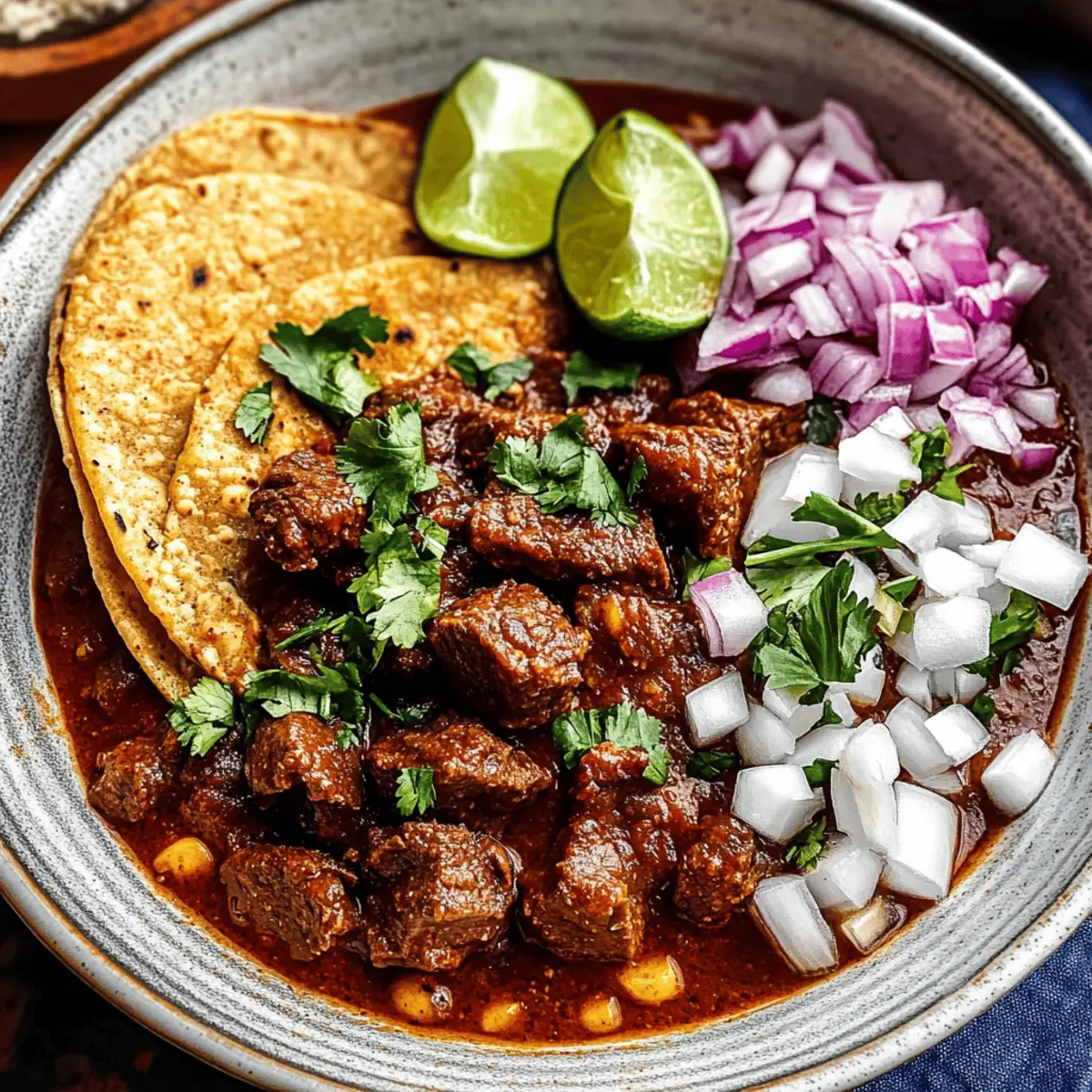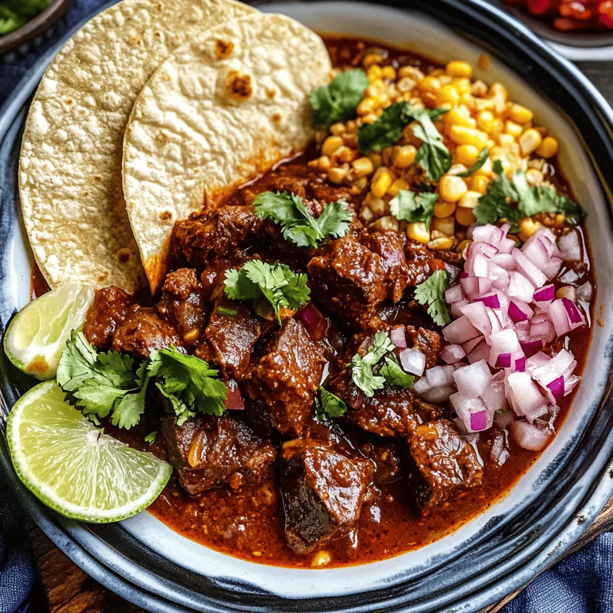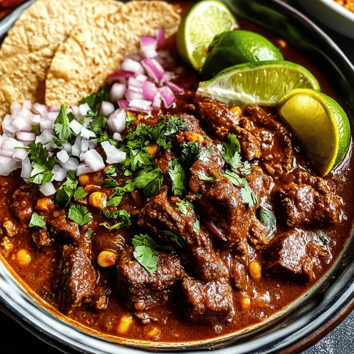 Ich saß kürzlich mit Freunden am Tisch und wir kamen ins Schwärmen über die köstlichen Aromen der mexikanischen Küche. Besonders ins Gedächtnis sprang mir die herzliche Wärme von Beef Chile Colorado, einem traditionellen Eintopf, der aus zarten Stückchen Rindfleisch in einer würzigen, roten Chilisauce besteht. Dieses Rezept vereint Komfort und Geselligkeit und ist perfekt für ein gemütliches Familienessen. Die Zubereitung ist dabei unkompliziert und macht dieses Gericht ideal für den Vorrat, denn die Aromen entfalten sich beim Aufbewahren noch intensiver. Lust auf ein unwiderstehliches Familiengericht, das die Herzen aller begeistert? Lassen Sie uns gemeinsam in die Welt von Beef Chile Colorado eintauchen! Warum werden Sie dieses Rezept lieben? Einfachheit: Die Zubereitung von Beef Chile Colorado ist unkompliziert und erfordert keine besonderen Kochfähigkeiten. Herzhafter Genuss: Zartes Rindfleisch in einer reichhaltigen, würzigen Sauce verleiht diesem Gericht eine Esserfahrung, die man nicht vergisst. Vielseitigkeit: Ideal als Hauptgericht, zu tortillas oder sogar als Füllung für Tacos. Vorbereiten und genießen – die Möglichkeiten sind endlos! Perfektes Familienessen: Dieser Eintopf bringt die Familie zusammen und sorgt für tolle Gespräche am Tisch. Probieren Sie auch Einfaches Schwarzer Pfeffer Rindfleisch Udon Rezept für eine weitere herzhafte Option! Zeitsparend: Das langsame Kochen entfaltet die Aromen perfekt und schmeckt auch am nächsten Tag noch besser. Zutaten für Beef Chile Colorado • Ein köstliches Rezept, das Ihr Herz erwärmen wird! Für das Rindfleisch • Rindfleisch Chuck – Hauptprotein, das eine herzhafte Textur bietet. Für die Würze • Koscheres Salz – Verstärkt den Geschmack; wichtig zum Würzen, je nach diätetischen Bedürfnissen anpassen. • Frisch gemahlener schwarzer Pfeffer – Fügt Würze hinzu und balanciert die Reichhaltigkeit des Rindfleischs. • Mehl – Zum Bestäuben des Rindfleischs; hilft, das Fleisch anzubraten und die Sauce zu verdicken. Für das Gemüse und die Aromen • Neutralöl – Zum Anbraten des Rindfleischs; kann durch Olivenöl für einen besonderen Geschmack ersetzt werden. • Gelbe Zwiebel – Fügt Süße und Tiefe zur Geschmacksbasis hinzu. • Knoblauchzehen – Liefert aromatische Noten; unerlässlich für einen herzhaften Geschmack. Für die Sauce • Guajillo-Chilis – Hauptchilis für die Sauce; schafft Süße und milde Schärfe. • Ancho-Chilis – Fügt Reichhaltigkeit und Tiefe hinzu; kann durch mehr Guajillo ersetzt werden. • Chile de Arbol – Fügt Schärfe und Komplexität hinzu; weniger verwenden für einen milden Geschmack. • Gemahlener Kreuzkümmel – Fügt erdige Wärme hinzu; wichtig für authentischen Geschmack. • Gemahlener Koriander – Ergänzt Gewürze; bietet subtile Zitrusnoten. • Getrockneter mexikanischer Oregano – Lieferte Kräuteraroma; kann durch normalen Oregano ersetzt werden. • Rinderbrühe – Basis für die Sauce; Hühnerbrühe ist eine alternative Option. • Frische Lorbeerblätter – Verleiht während des Kochens Geschmack; vor dem Servieren entfernen. Für die Beilage • Mais-Tortillas – Serviere sie warm, um die reichhaltige Sauce zu ergänzen. • Weiße Zwiebel, Koriander, Radieschen, Limettenviertel – Frische Toppings, um den Geschmack beim Servieren zu verstärken. Schritt-für-Schritt-Anleitung für Zarte Rindfleisch Chile Colorado Step 1: Chilis vorbereiten Toaste die getrockneten Guajillo-, Ancho- und Chile de Arbol-Chilis in einer trockenen Pfanne bei mittlerer Hitze für 2–3 Minuten, bis sie aromatisch sind, aber nicht verbrennen. Achte darauf, sie ständig umzurühren, um ein gleichmäßiges Rösten zu gewährleisten. Step 2: Chilis köcheln Gib die gerösteten Chilis, die grob gehackte Zwiebel und die Knoblauchzehen in einen Topf und füge genug Wasser hinzu, um die Zutaten zu bedecken. Lass die Mischung 10 Minuten lang köcheln, bis die Chilis weich und duftend sind. Step 3: Sauce zubereiten Transferiere die gekochten Chilis, Zwiebeln und Knoblauch in einen Mixer. Füge Kreuzkümmel, Koriander, Oregano, Rinderbrühe und eine Tasse der Kochflüssigkeit hinzu. Mixe alles, bis eine glatte Sauce entsteht, und halte sie beiseite. Step 4: Rindfleisch vorbereiten Schneide das Rindfleisch in 5 cm große Würfel und würze sie mit Koscheres Salz und frisch gemahlenem schwarzem Pfeffer. Bestäube die Stücke gleichmäßig mit Mehl, damit sie beim Anbraten eine schöne Kruste bilden und zur Saucendicke beitragen. Step 5: Rindfleisch anbraten Erhitze in einem Schmortopf oder Dutch Oven einen Schuss neutrales Öl bei mittlerer Hitze. Brate das Rindfleisch in mehreren Portionen an, bis jedes Stück von allen Seiten schön gebräunt ist, was etwa 4–5 Minuten pro Seite dauert. Lass das überschüssige Öl abtropfen. Step 6: Rindfleisch köcheln Gib das angebratene Rindfleisch zurück in den Topf und füge genügend Sauce hinzu, um das Fleisch zu bedecken. Ergänze die Mischung mit den Lorbeerblättern und lass sie bei niedriger Hitze etwa 2 Stunden lang köcheln, bis das Rindfleisch zart ist und auseinanderfällt. Step 7: Endschritte Entferne die überschüssige Ölschicht von der Oberfläche der Sauce, bevor du das zarte Rindfleisch Chile Colorado servierst. Serviere es heiß mit warmen Tortillas und den gewünschten frischen Toppings wie Zwiebeln, Koriander, Radieschen und Limettenvierteln für einen perfekten Familientisch. Tipps zur Aufbewahrung von Beef Chile Colorado Zimmertemperatur:: Lassen Sie warme Reste nicht länger als 2 Stunden bei Zimmertemperatur stehen, um die Sicherheit zu gewährleisten. Kühlschrank:: Bewahren Sie übrig gebliebenes Beef Chile Colorado in einem luftdichten Behälter im Kühlschrank für bis zu 5 Tage auf. Vor dem Verzehr gut durchwärmen. Gefrierschrank:: Für längere Aufbewahrung ist das Einfrieren möglich. Füllen Sie das Beef Chile Colorado in einen gefrierfesten Behälter und lagern Sie es bis zu