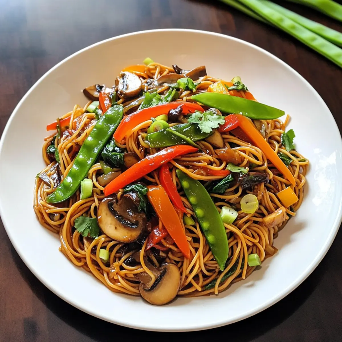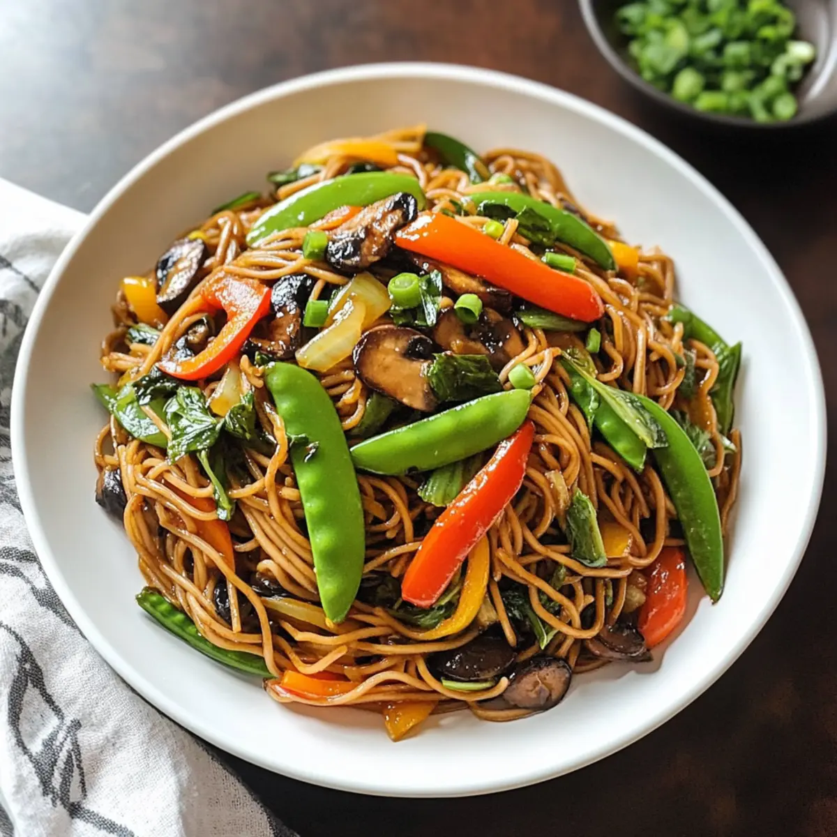 Als ich das erste Mal die Farben und Düfte des beladenen Gemüse Lo Mein in der Pfanne erblickte, war ich sofort fasziniert. Diese gesunde Variante eines klassischen Takeout-Gerichts kombiniert frisches Gemüse mit zarten Nudeln und sorgt so für eine wahre Geschmacksexplosion. Eigens für stressige Wochentage konzipiert, ist dieses Rezept nicht nur in weniger als 30 Minuten zubereitet, sondern bietet auch die Möglichkeit, die Zutaten ganz nach deinem Geschmack anzupassen – perfekt für kreative Köche. Zudem ist dieses Gericht arm an Kalorien und reich an Nährstoffen, sodass du ohne schlechtes Gewissen genießen kannst. Bist du bereit, die Küche zu betreten und ein buntes, gesundes Meisterwerk zu zaubern? Warum wird dir dieses Rezept gefallen? Einfachheit: Die Zubereitung dieses beladenen Gemüse Lo Mein ist kinderleicht und benötigt nur grundlegende Kochfähigkeiten. Gesunde Variante: Es ist die perfekte gesunde Alternative zu herkömmlichem Takeout, sodass du dir keine Gedanken über ungesunde Zutaten machen musst. Vielseitigkeit: Du kannst die Gemüsesorten nach deinem Geschmack anpassen, ob mit Brokkoli Käse Nuggets oder anderen Lieblingszutaten. Schnell & Praktisch: In weniger als 30 Minuten auf dem Tisch – ideal für hektische Wochentage. Nährstoffreich: Mit einer Fülle von Vitaminen und Ballaststoffen ist dieses Gericht nicht nur lecker, sondern auch gut für deine Gesundheit. Verwandle dein Abendessen in ein buntes Festmahl und genieße den Unterschied! Beladene Gemüse Lo Mein Zutaten Für die Sauce • Reduzierte Sojasauce – Verleiht umami und Salzgeschmack; verwende Tamari für eine glutenfreie Option. Für das Gemüse • Gemischte Pilze (Shiitake, Cremini, Austern, Steinpilze) – Bieten Tiefe und Textur; können durch deine Lieblingspilze ersetzt oder ganz weggelassen werden. • Paprika (jede Farbe) – Sorgt für Süße und Knackigkeit; Zucchini oder Karotten sind gute Alternativen. • Karotte – Fügt Süße und Farbe hinzu; Parodie kann als Ersatz dienen oder weggelassen werden. • Zuckerschoten – Bieten eine frische, knackige Textur; lassen sich leicht durch Schneebohnen oder grüne Bohnen ersetzen. • Frühlingszwiebeln – Geben einen milden, zwiebelartigen Geschmack; Chives oder Schalotten sind gute Substitute. • Blattgrün (Spinat, Bok Choy) – Fügen Vitamine und Volumen hinzu; beliebige Blattgemüse können verwendet werden. Für die Basis • Vollkornspaghetti (oder Lo Mein-Nudeln) – Bilden die Basis des Gerichts; Spaghetti können verwendet werden, wenn Lo Mein nicht verfügbar ist. Schritt-für-Schritt-Anleitung für Beladene Gemüse Lo Mein Schritt 1: Nudeln kochen Koche die Vollkornspaghetti gemäß der Verpackungsanleitung in einem großen Topf mit kochendem Salzwasser für etwa 8-10 Minuten, bis sie al dente sind. Achte darauf, sie nicht zu überkochen, da sie ihre Festigkeit behalten sollen. Nach dem Kochen die Nudeln abgießen und beiseite stellen, während du die Gemüse zubereitest. Schritt 2: Gemüse sautieren Erhitze in einer großen Pfanne bei mittlerer Hitze einen Esslöffel Öl. Füge die gemischten Pilze hinzu und brate sie für 2-3 Minuten an, bis sie zart und leicht gebräunt sind. Dabei regelmäßig umrühren, um ein gleichmäßiges Garen zu gewährleisten und den köstlichen Umami-Geschmack freizusetzen. Schritt 3: Knackiges Gemüse hinzufügen Streue die geschnittenen Paprika, Karotten und Zuckerschoten in die Pfanne und sautiere alles zusammen für weitere 3-4 Minuten. Das Gemüse sollte noch leicht knackig sein und eine lebendige Farbe zeigen. Diese Mischung gibt dem Beladenen Gemüse Lo Mein die gewünschte Frische und einen perfekten Biss. Schritt 4: Kombinieren und Würzen Gib die gekochten Spaghetti in die Pfanne mit dem Gemüse. Gieße die reduzierte Sojasauce darüber und vermische alles gründlich, bis die Nudeln gleichmäßig mit der Sauce überzogen sind. Lass die Mischung für etwa 2 Minuten bei mittlerer Hitze weiterkochen, damit sich die Aromen gut verbinden. Schritt 5: Mit Blattgemüse abschließen Füge die Blattgemüse wie Spinat oder Bok Choy zu der Pfanne hinzu und rühre alles gut um, bis das Gemüse zusammenfällt und eine lebendige Farbe zeigt. Dies sollte nur etwa 1-2 Minuten dauern. Das Hinzufügen des grünen Gemüses macht deinen Beladenen Gemüse Lo Mein nährstoffreicher und visuell ansprechend. Schritt 6: Servieren und Garnieren Nimm die Pfanne vom Herd und richte die leuchtende Mischung auf Tellern an. Garniere das Gericht mit frischen Frühlingszwiebeln für zusätzlichen Geschmack und Crunch. Serviere deine Beladene Gemüse Lo Mein sofort, um die besten Aromen und die Frische der Zutaten zu genießen. Tipps für das beste Beladene Gemüse Lo Mein Nudeln richtig kochen: Achte darauf, die Nudeln al dente zu kochen, um die perfekte Textur zu erreichen. Überkochen kann sie matschig machen. Gemüse knackig halten: Brate das Gemüse nur kurz an, um ihre Frische und Nährstoffe zu bewahren. Übermäßiges Garen führt zu einem Verlust von Geschmack und Farbe. Anpassungen vornehmen: Fühle dich frei, eine Vielzahl von Gemüsesorten zu verwenden! Zucchini oder Brokkoli sind tolle Alternativen, die deinem Beladenen Gemüse Lo Mein eine persönliche Note verleihen. Würze variieren: Für mehr Geschmack füge während des Kochens etwas Ingwer oder Knoblauch hinzu. Dies hebt die Aromen zusätzlich hervor und bringt eine schöne Tiefe in das Gericht. Nach Belieben garnieren: Frische Kräuter oder Chili-Flocken als Garnitur bringen nicht nur Farbe, sondern auch einen zusätzlichen Geschmacks-Kick. Vorbereitung ist alles: Bereite alle Zutaten im Voraus vor, um den Kochprozess zu beschleunigen und dein Beladenes Gemüse Lo Mein in null Komma nichts auf den Tisch zu bringen. Was passt zu Beladenem Gemüse Lo Mein? Genieße eine bunte und schmackhafte Kombination, die dein Zubereitungserlebnis bereichert. Cremige Avocado-Salat: Frisch und cremig, dieser Salat bringt eine samtige Textur, die im Kontrast