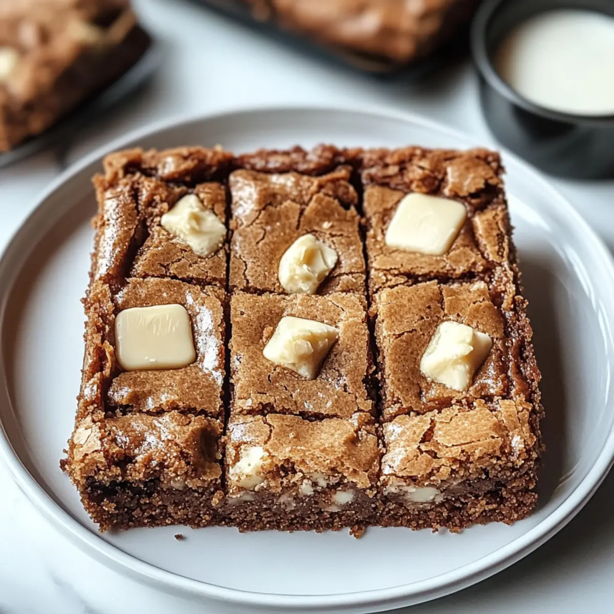 Die Vorfreude auf frisch gebackene Köstlichkeiten ist oft unerträglich – besonders wenn ein Rezept für Biscoff Blondies auf einen wartet. Diese kleine Leckerei vereint die unwiderstehliche Süße von Biscoff-Cookies mit einer weich-chewy Konsistenz, die einfach zum Dahinschmelzen einlädt. Als einfaches Blondie-Rezept ist es perfekt für alle, die sich nach einer schnellen, aber dennoch gehobenen Dessertlösung sehnen. Ob für ein gemütliches Kaffeetreffen mit Freunden oder als süßer Snack für zwischendurch – diese Blondies ziehen einfach jeden in ihren Bann und bleiben für Tage frisch. Neugierig, wie Sie diese unwiderstehlichen Blondies zubereiten können? Lassen Sie uns direkt in die Zubereitung eintauchen! Warum sind Biscoff Blondies ein Hit? Einfachheit: Die Zubereitung ist kinderleicht, sodass auch Anfänger im Backen begeistert teilnehmen können. Unwiderstehlicher Geschmack: Die Kombination aus Biscoff-Cookie-Butter und crunchy Biscoff-Stücken sorgt für einen intensiven und reichen Geschmack. Vielseitigkeit: Passen Sie das Rezept an, indem Sie verschiedene Schokoladen oder Nüsse hinzufügen – es gibt unendlich viele Möglichkeiten! Zufriedenstellende Konsistenz: Diese Blondies sind weich und chewy, und jeder Biss ist ein kleiner Genussmoment. Perfekt für jeden Anlass: Ob als Dessert bei einem Dinner oder als Snack für die Kaffeepause, sie kommen immer gut an. Langanhaltende Frische: Dank ihrer Textur bleiben die Blondies für Tage frisch, sodass Sie sie auch im Voraus zubereiten können. Biscoff Blondies Zutaten • Diese Biscoff Blondies sind ein echter Genuss, also lassen Sie uns direkt zu den Zutaten kommen! Für den Teig Ungesalzene Butter – gibt den Blondies Reichtum und feuchte Konsistenz; ungesalzen verwenden für beste Kontrolle. Biscoff-Keksbutter – bringt den charakteristischen Geschmack und die gooey Textur; kann durch andere Spekulatius-Cremes ersetzt werden. Brauner Zucker – sorgt für Süße und Feuchtigkeit und schafft die perfekte chewy Textur. Große Eier – bieten Struktur und Stabilität für die Blondies. Vanilleextrakt – verstärkt den Geschmack; verwenden Sie reinen Vanilleextrakt für das beste Aroma. Allzweckmehl – notwendig für die Struktur und Textur der Blondies. Backpulver – fungiert als Treibmittel für eine luftige Konsistenz. Salz – intensiviert den Geschmack; ggf. anpassen, wenn gesalzene Butter verwendet wird. Weiße Schokoladenstückchen – fügt Süße und Cremigkeit hinzu; nach Belieben anpassen mit anderen Mix-ins. Zerkleinerte Biscoff-Kekse – sorgen für knusprige Texturkontraste in den Blondies. Schritt-für-Schritt-Anleitung für Biscoff Blondies Step 1: Ofen vorheizen und Backform vorbereiten Heizen Sie den Ofen auf 175°C vor und bereiten Sie eine 23×23 cm große Backform vor, indem Sie sie mit Backpapier auslegen oder gut einfetten. Diese Vorbereitungen sind wichtig, um sicherzustellen, dass Ihre Biscoff Blondies gleichmäßig gebacken werden und leicht aus der Form gelöst werden können. Step 2: Butter und Keksbutter schmelzen Schmelzen Sie in einem mittelgroßen Topf bei niedriger Hitze die ungesalzene Butter zusammen mit der Biscoff-Keksbutter, bis die Mischung glatt und cremig ist. Dieser Schritt dauert etwa 3–5 Minuten und verleiht den Blondies eine köstliche, aromatische Basis. Rühren Sie regelmäßig um, um ein Anbrennen zu verhindern. Step 3: Zucker einrühren Lassen Sie die geschmolzene Mischung 5 Minuten abkühlen und fügen Sie dann den braunen Zucker hinzu. Rühren Sie kräftig um, bis der Zucker vollständig eingearbeitet ist und die Mischung eine homogene, glatte Textur erreicht. Dies sorgt für die klebrige und süße Konsistenz, die unsere Biscoff Blondies so unwiderstehlich macht. Step 4: Eier und Vanille hinzufügen Schlagen Sie die Eier einzeln in die Zuckermischung und vermengen Sie alles gründlich nach jeder Zugabe. Geben Sie dann den Vanilleextrakt dazu und rühren Sie weiter, bis sich alles gut verbunden hat. Dieser Schritt bringt zusätzliche Feuchtigkeit und Geschmack in den Teig der Biscoff Blondies. Step 5: Trockene Zutaten mischen In einer separaten Schüssel das Allzweckmehl, Backpulver und Salz vermischen. Sieben Sie die trockenen Zutaten, um Klumpen zu vermeiden. Dieses Vorgehen stellt sicher, dass Ihre Biscoff Blondies eine gleichmäßige, luftige Konsistenz erhalten und schön aufgehen. Step 6: Trockene und nasse Zutaten kombinieren Geben Sie die trockenen Zutaten vorsichtig zur Butter-Ei-Mischung und rühren Sie nur so lange, bis alles gerade vermengt ist. Achten Sie darauf, nicht zu übermixen, da dies die Konsistenz der Biscoff Blondies beeinträchtigen könnte. Der Teig sollte klumpig, aber gut verbunden sein. Step 7: Schokoladenstückchen und Kekse unterheben Fügen Sie die weißen Schokoladenstückchen und die zerdrückten Biscoff-Kekse in den Teig und heben Sie sie vorsichtig unter. Diese Zutaten geben den Blondies eine süße Note und einen tollen Biss, was sie zu einem unvergesslichen Genuss macht. Step 8: Teig in die Form geben und backen Verteilen Sie den Teig gleichmäßig in der vorbereiteten Backform. Backen Sie die Biscoff Blondies 25–30 Minuten lang im vorgeheizten Ofen, bis die Ränder goldbraun sind und ein in die Mitte gesteckter Zahnstocher sauber herauskommt. Achten Sie darauf, nicht zu lange zu backen, um die zarte Konsistenz zu bewahren. Step 9: Abkühlen lassen Lassen Sie die Blondies nach dem Backen 10 Minuten in der Form abkühlen. Danach können Sie sie auf ein Kuchengitter legen, um vollständig abzukühlen. Dies hilft, die perfekte Textur zu erhalten und die Zitronen-Keksaromen gut durchziehen zu lassen. Tipps für die besten Biscoff Blondies Richtig abmessen: Messen Sie Ihre Zutaten genau ab, um die perfekte Textur der Blondies zu erzielen; zu viel Mehl kann sie trocken machen. Nicht zu lange backen: Überprüfen Sie die Blondies 5 Minuten vor Ende der Backzeit; sie sollten leicht goldbraun und in der Mitte noch feucht sein. Lufti