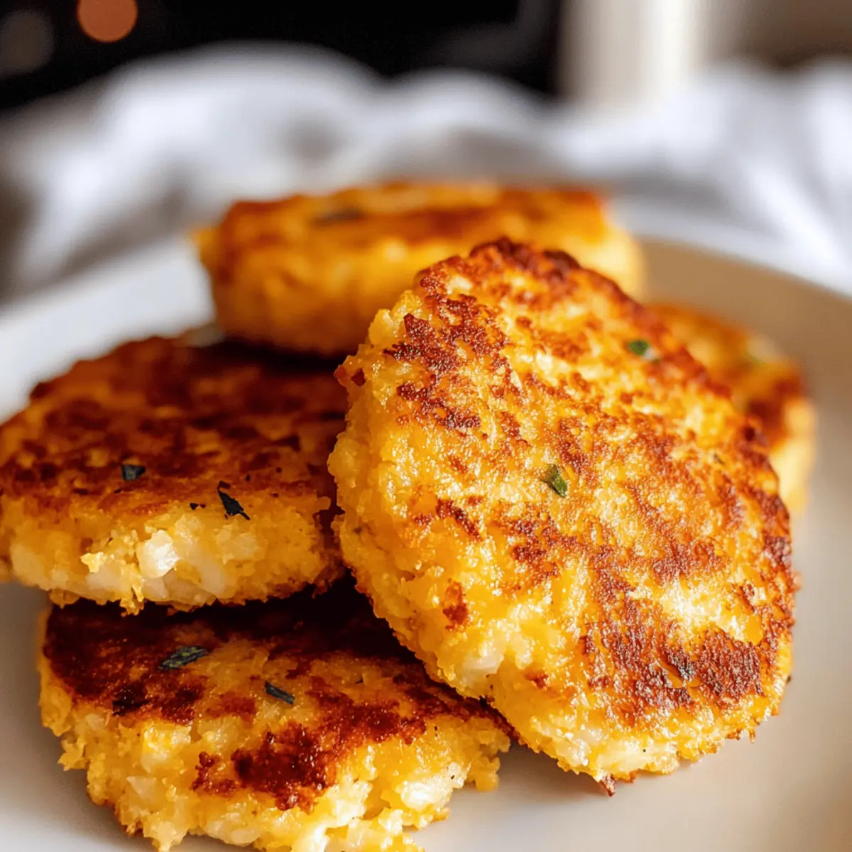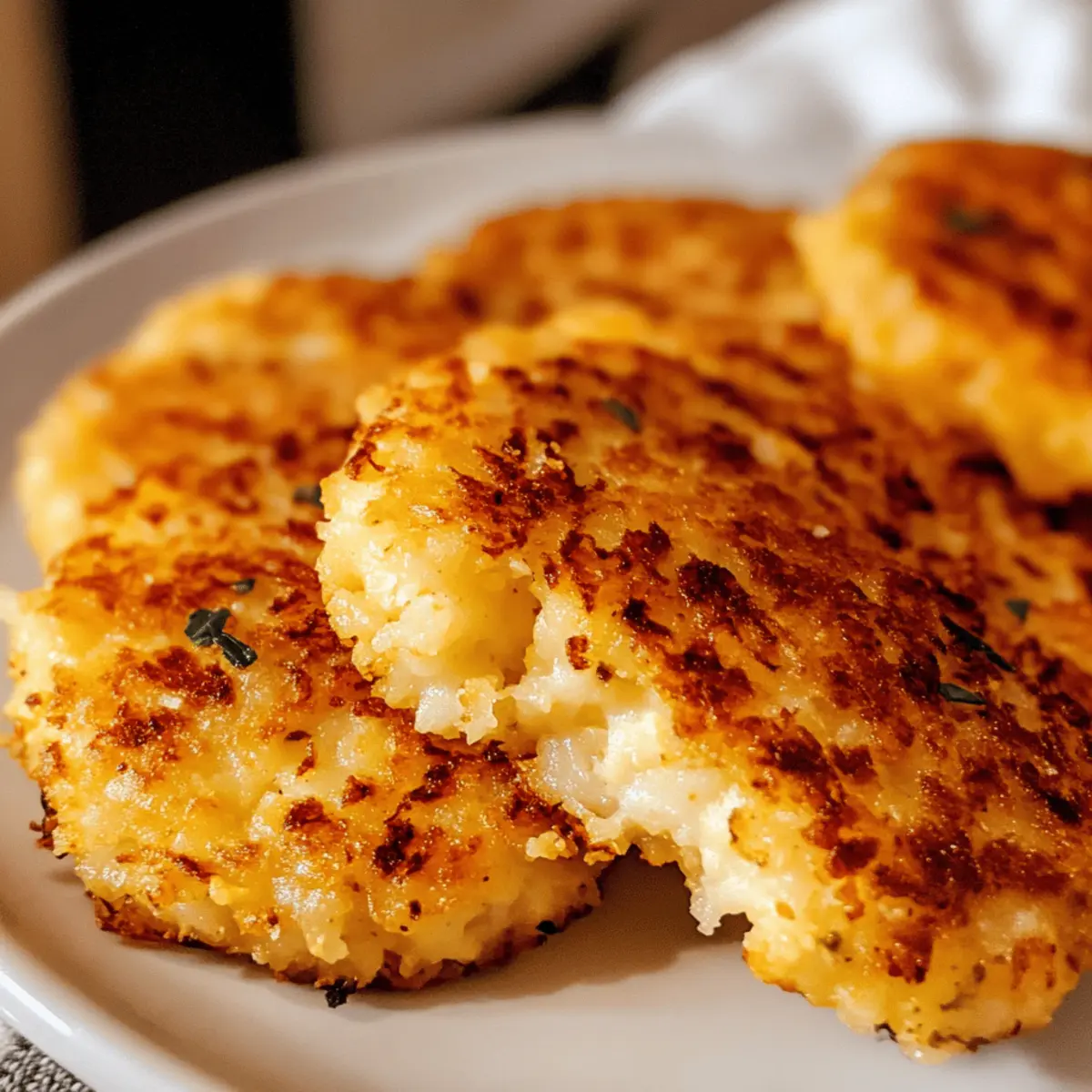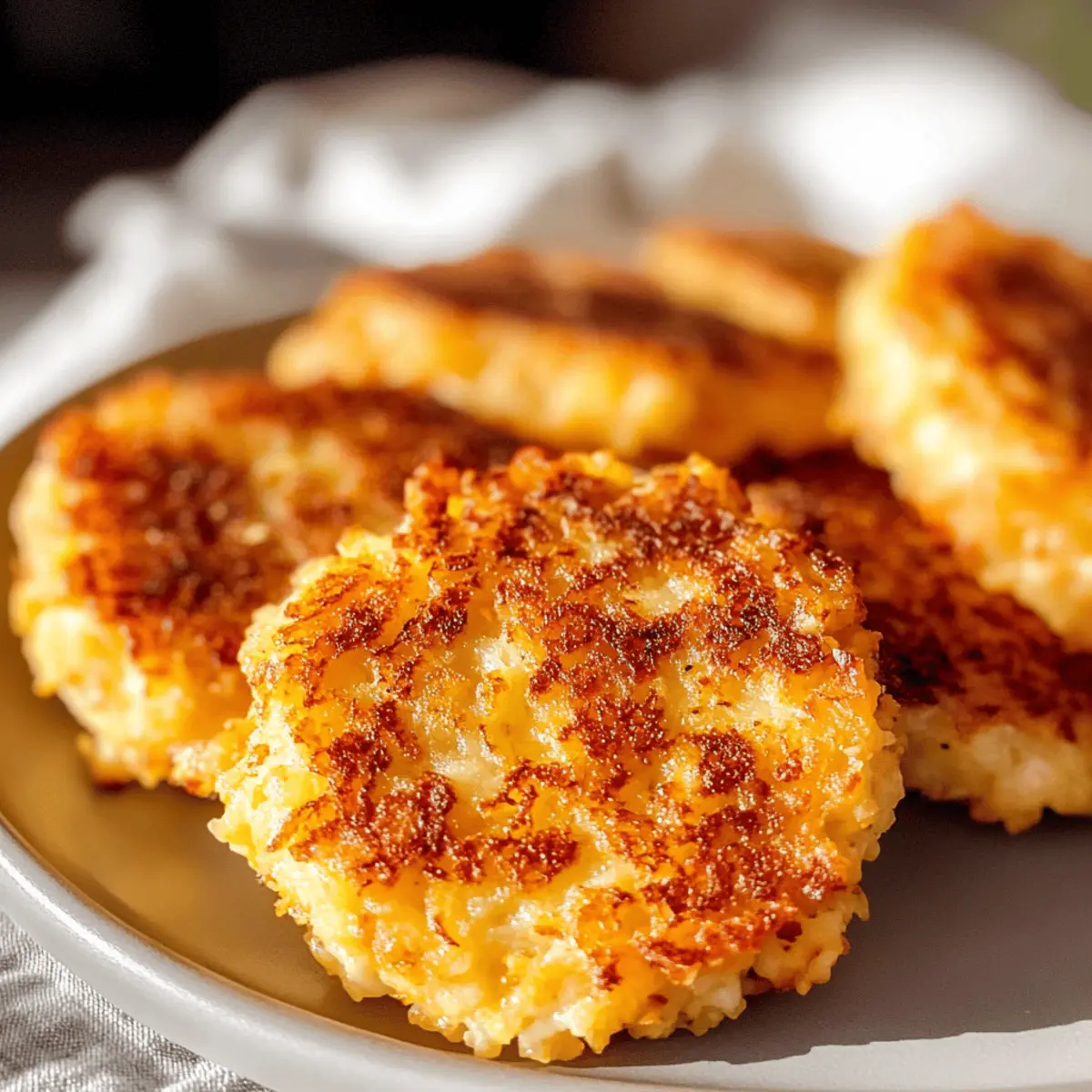 Während ich am Wochenende in meiner Küche experimentierte, wurde ich plötzlich von einem unverwechselbaren Duft von gebratenem Gemüse eingefangen. Es war der Moment, als ich die Idee für meine knusprigen Blumenkohl-Hash Browns hatte – ein schnelles und köstliches Rezept, das nicht nur glutenfrei und niedrig in Kohlenhydraten ist, sondern auch alle Geschmäcker anspricht. Diese kleinen, goldenen Häppchen sind perfekt für ein herzhaftes Frühstück oder als vielseitige Beilage und bieten eine großartige Alternative zu herkömmlichen Kartoffel-Hash Browns. Mit nur 7 Netto-Kohlenhydraten pro Portion ist es leicht, sie in eine keto-freundliche Ernährung zu integrieren. Glauben Sie mir, der knusprige Biss und der köstliche Käsegeschmack werden auch Sie begeistern! Neugierig geworden, wie einfach das zuzubereiten ist? Warum werden Sie dieses Rezept lieben? Einfachheit: Die Zubereitung erfordert nur grundlegende Kochkünste und wenige Zutaten, was das Rezept für jeden zugänglich macht. Vielfältig: Genießen Sie die Hash Browns als Beilage zu Eiern oder als Grundlage für ein köstliches Low-Carb-Gericht wie eine gesunde Variante von Eggs Benedict. Gesund und nahrhaft: Mit nur 7 Netto-Kohlenhydraten pro Portion sind sie ideal für eine keto-freundliche Ernährung und gleichzeitig geschmackvoll. Köstlicher Geschmack: Die Kombination aus Blumenkohl und geschmolzenem Käse sorgt für ein wahres Geschmackserlebnis, das traditionelle Kartoffel-Hash Browns leicht übertrifft. Probieren Sie auch die Knoblauch Champignon Blumenkohl für eine zusätzliche geschmackliche Abwechslung! Zutaten für Blumenkohl-Hash Browns Für den Teig: Blumenkohl-Reis – bildet die Basis der Hash Browns und ist eine großartige, kohlenhydratarmen Alternative zu Kartoffeln; frischer Blumenkohl sorgt für die beste Textur. Cheddar-Käse – verleiht den Hash Browns ihre Cremigkeit und hilft, die Mischung zu binden; Peperoni-Käse oder Mozzarella sind auch tolle Alternativen. Knoblauchpulver – verbessert die Geschmacksintensität; frischer, gehackter Knoblauch kann für einen kräftigeren Geschmack verwendet werden. Salz – hebt die Aromen hervor; die Menge kann nach Belieben angepasst werden. Paprika – bringt eine milde Rauchnote und Farbe; geräucherte Paprika kann für einen intensiveren Geschmack eingesetzt werden. Pfeffer – sorgt für eine subtile Schärfe; nach Geschmack mehr hinzufügen, wenn Sie es würziger mögen. Ei – bindet die Mischung und sorgt für feste Patties; alternativ kann ein Flachsei für eine vegane Version verwendet werden. Schritt-für-Schritt-Anleitung für Krosse Blumenkohl-Hash Browns Step 1: Ofen vorheizen Heizen Sie den Ofen auf 200 °C vor. Dies sorgt dafür, dass Ihre krossen Blumenkohl-Hash Browns gleichmäßig gegart werden und am Ende schön goldbraun und knusprig sind. Während der Ofen vorheizt, können Sie die Blumenkohl-Reis-Zubereitung vorbereiten. Step 2: Blumenkohl dämpfen Geben Sie den Blumenkohl-Reis in eine mikrowellengeeignete Schüssel und decken Sie ihn locker mit Frischhaltefolie ab. Erhitzen Sie ihn in der Mikrowelle auf hoher Stufe für etwa 6 Minuten. Nach der Garzeit sollte der Blumenkohl weich, aber nicht matschig sein – dies sorgt für die perfekte Konsistenz Ihrer Hash Browns. Step 3: Feuchtigkeit ausdrücken Lassen Sie den gedämpften Blumenkohl kurz abkühlen, damit Sie sich nicht verbrennen. Übertragen Sie ihn dann in ein sauberes Küchentuch und drücken Sie vorsichtig die überschüssige Feuchtigkeit heraus. Dieser Schritt ist entscheidend, um sicherzustellen, dass Ihre krossen Blumenkohl-Hash Browns nicht zu weich werden. Step 4: Mischung zubereiten Geben Sie den ausgedrückten Blumenkohl zurück in die Schüssel und fügen Sie den geriebenen Cheddar-Käse, Knoblauchpulver, Salz, Paprika, Pfeffer und das Ei hinzu. Mischen Sie alles gut, bis sich die Zutaten gleichmäßig verbunden haben. Achten Sie darauf, dass der Käse gleichmäßig verteilt ist, um köstliche Geschmackserlebnisse zu garantieren. Step 5: Patties formen Nehmen Sie eine kleine Portion der Mischung und formen Sie sie zu gleichmäßigen Patties, etwa 0,5 cm dick. Achten Sie darauf, dass Sie ca. 8 Patties aus der Mischung herausbekommen. Legen Sie diese auf ein mit Backpapier ausgelegtes Backblech. Diese Form sorgt dafür, dass sie beim Backen eine köstlich knusprige Textur erhalten. Step 6: Backen Backen Sie die Patties im vorgeheizten Ofen für etwa 15 Minuten. Nach der Hälfte der Garzeit nehmen Sie sie heraus und wenden Sie die Patties vorsichtig, damit sie gleichmäßig bräunen. Backen Sie sie dann weitere 5 Minuten, bis sie eine goldene Farbe angenommen haben und angenehm knusprig sind. Tipps für die besten Blumenkohl-Hash Browns Feuchtigkeit entfernen: Stellen Sie sicher, dass Sie die überschüssige Feuchtigkeit gründlich aus dem Blumenkohl drücken, um eine matschige Konsistenz zu vermeiden. Frische Zutaten verwenden: Frischer Blumenkohlreis sorgt für eine bessere Textur. Achten Sie darauf, dass er keine Zusätze enthält. Käse aus dem Block: Verwenden Sie frisch geriebenen Käse, da dieser besser schmilzt als vorgeriebene Varianten. So wird der Geschmack intensiver. Backpapier nutzen: Ein mit Backpapier ausgelegtes Blech verhindert das Anhaften der Patties und sorgt für eine krosse Konsistenz. Variation schmecken: Experimentieren Sie mit verschiedenen Käsesorten oder fügen Sie frische Kräuter hinzu, um den Geschmack Ihrer Blumenkohl-Hash Browns zu variieren. Was zu den Krossen Blumenkohl-Hash Browns servieren? Genießen Sie die knusprigen Blumenkohl-Hash Browns als Teil eines kompletten, geschmackvollen Essens, das den Gaumen erfreut. Spiegeleier: Die perfekte Ergänzung für ein herzhaftes Frühstück, bringen die Eier eine cremige Textur und zusätzliche Proteine. Avocado-Scheiben: Frisch und cremig, ergänzt die Avocado die knusprige Textur der Hash Browns wunderbar und fügt gesunde Fette hinzu. Tomatensalsa: Diese frische und pikante Mischung bri