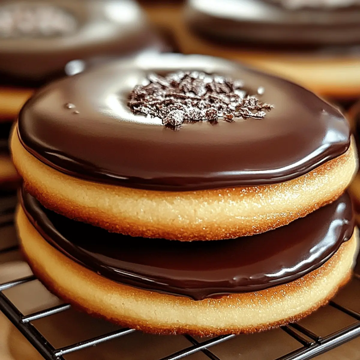 Sobald die Kekse vollständig abgekühlt sind, nimm einen Keks und fülle ihn mit der zuvor zubereiteten Füllung. Lege einen weiteren Keks darauf, um einen Keks-Sandwich zu bilden. Tauche die Oberseite des Sandwiches in die Schokoladenglasur, sodass die Glasur gleichmäßig verteilt ist. Lass die Kekse für einige Minuten bei Raumtemperatur stehen, bis die Glasur fest wird, bevor du sie servierst.