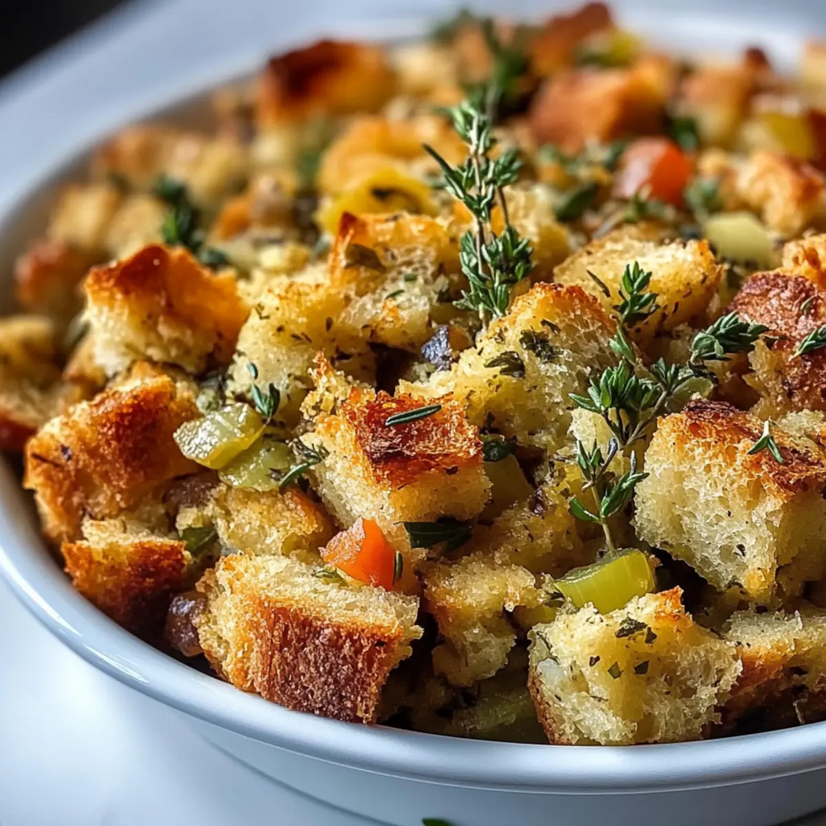 Die köstliche Vorstellung von frisch gebackenem Brot erfüllt den Raum, während ich an meinem klassischen Brotfüllung mit frischen Kräutern arbeite. Es ist der Inbegriff von Gemütlichkeit und passt perfekt zu jedem Festessen – besonders zu Thanksgiving. Mit seinem goldbraunen, knusprigen Oberteil und dem saftigen, aromatischen Inneren wird diese Füllung schnell zum Star auf deinem Tisch. Einfach zuzubereiten und dennoch beeindruckend im Geschmack, ist diese Brotfüllung nicht nur ein Festtagsbegleiter, sondern auch ein vegetarisches Komfortessen, das auch die wählerischsten Esser begeistert. Bist du bereit, deine Küchenkünste auf ein neues Niveau zu heben und die besten Aromacommunionen zu entdecken?