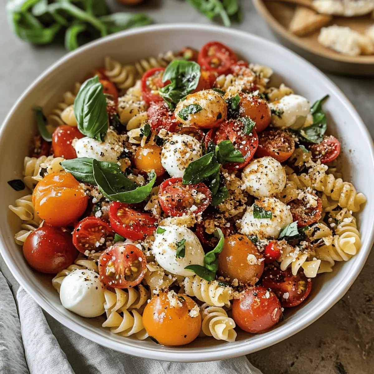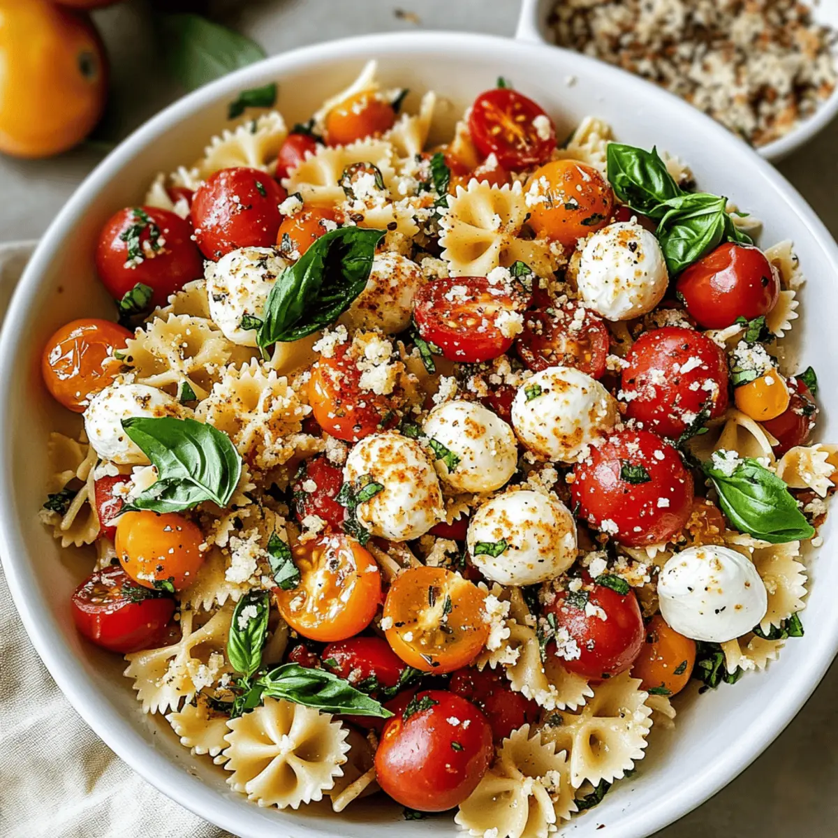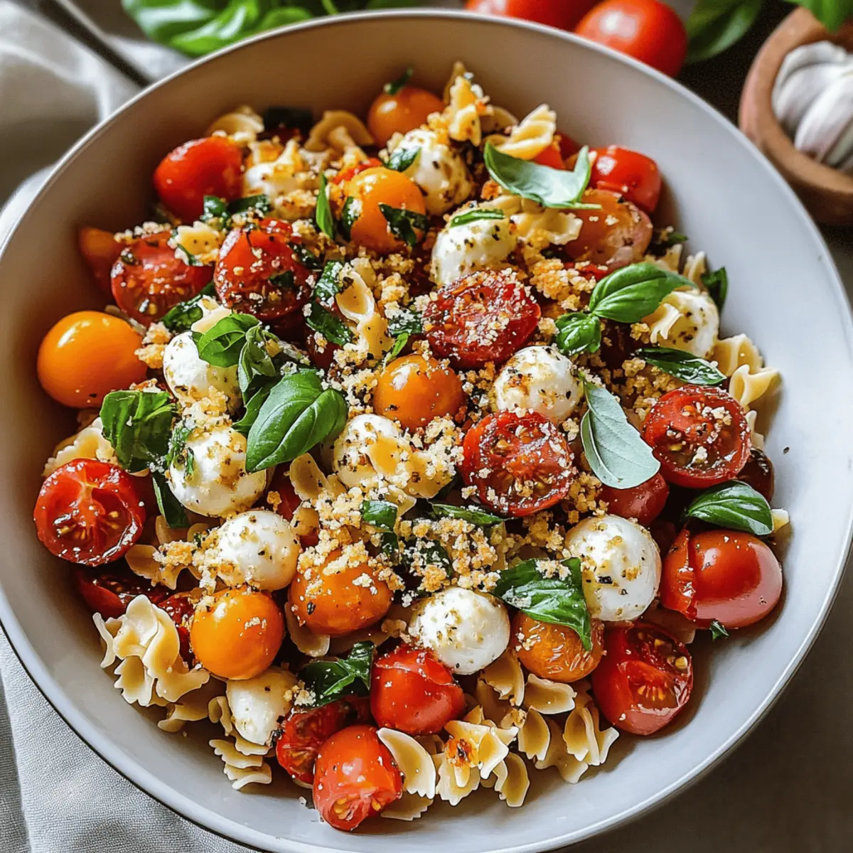 Während ich in meiner Küche stand und das Aroma von frisch gehacktem Basilikum wahrnahm, überkam mich ein Gefühl der Vorfreude auf den kommenden Sommer. Dieses Rezept für einen kalten Bruschetta-Pasta-Salat mit Mini-Mozzarella-Bällchen bringt den Geschmack Italiens direkt auf den Tisch und ist ein perfekter Begleiter für gesellige Zusammenkünfte. Die Kombination aus saftigen Kirschtomaten, aromatischem Knoblauch und cremigen Mozzarella-Bällchen macht dieses vegetarische Gericht nicht nur köstlich, sondern auch schnell zubereitet – in nur 30 Minuten! Egal, ob du eine gesunde Lunch-Option suchst oder die Gäste beim nächsten Grillabend angenehm überraschen möchtest, dieser Salat punktet mit frischen Zutaten und einem unwiderstehlichen Crunch. Bist du bereit, diesen Sommergeschmack nach Hause zu holen? Warum wirst du diesen Pasta-Salat lieben? Farbenfroh und erfrischend: Dieser Bruschetta Pasta Salat bringt nicht nur Farben auf den Tisch, sondern begeistert auch mit seinem knackigen und süßen Geschmack. Schnelle Zubereitung: In nur 30 Minuten fertig, ist er perfekt für spontane Dinnerpartys oder als gesunde Mittagessen-Option. Vielfältige Texturen: Die Kombination aus cremigen Mozzarella-Bällchen und crunchy Bresadola macht jeden Bissen spannend. Anpassbar: Du kannst beliebige kleine Pasta verwenden oder das Rezept nach deinen Vorlieben anpassen, sei es glutenfrei oder vegan! Tolle Begleitung: Serviere ihn als Hauptgericht oder als Beilage zu gegrilltem Fleisch – er wird immer ein Hit sein! Falls du noch mehr sommerliche Rezepte suchst, probiere auch unseren Erdbeer Spinat Genuss! Bruschetta Pasta Salat Zutaten Für die Pasta Kleine Pastaform – eignet sich ideal als Grundlage für den Salat; nimm kleine Sorten wie Farfalle oder Penne, glutenfreie Optionen sind ebenfalls möglich. Für den Salat Kirschtomaten – verleihen Süße und Saftigkeit, sind reich an Vitamin C; ersatzweise kannst du auch Traubentomaten nutzen. Knoblauch – sorgt für ein aromatisches Geschmackserlebnis; verwende am besten frischen Knoblauch. Schalotte – bietet eine milde Zwiebelnote; bei Bedarf auch durch rote Zwiebel ersetzen. Mini-Bocconcini (Mozzarella-Bällchen) – geben dem Salat eine cremige Textur; du kannst sie durch geriebenen Parmigiano-Reggiano ersetzen oder ganz weglassen, um das Gericht milchfrei zu machen. Frisches Basilikum – bringt frische Aromen ins Spiel; du kannst auch andere Kräuter wie Petersilie verwenden, wenn nötig. Olivenöl – sorgt für eine reichhaltige Note und lässt die Geschmäcker verschmelzen; verwende extra natives Olivenöl für den besten Geschmack. Rotweinessig – fügt Säure und Helligkeit hinzu; Apfelessig kann als Alternative genutzt werden. Salz & Pfeffer – essentielle Gewürze zur Geschmacksanpassung; nach Belieben würzen. Für die Buchstaben Sauerteigbrot (optional) – sorgt für knusprige Breadcrumbs und zusätzlichen Biss; bei Bedarf durch ein anderes Brot ersetzen oder ganz weg lassen, um den Salat glutenfrei zu machen. Schritt-für-Schritt-Anleitungen für Bruschetta Pasta Salat Step 1: Pasta kochen Bring einen großen Topf mit Wasser zum Kochen und füge großzügig Salz hinzu. Gib die kleine Pasta hinein und koche sie gemäß den Packungsanweisungen al dente, was in der Regel etwa 8–10 Minuten dauert. Prüfe die Pasta gegen Ende der Garzeit, um sicherzustellen, dass sie nicht zu weich wird. Gieße die Pasta anschließend in ein Sieb ab und lasse sie kurz unter kaltem Wasser abkühlen. Step 2: Salatzutaten vorbereiten Bereite in einer großen Schüssel die Salatzutaten vor: Halbiere die Kirschtomaten, hacke den frischen Knoblauch und die Schalotte fein. Füge die Mini-Bocconcini, das Olivenöl, den Rotweinessig, gehacktes Basilikum sowie eine Prise Salz und Pfeffer hinzu. Vermische alles vorsichtig mit einem großen Löffel, damit die Aromen gut durchziehen können. Lass den Salat etwa 10 Minuten stehen. Step 3: Breadcrumbs zubereiten Falls du die optionalen knusprigen Breadcrumbs möchtest, erhitze in einer Pfanne bei mittlerer Hitze einen Esslöffel Olivenöl. Toast das geschnittene Sauerteigbrot einige Minuten lang, bis es goldbraun und knusprig ist. Lass es kurz abkühlen und zerkleinere es anschließend in einem Mixer oder mit den Händen zu groben Krümeln. Für zusätzlichen Geschmack kannst du etwas Knoblauchpulver hinzufügen. Step 4: Breadcrumbs anrösten Gib die Breadcrumbs zurück in die erhitzte Pfanne und röste sie bei mittlerer Hitze für etwa 5 Minuten. Rühre regelmäßig um, bis die Krümel gleichmäßig goldbraun werden. Achte darauf, dass sie nicht anbrennen, da sie sonst bitter werden. Diese knusprigen Breadcrumbs sorgen für einen tollen Biss in deinem Bruschetta Pasta Salat. Step 5: Alles kombinieren Jetzt ist es Zeit, alles zu vereinen! Gib die abgekühlte Pasta in die Schüssel mit dem Tomatenmix und die gerösteten Breadcrumbs hinzu. Tossiere alles gründlich, sodass sich die Aromen gut verteilen. Probiere den Salat und passe die Gewürze nach Belieben an – möglicherweise möchtest du etwas mehr Salz oder Pfeffer hinzufügen. Serviere deinen Bruschetta Pasta Salat sofort oder stelle ihn für eine Weile in den Kühlschrank für eine erfrischende Mahlzeit. Tipps für den besten Bruschetta Pasta Salat Pasta al dente kochen: Achte darauf, die Pasta nicht zu weich zu kochen, damit sie im Salat die richtige Textur behält. Frische Zutaten verwenden: Verwende frisches Obst und Gemüse, um den Geschmack und die Nährstoffe im Bruschetta Pasta Salat zu maximieren. Gewürze anpassen: Taste den Salat vor dem Servieren ab und passe Salz und Pfeffer nach deinem Geschmack an. Breadcrumbs separat halten: Für einen knusprigen Biss, halte die Breadcrumbs bis kurz vor dem Servieren von der restlichen Mischung getrennt. Experimentiere mit Kräutern: Probiere unterschiedliche frische Kräuter aus, um dem Salat neue Geschmacksrichtungen zu verleihen. Was reicht man zu Bruschetta Pasta Salat? Der warme Sommerwind bring
