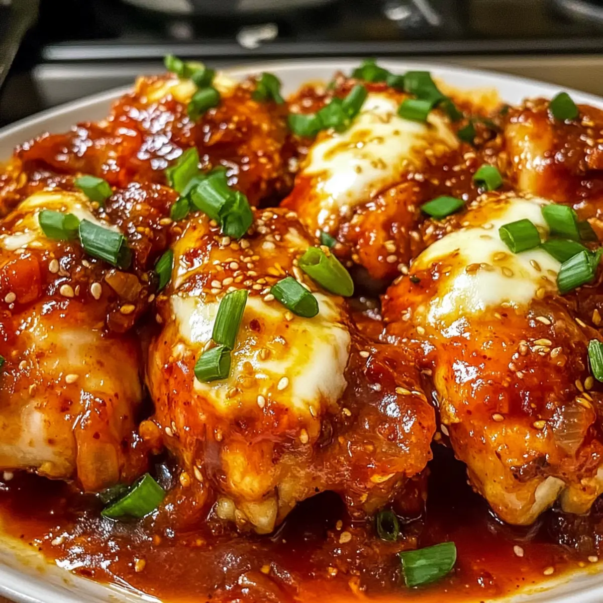 Für einen milderen Geschmack die Menge von Gochugaru und Gochujang reduzieren. Frischen Mozzarella für besten Schmelz verwenden.
