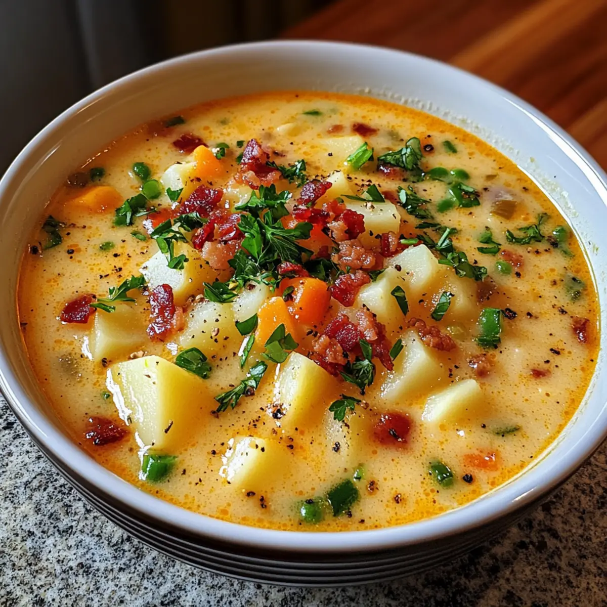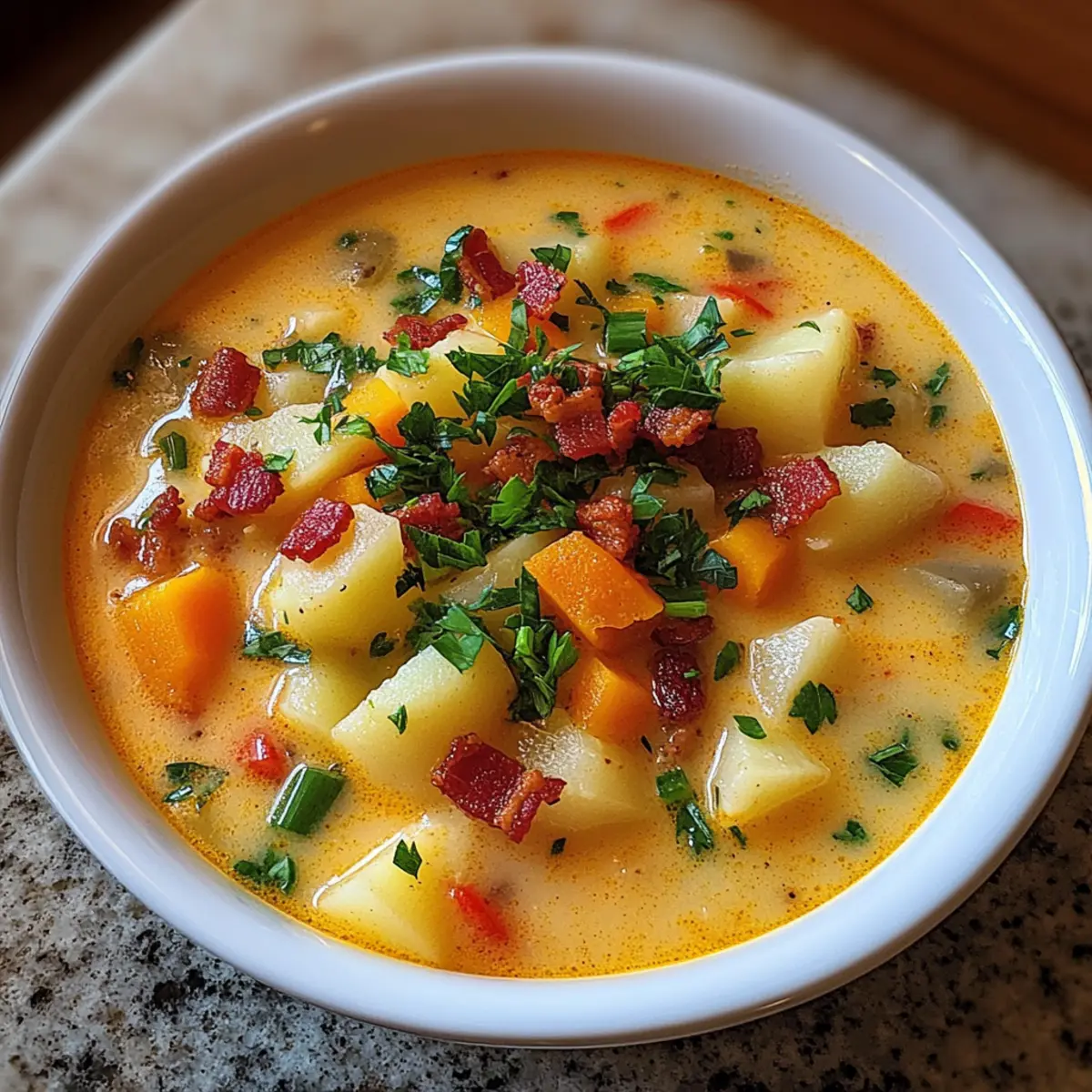 Eines der besten Dinge an kalten Tagen ist das Genießen von wärmender, hausgemachter Suppe. Bei meinem Rezept für Cajun Kartoffelsuppe wird jede Schüssel zu einem Fest der Aromen – zarte, cremige Kartoffeln kombiniert mit kräftigen Gemüsesorten und einer Würze, die sofort gute Laune verbreitet. Diese köstliche, cremige Suppe ist perfekt für alle, die ein einfaches Gericht zaubern möchten, ohne viel Zeit in der Küche zu verbringen. In nur 50 Minuten kannst du ein Gericht zubereiten, das sowohl Einsteiger als auch erfahrene Köche begeistert. Hast du schon einmal darüber nachgedacht, wie ein Hauch von Cajun-Gewürz deinem nächsten Suppenabenteuer den ultimativen Kick geben kann? Warum lieben wir diese Cajun Kartoffelsuppe? Wärme und Geborgenheit: Diese Suppe ist der Inbegriff von Komfortessen – perfekt, um Körper und Seele an kalten Tagen zu wärmen. Einfache Zubereitung: Du brauchst keine Kochprofi zu sein! In nur 50 Minuten gelingt dir dieses köstliche Gericht. Vielseitige Variationen: Experimentiere mit verschiedenen Gemüsesorten oder Käse und passe die Suppe ganz nach deinem Geschmack an. Sinnliches Aroma: Die Kombination aus Cajun-Gewürzen, Paprika und frischen Kräutern sorgt für einen wahren Geschmackskick in jeder Schüssel. Ideal für jede Gelegenheit: Egal ob für ein Familienessen oder ein entspanntes Abendessen mit Freunden – die Cajun Kartoffelsuppe kommt immer gut an. Leckere Beilagen: Kombiniere sie mit frischem Brot oder einem leichten Salat, um das Geschmackserlebnis zu vervollständigen. Cajun Kartoffelsuppe Zutaten • Entdecke die herzhaften Zutaten für ein köstliches Geschmackserlebnis! Für die Basis: Russische Kartoffeln – bieten die cremige, gehaltvolle Grundlage für die Suppe; du kannst auch Yukon Gold oder rote Kartoffeln verwenden. Olivenöl – dient zum Anbraten des Gemüses und verleiht der Suppe zusätzliche Reichhaltigkeit. Zwiebel – sorgt für Süße und Tiefe; unverzichtbar für die Geschmacksbasis. Knoblauch – intensiviert das Aroma; frischer, gehackter Knoblauch sorgt für das beste Ergebnis. Paprika – bringt Süße und Farbe; wähle zwischen roter oder grüner Paprika. Sellerie – fügt eine knusprige Textur und eine leichte Bitterkeit hinzu, wichtig für das Geschmacks Gleichgewicht. Karotte – trägt zur Süße und Textur bei; fein hacken für gleichmäßiges Garen. Für die Brühe: Hühner- oder Gemüsebrühe – bildet die Basis; sorgt dafür, dass die Suppe gehaltvoll bleibt. Cajun-Gewürz – bringt einen herzhaften, würzigen Kick; passe die Menge nach deinem Geschmack an. Räucherpaprika – fügt Tiefe und einen subtilen Rauchgeschmack hinzu. Cayennepfeffer – gibt der Suppe nötige Schärfe; essenziell für das Cajun-Aroma. Trocken-Thymian – sorgt für erdige Untertöne; kann durch frischen Thymian ersetzt werden. Salz und schwarzer Pfeffer – unverzichtbar zum Würzen; nach Geschmack anpassen. Für die Cremigkeit: Schlagsahne – sorgt für die reichhaltige, cremige Textur; kannst auch nicht-dairy Alternativen wie Kokosmilch verwenden. Geriebener Cheddar-Käse – verstärkt die Cremigkeit und den Käsegeschmack; optional für eine milchfreie Variante. Krümel-Bacon – als optionale Garnitur; verleiht eine herzhafte Knusprigkeit und visuelle Attraktivität. Frühlingszwiebeln und frische Petersilie – frische Kräuter zur Garnierung, die für Frische sorgen. Schritt-für-Schritt-Anleitung für Cajun Kartoffelsuppe Step 1: Gemüse anbraten Erhitze das Olivenöl in einem großen Topf bei mittlerer Hitze. Füge die gehackte Zwiebel, den Knoblauch, die Paprika, den Sellerie und die Karotte hinzu. Sautéiere das Gemüse etwa 5-7 Minuten lang, bis es weich ist und aromatisch duftet. Achte darauf, häufig umzurühren, damit nichts anbrennt und die Aromen sich entfalten. Step 2: Kartoffeln hinzufügen Nun kommen die gewürfelten russischen Kartoffeln in den Topf. Rühre die Kartoffeln gut um, damit sie gleichmäßig mit dem Öl und dem Gemüse überzogen sind. Dieses einfache, aber entscheidende Schritt verleiht der Cajun Kartoffelsuppe eine wunderbare Textur und Geschmack. Step 3: Brühe einfüllen Gieße die Hühner- oder Gemüsebrühe in den Topf, bis die Kartoffeln vollständig unter Wasser stehen. Bring die Mischung kurz zum Kochen, um die Aromen zu intensivieren. Achte darauf, dass die Brühe sprudelnd kocht, bevor du die Hitze reduzierst. Step 4: Würzen und köcheln Reduziere die Hitze und lasse die Suppe sanft köcheln. Füge jetzt das Cajun-Gewürz, die Räucherpaprika, den Cayennepfeffer, den Thymian, Salz und schwarzen Pfeffer hinzu. Rühre alles gründlich um, um die Gewürze gleichmäßig zu verteilen und den Geschmack zu intensivieren. Step 5: Garen der Kartoffeln Decke den Topf ab und lasse die Cajun Kartoffelsuppe für etwa 20-25 Minuten köcheln, bis die Kartoffeln mit einer Gabel leicht zerdrückt werden können. Achte darauf, dass die Suppe nicht sprudelnd kocht, sondern sanft simmernd bleibt für ein optimales Aroma. Step 6: Suppe pürieren Um der Suppe eine cremige Konsistenz zu verleihen, püriere einen Teil der Mischung mit einem Stabmixer direkt im Topf oder verwende einen normalen Standmixer. Mixe, bis die Suppe eine samtige Textur erreicht, wobei einige Kartoffelstücke für zusätzlichen Biss bleiben. Step 7: Cremigkeit einrühren Rühre nun die Schlagsahne und den geriebenen Cheddar-Käse in die Suppe ein. Lass alles gut erhitzen, bis der Käse schmilzt und eine samtige, cremige Masse entsteht, die die Cajun Kartoffelsuppe zu einem echten Genuss macht. Step 8: Abschmecken und anpassen Probiere die Suppe und passe die Würzung nach deinem Geschmack an. Falls sie dir zu dick erscheint, kannst du etwas mehr Brühe oder Schlagsahne hinzufügen. Achte darauf, dass die Temperatur angenehm warm ist, aber nicht zu heiß. Step 9: Servieren Serviere die heiße Cajun Kartoffelsuppe in Schalen und garniere sie nach Belieben mit knusprigem Bacon, frisch geschnittenen Frühlingszwiebeln und 