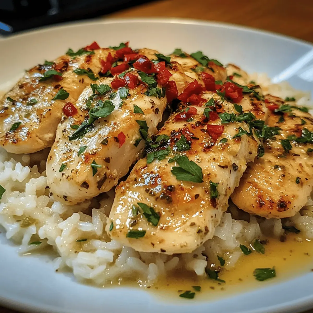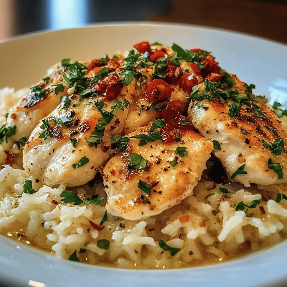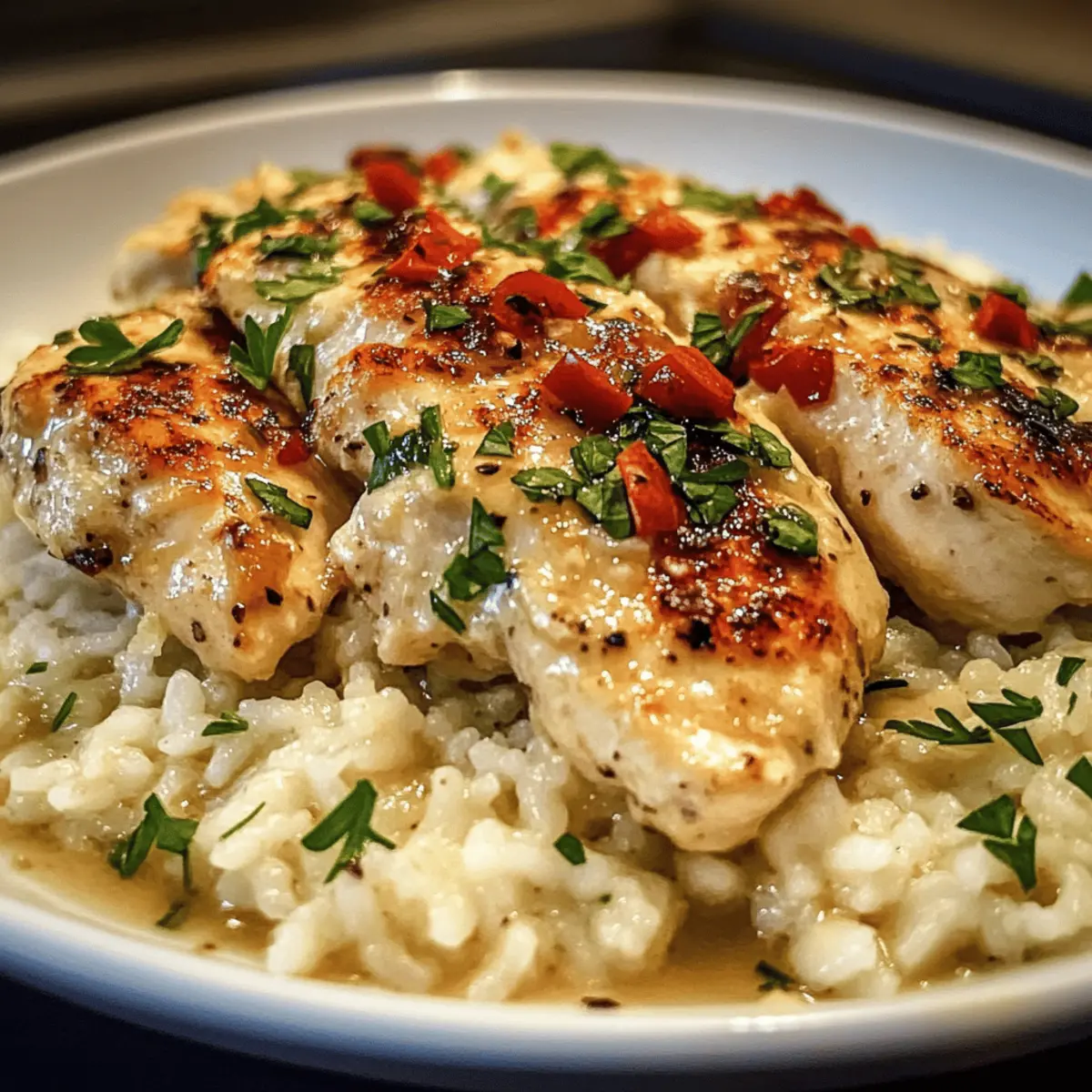 Es war ein hektischer Wochentag, und der Gedanke an schnelles Essen ließ mich frösteln. Ich sehnte mich nach etwas, das zugleich einfach und köstlich war. Genau in diesem Moment hatte ich die Eingebung, eine meiner Lieblingskreationen zuzubereiten: Chicken Scampi mit cremigem Knoblauch-Parmesan-Reis. Diese Kombination sorgt nicht nur für ein geschmackliches Feuerwerk, sondern ist auch innerhalb einer Stunde auf dem Tisch – perfekt für die stressigen Abende, wenn die Zeit drängt. Die saftigen Hähnchenbruststücke in einer buttrigen Knoblauchsoße, begleitet von einem harmonischen, käsehaltigen Reis, machen dieses Gericht zu einem wahren Publikumsliebling. Wer würde da nicht gerne den Kochlöffel schwingen? Bist du bereit, deine Küchenkünste auf die nächste Stufe zu heben? Warum ist dieses Rezept besonders? Schnelligkeit: In weniger als einer Stunde zauberst du ein köstliches Gericht, perfekt für hektische Wochentage. Wohlschmeckende Kombination: Das zarte Hähnchen und der cremige Knoblauch-Parmesan-Reis harmonieren perfekt, was jeden Bissen zu einem Genuss macht. Beeindruckend einfach: Mit nur einigen wenigen Zutaten und einfachen Schritten wird dieses Rezept zum Hit in deiner Küche. Vielseitigkeit: Probiere es mit Garnelen oder serviere es über Pasta für eine zusätzliche Variation, die das Beste aus beiden Welten vereint. Beliebtheit: Dieses Gericht begeistert nicht nur dich, sondern auch deine Familie und Freunde – es ist das perfekte Rezept für ein gemeinsames Abendessen! Wenn du etwas Abwechslung suchst, schau dir auch unsere Herzhafte Minestrone Suppe oder die Zitronen Brownies an. Chicken Scampi Zutaten • Entdecke die unverzichtbaren Zutaten für ein köstliches Chicken Scampi mit cremigem Parmesanreis. Für das Hähnchen Hähnchenbrustfilets – Verwende zarte, hautlose Bruststücke für ein angenehmes Esserlebnis; Hühnchenschenkel sind eine saftigere Alternative. Olivenöl – Ideal zum Braten des Hähnchens und sorgt für eine goldene Kruste. Salz und Pfeffer – Essentielle Gewürze, um dem Hähnchen Geschmack zu verleihen. Paprika – Fügt dem Hähnchen eine subtile Wärme und Farbe hinzu. Für die Scampi-Soße Butter – Macht die Soße reichhaltig und cremig. Knoblauch – Der Hauptaromat, der das Gericht geschmacklich hebt; frischer Knoblauch ist am besten. Hühnerbrühe – Fügt Tiefe und Geschmack hinzu, sowohl zur Soße als auch zum Reis. Zitronensaft und -schale – Hellt das Gericht mit einer frisch-zitronigen Note auf. Gefrorene Petersilie – Für frische Farbe und einen Hauch von Frische. Rote Pfefferflocken (optional) – Für eine milde Schärfe, falls gewünscht. Für den Parmesanreis Weißer Reis – Die Basis für den cremigen Parmesanreis; Quinoa ist eine mögliche Variante. Parmesan-Käse – Sorgt für Cremigkeit und Umami im Reis; frisch gerieben ist ideal, um den vollen Geschmack zu entfalten. Hole dir eine Fellnase für Essen mit Herz – dieses Chicken Scampi Rezept ist die perfekte Kombination aus Geschmack und Einfachheit! Schritt-für-Schritt-Anleitungen für Chicken Scampi mit Parmesanreis Schritt 1: Hähnchen vorbereiten Würze die Hähnchenbrustfilets großzügig mit Salz, Pfeffer und Paprika. Erhitze in einer großen Pfanne bei mittlerer Hitze etwas Olivenöl. Brate die Hähnchenbrustfilets für 5–6 Minuten auf jeder Seite, bis sie goldbraun sind und eine Innentemperatur von 75 °C erreicht haben. Nimm die Hähnchenbrust aus der Pfanne und lege sie beiseite, während du die Soße zubereitest. Schritt 2: Scampi-Soße zubereiten Reduziere die Hitze in der gleichen Pfanne auf niedrig und füge die Butter und den fein gehackten Knoblauch hinzu. Brate den Knoblauch für etwa 1–2 Minuten, bis er duftet, aber nicht bräunt. Lösche die Pfanne mit Hühnerbrühe und Zitronensaft ab und lasse die Mischung für 3–4 Minuten köcheln, bis sie leicht eingedickt ist. Schritt 3: Hähnchen zurück in die Soße Gib die gebratenen Hähnchenbrustfilets zurück in die Pfanne und löffle die Soße über das Hähnchen. Lass das Ganze für weitere 2–3 Minuten simmern, damit sich die Aromen gut verbinden und das Hähnchen richtig durchziehen kann. Schritt 4: Knoblauch-Parmesan-Reis zubereiten In einem separaten Topf die Butter schmelzen und den gehackten Knoblauch anbraten. Füge den weißen Reis hinzu und röste ihn für etwa 1 Minute, bis er leicht goldbraun ist. Gieße die Hühnerbrühe dazu und bringe alles zum Kochen. Decke den Topf ab und lasse den Reis 15 Minuten köcheln, bis er weich ist und die Flüssigkeit aufgenommen hat. Schritt 5: Reis vollenden und servieren Rühre den Parmesan und die fein gehackte Petersilie in den gekochten Reis ein, bis er cremig wird. Zum Servieren platziere eine Portion des Knoblauch-Parmesan-Reis auf einem Teller, lege das Hähnchen darauf und übergieße es großzügig mit der Scampi-Soße. Garniere das Gericht bei Bedarf mit einem Hauch von roten Pfefferflocken für zusätzlichen Geschmack. Meal Prep für Chicken Scampi mit Knoblauch-Parmesan-Reis Dieses Chicken Scampi mit Knoblauch-Parmesan-Reis ist ideal für die Wochenplanung und spart dir wertvolle Zeit in der Küche! Du kannst die Hähnchenbrustfilets bis zu 24 Stunden im Voraus würzen und im Kühlschrank aufbewahren, um den Geschmack zu intensivieren. Ebenso lässt sich der Knoblauch-Parmesan-Reis bis zu 3 Tage im Voraus zubereiten: Koche ihn, kühle ihn ab und bewahre ihn in einem luftdichten Behälter auf. Wenn du bereit bist, das Gericht zu servieren, erwärme einfach den Reis in einem Topf und brate die marinierten Hähnchenbrustfilets wie im Rezept beschrieben an, um den gleichen köstlichen Geschmack zu garantieren. Achte darauf, den Reis vor dem Erwärmen mit etwas Brühe zu vermengen, damit er schön cremig bleibt. So genießt du ein schnelles und dennoch beeindruckendes Abendessen, das garantiert für Freude sorgt! Variationen & Substitutionen Erwecke dein Chicken Scampi mit diesen kreativen Ideen zum Leben! Meeresfrüchte: Ersetz