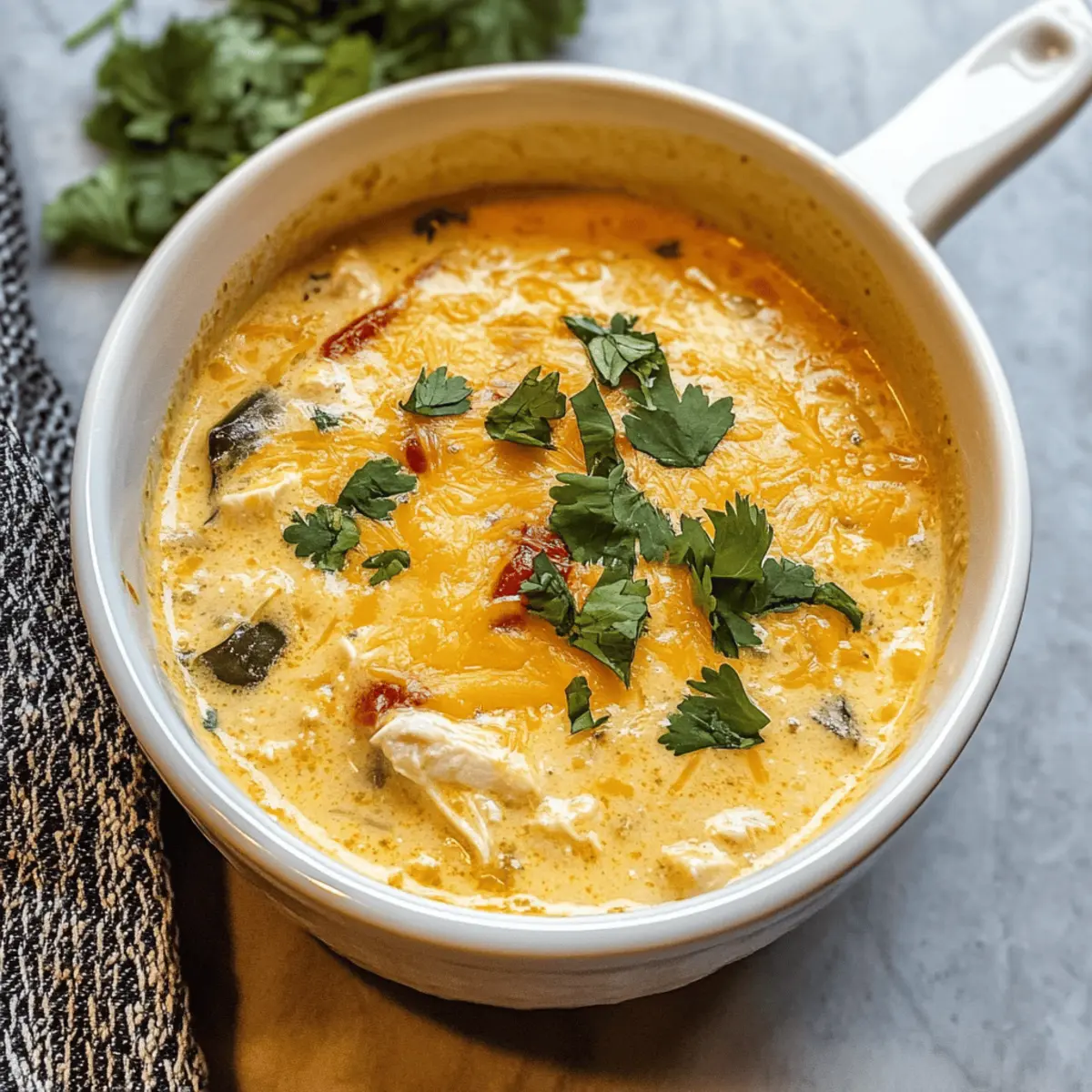 Während ich durch die bunten Märkte Mexikos schlenderte, wurde ich von den verführerischen Aromen gerösteter Poblano-Paprika und schmelzendem Käse in meiner Erinnerung gefangen. Diese Creamy Gluten-Free Chile Relleno Soup bringt genau diese herzlichen Gefühle in eine Schüssel. Mit zartem Hühnchen und dem rauchigen Geschmack der Paprika zaubert sie ein schnelles, sättigendes Gericht, das an kalten Tagen perfektes Wohlbefinden bietet. In nur 45 Minuten von der Vorbereitung bis zum Servieren ist diese Suppe nicht nur glutenfrei, sondern auch ein echter Genuss für alle, die familiäre Traditionen lieben. Welche geheimen Zutaten werden wir hinzufügen, um dieses Gericht noch unwiderstehlicher zu machen? Welche Geheimnisse steckt in dieser Suppe? Einfachheit: Diese cremige Suppe ist erstaunlich leicht zuzubereiten und benötigt lediglich grundlegende Kochkenntnisse. Reiche Aromen: Der Mix aus gerösteten Poblano-Paprika und geschmolzenem Käse schafft einen intensiven, herzhaften Geschmack, der die Herzen im Sturm erobert. Vielseitigkeit: Ob als sättigendes Hauptgericht oder als Vorspeise, diese Suppe passt perfekt zu verschiedenen Anlässen. Zeitersparnis: In nur 45 Minuten bringen Sie ein köstliches Mahl auf den Tisch – ideal für hektische Wochentage. Beliebtheit: Diese Suppe wird garantiert zum Hit bei Ihren Freunden und Familienangehörigen – ein echtes Wohlfühlessen, das alle begeistert! Gesunde Optionen: Denken Sie auch an eine vegetarische Variante, indem Sie einfach das Hühnchen durch schwarze Bohnen ersetzen und Potsticker Suppe Gemuse als weiteren leckeren Vorschlag dazu servieren. Chile Relleno Suppe Zutaten Hinweis: Diese Zutatenliste ist für eine herzhafte und cremige Chile Relleno Suppe gedacht. Für die Brühe Poblano-Paprika – Gibt ein rauchiges Aroma; sie können auch Anaheim-Paprika für einen milderen Geschmack verwenden. Butter – Sorgt für Reichtum und Geschmack; kann durch Olivenöl für eine milchfreie Option ersetzt werden. Olivenöl – Für das Sautieren verwendet und trägt zum Gesamtgeschmack bei; kann durch andere Kochöle ersetzt werden, wenn nötig. Süße Zwiebel – Fügt Süße und Tiefe zur Suppe hinzu; kann durch gelbe Zwiebel ersetzt werden. Knoblauch – Verstärkt die herzhaften Noten; frischer, gehackter Knoblauch wird empfohlen, aber Knoblauchpulver kann im Notfall verwendet werden. Kreuzkümmel – Wirkt geschmacklich warm und erdig; kein Ersatz vorhanden, aber Sie können ihn weglassen, um eine mildere Suppe zu erhalten. Wenig Natrium Hühnerbrühe – Grundlage für die Suppe; verwenden Sie Gemüsebrühe für eine vegetarische Version. Salz – Hebt die Aromen hervor; nach Geschmack anpassen. Pfeffer – Fügt eine milde Würze hinzu; frisch gemahlener schwarzer Pfeffer ist bevorzugt. Gekochte Hühnerbrust – Dient als Proteinquelle und macht die Suppe sättigend; kann weggelassen oder durch schwarze Bohnen für eine vegetarische Option ersetzt werden. Für die cremige Konsistenz Frischkäse – Verleiht der Suppe eine cremige Textur; kann durch Cashewcreme für eine milchfreie Option ersetzt werden, wobei der Geschmack leicht verändert werden kann. Cheddar-Käse – Bietet einen scharfen Geschmack; verwenden Sie eine milchfreie Käsesorte als Ersatz. Pepper Jack Käse – Fügt Gewürze und Cremigkeit hinzu; kann durch Monterey Jack für weniger Schärfe ersetzt werden. Für die Garnitur Frischer Koriander – Zur Garnierung; bringt Frische. Optional, je nach Geschmack. Schritt-für-Schritt-Anleitung für Cremige Chile Relleno Suppe Step 1: Paprika rösten Reinigen Sie die Poblano-Paprika und rösten Sie sie entweder unter einem Grill oder über einer offenen Flamme, bis die Haut etwa 10 Minuten lang schwarz ist und Blasen wirft. Legen Sie die gerösteten Paprika in einen Plastikbeutel, um sie kurz zu dämpfen und abzukühlen. Danach schälen Sie die Haut ab und hacken die Paprika in kleine Stücke. Step 2: Aromaten anbraten Erhitzen Sie in einem mittleren Topf bei mittlerer Hitze Butter und Olivenöl zusammen. Fügen Sie die gewürfelte süße Zwiebel hinzu und sautieren Sie sie 3 Minuten lang, bis sie weich und durchscheinend ist. Geben Sie den gehackten Knoblauch und den Kreuzkümmel dazu und kochen Sie alles, bis es duftet – das dauert etwa 20 Sekunden. Step 3: Zutaten kombinieren Rühren Sie die gehackten Poblano-Paprika in den Topf und gießen Sie die Hühnerbrühe hinzu. Fügen Sie nach Belieben Salz und Pfeffer hinzu und bringen Sie die Mischung zum Kochen. Reduzieren Sie die Hitze und lassen Sie die Suppe für ca. 10 Minuten sanft köcheln, damit sich die Aromen gut entfalten können. Step 4: Hühnerfleisch hinzufügen In diesem Schritt rühren Sie das gekochte und in Stücke geschnittene Hühnerfleisch in die Suppe ein. Lassen Sie alles für weitere 5 Minuten köcheln, bis das Huhn durchgewärmt ist. Überprüfen Sie die Konsistenz, die nun cremiger werden sollte. Step 5: Käsesorten einarbeiten Fügen Sie den Frischkäse und 2 Tassen Cheddar-Käse zur Suppe hinzu. Rühren Sie gut um, bis die Käsesorten vollständig geschmolzen sind und die Suppe eine glatte, cremige Textur erreicht hat. Achten Sie darauf, die Hitze niedrig zu halten, damit der Käse nicht ansetzt. Step 6: Unter dem Grill fertigstellen Teilen Sie die Suppe gleichmäßig auf Schalen auf und streuen Sie den verbleibenden Cheddar und Pepper Jack Käse darüber. Stellen Sie die Schalen unter den Grill und lassen Sie sie so lange brodeln, bis der Käse geschmolzen und goldbraun ist. Achten Sie darauf, die Suppe dabei aufmerksam zu beobachten, um ein Verbrennen zu vermeiden. Step 7: Garnieren und servieren Fertig ist die cremige Chile Relleno Suppe! Geben Sie frischen, gehackten Koriander oben auf jede Schüssel, um einen frischen Akzent zu setzen. Die Suppe kann nun serviert werden, um Ihre Gäste zu begeistern. Vorbereitung für die cremige Chile Relleno Suppe Diese cremige Chile Relleno Suppe ist perfekt für die Vorbereitung im Voraus! Sie könne