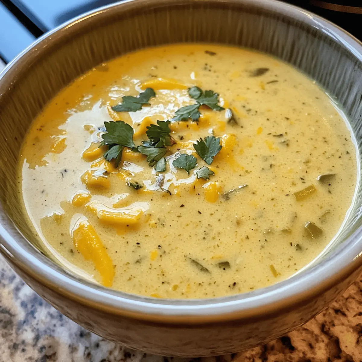 Eines Abends, als der kalte Wind unbarmherzig gegen die Fenster pfeift, kommt mir der Gedanke: Was könnte besser sein als eine wärmende, cremige Suppe? Diese Creamy Chile Relleno Soup aus dem Slow Cooker erfüllt nicht nur diesen Wunsch, sondern bringt auch die köstlichen Aromen von Chile Relleno ganz unkompliziert auf den Tisch. Mit zartem Hähnchen, gerösteten Poblano-Chilis und einer Mischung aus schmelzendem Käse wird sie zu einem perfekten Blitzgericht für verregnete Wochentage. In nur wenigen Minuten haben wir eine sättigende, herzliche Mahlzeit, die uns und unsere Liebsten umhüllt wie eine warme Umarmung. Neugierig, wie einfach sich dieser Genuss zaubern lässt? Warum wird diese Suppe Ihr Favorit? Einfache Zubereitung: Mit nur wenigen Handgriffen zaubern Sie eine herzhafte Suppe, die fast von alleine im Slow Cooker kocht. Vielseitigkeit: Ändern Sie die Zutaten nach Belieben – Ob mit zusätzlichem Gemüse oder einer anderen Käsesorte, wie Monterey Jack, hier sind Ihrer Kreativität keine Grenzen gesetzt! Herzhafter Geschmack: Die Kombination aus Hähnchen, gerösteten Poblano-Chilis und cremigem Käse sorgt für ein Geschmackserlebnis, das einfach glücklich macht. Perfekt für jede Gelegenheit: Ideal für ein schnelles Abendessen unter der Woche oder als gemütliches Essen für Gäste, diese Suppe wird alle begeistern. Einfache Lagerung: Reste können einfach im Kühlschrank aufbewahrt werden. Für eine gute Idee, probieren Sie auch unser Wuerzige Chinakohl Rinderhack als Beilage oder Scharfe Knoblauch Rindersteak! Chile Relleno Suppe Zutaten Für die Brühe Hühnerbrühe – Basisflüssigkeit, die Tiefe und Geschmack hinzufügt; für eine vegetarische Version einfach Gemüsebrühe verwenden. Mittlere weiße Zwiebel – Fügt aromatischen Geschmack hinzu; Gelbe Zwiebeln sind ebenfalls geeignet. Für die Hauptzutaten Große Poblano-Chilis – Bieten einen milden, rauchigen Geschmack; unverzichtbar für den authentischen Geschmack. Für eine mildere Option können Anaheim-Chilis verwendet werden. Frischkäse – Schafft eine cremige Textur und Reichtum; kann durch Neufchâtel-Käse für eine leichtere Variante ersetzt werden. Süßer Mais (1 Dose) – Verleiht Süße und Textur; gefrorener Mais kann ebenfalls verwendet werden. Hähnchenbrust (1,5 lbs) – Hauptproteinquelle, die durch zerkleinertes Röst-Hähnchen ersetzt werden kann, um Zeit zu sparen. Knoblauchpulver (1 TL) – Verstärkt den Geschmack; frischer Knoblauch kann für intensiveren Geschmack genutzt werden. Paprika (1 TL) – Fügt Rauchigkeit und Wärme hinzu; kann mit geräucherter Paprika für intensiveren Geschmack ersetzt werden. Salz (1 TL) & Pfeffer (1 TL) – Würzen nach Geschmack; nach Belieben anpassen. Maisstärke (2 EL) – Verdickt die Suppe; kann weggelassen werden, wenn eine dünnere Konsistenz gewünscht wird. Cheddar-Käse (4 Tassen, geteilt) – Schmilzt und fügt Cremigkeit und Geschmack hinzu; eine Mischung aus verschiedenen Käsesorten kann für abwechslungsreichen Geschmack verwendet werden. Schritt-für-Schritt-Anleitungen für cremige Chile Relleno Suppe im Slow Cooker Step 1: Zutaten kombinieren Geben Sie in den Slow Cooker die Hühnerbrühe, gewürfelte Zwiebel, gewürfelte Poblano-Chilis, gewürfelten Frischkäse, süßen Mais, Hähnchenbrust, Knoblauchpulver, Paprika, Salz und Pfeffer. Rühren Sie alles gut um, sodass sich die Zutaten gleichmäßig vermischen und eine aromatische Basis für die cremige Chile Relleno Suppe entsteht. Step 2: Kochen Setzen Sie den Deckel auf den Slow Cooker und stellen Sie ihn auf hohe Temperatur für 4 bis 6 Stunden oder auf niedrige Temperatur für 6 bis 8 Stunden. Während der Garzeit wird das Hähnchen zart und die Aromen verschmelzen, also nutzen Sie die Zeit, um die Vorfreude auf die köstliche Suppe wachsen zu lassen. Step 3: Hähnchen zubereiten Nach Ablauf der Garzeit nehmen Sie das Hähnchen aus dem Slow Cooker. Zerkleinern oder schneiden Sie das Hähnchen in kleine Stücke, damit es sich gleichmäßig in die cremige Chile Relleno Suppe einfügt. Geben Sie das Hähnchen zurück in die Suppe und rühren Sie alles gründlich um, um die zarte Textur des Hähnchens zu bewahren. Step 4: Suppe pürieren Nehmen Sie etwa 2 Tassen der Suppe in eine separate Schüssel und pürieren Sie sie mit einem Stabmixer, bis eine glatte Konsistenz erreicht ist. Dieser Schritt sorgt dafür, dass die cremige Chile Relleno Suppe eine wunderbar gleichmäßige Textur erhält und alle Aromen zu einer köstlichen Mischung verschmelzen. Step 5: Eindicken Mischen Sie die Maisstärke in die pürierte Suppe und geben Sie diese dann zurück in den Slow Cooker. Dies verleiht der Suppe die gewünschte Dicke und Cremigkeit. Rühren Sie gut um, damit die Maisstärke gleichmäßig verteilt wird und keine Klumpen entstehen, während die Suppe weiter kocht. Step 6: Käse hinzufügen Fügen Sie schrittweise 3 Tassen des geriebenen Cheddar-Käses hinzu, jeweils eine Tasse auf einmal, und rühren Sie kräftig um, bis jede Portion geschmolzen und gut in die cremige Chile Relleno Suppe integriert ist. Achten Sie darauf, dass der Käse gleichmäßig schmilzt und die Suppe eine köstliche, cremige Konsistenz erhält. Step 7: Servieren Servieren Sie die cremige Chile Relleno Suppe heiß und garnieren Sie sie nach Belieben mit zusätzlichem Käse. Genießen Sie diese herzhafte, wärmende Suppe, die perfekt für eine gemütliche Mahlzeit an kalten Tagen ist. Expert Tips für cremige Chile Relleno Suppe Chilis vorbereiten: Entfernen Sie die Rippen von den Poblano-Chilis vor dem Würfeln, um Bitterkeit zu vermeiden und den vollen Geschmack zu erhalten. Käse schmelzen: Kochen Sie die Suppe auf hoher Stufe, um sicherzustellen, dass der Frischkäse vollständig schmilzt und eine cremige Textur entsteht. Reste clever lagern: Bewahren Sie übrig gebliebene Suppe in portionierten Behältern auf, um sie die ganze Woche über schnell wieder aufwärmen zu können. Variationen & Alternativen Egal,