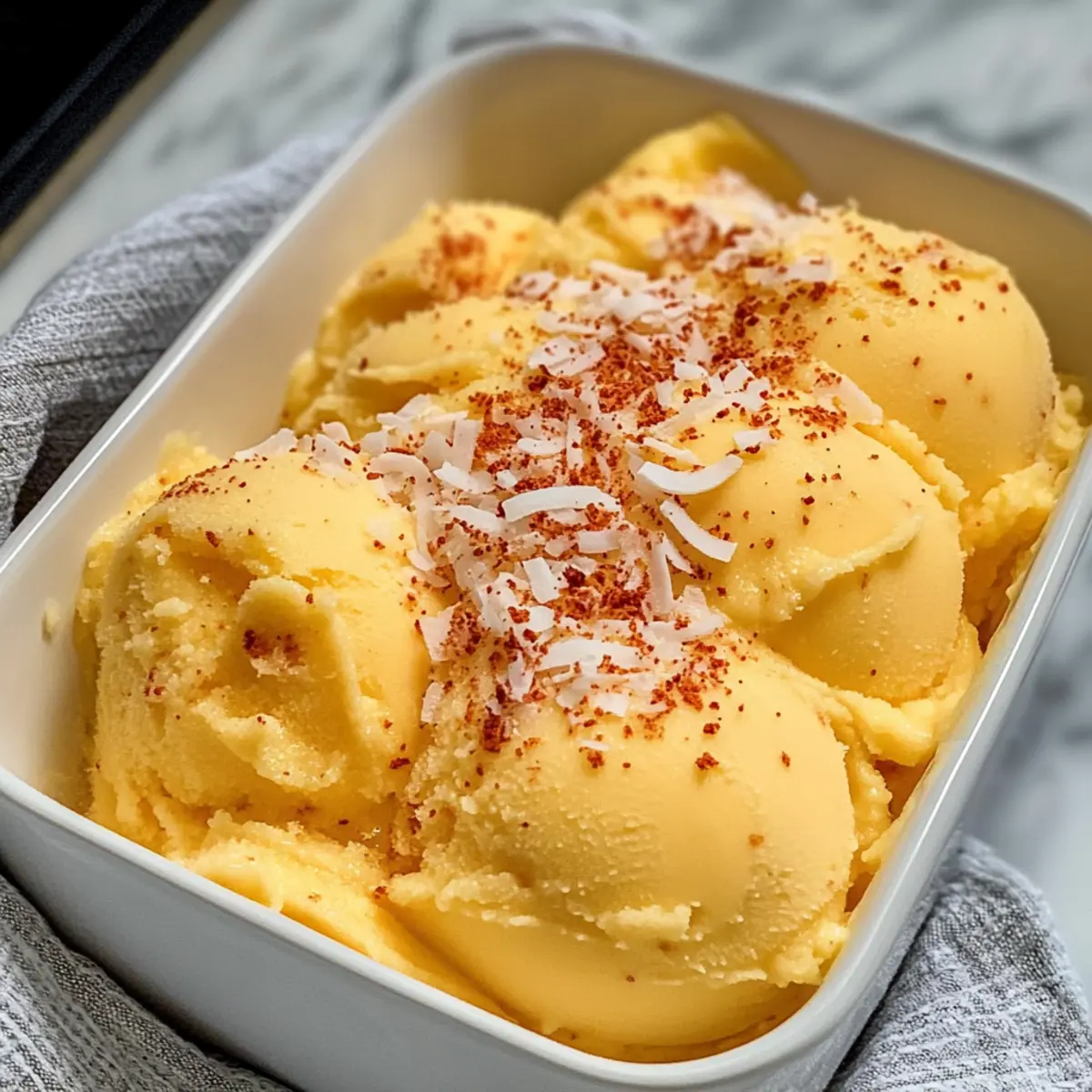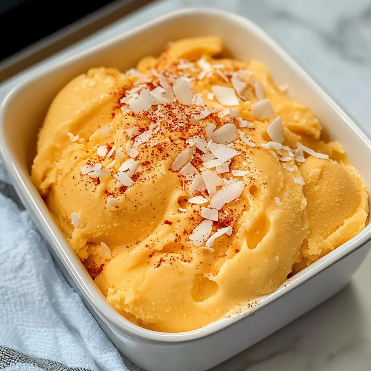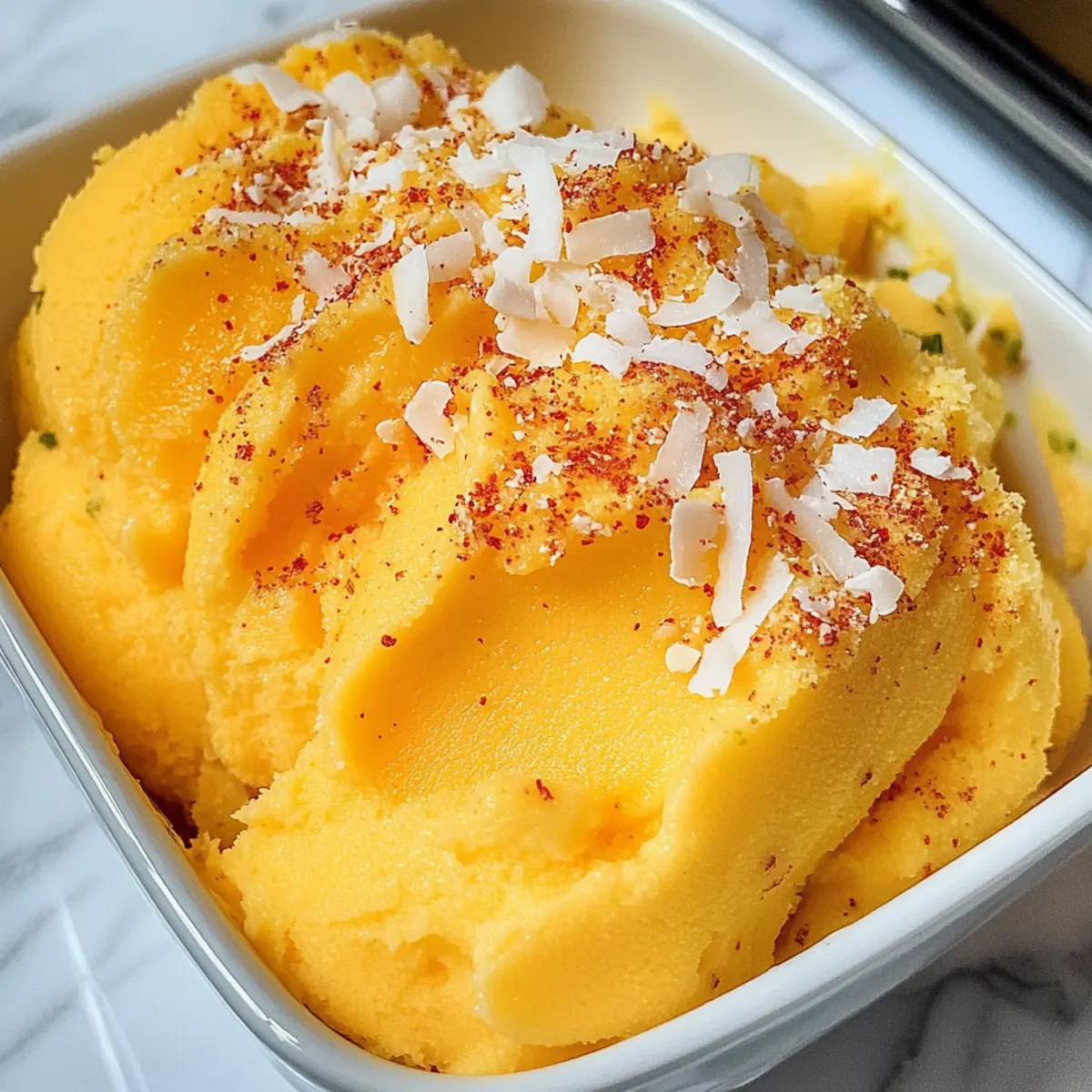 Wenn die Sommersonne auf meine Haut scheint, sehne ich mich nach einer erfrischenden Abkühlung, die sowohl süß als auch gewürzt ist. Heute teile ich mit euch mein Lieblingsrezept für ein cremiges Chili Limetten Mango Sorbet, das alle diese Wünsche erfüllt. Dieses vegane Dessert kombiniert den intensiven Geschmack reifer Mangos mit der spritzigen Frische von Limetten und einem Hauch von Chili, was es zu einem perfekten Begleiter an heißen Tagen macht. Was ich besonders liebe, ist, wie schnell es zubereitet ist – in nur zehn Minuten könnt ihr euch und euren Lieben eine köstliche Erfrischung gönnen. Und das Beste daran? Es ist nicht nur einfach und schnell gemacht, sondern auch eine gesunde und kalorienarme Alternative zu traditionellen Eiscremes. Neugierig, wie ihr dieses erfrischende Vergnügen zu Hause zaubern könnt? Lasst uns gleich damit beginnen! Warum ist dieses Sorbet so besonders? Einzigartig: Das Chili Limetten Mango Sorbet vereint unerwartete Aromen und bietet eine aufregende Geschmackskombination, die eure Sinne belebt. Einfache Zubereitung: In nur zehn Minuten könnt ihr euch dieses vegane, erfrischende Dessert zaubern – perfekt für heiße Sommertage! Gesund und leicht: Kalorienarm und reich an Vitaminen, ist es eine hervorragende Alternative zu schweren Eisdesserts. Vielfältig: Möchtet ihr das Rezept anpassen? Probiert andere Früchte wie Ananas oder Pfirsich aus! Und wenn ihr nach weiteren köstlichen Rezepten sucht, empfehle ich euch das Zitronen Brownies Rezept oder die Frischkäse Brownies Rezept. Chili Limetten Mango Sorbet Zutaten Für die Basis Gefrorene Mango – liefert die Hauptsüße und fruchtigen Geschmack; verwendet frische Mangos für natürliche Süße und friert sie nach dem Schneiden ein. Limettenschale – bringt aromatische Frische ins Spiel und verstärkt das Geschmackserlebnis. Limettensaft – sorgt für die nötige Säure und Balance; frisch gepresst ist am besten. Kokosmilch – sorgt für die cremige Textur; empfiehlt sich die Vollfett-Variante aus der Dose für mehr Reichtum. Kann durch jede pflanzliche Sahne ersetzt werden. Ahornsirup – wirkt als natürlicher Süßstoff; optional, wenn sehr reife Mangos verwendet werden. Chilipulver – fügt eine sanfte Schärfe hinzu; die Menge je nach persönlicher Vorliebe anpassen. Optional für ein milderes Sorbet. Dieses Rezept für Chili Limetten Mango Sorbet ist nicht nur einfach und schnell zubereitet, sondern bietet auch eine gesunde, erfrischende Köstlichkeit für heiße Sommertage! Schritt-für-Schritt-Anleitung für Chili Limetten Mango Sorbet Step 1: Metallform vorbereiten Stellt eine Metallkastenform in den Gefrierschrank, während ihr mit der Zubereitung des Sorbets beginnt. Diese kühle Form hilft, das Chili Limetten Mango Sorbet schnell einzufrieren, sodass es eine perfekte Konsistenz bekommt. Step 2: Zutaten mixen In einem Hochleistungsmixer oder einer Küchenmaschine fügt ihr die gefrorene Mango, die Limettenschale, den Limettensaft, die Kokosmilch, den Ahornsirup und das Chilipulver hinzu. Mixen, bis die Mischung vollkommen glatt und cremig ist; dies sollte etwa 2 bis 3 Minuten dauern. Bei Bedarf die Seiten des Mixers abkratzen, um eine gleichmäßige Konsistenz zu erreichen. Step 3: Mischung abfüllen Die fertige Mischung in die vorgekühlte Metallform umfüllen. Gleichmäßig verteilen, sodass die Oberfläche glatt ist. Für die beste Textur sollte man darauf achten, dass die Mischung nicht überläuft. Anschließend die Form mit Aluminiumfolie abdecken, um das Sorbet vor Frostgeschmack zu schützen. Step 4: Gefrieren Lässt das Sorbet mindestens 4 Stunden oder bis es fest ist im Gefrierfach. Um sicherzustellen, dass das Chili Limetten Mango Sorbet die gewünschte Konsistenz erreicht, könnt ihr nach 4 Stunden testen, ob es fest genug ist, um serviert zu werden. Step 5: Servieren Vor dem Servieren für einige Minuten bei Raumtemperatur stehen lassen, damit das Sorbet leicht auftaut. Dies erleichtert das Portionieren. Mit Kokosflocken und zusätzlichem Chili Limetten-Würzmittel für einen besonderen Touch garnieren und sofort genießen. Aufbewahrungstipps für Chili Limetten Mango Sorbet Gefrierfach: Lagert das Sorbet im Gefrierfach für bis zu 1 Monat. Achtet darauf, es luftdicht zu verpacken oder gut abzudecken, um Gefrierbrand zu vermeiden. Raumtemperatur: Vor dem Servieren lasst das Sorbet etwa 5 Minuten bei Raumtemperatur stehen, um das Portionieren zu erleichtern und die cremige Konsistenz wiederherzustellen. Wiedererwärmen: Für ein noch besseres Erlebnis könnt ihr das Sorbet in einer Kühlbox transportieren, wenn ihr es bei einem Picknick oder BBQ genießen möchtet; einfach im gefrorenen Zustand transportieren. Geruchs- und Geschmacksschutz: Stellt sicher, dass das Chili Limetten Mango Sorbet nicht nah an stark riechenden Lebensmitteln im Gefrierfach steht, da es sonst Geschmack annehmen kann. Was passt gut zu Chili Limetten Mango Sorbet? Erleben Sie, wie dieses erfrischende Dessert Ihre Geschmacksknospen verzaubert und Ihr Sommeressen perfekt ergänzt. Cremige Kokosnussmilch: Die samtige Konsistenz der Kokosnussmilch harmoniert wunderbar mit dem Sorbet und verstärkt die tropische Frische. Servieren Sie es als kleine Beigabe zur Garnierung! Frische Minze: Ein Hauch von frischer Minze bringt nicht nur eine lebendige Farbe, sondern auch eine knackige Kühle, die jede Portion noch erfrischender macht. Ideal als dekorative und geschmackliche Ergänzung. Mango-Stücke: Frische, gewürfelte Mangos unterstützen den fruchtigen Geschmack des Sorbets und sorgen für eine köstliche Textur. Diese Kombination bringt mehr Frische und eine bunte Präsentation auf den Tisch. Krusten aus gebrannte Mandeln: Diese knusprige Süßigkeit bildet einen perfekten Kontrast zum weichen Sorbet. Der würzige Geschmack der Mandeln ergänzt die scharfen und süßen Noten des Desserts ideal. Tropische Beeren: Servieren Sie das Sorbet mit einer Auswahl an Beeren wie Himbeeren und Erdbeer