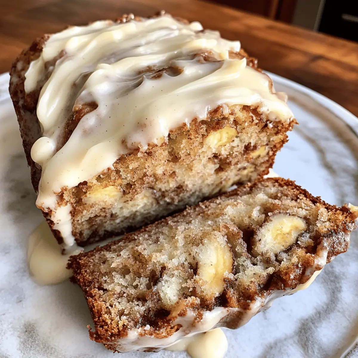 Wusstest du, dass man mit überreifen Bananen nicht nur einen einfachen Bananenbrot-Klassiker backen kann, sondern auch ein verführerisches Cinnamon Roll Banana Bread kreiert? Diese Kombination aus saftigem Bananenbrot und den unwiderstehlichen Aromen von Zimtrollen katapultiert dein Frühstück oder Dessert auf ein neues Level. Mit seiner zarten Krume und süßen Zimtwirbel ist dieses Rezept nicht nur leicht zuzubereiten, es ist auch vegan und glutenfrei umwandelbar – ideal für alle, die einen gesunden Genuss möchten. Aber das Beste daran? Es hält sich wunderbar frisch und ist perfekt zum Ausprobieren deiner eigenen kreativen Ideen. Welche leckeren Zutaten würdest du hinzufügen? Warum wirst du dieses Rezept lieben? Einfachheit: Die Zubereitung ist kinderleicht und benötigt nur grundlegende Backfähigkeiten. Verführerischer Geschmack: Die Kombination aus Zimt und süßen Bananen sorgt für ein Geschmackserlebnis, das man nicht so schnell vergisst. Vielseitigkeit: Dieses Rezept lässt sich nach Belieben anpassen. Du kannst es vegan oder glutenfrei zubereiten und sogar Zutaten wie Schokoladenstückchen oder Nüsse hinzufügen, um deinem Bananenbrot eine persönliche Note zu geben. Frische: Das Cinnamon Roll Banana Bread bleibt mehrere Tage frisch und ist ideal für ein schnelles Frühstück oder als süßer Snack. Crowd-Pleaser: Egal, ob du Gäste erwartest oder einfach nur dein eigenes Bedürfnis nach etwas Leckerem stillen möchtest, dieses Gericht wird alle begeistern! Für weitere köstliche Ideen, wie die Frischkäse Roll Ups oder das Käse Bananenbrot Rezept, schau dir unsere anderen Rezepte an! Cinnamon Roll Bananenbrot Zutaten • Diese Zutatenliste wird dir helfen, das perfekte Cinnamon Roll Banana Bread zu kreieren! Für den Teig Überreife Bananen – Sie verleihen dem Brot natürliche Süße und Feuchtigkeit; am besten verwendest du sie, wenn sie sehr reif sind. Geschmolzene vegane Butter – Sorgt für einen reichhaltigen Geschmack und Feuchtigkeit; kann durch normale Butter ersetzt werden, wenn du kein veganes Rezept benötigst. Ahornsirup – Dient als natürlicher Süßstoff, der durch Agavensirup oder Honig (wenn nicht vegan) ersetzt werden kann. Ungesüßte Mandel- oder Hafermilch – Führt zu mehr Feuchtigkeit und bindet die Zutaten; alternativ kannst du jede pflanzliche oder normale Milch verwenden. Vanilleextrakt – Verstärkt den Geschmack des Brotes. Backpulver & Natron – Diese Treibmittel helfen dem Brot beim Aufgehen. Zimt – Gibt dem Brot seinen charakteristischen Geschmack und bringt die Aromen der Zimtrollen hervor. Salz – Balanciert die Süße und verbessert den Gesamtgeschmack. Allzweckmehl (normal oder glutenfrei) – Sorgt für die nötige Struktur; nutze eine glutenfreie Mischung, falls erforderlich. Große Haferflocken – Fügen dem Brot Inhalt und Textur hinzu; du kannst sie auch durch mehr Mehl ersetzen, wenn gewünscht. Hellbrauner Zucker – Wird für die Zimtschicht verwendet, um Süße und Feuchtigkeit zu bringen; kann durch Kokoszucker ersetzt werden. Für das Frischkäse-Frosting Veganer Frischkäse – Basiskomponente für ein cremig-wirksames Topping. Puderzucker – Sorgt für die süße Note im Frosting. Geschmolzene vegane Butter – Verleiht dem Frosting eine köstliche Cremigkeit und macht es lächerlich lecker! Das perfekte Cinnamon Roll Banana Bread ist einfach zuzubereiten und kann nach Belieben variiert werden, um deinen ganz persönlichen Geschmack zu treffen. Schritt-für-Schritt-Anleitung für das Cinnamon Roll Bananenbrot Step 1: Ofen vorheizen Heize den Ofen auf 190°C vor und fette eine 9×5 Zoll große Metall-Laibform gut ein. Diese Temperatur sorgt dafür, dass dein Cinnamon Roll Banana Bread schön gleichmäßig bäckt und eine goldene Kruste erhält. Ein gut gefettetes Blech verhindert, dass das Brot kleben bleibt und leicht herausgenommen werden kann. Step 2: Bananenmasse zubereiten In einer großen Schüssel zermatsche die überreifen Bananen mit einer Gabel, bis sie eine glatte Konsistenz haben. Füge die geschmolzene vegane Butter, den Ahornsirup, die pflanzliche Milch, Vanilleextrakt, Zimt, Backpulver, Natron und Salz hinzu. Vermische alles gut, bis der Teig schön cremig ist und alle Zutaten gut kombiniert sind. Step 3: Teig vollenden Rühre das Allzweckmehl und die Haferflocken in die Bananenmischung, bis ein homogener Teig entsteht. Dieser Schritt gibt deinem Cinnamon Roll Banana Bread Struktur und Textur. Achte darauf, nicht zu lange zu mischen, um die Zähigkeit zu vermeiden. Die Mischung sollte gut verbunden, aber nicht zu glatt sein. Step 4: Zimtschicht vorbereiten Gieße die Hälfte des Teigs in die vorbereitete Laibform. In einer kleinen Schüssel vermische die geschmolzene vegane Butter, den Hellbraunen Zucker und Zimt für die Zimtschicht. Löffle diese Mischung gleichmäßig über den Teig und ziehe mit einer Gabel vorsichtig spiralförmige Muster durch, um den Zimtwirbel zu erzeugen. Gieße anschließend den restlichen Teig darüber. Step 5: Backen Backe das Cinnamon Roll Banana Bread im vorgeheizten Ofen für 55 bis 60 Minuten. Es ist fertig, wenn die Oberseite goldbraun ist und ein Zahnstocher, der in die Mitte gesteckt wird, sauber herauskommt. Dies sorgt für das perfekte, feuchte Innere und einen tollen Geschmack. Step 6: Frosting zubereiten Bereite die Frischkäse-Frosting während das Brot bäckt vor. In einer Schüssel verrühre die geschmolzene vegane Butter, den Puderzucker und den veganen Frischkäse. Mixe alles gut, bis eine glatte und cremige Konsistenz erreicht ist. Dieses Frosting macht dein Cinnamon Roll Banana Bread besonders lecker und sorgt für den letzten Schliff. Step 7: Fertigstellen und servieren Lass das Cinnamon Roll Banana Bread nach dem Backen für einige Minuten in der Form abkühlen. Danach vorsichtig aus der Form nehmen und auf ein Kühlregal setzen. Träufle das cremige Frosting auf die noch warmen Scheiben. Dieses Zimtbrot ist warm am besten, also genieß es f