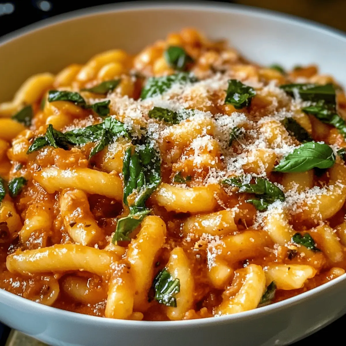 In einer geschäftigen Küche habe ich kürzlich eine köstliche Entdeckung gemacht: die Creamy Basil & Calabrian Chili Cavatelli. Diese Pasta vereint die Cremigkeit einer reichhaltigen Sauce mit der feurigen Note der Calabrian Chilis und ist in weniger als 30 Minuten zubereitet! Perfekt für hektische Wochentage oder ungeplante Dinnerpartys, bietet dieses Gericht nicht nur ein packendes Geschmackserlebnis, sondern lässt sich auch fantastisch an individuelle Vorlieben anpassen. Egal, ob Sie es schärfer mögen oder lieber eine mildere Variante bevorzugen, die Platz für Ihre Kreativität lässt, Sie werden sicher zu den Töpfen zurückkehren! Neugierig, wie Sie diese verführerische Pasta zubereiten können? Warum wird Ihnen dieses Rezept gefallen? Schnelle Zubereitung: In weniger als 30 Minuten zaubern Sie ein köstliches Gericht, das selbst an hektischen Tagen überzeugt. Vielseitigkeit: Passen Sie den Schärfegrad ganz nach Ihrem Geschmack an – für jeden ist etwas dabei! Cremige Textur: Die Kombination aus schwerer Sahne und Parmesan ergibt eine luxuriöse, samtige Sauce. Frischer Geschmack: Mit frischem Basilikum und aromatischem Knoblauch wird jede Gabel zu einem Geschmackserlebnis. Einfache Variationen: Ob mit Wurst, Hühnchen oder einer veganen Option, lassen Sie Ihrer Kreativität freien Lauf. Für weitere Rezeptideen können Sie sich auch Wuerzige Chinakohl Rinderhack oder Scharfe Knoblauch Rindersteak ansehen! Lassen Sie sich von der Geschmacksexplosion überraschen und fwalesen Sie diese einfache, aber kreative Pasta-Zubereitung! Cremige Basilikum Cavatelli Zutaten Für die Pasta • Cavatelli Pasta – Die Hauptzutat, die für Textur und Herzhaftigkeit sorgt; kann durch Fusilli oder Penne ersetzt werden. Für die Sauce • Olivenöl – Basis zum Anbraten des Knoblauchs für zusätzlichen Geschmack; kann durch Avocadoöl ersetzt werden. • Knoblauch (4 Zehen, gehackt) – Sorgt für ein aromatisches Geschmackserlebnis; frischer Knoblauch wird empfohlen. • Schlagsahne (1 Tasse) – Gibt der Sauce ihre cremige Textur; kann durch Kokoscreme für eine milchfreie Option ersetzt werden. • Parmesankäse (1 Tasse, gerieben) – Verleiht der Sauce Fülle und Tiefe; für eine vegane Alternative kann Nährhefe verwendet werden. • Frisches Basilikum (¼ Tasse, gehackt) – Verstärkt die Frische und aromatische Qualität; getrocknetes Basilikum kann verwendet werden, hat aber weniger lebhaften Geschmack. • Calabrian Chili Paste (2 Esslöffel, nach Geschmack anpassen) – Fügt einen feurigen Kick hinzu; für weniger Schärfe kann eine mildere Chilipaste verwendet oder ganz weggelassen werden. • Salz und Pfeffer – Grundwürzung; nach Geschmack anpassen. • Optional: Zusätzliche Basilikumblätter zum Garnieren; Chiliflocken für mehr Schärfe. Entdecken Sie die Freude dieser cremigen Basilikum Cavatelli, die sich schnell zubereiten lässt und sich perfekt an Ihre Vorlieben anpassen lässt! Step-by-Step Instructions for Cremige Basilikum Cavatelli mit Calabrian Chili Step 1: Pasta Kochen Bringen Sie einen großen Topf mit salzigem Wasser zum Kochen. Fügen Sie die Cavatelli-Pasta hinzu und kochen Sie sie nach Packungsanweisung, bis sie al dente sind (in der Regel etwa 8-10 Minuten). Stellen Sie sicher, dass die Pasta bissfest bleibt, und heben Sie eine Tasse des Kochwassers auf, bevor Sie die Pasta abgießen. Step 2: Sauce Vorbereiten Erhitzen Sie in einer großen Pfanne bei mittlerer Hitze 2 Esslöffel Olivenöl. Fügen Sie den gehackten Knoblauch hinzu und sautieren Sie ihn etwa 1 Minute lang, bis er aromatisch ist und sich leicht bräunlich färbt. Achten Sie darauf, den Knoblauch nicht zu verbrennen, da dies den Geschmack der Sauce beeinträchtigen kann. Step 3: Sahne Hinzufügen Senkten Sie die Hitze auf niedrig und gießen Sie eine Tasse schwere Sahne in die Pfanne mit dem Knoblauch. Rühren Sie gut um, bis die Sahne vollständig erwärmt ist und eine homogene Mischung entsteht. Lassen Sie die Sauce 2-3 Minuten köcheln, damit sie leicht eindickt und die Aromen sich verbinden. Step 4: Käse Integrieren Fügen Sie langsam den geriebenen Parmesan zur Sahnesauce hinzu, während Sie kontinuierlich rühren. Der Käse sollte schmelzen und eine cremige, glatte Konsistenz ergeben. Falls die Sauce zu dick wird, können Sie etwas von dem aufbewahrten Nudelwasser hinzufügen, um die gewünschte Cremigkeit zu erreichen. Step 5: Aromen Mischen Geben Sie nun das gehackte frische Basilikum und die Calabrian Chili Paste in die Sauce. Rühren Sie alles gut um, um die Gewürze gleichmäßig zu verteilen. Passen Sie den Schärfegrad nach Ihrem Geschmack an, indem Sie mehr oder weniger Chili Paste hinzufügen. Step 6: Kombinieren Fügen Sie die abgetropften Cavatelli direkt in die Pfanne mit der Sauce hinzu. Rühren Sie alles gut durch, sodass die Pasta gleichmäßig von der cremigen Sauce bedeckt wird. Wenn die Sauce zu dick ist, fügen Sie nach Bedarf etwas vom aufbewahrten Nudelwasser hinzu, um die richtige Konsistenz zu erreichen. Step 7: Abschmecken Probieren Sie die Pasta und passen Sie den Geschmack mit Salz und Pfeffer an. Achten Sie darauf, die Würze ausgewogen zu halten, damit die Aromen der Cremigen Basilikum Cavatelli optimal zur Geltung kommen. Step 8: Durchwärmen Erhöhen Sie die Hitze auf mittel und lassen Sie die Pasta und die Sauce für weitere 2-3 Minuten zusammen erwärmen. Rühren Sie zwischendurch um, damit nichts am Boden der Pfanne anbrennt. Die Pasta sollte heiß und gut durchgezogen sein. Step 9: Servieren Servieren Sie die Cremigen Basilikum Cavatelli sofort. Garnieren Sie die Portionen nach Belieben mit zusätzlichen frischen Basilikumblättern oder Chiliflocken für extra Schärfe. Genießen Sie die köstlich cremige und würzige Pasta! Lagerungstipps für Cremige Basilikum Cavatelli Kühlschrank: Bewahren Sie die Reste in einem luftdichten Behälter für bis zu 3 Tage auf. Stellen Sie sicher, dass die Reste gut abgekühlt sind, bevor Sie sie im Kühlschra