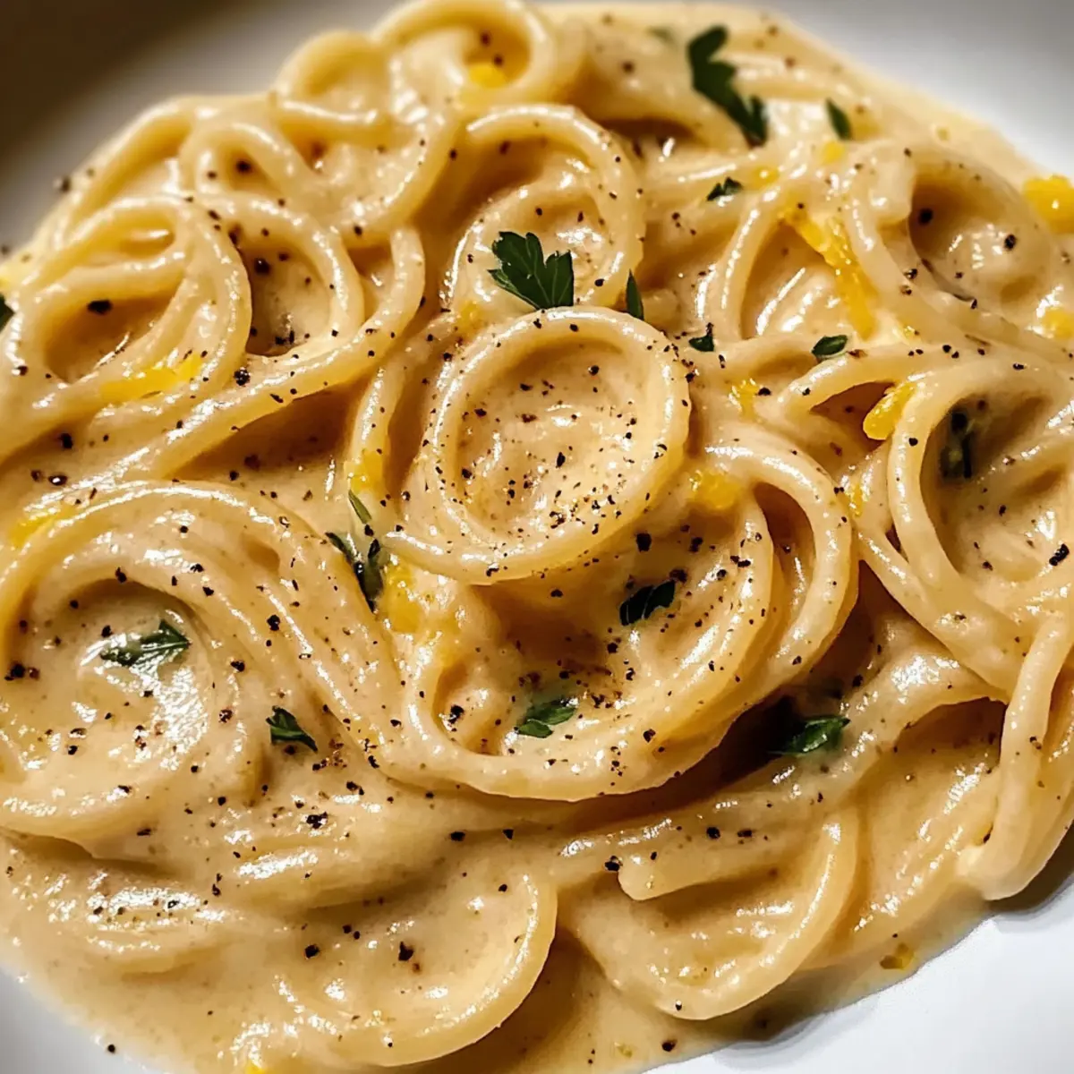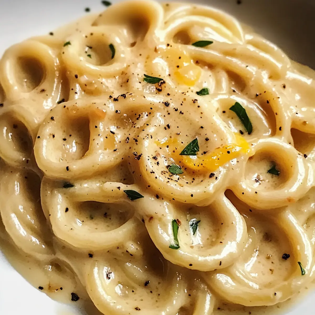 Hast du schon einmal den köstlichen Duft von geröstetem Knoblauch wahrgenommen, der aus deiner Küche strömt? Wenn ich ihn rieche, kann ich gar nicht anders, als an ein einfaches, aber außergewöhnliches Gericht zu denken: Cremige geröstete Knoblauch- und Zitronenpasta. Diese Sauce vereint die süße Note des Knoblauchs mit der spritzigen Frische der Zitrone und verwandelt selbst die simpelsten Pasta-Sorten in ein wahres Festmahl. Mit ihrer schnellen Zubereitung ist sie ideal für einen stressfreien Abend und sorgt immer für begeisterte Gesichter am Tisch. Bereite dich darauf vor, deinen Lieben ein unvergleichliches Geschmackserlebnis zu bieten – wirst du sofort welche nach dem Rezept fragen? Warum wirst du diese Pasta lieben? Einfachheit: Die Zubereitung ist unkompliziert und benötigt nur wenige Zutaten, was dir auch als wenig geübtem Koch viel Freude bereitet. Wunderbare Aromen: Die Kombination aus geröstetem Knoblauch und spritziger Zitrone sorgt für einen Geschmack, der deine Sinne verführt. Vielseitigkeit: Diese Sauce funktioniert hervorragend mit jeder Pasta-Art und kann sogar als Basis für aufwendigere Gerichte dienen. Zeitersparnis: In nur 30 Minuten kommt ein köstliches Dinner auf den Tisch, perfekt für hektische Abende. Beliebtheit: Ein Gericht, das sowohl Freunde als auch Familie immer wieder begeistert. Du kannst die Sauce auch mit Kräutern variieren, um neue Geschmäcker zu entdecken! Cremige geröstete Knoblauch- und Zitronenpasta Zutaten Für die Sauce: • Schlagsahne – sorgt für eine reichhaltige, cremige Textur; kann durch Milch oder eine leichtere Alternative ersetzt werden. • Gerösteter Knoblauch – verleiht süße und sanfte Aromen; frischer Knoblauch kann verwendet werden, verändert jedoch den Geschmack. • Olivenöl – verstärkt den Geschmack und hilft beim Sautieren; kann auch durch andere Pflanzenöle ersetzt werden. • Frisch gepresster Zitronensaft – bringt Spritzigkeit und Frische; Flaschen-Zitronensaft funktioniert, ist aber weniger aromatisch. • Zitronenschale – fügt ein intensives Aroma hinzu und verstärkt das Zitronenprofil; getrocknete Zitronenschale ist ein möglicher Ersatz. • Salz – balanciert die Aromen; nach Geschmack anpassen. • Schwarzer Pfeffer – sorgt für eine milde Schärfe; weißer Pfeffer kann für eine andere Geschmacksrichtung verwendet werden. • Parmesankäse – trägt zur Umami-Wirkung und Cremigkeit bei; Grana Padano oder Nährhefe können für eine milchfreie Variante verwendet werden. Für die Pasta: • Pasta (1 Pfund) – die Basis des Gerichts; jede Pastasorte (Spaghetti, Penne) eignet sich hervorragend. Für die Garnitur: • Frische Petersilie – fügt Farbe und Frische hinzu; kann durch Basilikum ersetzt oder ganz weggelassen werden. Genieße die Zubereitung dieser cremigen gerösteten Knoblauch- und Zitronenpasta, während du die köstlichen Aromen und die einfache Zubereitung entdeckst! Schritt-für-Schritt-Anleitung für Cremige geröstete Knoblauch- und Zitronenpasta Step 1: Knoblauch rösten Heize den Ofen auf 200 °C vor. Wickele die Knoblauchzehen in Aluminiumfolie und lege sie auf ein Backblech. Röste den Knoblauch für 30-35 Minuten, bis er goldbraun und weich ist. Lass ihn danach abkühlen und drücke die gerösteten Zehen in eine Schüssel, um die süßen Aromen freizusetzen. Step 2: Pasta kochen Bringe in einem großen Topf ausreichend gesalzenes Wasser zum Kochen. Füge die Pasta hinzu und koche sie gemäß der Packungsanweisung al dente. Bevor du die Pasta abgießt, reserviere eine Tasse des Nudelwassers, um die Sauce später zu verdünnen, falls nötig. Lasse die Pasta anschließend abtropfen und stelle sie beiseite. Step 3: Sauce zubereiten Erhitze in einem mittleren Kochtopf das Olivenöl bei mittlerer Temperatur. Füge den gerösteten Knoblauch hinzu und zerdrücke ihn leicht mit einer Gabel. Lasse die Mischung 2 Minuten anbraten, bis sie aromatisch ist. Die cremige Konsistenz der Sauce beginnt sich nun zu entwickeln, während der Knoblauch leicht bräunt. Step 4: Sahne hinzufügen Gieße die Schlagsahne in den Kochtopf und reduziere die Hitze auf niedrig, um ein Kochen zu verhindern. Rühre die Mischung sanft um und erwärme sie für 3-4 Minuten. Achte darauf, dass die Sahne nicht kocht, damit sie ihre cremige Textur behält. Step 5: Zitrone einarbeiten Füge den frisch gepressten Zitronensaft und die Zitronenschale zur Sauce hinzu. Würze die Mischung mit Salz und frisch gemahlenem schwarzem Pfeffer. Lasse die Sauce weitere 2 Minuten auf niedriger Hitze köcheln, um die Aromen der Zitrone vollständig zu entfalten. Step 6: Parmesan untermischen Streue nach und nach den geriebenen Parmesan in die Sauce und rühre gut um, bis er vollständig geschmolzen ist. Die cremige Konsistenz der Sauce wird jetzt durch den Käse intensiviert, was die cremige Knoblauch- und Zitronenpasta zu einem Genuss macht. Step 7: Pasta mit Sauce vermengen Gib die abgetropfte Pasta in den Kochtopf mit der Sauce. Vermische alles gut und passe die Konsistenz der Sauce an, indem du nach Bedarf etwas von dem reservierten Nudelwasser hinzufügst. Rühre, bis die Pasta gleichmäßig mit der cremigen Sauce überzogen ist, und achte darauf, dass alles gut miteinander verbunden ist. Step 8: Garnieren und servieren Verteile die cremige geröstete Knoblauch- und Zitronenpasta auf Tellern und garniere sie mit frisch gehackter Petersilie. Diese einfache Garnierung fügt sowohl Geschmack als auch Farbe hinzu und macht das Gericht noch appetitlicher. Serviere die Pasta sofort und genieße den reichen und ausgewogenen Geschmack dieser köstlichen Kreation! Cremige geröstete Knoblauch- und Zitronenpasta Variationen Bereite dich darauf vor, deinem Gericht eine persönliche Note zu verleihen und verschiedene Aromen zu entdecken. Lass deiner Kreativität freien Lauf! Cremig vegan: Verwende anstelle der Schlagsahne Cashewcreme für eine milchfreie Version, die ebenfalls reichhaltig und lecker ist. So erhält