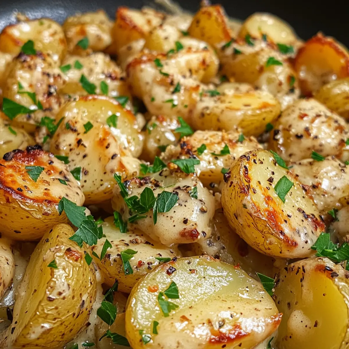 Nehme die Pfanne vom Herd und garniere die Cremige Knoblauchsauce Baby-Kartoffeln mit der gehackten frischen Petersilie. Überprüfe die Würze und passe sie nach Belieben an. Serviere das Gericht warm und genieße die cremige, aromatische Köstlichkeit als perfekte Beilage.
