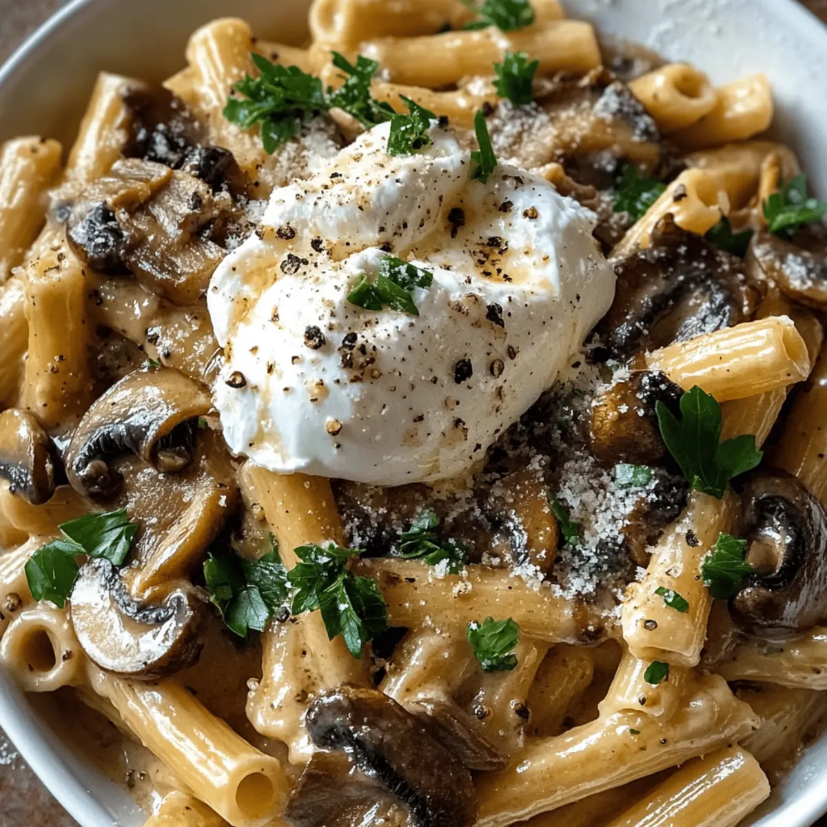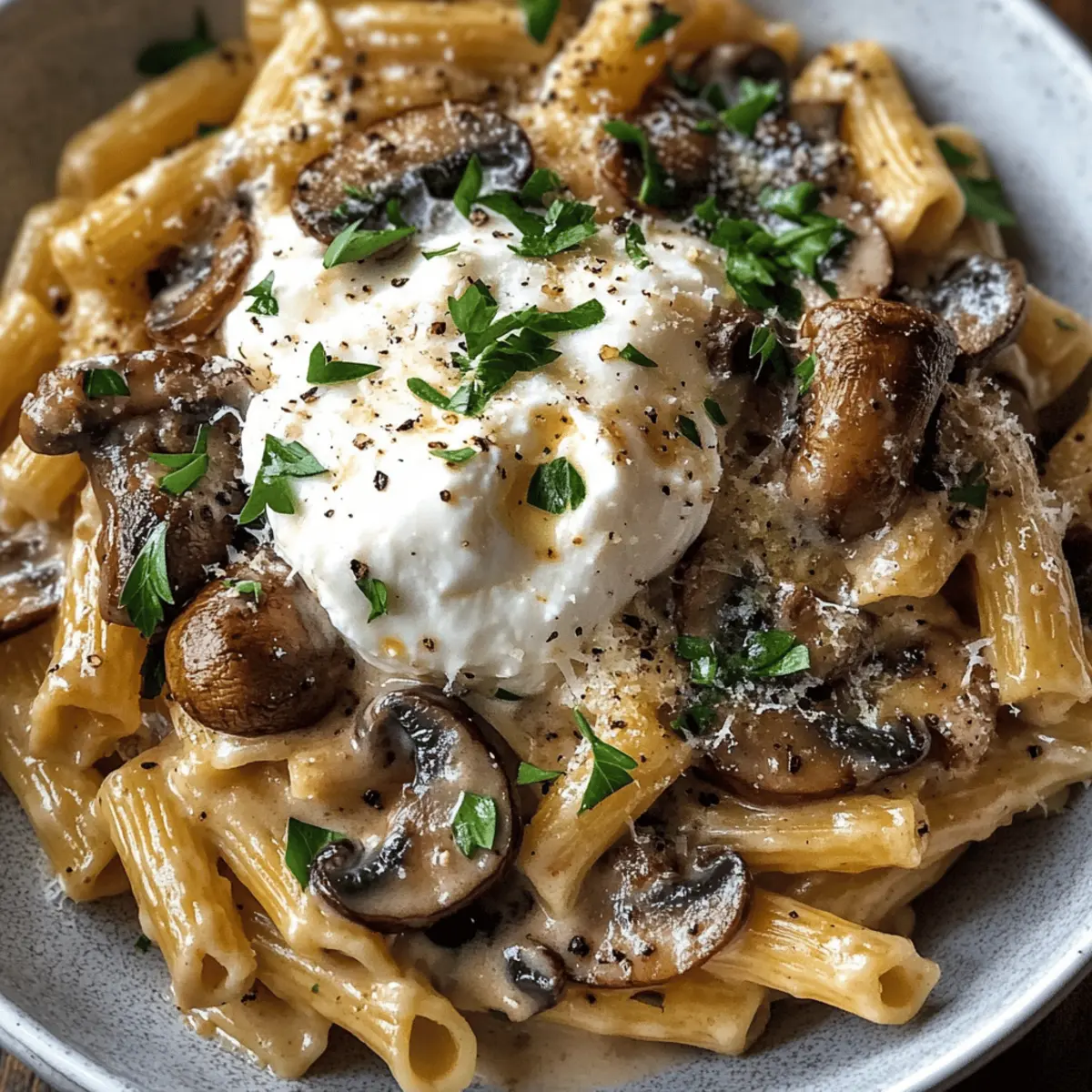 Ein leiser Duft von erdigen Pilzen zieht durch die Küche, während ich die Pfanne erhitze. Das ist der Moment, in dem ich weiß: Heute gibt es cremige Pasta mit Burrata. Diese köstliche Kombination aus perfekt angebratenen Champignons und sämiger Burrata wird alle Pasta-Liebhaber glücklich machen. Dieses Rezept ist nicht nur schnell zuzubereiten, sondern eignet sich auch hervorragend für stressige Wochentage oder um Gäste zu beeindrucken. Comfort Food trifft hier auf eine elegante Note, und je nach Lust und Laune kann ich die Zutaten variieren – verschiedene Pilze oder Käsesorten bieten immer neuen Spielraum für Kreativität. Wer kann da widerstehen? Welche Pilzvariationen würdest du in deine Version einbringen? Warum wirst du dieses Rezept lieben? Einfache Zubereitung: Dieses Rezept für cremige Pasta mit Pilzen benötigt nur eine Handvoll Zutaten und in weniger als 30 Minuten kannst du ein köstliches Gericht zaubern. Reicher Geschmack: Der harmonische Mix aus erdigen Pilzen und cremiger Burrata sorgt für ein umami-erlebnis, das jeden Gaumen begeistert. Vielseitigkeit: Ob du frische Shiitake oder zarte Austernpilze verwendest – die Variationen sind endlos! Du kannst auch mit verschiedenen Käsesorten experimentieren, um deine persönliche Note hinzuzufügen. Perfekt für stressige Tage: Ideal für ein schnelles Abendessen unter der Woche; es macht auch Eindruck, wenn du Gäste hast. Die Kombination aus Rustikalität und Gourmetflair sorgt für zufriedene Gesichter am Tisch. Einfache Lagerung: Reste? Kein Problem – sie lassen sich ganz einfach in einem luftdichten Behälter im Kühlschrank aufbewahren, sodass du auch am nächsten Tag genießen kannst. Entdecke auch unsere weiteren leckeren Rezepte wie die Herzhafte Minestrone Suppe oder die Zitronen Brownies Einfach. Zutaten für die Cremige Pasta mit Pilzen Für die Pasta: • Pasta – 1 Pfund (Fettuccine, Linguine, Penne oder Rigatoni) – Wähle deine bevorzugte Pastaform als Basis. Für die Sauce: • Gemischte Pilze – 1,5 Pfund (Cremini, Shiitake, Austernpilze) – Sie verleihen umami Geschmack und Textur; du kannst auch deine Lieblingspilze verwenden. • Knoblauch – 4 Zehen, gehackt – Frischer Knoblauch sorgt für ein intensives Aroma und Geschmack. • Schalotte – 1 mittelgroße, fein gehackt – Sie fügt Süße und Tiefe hinzu; Zwiebel kann als Ersatz verwendet werden. • Weißwein – ½ Tasse (Sauvignon Blanc oder Pinot Grigio) – Ideal zum Ablöschen und verstärkt die Geschmacksnuancen; Brühe kann als alkoholfreie Option genutzt werden. • Gemüsebrühe – 1 Tasse – Dient als flüssige Basis der Sauce; wähle natriumarme Brühe für mehr Kontrolle über die Würze. • Schlagsahne – ½ Tasse – Sorgt für Cremigkeit; verwende Halbfettmilch für eine leichtere Variante. • Frischer Thymian – 2 Zweige – Sorgt für ein aromatisches Element; getrockneter Thymian kann auch verwendet werden, hat aber weniger Duft. • Frische Petersilie – ¼ Tasse, gehackt – Perfekt zur Garnierung und für einen frischen Geschmack; Basilikum oder Schnittlauch sind mögliche Alternativen. • Burrata Käse – 8 Unzen (2 Bälle), Zimmertemperatur – Eine cremige Krönung; frische Mozzarella oder Ricotta können ebenfalls genutzt werden. • Olivenöl – 3 Esslöffel – Für das Anbraten der Pilze; verwende natives Olivenöl extra für mehr Geschmack. • Butter – 2 Esslöffel – Verstärkt den Reichtum des Gerichts; zusätzliches Olivenöl kann ebenfalls verwendet werden. • Geriebener Parmesan – ½ Tasse, plus mehr zum Servieren – Für den letzten Schliff und zusätzliche Geschmacksintensität; frisch geriebener Parmesan wird empfohlen. • Zitronensaft – 1 Esslöffel – Hellert die Aromen, frisch gepresster Zitronensaft ist bevorzugt. • Rote Paprikaflocken – ¼ Teelöffel (oder nach Geschmack) – Fügt eine gewisse Schärfe hinzu; nach persönlichem Schärfewunsch anpassen. • Salz und schwarzer Pfeffer – Nach Geschmack – Grundlegende Würzung für das Gericht. Entdecke die Kombination der Aromen und erlebe, wie die cremige Pasta mit Pilzen sowohl deinen Gaumen als auch dein Herz wärmt! Schritt-für-Schritt-Anleitung für die Cremige Pasta mit Pilzen Step 1: Pilze vorbereiten Reinige die Pilze vorsichtig mit einem feuchten Tuch und schneide sie in gleichmäßige Stücke. So bleibt der Geschmack intensiver. Stelle sicher, dass alle Pilze ungefähr gleich groß sind, damit sie gleichmäßig garen. Step 2: Aromaten anbraten Erhitze in einer großen Pfanne bei mittlerer Hitze 3 Esslöffel Olivenöl und 2 Esslöffel Butter. Füge die fein gehackte Schalotte hinzu und brate sie etwa 3 Minuten lang, bis sie weich ist. Gib dann die gehackten Knoblauchzehen und die roten Paprikaflocken dazu und brate sie noch 1-2 Minuten, bis sie duften. Step 3: Pilze braten Sobald die Aromaten duften, füge die vorbereiteten Pilze hinzu. Würze die Mischung mit Salz und Pfeffer. Brate die Pilze etwa 7-10 Minuten lang, bis sie goldbraun sind und ihre Feuchtigkeit abgegeben haben. Das gibt der cremigen Pasta mit Pilzen ein reichhaltiges Umami-Aroma. Step 4: Ablöschen Gieße ½ Tasse trockenen Weißwein in die Pfanne, schabe den Boden mit einem Holzlöffel ab, um die angebrannten Reste zu lösen. Lass die Mischung für etwa 2-3 Minuten leicht köcheln, bis der Wein reduziert ist und der Alkoholverdunstet. Step 5: Brühe und Thymian hinzufügen Nun füge 1 Tasse Gemüsebrühe und 2 Zweige frischen Thymian hinzu. Lasse die Sauce bei niedriger Hitze für etwa 5-7 Minuten köcheln, bis sie leicht eingedickt ist und aromatisch duftet. Diese Schritte verleihen der Sauce Tiefe und Geschmack, die deine Pasta perfekt ergänzen. Step 6: Sahne und Parmesan einrühren Reduziere die Hitze weiter und gieße ½ Tasse Schlagsahne und ½ Tasse frisch geriebenen Parmesan in die Pfanne. Rühre alles gründlich um, bis der Käse schmilzt und die Sauce cremig und glatt ist. Achte darauf, dass die Hitze nicht zu hoch ist, da