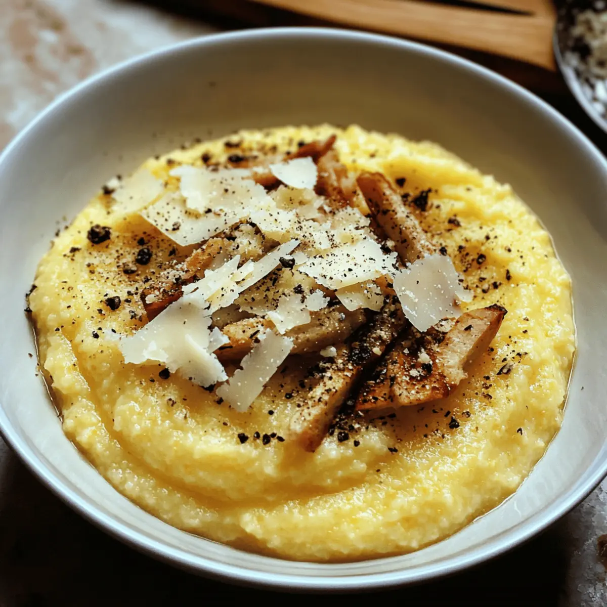 Die Idee, mit Polenta ein einfaches, aber köstliches Gericht zu zaubern, hat mich sofort fasziniert. Diese cremige Parmesan-Polenta ist der Inbegriff von Comfort Food und verwandelt einfaches Maismehl in etwas Wunderschönes. Mit nur wenigen Zutaten und minimalem Aufwand genießt du ein samtiges, reichhaltiges Gericht, das sowohl als Beilage als auch als Hauptgericht perfekt funktioniert. Das Beste daran ist, dass sie nicht nur unglaublich schmackhaft ist, sondern auch vielseitig einsetzbar – ideal für ein schnelles Abendessen oder als festlicher Begleiter zu deinem Lieblingsgericht. Bist du bereit, diese samtige Köstlichkeit auszuprobieren und deine Gäste zu begeistern? Warum wirst du dieses Rezept lieben? Einfachheit: Die Zubereitung ist unkompliziert und erfordert nur wenige Grundkenntnisse, sodass auch Kochanfänger große Erfolge erzielen können. Samtige Konsistenz: Die cremige Textur der Polenta verwöhnt deinen Gaumen und sorgt für ein rundum angenehmes Esserlebnis. Vielseitigkeit: Diese Polenta ist nicht nur als Beilage perfekt, sondern auch ein köstliches Hauptgericht. Probiere sie pur oder mit leckeren Variationen, wie Cremiges Thailaendisches Kokosnuss. Käse-Liebe: Die Kombination aus Pecorino und Parmigiano-Reggiano verleiht deinem Gericht ein unverwechselbares, herzhaftes Aroma, das sicher Eindruck hinterlässt. Schnell und einfach: In kürzester Zeit bereit, ist dieses Gericht ideal für stressfreie Abende oder überraschende Gäste. Kulturelle Wurzeln: Lass dich von der italienischen Tradition inspirieren und bring mit jedem Löffel ein Stück Italien auf deinen Teller. Cremige Parmesan-Polenta Zutaten Für die Polenta • Polenta – Verwende nicht sofort lösliche oder schnellkochende Varianten für die besten Ergebnisse. • Wasser – Dient als Kochmedium, um die Polenta zu hydratisieren und weich zu machen. Menge je nach gewünschter Konsistenz anpassen. • Koscheres Salz – Verstärkt den gesamten Geschmack; kann durch Meersalz ersetzt werden, falls gewünscht. Für die Cremigkeit • Ungesalzene Butter – Fügt reichhaltige Cremigkeit hinzu; kann für eine milchfreie Option durch Olivenöl ersetzt werden. • Pecorino-Romano Käse – Bietet einen scharfen, salzigen Geschmack. Verwende frisch geriebenen Käse für das beste Aroma. • Parmigiano-Reggiano Käse – Sorgt für Tiefe und Nussigkeit; achte auf hochwertige Käsesorten für authentischen Geschmack. • Frisch gemahlener schwarzer Pfeffer – Fügt aromatische Schärfe hinzu; Menge nach Geschmack anpassen. Die cremige Parmesan-Polenta ist ein einfaches und köstliches Gericht, das sich perfekt als Beilage oder Hauptgericht eignet. Schritt-für-Schritt-Anleitung für Cremige Parmesan-Polenta Schritt 1: Wasser zum Kochen bringen Fülle einen großen Topf mit 5 Tassen Wasser und füge 2 Teelöffel koscheres Salz hinzu. Stelle den Topf auf den Herd und bringe das Wasser zum kochen. Achte darauf, dass das Wasser sprudelnd kocht, bevor du mit dem nächsten Schritt fortfährst, da dies wichtig ist, um die Polenta gleichmäßig zu garen. Schritt 2: Polenta einrühren Sobald das Wasser kocht, reduziere die Hitze auf mittlere Stufe und rühre langsam die Polenta ein. Verwende einen Schneebesen, um Klumpen zu vermeiden, und rühre kontinuierlich für etwa 2-3 Minuten. Du wirst feststellen, dass die Mischung anfängt, dickflüssiger zu werden und Blasen wirft, was ein gutes Zeichen ist. Schritt 3: Polenta köcheln lassen Sobald die Polenta eingemischt ist, senke die Hitze auf niedrig und decke den Topf teilweise ab. Lass die Polenta für 40-45 Minuten köcheln, während du regelmäßig umrührst. Achte darauf, dass die Polenta schön cremig bleibt; wenn sie zu dick wird, füge nach Bedarf mehr Wasser hinzu, um die gewünschte Konsistenz zu erreichen. Schritt 4: Butter und Käse hinzufügen Nehme den Topf vom Herd, wenn die Polenta weich und fluffig ist. Rühre nun die ungesalzene Butter, den frisch geriebenen Pecorino-Romano und Parmigiano-Reggiano Käsesorten sowie den frisch gemahlenen schwarzen Pfeffer in die heiße Polenta ein. Whiskele die Mischung gut durch, bis die Zutaten vollständig eingearbeitet sind und eine cremige Konsistenz erreicht wird. Schritt 5: Anrichten und servieren Serviere die cremige Parmesan-Polenta sofort, damit sie warm und köstlich bleibt. Garniere sie nach Belieben mit zusätzlichem Käse und frisch gemahlenem Pfeffer. Diese Polenta ist nicht nur ein wunderbarer Begleiter zu Fleischgerichten, sondern schmeckt auch allein köstlich. Tipps für die beste Cremige Parmesan-Polenta Ständig rühren: Rühre während des Kochens ständig, um Klumpen zu vermeiden und eine gleichmäßige, cremige Konsistenz zu erreichen. Wasser anpassen: Wenn die Polenta zu dick wird, füge nach Bedarf mehr Wasser hinzu, um die gewünschte Cremigkeit zu erzielen. Hochwertiger Käse: Verwende hochwertig geriebenen Pecorino und Parmigiano-Reggiano für maximalen Geschmack bei deiner cremigen Parmesan-Polenta. Variationen ausprobieren: Experimentiere mit der Zugabe von geröstetem Knoblauch oder frischen Kräutern, um zusätzliche Aromen in die Polenta zu bringen. Resteverwertung: Lagere übrig gebliebene Polenta in einem luftdichten Behälter im Kühlschrank und wärme sie mit etwas Wasser oder Milch wieder auf, um sie cremig zu halten. Aufbewahrungstipps für cremige Parmesan-Polenta Kühlschrank: Bewahre übrig gebliebene Polenta in einem luftdichten Behälter im Kühlschrank auf und genieße sie innerhalb von 3 Tagen für die beste Frische. Gefrierschrank: Portioniere die restliche Polenta in einem gefrierfesten Behälter und friere sie ein, um sie bis zu 3 Monate lang haltbar zu machen. Wiedererwärmen: Zum Wiedererwärmen brich die gekühlte oder gefrorene Polenta in Stücke und erwärme sie in einem Topf mit etwas Wasser oder Milch, bis sie wieder cremig ist. Raumtemperatur: Lasse Polenta, die du gerade zubereitet hast, etwa 30 Minuten bei Raumtemperatur abkühlen, bevor du sie in den Kühlschran