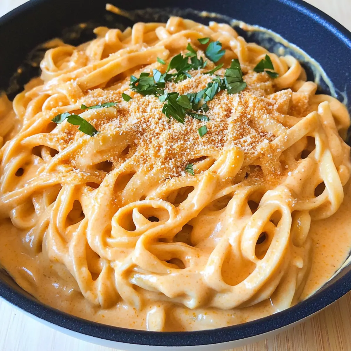 Die Sonne scheint durch das Fenster, während ich die letzte Flasche des Sommergeschmacks öffne: roter Paprika. Sofort erfüllt der süße und würzige Duft meine Küche und ich kriege Lust, mit meiner cremigen Rote-Pfeffer-Alfredo-Pasta zu experimentieren. Diese Sauce ist nicht nur eine köstliche Essenswahl, sondern auch blitzschnell zubereitet – perfekt für alle, die wenig Zeit haben aber dennoch auf Fleisch verzichten möchten. Glutenfrei und vegan, ist diese vegane Alfredo-Sauce eine gesunde Option, die es jedem ermöglicht, bewusster zu genießen. Sie eignet sich wunderbar für Pasta, Gemüse und sogar als Dip. Wer könnte da widerstehen? Neugierig auf die einfache Zubereitung und die vielen Variationen, die Sie ausprobieren können? Lassen Sie uns gleich loslegen! Warum wird Ihnen diese Sauce gefallen? Einfachheit: Die Zubereitung dieser cremigen Rote-Pfeffer-Alfredo-Pasta erfordert nur grundlegende Kochkenntnisse. Vielseitigkeit: Ob über Pasta, Gemüse oder als Dip – diese Sauce passt einfach überall! Reichhaltiger Geschmack: Die Kombination aus süßem Paprika und cremigen Nüssen sorgt für ein geschmackliches Erlebnis, das Sie lieben werden. Gesund: Diese vegane und glutenfreie Option ist nicht nur köstlich, sondern auch eine gesunde Wahl. Perfekt für eine bewusste Ernährung. Schnelle Zubereitung: Schaffen Sie ein leckeres Gericht in weniger als 10 Minuten – ideal für hektische Tage! Entdecken Sie auch unsere Nährstoffhinweise und erfahren Sie, wie Sie Reste ganz einfach aufbewahren können! Cremige Rote-Pfeffer-Alfredo-Pasta Zutaten • Diese Liste zeigt Ihnen alles, was Sie für Ihre köstliche cremige Rote-Pfeffer-Alfredo-Pasta benötigen! Für die Sauce • Roter Paprika – sorgt für einen frischen, süßen Geschmack und eine lebendige Farbe. Kann roh oder geröstet verwendet werden. • Wasser – hilft, die Sauce auf die gewünschte Konsistenz zu bringen. Passen Sie die Menge nach persönlichem Geschmack an. • Rohe Cashewkerne oder Macadamia-Nüsse – geben der Sauce eine cremige Textur und reichhaltigen Geschmack ohne Milchprodukte. Ersetzen Sie sie durch Nussbutter, wenn Sie eine nussfreie Variante wünschen. • Nährhefe oder Parmesan – fügt umami Geschmack hinzu. Verwenden Sie Nährhefe für eine vegane Option. • Salz – verstärkt den Gesamtschmack. Nach Bedarf anpassen. • Zwiebelpulver – verleiht der Sauce Tiefe und kann durch sautierte Schalotten oder geröstete Zwiebeln ersetzt werden. • Gemahlener Kurkuma – sorgt für eine schöne goldene Farbe und hat einen milden, erdigen Geschmack. • Gemahlene Muskatnuss (optional) – ein warmer Gewürz, der den Geschmack abrunden kann. Bei Bedarf weglassen. Entdecken Sie, wie diese cremige Rote-Pfeffer-Alfredo-Pasta zu Ihrem neuen Lieblingsrezept wird! Schritt-für-Schritt-Anleitung für Cremige Rote-Pfeffer-Alfredo-Pasta Step 1: Nüsse einweichen Zuerst sollten Sie die Cashewkerne oder Macadamia-Nüsse in einer Schüssel mit Wasser bedecken und für 6–8 Stunden einweichen lassen. Dies macht die Nüsse schön weich und erleichtert das Pürieren. Danach die Nüsse abgießen und mit einem Küchentuch abtrocknen, um überschüssige Feuchtigkeit zu entfernen. Step 2: Zutaten pürieren Geben Sie die eingeweichten Nüsse zusammen mit dem roten Paprika, ½ Tasse Wasser, Nährhefe oder Parmesan, Salz, Zwiebelpulver, Kurkuma und eventuell gemahlener Muskatnuss in einen leistungsstarken Mixer. Pürieren Sie alles auf hoher Stufe, bis die Mischung vollkommen glatt und cremig ist – dies dauert etwa 1–2 Minuten. Step 3: Pasta oder Gemüse kochen Während Sie die Sauce pürieren, bringen Sie in einem separaten Topf Wasser zum Kochen und fügen Sie Ihre gewünschte Pasta oder Gemüse hinzu. Kochen Sie diese entsprechend den Packungsanweisungen al dente. Wenn sie fertig sind, lassen Sie sie abtropfen, aber spülen Sie sie nicht ab, um die Stärkeresten zu erhalten, die der Sauce helfen, besser zu haften. Step 4: Sauce erhitzen Erhitzen Sie die pürierte Sauce in einem mittelgroßen Topf bei mittlerer Hitze. Rühren Sie gelegentlich um, damit sie nicht anbrennt. Die Sauce sollte warm werden und leicht köcheln, was etwa 3–5 Minuten dauern kann. Achten Sie darauf, die Sauce nicht zu lange zu erhitzen, damit sie ihre cremige Textur behält. Step 5: Kombinieren und servieren Wenn die Pasta oder das Gemüse gekocht und die Sauce erhitzt ist, geben Sie die abgetropfte Pasta in den Topf mit der Sauce. Rühren Sie alles gut um, bis die Pasta gleichmäßig mit der cremigen Rote-Pfeffer-Alfredo-Sauce bedeckt ist. Servieren Sie die Mischung sofort, garnieren Sie nach Belieben mit frischen Kräutern oder gerösteten Nüssen. Cremige Rote-Pfeffer-Alfredo-Pasta Variationen Entdecken Sie die Freude am Experimentieren und gestalten Sie Ihre Sauce ganz nach Ihrem Geschmack! Glutenfrei: Verwenden Sie glutenfreie Pasta, um die gesamte Mahlzeit glutenfrei und köstlich zu halten. Vegan: Durch Nährhefe statt Parmesan können Sie die Sauce leicht veganisieren, ohne auf Geschmack zu verzichten. Nussfrei: Ersetzen Sie die Nüsse durch eine halbe Tasse Kokoscreme, um eine ebenso cremige Textur zu erzielen. Würzige Note: Fügen Sie eine Prise Cayennepfeffer oder frisch gehackte Chilischoten hinzu, um der Sauce eine scharfe Note zu verleihen. Gemüse-Boost: Mischen Sie gedämpften Spinat oder grüne Erbsen unter die Pasta für zusätzliche Nährstoffe und Farbe. Pasta-Twist: Experimentieren Sie mit verschiedenen Pastaformen wie Quinoa-Pasta für einen gesunden Kick. Umami-Power: Geben Sie getrocknete Tomaten oder Oliven für einen intensiven Geschmack hinzu – der perfekte Umami-Kick! Frisch Kräuter: Frische Kräuter wie Basilikum oder Petersilie als Garnitur verleihen der Sauce eine aromatische Frische. Probieren Sie unsere leckeren Vorschläge aus und variieren Sie beliebig! Vergessen Sie nicht, auch Nährstoffhinweise zu beachten, die Ihnen helfen, gesunde Variationen zu entdecken! Was passt zur cremigen Rote-Pfeff