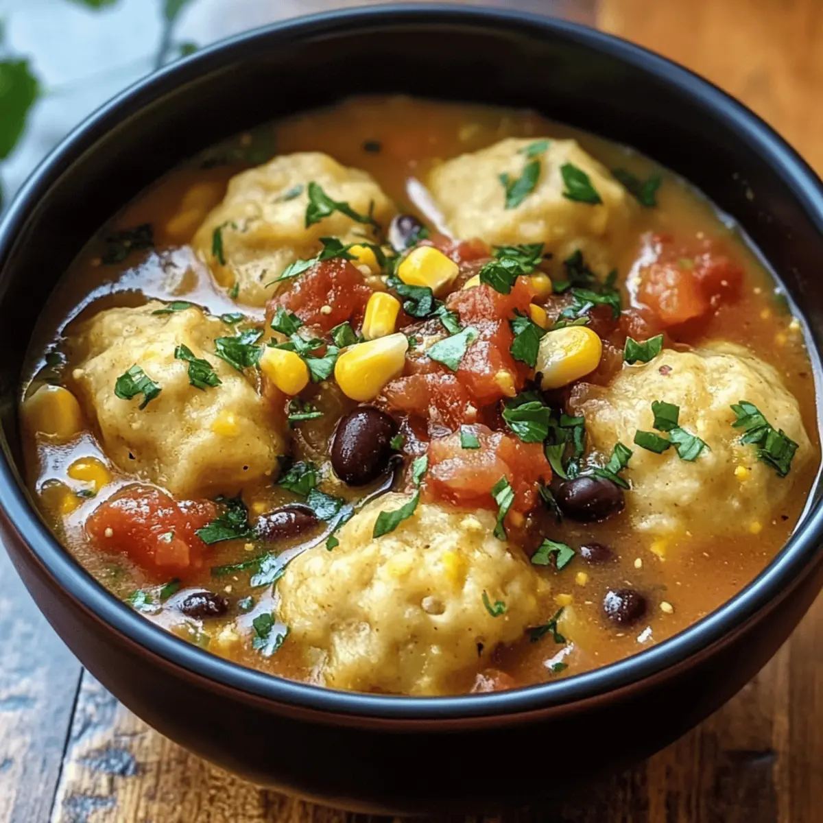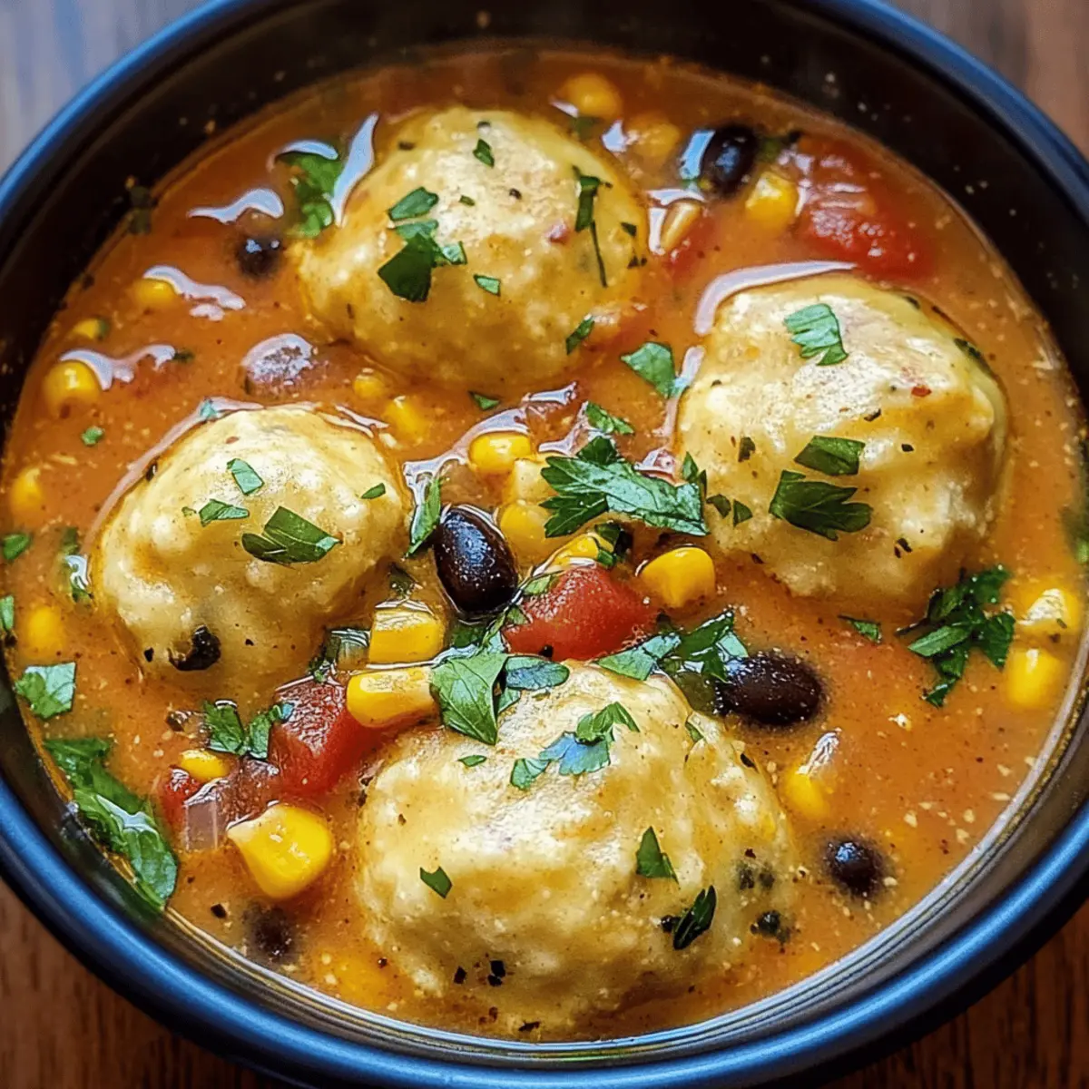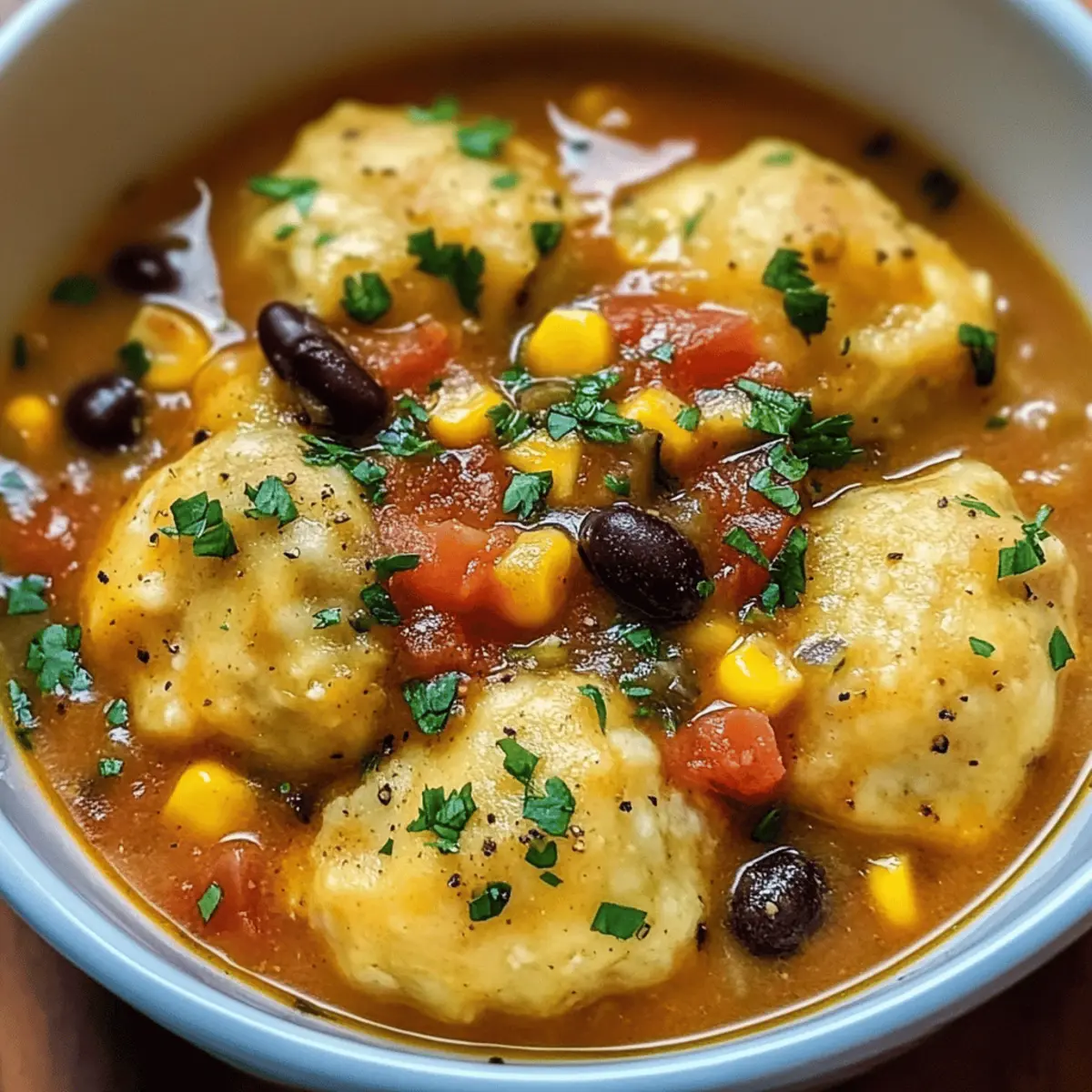 Die kühle Brise und die ersten Anzeichen des Herbstes wecken in mir das Verlangen nach etwas Herzhaftem und Wärmendem. Nichts bringt mich dabei mehr in Stimmung als eine cremige Tamale-Suppe mit fluffigen Tamale-Dumplings. Diese bunte und aromatische Suppe vereint die klassischen Geschmäcker mexikanischer Tamales und verwandelt sie in ein Seelenwärmer-Gericht, das perfekt für gesellige Abende oder schnelle Wochentage ist. Dank der einfachen Zubereitung und der Möglichkeit, sie vegetarisch zu halten, ist dieses Rezept nicht nur ein wahrer Genuss, sondern auch ideal für alle, die sich nach gesunder und selbstgemachter Kost sehnen. Bereit, euch bei eurem nächsten Kochabenteuer etwas Gutes zu tun? Lasst uns gemeinsam die Geheimnisse dieser köstlichen Suppe entdecken! Warum wird dir dieses Rezept gefallen? Wärme und Komfort: Diese cremige Tamale-Suppe ist wie eine Umarmung in einer Schüssel – perfekt für kalte Tage. Einfache Zubereitung: Mit nur wenigen Zutaten und klaren Schritten ist sie kinderleicht nachzukochen. Vielseitige Optionen: Du kannst sie nach Belieben vegetarisch halten oder mit Hähnchen verfeinern, ideal für jeden Geschmack. Schnell und nahrhaft: In unter 30 Minuten zubereitet, ist sie perfekt für hektische Abende, an denen du trotzdem etwas Gesundes genießen möchtest. Herzhafter Genuss: Die Kombination aus Gewürzen, frischem Gemüse und fluffigen Dumplings kommt garantiert bei deiner Familie und deinen Freunden gut an. Besuche auch unser Rezept für Spinatsalat mit Feta als frische Beilage! Cremige Tamale-Suppen-Zutaten • Diese Zutaten sorgen für ein unvergleichliches Geschmackserlebnis! Für die Suppe: Olivenöl – gibt der Suppe eine reiche Basis und hilft beim Sautieren der Gemüse. Zwiebel – die Grundlage für den Geschmack; gewürfelt und glasig sautiert. Knoblauch – verleiht das essentielle Aroma; fein gehackt für eine schnelle Verarbeitung. Tomaten aus der Dose (1 Dose, 425 g) – sorgt für Säure und einen herzhaften Grundgeschmack. Gemüsebrühe (4 Tassen) – bildet die Basis der Suppe; verwende kalorienreduzierte Brühe für eine gesündere Option. Schwarze Bohnen (1 Dose, 425 g) – liefern Protein und Ballaststoffe; gut abspülen und abtropfen lassen. Mais (1 Tasse) – bringt Süße und Textur; kann durch gefrorenen Mais ersetzt werden. Chilipulver (1 EL) – sorgt für eine milde Schärfe; nach Geschmack anpassbar. Kreuzkümmel (1 TL) – gibt einen warmen, erdigen Geschmack. Salz und Pfeffer – basierend auf einfache Gewürze zur Geschmacksverstärkung. Für die Dumplings: Maismehl (1 Tasse) – die Basis für die Dumplings, sorgt für eine angenehme Textur. Selbstaufziehendes Mehl (1 Tasse) – lässt die Dumplings aufgehen und fluffig werden. Milch (1 Tasse) – bindet die Dumpling-Mischung; auch pflanzliche Alternativen möglich. Pflanzenöl (2 EL) – sorgt für Feuchtigkeit und hilft beim Formen des Teigs. Knoblauchpulver (1/2 TL) – optional; verstärkt den Geschmack der Dumplings. Käse (1 Tasse, optional) – fügt den Dumplings zusätzliche Reichhaltigkeit hinzu; verwende deinen Lieblingskäse. Hinweis: Die Zutaten kombinieren sich hervorragend, um eine schmackhafte kreolische Tamalesuppe mit fluffigen Dumplings zu kreieren! Schritt-für-Schritt-Anleitung für Cremige Tamale Suppe mit Fluffigen Dumplings Step 1: Zwiebel und Knoblauch anbraten Erhitze in einem großen Topf 2 Esslöffel Olivenöl bei mittlerer Hitze. Füge die gewürfelte Zwiebel hinzu und dünste sie für etwa 3-5 Minuten, bis sie glasig ist. Gib dann den fein gehackten Knoblauch dazu und brate ihn für eine weitere Minute, bis er duftet. Diese Basis sorgt für den herzhaften Geschmack der cremigen Tamalesuppe. Step 2: Zutaten für die Suppe hinzufügen Rühre nun die Dose gewürfelte Tomaten, 4 Tassen Gemüsebrühe, die gut abgespülten und abgetropften schwarzen Bohnen, 1 Tasse Mais sowie 1 Esslöffel Chilipulver und 1 Teelöffel Kreuzkümmel in den Topf ein. Würze mit Salz und Pfeffer nach Geschmack und bringe die Mischung zum Kochen. Lasse die Suppe 10 Minuten lang bei schwacher Hitze köcheln, damit sich die Aromen gut vermischen. Step 3: Dumpling-Mischung vorbereiten In einer separaten Schüssel mische 1 Tasse Maismehl, 1 Tasse selbstaufziehendes Mehl, 1 Tasse Milch, 2 Esslöffel Pflanzenöl und 1/2 Teelöffel Knoblauchpulver, falls gewünscht. Rühre alle Zutaten gut zusammen, bis ein gleichmäßiger Teig entsteht. Wenn du Käse verwenden möchtest, füge 1 Tasse deines Lieblingskäses hinzu und arbeite ihn in den Teig ein. Step 4: Dumplings in die Suppe geben Löffle mit einem Esslöffel kleine Portionen des Dumpling-Teigs in die köchelnde Suppe. Decke den Topf ab und lasse die Dumplings für 10-12 Minuten dünsten. Die Dumplings sind fertig, wenn sie sich vergrößert haben und eine fluffige Konsistenz erreicht haben. Achte darauf, dass sie nicht zu eng beieinander liegen, um gleichmäßiges Garen zu gewährleisten. Step 5: Suppe servieren Sobald die Dumplings fluffig und gekocht sind, serviere die cremige Tamale Suppe in Schüsseln. Du kannst die Suppe nach Belieben mit frischen Kräutern oder weiteren Garnituren wie Avocadostücken oder Limettensaft garnieren. Genieße dieses herzliche Gericht, das perfekt für gesellige Abende ist! Meal Prep für die Cremige Tamale Suppe mit Fluffigen Dumplings Diese cremige Tamale-Suppe mit fluffigen Dumplings ist ideal für die Vorbereitung im Voraus und spart dir wertvolle Zeit während hektischer Tage! Du kannst die Suppe bis zu 3 Tage im Voraus zubereiten und im Kühlschrank aufbewahren, wobei du die Dumplings erst kurz vor dem Servieren hinzufügst, um ihre Fluffigkeit zu erhalten. Bereite die Gemüsebasis mit Zwiebeln, Knoblauch, Dosen-Tomaten und Brühe vor und lasse sie im Kühlschrank bis zu 72 Stunden ziehen. Am Tag des Servierens einfach die Suppe aufkochen und die vorbereiteten Dumplings 10-12 Minuten lang garen. Um die Qualität zu bewahren, achte darauf, die Dumplings nicht im Voraus zu kochen