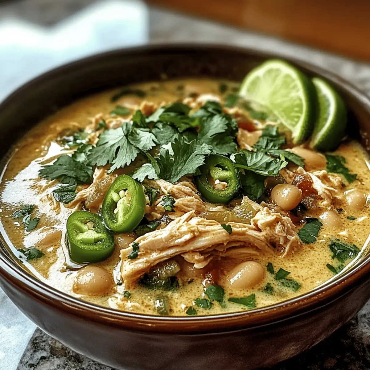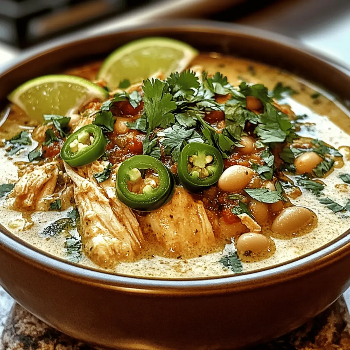 Dieses cremige Jalapeño-Hühnchen-Chili ist perfekt für kalte Tage und bietet anpassbare Schärfe für jeden Geschmack.