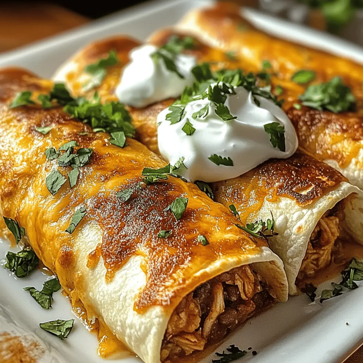 Eines Abends, als ich nach einem langen Arbeitstag nach Hause kam, fühlte ich mich nach etwas Herzhaftem und Knusprigem. In diesem Moment entstand die Idee für Crispy Baked Chicken Chimichangas – eine gelungene Abwandlung eines klassischen mexikanischen Gerichts. Diese knusprigen Köstlichkeiten sind nicht nur schnell zubereitet, sondern überzeugen auch durch eine cremige Füllung aus zartem Hähnchen und geschmackvollen Bohnen. Perfekt für stressige Wochentage oder als schmackhafte Überraschung für Gäste – sie stillen garantiert die Sehnsucht nach wohltuendem Comfort Food. Wer kann da schon widerstehen? Was hältst du von einem neuen Lieblingsrezept für deine nächste Mahlzeit? Warum wirst du dieses Rezept lieben? Einfachheit: Die Zubereitung ist denkbar einfach und erfordert nur grundlegende Kochkenntnisse. Knusprige Textur: Die Backmethode sorgt für eine herrlich knusprige Außenseite, die perfekt zu der cremigen Füllung passt. Vielseitigkeit: Du kannst die Füllung nach Belieben variieren – von herzhaftem Hähnchen bis hin zu vegetarischen Optionen! Schnelles Abendessen: Ideal für hektische Tage, denn sie sind in weniger als 30 Minuten fertig. Publikumsfavorit: Diese Chimichangas sind bei Familie und Freunden immer ein Hit – perfekt für jede Zusammenkunft! Crispy Baked Chicken Chimichangas Zutaten Für die Füllung: • Zerrissenes Hähnchen – die Basis der Füllung, die Protein und Geschmack bietet; verwende einen Grillhähnchen für Bequemlichkeit oder koche Hähnchenbrust. • Refried Beans – sorgt für Cremigkeit und Reichtum; wähle hausgemachte oder Dosennvarianten für einfache Zubereitung. • Geriebener Käse (Cheddar/mexikanische Mischung) – fügt Cremigkeit und Geschmack hinzu; wähle einen Käse, der gut schmilzt; fettärmere Optionen sind für eine leichtere Version möglich. • Salsa – bringt Feuchtigkeit und Geschmack in die Füllung; verwende deine Lieblingsmarke oder hausgemachte für frischeren Genuss. • Kreuzkümmel & Chili-Pulver – verstärkt die Gewürze mit erdigen und scharfen Noten; passe die Menge nach Geschmack an; diese Gewürze sind für das klassische Geschmacksprofil entscheidend. • Knoblauchpulver & Zwiebelpulver – verleihen der Füllung Tiefe; verwende frischen Knoblauch und Zwiebeln für mehr Frische, wenn gewünscht. • Salz & schwarzer Pfeffer – essenzielle Gewürze; nach Geschmack anpassen; probiere die Füllung, bevor du sie einwickelst. Für den Teig: • Mehltortillas – das Gefäß für die Füllung; verwende große Tortillas für das beste Falten. • Olivenöl – zum Bestreichen obenauf, sorgt für eine knusprige Kruste; ersetze es durch geschmolzene Butter, wenn gewünscht. Optionales Topping: • Sauerrahm, Guacamole, Salsa, Koriander – zur Garnierung; diese erfrischen das Servieren und steigern den Genuss. Die Crispy Baked Chicken Chimichangas sind eine köstliche Abwandlung, die Groß und Klein gleichermaßen erfreuen wird! Schritt-für-Schritt-Anleitung für Crispy Baked Chicken Chimichangas Step 1: Ofen vorheizen Heize den Ofen auf 220 °C (425 °F) vor und lege ein Backblech mit Backpapier aus. Diese Temperatur sorgt dafür, dass die Crispy Baked Chicken Chimichangas schön knusprig werden. Das Backpapier verhindert das Ankleben und erleichtert die Reinigung. Step 2: Füllung zubereiten Vermische in einer großen Schüssel das zerrissene Hähnchen, die Refried Beans, den geriebenen Käse, die Salsa und die Gewürze gründlich. Achte darauf, dass alles gleichmäßig vermengt ist. Diese Füllung wird das Herzstück deiner Chimichangas und sorgt für einen reichen, cremigen Geschmack. Step 3: Chimichangas zusammenstellen Erwärme die Tortillas in der Mikrowelle oder in einer Pfanne, damit sie geschmeidig sind. Lege eine Portion der Füllung in die Mitte jeder Tortilla, schlage die Seiten darüber und rolle sie von unten nach oben fest ein. Achte darauf, die Zutaten nicht zu überfüllen, um das Auslaufen zu vermeiden. Step 4: Für das Backen vorbereiten Platziere die gerollten Chimichangas mit der Naht nach unten auf dem Backblech. Bestreiche die Oberseite jedes Chimichangas leicht mit Olivenöl, um eine goldene, knusprige Kruste zu erhalten. Du kannst auch etwas Kochspray verwenden, um die Knusprigkeit zu verstärken. Step 5: Backen Schiebe das Backblech in den vorgeheizten Ofen und backe die Chimichangas für 20-25 Minuten. Drehe sie nach der Hälfte der Zeit um, damit sie gleichmäßig knusprig werden. Du weißt, dass sie fertig sind, wenn sie goldbraun sind und ein herrliches Aroma verströmen. Step 6: Servieren Lass die Crispy Baked Chicken Chimichangas einige Minuten abkühlen, bevor du sie servierst. Diese köstlichen Köstlichkeiten lassen sich hervorragend mit Sauerrahm, Guacamole oder Salsa garnieren. Genieße das herzhaft-knusprige Erlebnis direkt nach dem Backen! Variationen & Alternativen Die Möglichkeiten zur Anpassung dieses Rezepts sind endlos und laden ein, kreativ zu werden. Vegetarisch: Tausche das zerrissene Hähnchen gegen gegrilltes oder sautiertes Gemüse aus. Es bringt Farbe und Geschmack ins Gericht. Schärfer: Füge frische Jalapeños oder Chipotle-Pulver hinzu, um den Chimichangas eine würzige Note zu verleihen. Der zusätzliche Kick macht das Gericht spannend! Bohnenmix: Verwende anstelle von Refried Beans schwarze Bohnen oder eine Mischung aus verschiedenen Bohnensorten, um mehr Textur zu erhalten. Diese Vielfalt wird deine Geschmacksknospen erfreuen. Käsevariation: Experimentiere mit verschiedenen Käsesorten wie Queso Blanco oder Pepper Jack für eine cremige Füllung. Jeder Käse bringt seinen eigenen Charakter mit! Gesündere Tortillas: Nutze Vollkorn- oder Maistortillas für eine nährstoffreichere Option. Diese Alternativen sind nicht nur gesünder, sondern bieten auch einen köstlichen Geschmack. Crème fraîche: Ersetze den Sauerrahm durch frischere Crème fraîche, um einen zarten, samtigen Geschmack hinzuzufügen. Perfekt zum Dippen und Garnieren! Doppel