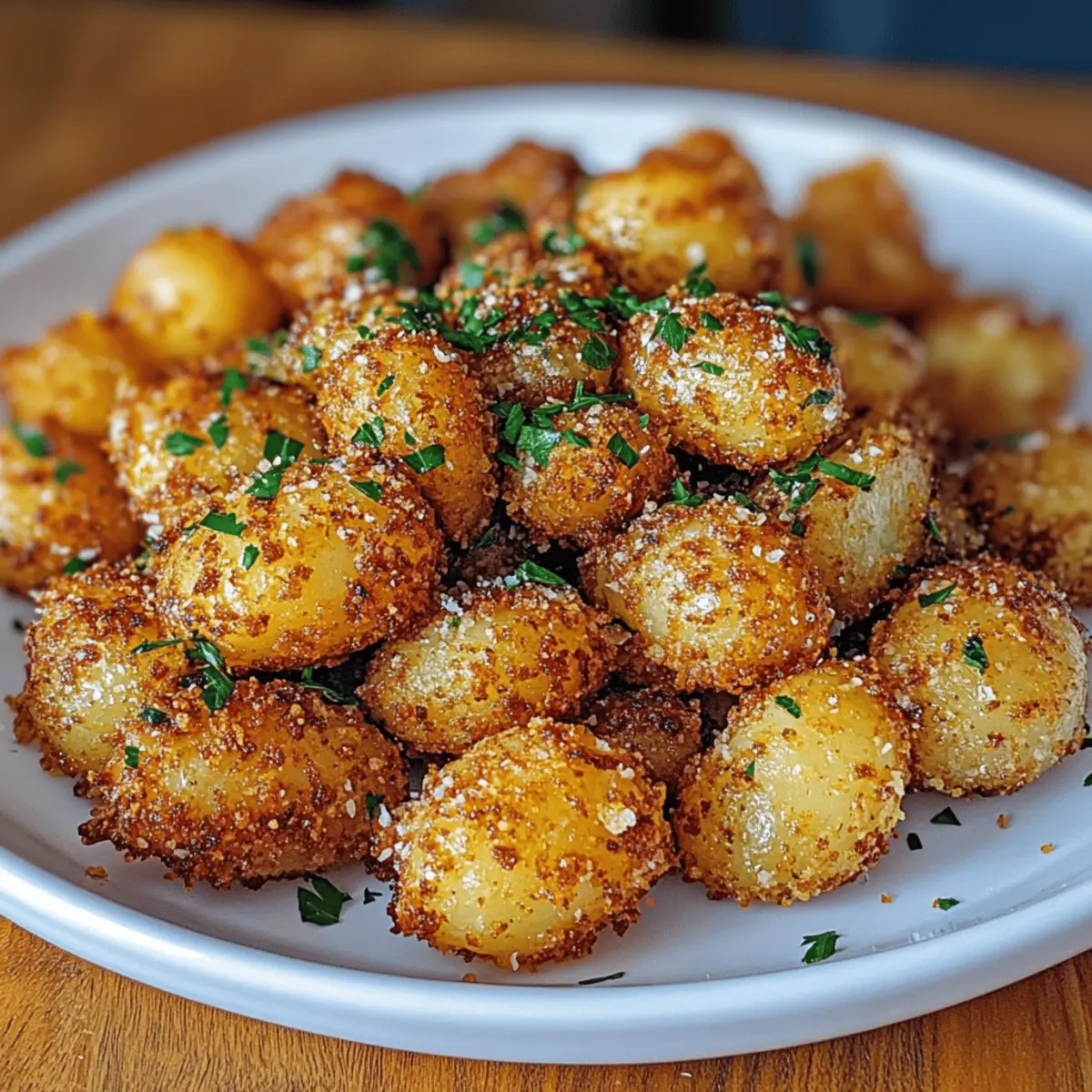 Es ist erstaunlich, wie aus einfachen Zutaten ein wahrer Genuss entstehen kann. Wenn ich die kleinen, goldenen Baby-Kartoffeln mit knusprig-frischem Parmesan überziehe, fühle ich mich wie ein Küchenzauberer. Dieses Rezept für die knusprig-parmesanisierten Baby-Kartoffeln ist nicht nur ein Blickfang auf dem Tisch, sondern auch ein echter Publikumsliebling – perfekt für ein gemütliches Abendessen oder einen feierlichen Anlass. In nur wenigen Schritten kreierst du eine herrliche Beilage, die glutenfrei ist und jeden begeistert. Versprochen, du wirst sie lieben! Wie könnten diese knusprigen Leckerbissen deine nächste Mahlzeit aufpeppen? Warum wirst du dieses Rezept lieben? Einfachheit, die begeistert: Die Zubereitung dieser knusprigen Parmesan-Kartoffeln ist unkompliziert und erfordert nur wenige Zutaten. Vielseitigkeit: Diese Beilage passt perfekt zu jedem Hauptgericht, sei es gegrilltes Fleisch oder ein frischer Salat. Köstlicher Geschmack: Die Kombination aus knusprigem Parmesan und zarten Kartoffeln sorgt für ein unvergleichliches Geschmackserlebnis. Schnelle Zubereitung: In nur etwa 30 Minuten kannst du diese Leckerei zaubern – perfekt für spontane Dinner-Entscheidungen! Gesund und glutenfrei: Sie sind nicht nur schmackhaft, sondern auch für viele diätetische Einschränkungen geeignet. Einfach unwiderstehlich! Probiere auch unser Rezept für Herzhafte Minestrone Suppe als passende Ergänzung zu deinem Abendessen! Crispy Parmesan Kartoffeln Zutaten Für die Kartoffeln • Baby-Kartoffeln – Die zarten kleinen Knollen bilden die perfekte Grundlage; größere Kartoffeln können ebenfalls verwendet und klein geschnitten werden. • Olivenöl – Sorgt für Geschmack und hilft, die gewünschte Knusprigkeit zu erreichen; alternativ kannst du auch Pflanzenöl verwenden. • Geriebener Parmesan – Verleiht den Kartoffeln den unverwechselbaren Geschmack und die goldene, knusprige Kruste; Grana Padano oder Pecorino Romano sind ebenfalls hervorragende Alternativen. Für die Gewürzmischung • Knoblauchpulver – Fügt eine herzhafte Tiefe hinzu; frisch gehackter Knoblauch ist auch eine tolle Wahl. • Zwiebelpulver – Verstärkt das Aroma; du kannst auch frische Zwiebeln verwenden, wenn du magst. • Getrockneter Oregano – Bringt eine aromatische Note; italienische Kräutermischung ist ebenfalls eine gute Substitution. • Paprika – Sorgt für eine milde Schärfe und Farbe; rauchiger Paprika kann eine interessante Geschmacksrichtung bieten. • Salz & Pfeffer – Essenziell für die Würze; nach Geschmack anpassen. Für die Garnitur • Frische Petersilie – Fügt eine schöne Farbe und Frische hinzu; bei Bedarf können auch Schnittlauch oder andere Kräuter verwendet werden. Step-by-Step Instructions für Crispy Parmesan Kartoffeln Step 1: Ofen vorheizen Heize deinen Ofen auf 200°C (400°F) vor. Dies ist wichtig, um sicherzustellen, dass deine Crispy Parmesan Kartoffeln gleichmäßig und knusprig gebacken werden. Während der Ofen vorheizt, hast du genug Zeit, die Kartoffeln vorzubereiten und die anderen Zutaten zusammenzustellen. Step 2: Kartoffeln vorbereiten Wasche die Baby-Kartoffeln gründlich und trockne sie ab. Halbiere die Kartoffeln der Länge nach und gib sie in eine große Rührschüssel. Diese kleine Vorberührung macht es einfach, die Gewürze gleichmäßig zu verteilen, sodass die Kartoffeln bei der Zubereitung gut gewürzt werden. Step 3: Olivenöl hinzufügen Träufle etwas Olivenöl über die halbierten Kartoffeln. Verwende deine Hände oder einen Kochlöffel, um die Kartoffeln gründlich zu vermengen, sodass sie gleichmäßig mit dem Öl überzogen sind. Das Öl hilft dabei, die spätere Knusprigkeit zu erzielen und sorgt für einen köstlichen Geschmack. Step 4: Gewürzmischung anrühren In einer separaten Schüssel vermische geriebenen Parmesan, Knoblauchpulver, Zwiebelpulver, getrockneten Oregano, Paprika, Salz und Pfeffer. Rühre die Zutaten gut um, damit sich die Gewürze gleichmäßig verteilen. Dies wird der herzhafte Belag, der den Baby-Kartoffeln ihren unwiderstehlichen Geschmack verleiht. Step 5: Kartoffeln mit Gewürzen bestreuen Streue die fertige Gewürzmischung über die Kartoffeln. Mische alles erneut gründlich, bis die Kartoffeln gleichmäßig mit der Käse- und Gewürzmischung überzogen sind. Dies gewährleistet eine schöne, knusprige Kruste nach dem Backen. Step 6: Kartoffeln anordnen Legen die gewürzten Kartoffeln mit der Schnittfläche nach unten auf ein mit Backpapier ausgelegtes Backblech. Achte darauf, dass die Kartoffeln nicht übereinanderliegen, damit sie gleichmäßig garen und eine perfekte Knusprigkeit entstehen kann. Ein gleichmäßiges Arrangement hilft auch bei einer besseren Bräunung. Step 7: Backen Backe die Kartoffeln im vorgeheizten Ofen für etwa 25-30 Minuten. Wende die Kartoffeln nach der Hälfte der Backzeit, um sicherzustellen, dass sie von allen Seiten goldbraun und knusprig werden. Die perfekte Farbe ist ein schönes, goldenes Braun, das Lust auf mehr macht. Step 8: Abkühlen und garnieren Lass die Kartoffeln kurz abkühlen und garniere sie dann mit frischer Petersilie. Die Petersilie sorgt nicht nur für einen Farbtupfer, sondern verleiht auch eine frische Note. Serviere die Crispy Parmesan Kartoffeln warm und genieße jeden Bissen dieser köstlichen Beilage! Nützliche Tipps für Crispy Parmesan Kartoffeln Für maximale Knusprigkeit: Achte darauf, dass die Kartoffeln beim Backen nicht zu eng auf dem Blech liegen. So kann die Luft gut zirkulieren und sie werden gleichmäßig knusprig. Richtige Lagerung: Reste der Crispy Parmesan Kartoffeln können in einem luftdichten Behälter bis zu 3 Tage im Kühlschrank aufbewahrt werden. Zum Aufwärmen einfach im Ofen bei 175°C (350°F) für etwa 10 Minuten zurückgeben. Würzig nach Belieben: Wenn du es gerne scharf magst, füge rote Pfefferflocken oder Cayennepfeffer hinzu, um deiner Gewürzmischung einen pikanten Kick zu verleihen. Passe die Gewürze nach deinem