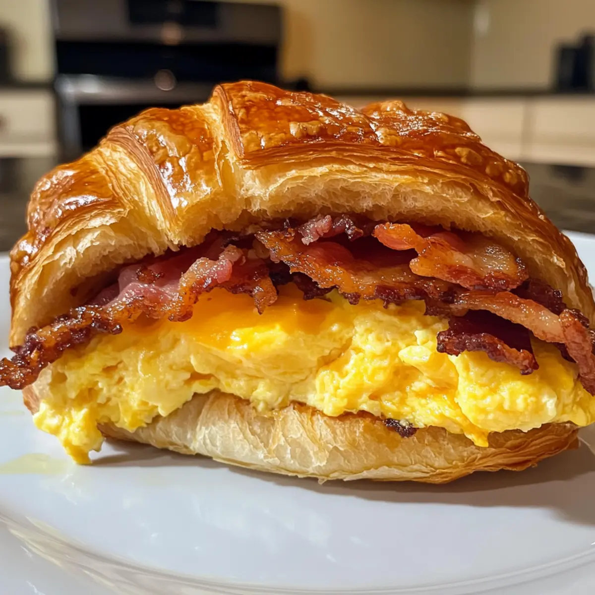 Während ich letzte Woche in einem kleinen Café saß, das für seine frischen Croissants bekannt ist, kam mir eine Idee für das perfekte Frühstück: das Croissant Frühstücksandwich. Diese himmlische Kreation vereint das Beste aus der Backkunst mit einer Füllung, die jedem Morgen einen Hauch von Luxus verleiht. Fluffige Rühreier, schmelzender Käse und wahlweise knuspriger Bacon oder würzige Wurst zwischen zwei zarten Croissant-Hälften – wer könnte da widerstehen? Dieses Rezept ist nicht nur schnell und einfach zuzubereiten, sondern auch vielseitig anpassbar, sodass du deinen persönlichen Lieblingsgeschmack kreieren kannst. Ob für einen geschäftigen Wochentag oder ein entspanntes Wochenende, dieses Sandwich bringt Gourmet-Qualitäten in dein Zuhause. Bist du bereit, die Küche mit mir zu betreten und deinen nächsten Frühstücksklassiker zu zaubern? Warum wirst du dieses Rezept lieben? Einfachheit: Die Zubereitung ist ein Kinderspiel, selbst für Anfänger in der Küche. Mit nur wenigen Zutaten zauberst du in Minuten ein köstliches Frühstück. Vielfalt: Egal ob mit bacon, brie oder sogar vegetarischen Optionen – deine Variationen sind unbegrenzt und machen das Sandwich einzigartig. Himmlischer Geschmack: Die Kombination aus frischen Croissants, fluffigen Eiern und schmelzendem Käse sorgt für ein Geschmackserlebnis, das sich anfühlt wie in einem Bistro. Schnell und praktisch: Ideal für hektische Morgen oder ein leckeres Wochenendfrühstück, du kannst es jederzeit zubereiten und genießen. Beliebtes Gericht: Dieses Croissant Frühstücksandwich beeindruckt garantiert deine Familie und Freunde und wird schnell zum neuen Frühstücksliebling! Croissant Frühstücksandwich Zutaten • Für die Croissants Croissants – Die weichen, buttrigen Croissants bilden die perfekte Grundlage für dein Frühstücksandwich. Frisch aus der Bäckerei ist die beste Wahl. • Für die Füllung Eier – Sie sorgen für eine fluffige Füllung; leicht gewürzt, bringen sie den Geschmack in Einklang. Käse – Wähle zwischen Cheddar oder Swiss für eine cremige Ergänzung; der Geschmack passt wunderbar zu den Croissants. Bacon oder Wurst – Für einen herzhaften, rauchigen Geschmack, der die übrigen Zutaten perfekt ergänzt; kannst auch gegen Schinken oder Lachs austauschen. Butter – Zum Braten der Eier, was den Geschmack intensiviert und für eine goldene Farbe sorgt. Salz & Pfeffer – Grundlegende Gewürze, die das Croissant Frühstücksandwich zum Leben erwecken; sie betonen die Aromen der Füllung. Diese Zutaten sind der Schlüssel zu einem köstlichen Croissant Frühstücksandwich, das den Tag perfekt macht! Schritt-für-Schritt-Anleitung für das Croissant Frühstücksandwich Step 1: Ofen vorheizen Heize deinen Ofen auf 180 °C vor oder bereite eine Pfanne vor, um die Croissants leicht zu toasten. Ein leichtes Toasten verhindert, dass sie bei der Füllung zu weich werden. Dies sollte etwa 5 Minuten dauern, bis die Croissants warm und leicht knusprig sind. Step 2: Fleisch braten In einer Pfanne bei mittlerer Hitze, koche den gewählten Bacon oder die Wurst, bis sie schön braun und knusprig sind, was etwa 7 bis 10 Minuten dauert. Platziere das gekochte Fleisch anschließend auf Küchenpapier, um überschüssiges Fett abtropfen zu lassen und die Würze zu intensivieren. Step 3: Eier zubereiten Schlage in einer Schüssel die Eier mit Salz und Pfeffer auf. In der gleichen Pfanne, in der du das Fleisch gebraten hast, geschieht dies bei mittlerer bis niedriger Hitze; schmelze etwas Butter und rühre die Eier vorsichtig, bis sie weich und fluffig sind, ungefähr 3 bis 5 Minuten. Step 4: Croissants schneiden und belegen Halbiere nun die warmen Croissants vorsichtig mit einem scharfen Messer. Lege die unteren Hälften auf ein Backblech und füge eine Schicht des knusprigen Fleisches hinzu, gefolgt von den fluffigen Rühreiern und einer großzügigen Portion geschmolzenem Käse deiner Wahl. Step 5: Sandwich fertigstellen Setze die oberen Hälften der Croissants auf die belegten Unterteile und lege das gesamte Sandwich zurück in den Ofen. Backe sie weitere 5 Minuten, bis der Käse geschmolzen und die Ränder goldbraun sind. Step 6: Servieren und genießen Nehme die Croissant Frühstücksandwiches aus dem Ofen und lasse sie kurz abkühlen. Auf einem Teller anrichten und am besten sofort servieren, damit du die frischen Aromen genießen kannst. Nützliche Tricks für das Croissant Frühstücksandwich • **Frische Croissants: ** Achte darauf, dass du frisch gebackene Croissants verwendest. Sie sorgen für die beste Textur und den besten Geschmack. • Eier richtig zubereiten: Rühre die Eier sanft und koche sie auf niedriger Hitze, um eine luftige Konsistenz zu erreichen. Vermeide Überkochen, um Trockenheit zu verhindern. • Käsewahl: Experimentiere mit verschiedenen Käsesorten wie Brie oder Gouda. Dies verleiht dem Croissant Frühstücksandwich eine individuelle Note. • Veggie-Option: Um das Sandwich vegetarisch zu gestalten, tausche das Fleisch gegen geröstetes Gemüse oder Avocado. • Re100tipps: Bereite das Sandwich am Vorabend vor und lagere es im Kühlschrank. Erhitze es am Morgen für eine schnelle Frühstückslösung! • Serviertipps: Genieße das Sandwich mit frischem Obst oder einem Glas frisch gepresstem Saft für ein rundum gelungenes Frühstückserlebnis. Croissant Frühstücksandwich Variationen Verleihe deinem Croissant Frühstücksandwich eine persönliche Note! Lass deiner Kreativität freien Lauf und entdecke spannende Varianten. Fleischfreie Option: Tausche Bacon oder Wurst gegen geröstetes Gemüse oder Avocado für ein schmackhaftes, vegetarisches Frühstück. Käsevielfalt: Experimentiere mit Brie, Gouda oder Pfefferkäse – jeder Käse bringt seinen eigenen Charakter ins Sandwich. Eier leicht gemacht: Verwende statt ganzem Ei Eiweiß oder pflanzliche Alternativen, um eine kalorienärmere Variante zu kreieren. Mega würzig: Füge scharfe Jalapeños oder ein