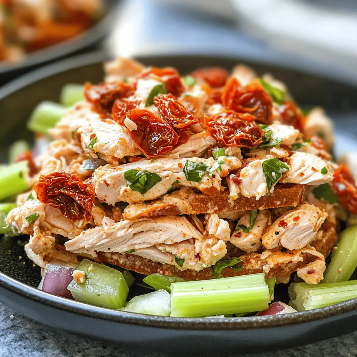 Als ich kürzlich mit einem Freund in einem gemütlichen Café saß, hörte ich, wie der Kellner einem anderen Gast von einem unfassbar leckeren Salat erzählte, der Sonnengetrocknete Tomaten enthielt. Das brachte mich auf die Idee, mein eigenes Rezept für einen Zesty Sun-Dried Tomato Chicken Salad mit einer cremigen Citrus-Basilikum-Dressing zu kreieren. Betrunken von frischen Aromen und der Vorstellung, wie vielseitig man diesen Salat als schnelles Mittagessen genießen kann, stellte ich mir vor, wie perfekt das Gericht in einer Lunchbox, als Sandwich oder einfach mit ein paar Crackern kombiniert wirkt. Dieses Rezept vereint nicht nur eine Extraportion Protein, sondern ist auch ideal für die Mahlzeitvorbereitung – ein wahres Muss für alle, die der schnellen Küche entfliehen wollen! Bist du bereit, dein Geschmackserlebnis aufzupeppen?