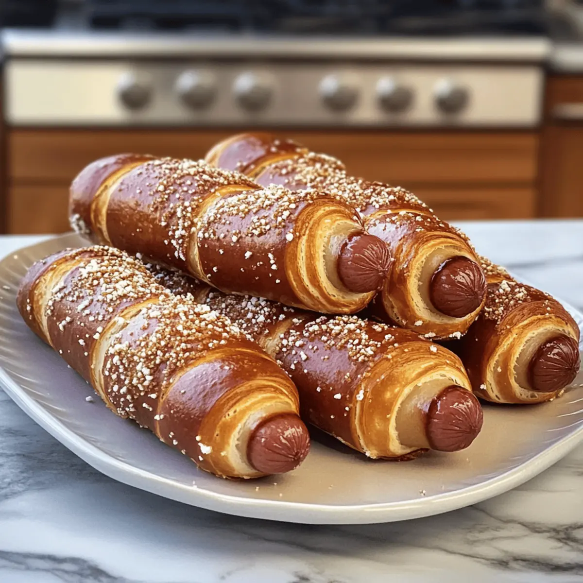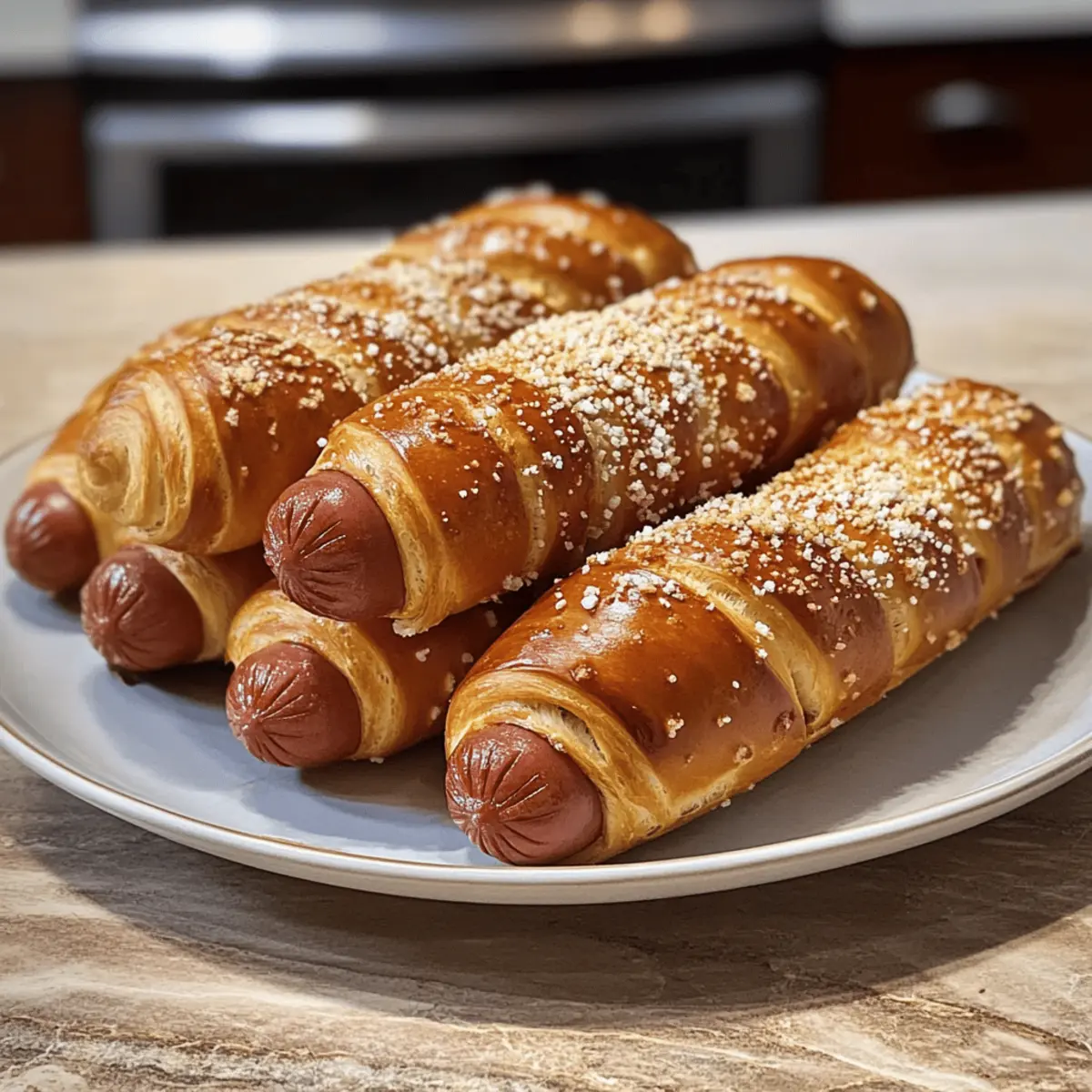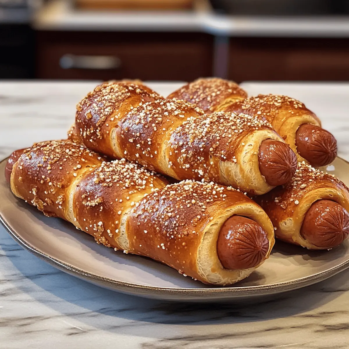 Stell dir vor, es ist Spieltag und der Duft frisch gebackener Brezel-Hotdogs erfüllt die Luft. Diese Chewy Pretzel Dogs sind nicht nur ein köstlicher Snack, sondern auch eine großartige Möglichkeit, deine Gäste zu beeindrucken. Mit einem wunderbar zähen Teig, der saftige Würstchen umhüllt, sind sie perfekt für jede Versammlung oder einfach für einen gemütlichen Abend zu Hause. Das Beste daran? Die Zubereitung ist einfach und du hast Kontrolle über die Zutaten, was bedeutet, dass du mit frischen und hochwertigen Prinzipien arbeitest. Ob beim nächsten Spiel oder beim entspannten Grillabend – diese Brezel-Hotdogs sind eine wahre Freude für den Gaumen! Welchen Dip wirst du dazu servieren? Warum sind Brezel-Hotdogs so unwiderstehlich? Unglaubliche Vielfalt: Diese Brezel-Hotdogs bieten unendliche Möglichkeiten für kreative Füllungen. Einfach zuzubereiten: Mit nur wenigen Grundzutaten zauberst du im Handumdrehen einen köstlichen Snack. Perfekte Konsistenz: Der zähe Teig umschließt die saftigen Würstchen ideal und sorgt für ein harmonisches Geschmackserlebnis. Ideal für jede Gelegenheit: Ob beim Fußballabend oder einem entspannten Grillfest, sie sind echte Publikumsmagneten. Gesunde Kontrolle: Du entscheidest über die Zutaten, wodurch du ein hochwertiges Gericht kreierst, das dem Fast Food überlegen ist. Lass dich inspirieren und probiere dazu verschiedene Dips aus, um das Geschmackserlebnis zu verfeinern! Der Ausgang für Brezel-Hotdogs • Hinweis: Mit den richtigen Zutaten stehen dir alle Türen offen für perfekt zubereitete Brezel-Hotdogs! Für den Teig Weizenmehl (Typ 550) – sorgt für die ideale Struktur; wechsle zu Dinkelmehl für eine nussigere Note. Trockenhefe – lässt den Teig aufgehen und sorgt für die luftige Textur; verwende frische Hefe für einen noch intensiveren Geschmack. Salz – hebt die Aromen hervor und stärkt die Teigstruktur; nie durch Zucker ersetzen. Milch – macht den Teig reichhaltiger; pflanzliche Alternativen sind auch möglich. Wasser – notwendig zur Hydration; achte darauf, dass es warm genug ist, um die Hefe zu aktivieren. Honig – bringt eine feine Süße ins Spiel; kann auch durch Agavensirup ersetzt werden. Ungesalzene Butter – sorgt für Zartheit; Margarine ist eine geeignete vegane Alternative. Für die Füllung Hot Dogs – die Hauptfüllung deiner Brezel-Hotdogs; probiere verschiedene Wurstsorten für Abwechslung. Für die Vorbereitung Natron – wird verwendet, um die Wrapped Hot Dogs vor dem Backen zu kochen; es sorgt für die charakteristische Farbe und den Geschmack, also nicht durch Backpulver ersetzen. Toppings (z.B. Sesam, grobes Salz) – für zusätzlichen Geschmack und Optik; lass deiner Kreativität freien Lauf! Mit diesen Zutaten bist du bestens gerüstet, um deine eigenen köstlichen Brezel-Hotdogs zu kreieren. Der Ausgang für ein tolles Snack-Erlebnis wartet auf dich! Schritt-für-Schritt-Anleitung für Brezel-Hotdogs Step 1: Backbleche vorbereiten Lege zwei Backbleche mit Backpapier aus und fette sie leicht ein. Dadurch bleibt der Teig beim Backen nicht kleben und die Brezel-Hotdogs lassen sich leicht abheben. Dies ist ein einfacher Schritt, der sicherstellt, dass deine köstlichen Snacks eine schöne goldene Farbe bekommen. Step 2: Teig herstellen In einer großen Schüssel vermische das Weizenmehl, die Trockenhefe und das Salz gründlich. Erwärme die Milch, das Wasser, den Honig und die Butter, bis sie lauwarm sind, und füge sie dann zu den trockenen Zutaten hinzu. Mische alles, bis ein unordentlicher Teig entsteht. Dieser Schritt ist entscheidend, um die perfekte Konsistenz für deine Brezel-Hotdogs zu erzielen. Step 3: Teig kneten Stürze den Teig auf eine bemehlte Arbeitsfläche und knete ihn etwa 5 Minuten lang, bis er glatt und elastisch ist. Achte darauf, dass er nicht zu fest wird. Danach lege ihn in eine gefettete Schüssel, bedecke ihn mit einem Tuch und lasse ihn an einem warmen Ort etwa 1 Stunde lang gehen, bis er sich verdoppelt hat. Dies sorgt für eine luftige Textur. Step 4: Brezel-Hotdogs formen Teile den aufgegangenen Teig in 12 Portionen und rolle jede Portion zu einem langen Strang. Umwickle jeden Strang um ein Hot Dog und achte darauf, dass der Teig gut anhaftet. Lass die umwickelten Brezel-Hotdogs 15 Minuten ruhen, damit sie etwas aufgehen können. Dies verleiht deinem Snack zusätzliche Zartheit. Step 5: Kochen und backen Heize den Ofen auf 230 °C vor. Koche in einem großen Topf Wasser mit Natron. Senke die Brezel-Hotdogs vorsichtig in Chargen für etwa 1 Minute in das kochende Wasser. Dies gibt ihnen die charakteristische Brezel-Oberfläche. Danach nimm sie heraus, lasse sie gut abtropfen und lege sie auf das Backblech. Streue deine gewählten Toppings darüber. Step 6: Brezel-Hotdogs backen Backe die Brezel-Hotdogs im vorgeheizten Ofen 10-13 Minuten lang, bis sie goldbraun sind. Achte darauf, dass sie bei richtiger Backzeit leicht knusprig sind, aber innen immer noch zart bleiben. Lass sie vor dem Servieren etwas abkühlen – sie sind dann perfekt für den ultimativen Snackgenuss! Wie du die Brezel-Hotdogs im Voraus zubereiten kannst Die Chewy Pretzel Dogs sind perfekt für Meal Prep und erleichtern dir die Essensplanung! Du kannst den Teig bis zu 24 Stunden im Voraus zubereiten und im Kühlschrank aufbewahren, wobei es wichtig ist, ihn in einem abgedeckten Behälter zu lagern, um ein Austrocknen zu verhindern. Auch die geformten Brezel-Hotdogs können in einer luftdichten Verpackung bis zu 3 Tage im Kühlschrank gelagert werden. Wenn du bereit bist zu backen, hole die Hotdogs aus dem Kühlschrank und koche sie wie angegeben, aber lasse sie 5 Minuten länger ruhen, um sicherzustellen, dass sie gut aufgehen. So hast du köstliche Snacks mit minimalem Aufwand zur Hand! Expert Tips für Brezel-Hotdogs Frische Zutaten: Achte darauf, dass alle Zutaten Zimmertemperatur haben; das fördert den Aufgehprozess. Teig nicht überkneten: Nimm dir Zeit beim Kneten, aber achte darauf