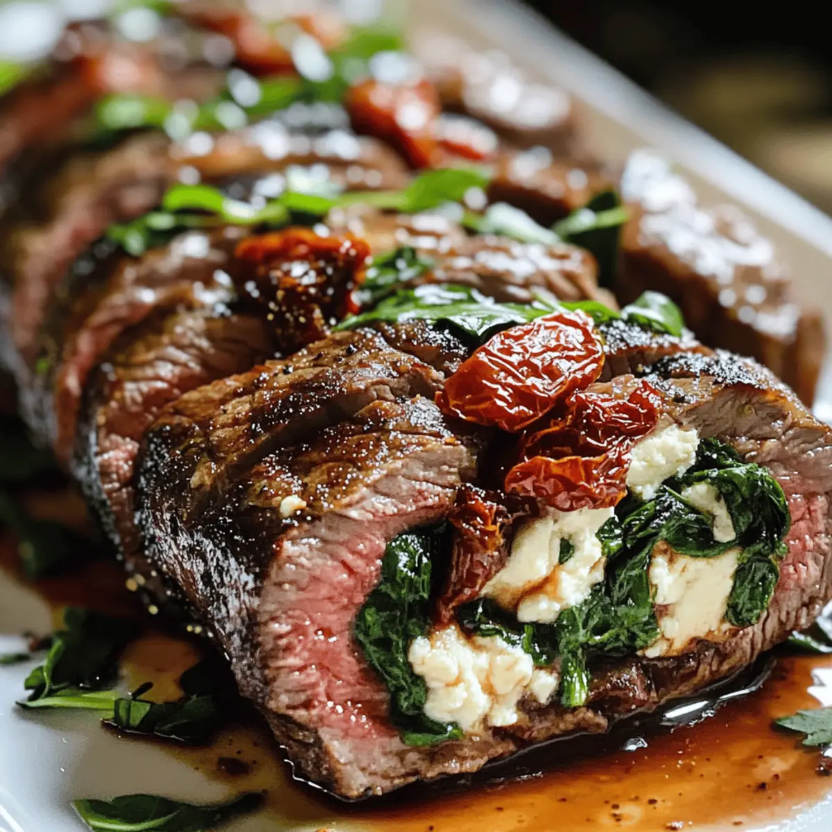 Dieses gefüllte Flanksteak ist ein köstliches Familienereignis mit vielfältigen Fülloptionen und einem saftigen Steakmantel.