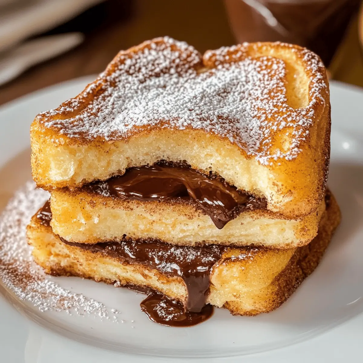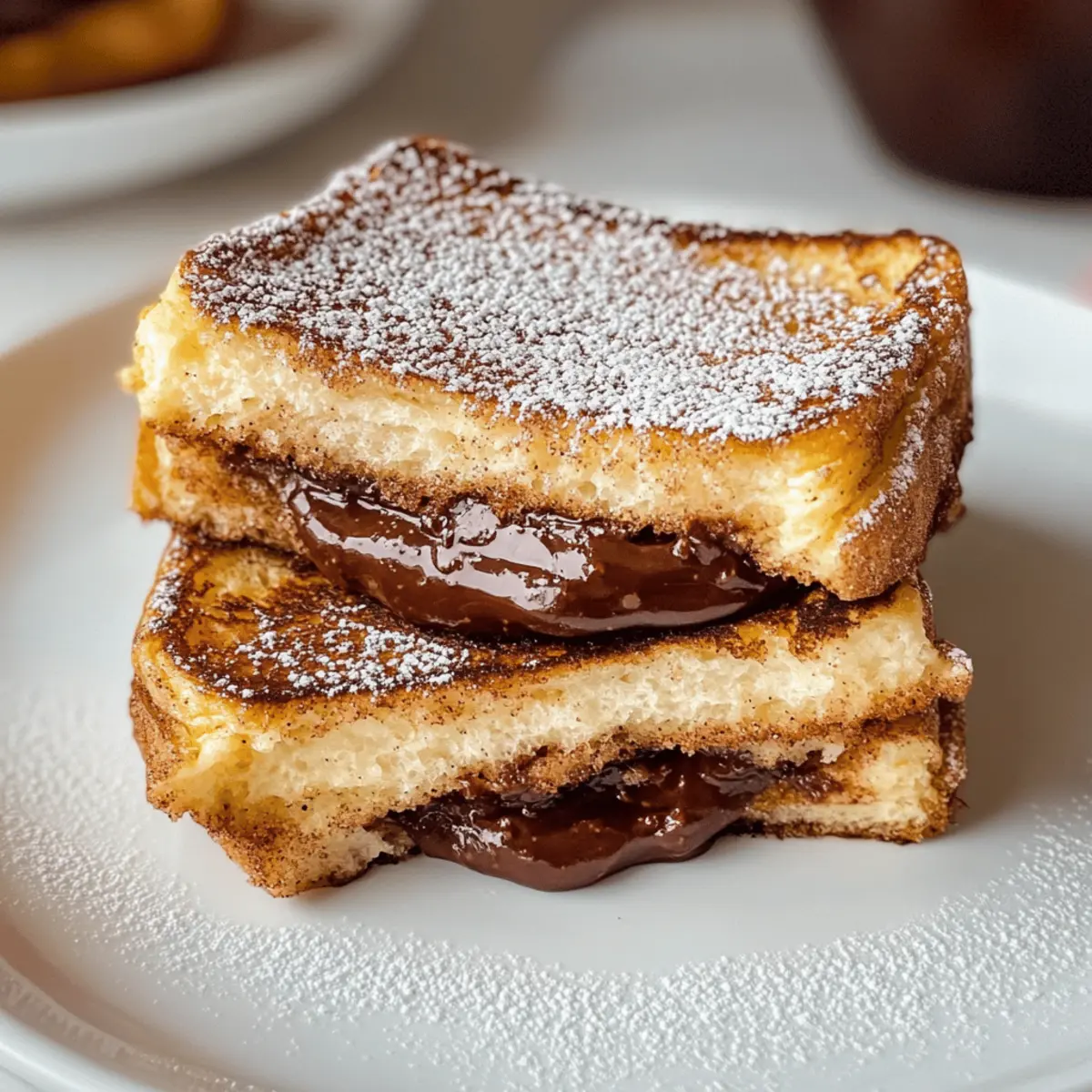 Die Vorstellung, dass Frühstück weit mehr sein kann als nur ein schnelles Brötchen oder ein Müsli, erfreut mich immer wieder. Heute möchte ich Dich mit einem Rezept für das verführerische Nutella Stuffed French Toast begeistern. Diese wunderbare Kombination aus buttrigem Brioche und schmelzendem Nutella sorgt für eine himmlische Geschmacksexplosion, die selbst die trübsten Morgende aufhellt. Dieses einfache Rezept eignet sich nicht nur perfekt für den Wochenendmorgen, sondern bietet auch die Möglichkeit, mit unterschiedlichen Füllungen zu experimentieren, wie z. B. cremigem Frischkäse oder fruchtigen Aufstrichen. Ein weiterer Grund, es auszuprobieren: Es ist sowohl ein Genuss für die Gaumen als auch ein Wärmebringer an kalten Tagen. Bist du bereit, deine Frühstücksroutine auf ein neues Level zu heben? Warum wirst du dieses Rezept lieben? Einfache Zubereitung: Mit nur wenigen Zutaten und einfachen Schritten zauberst du in kürzester Zeit ein himmlisches Frühstück. Vielfältige Füllungen: Nutella ist unwiderstehlich, doch auch frische Beeren oder Frischkäse sind tolle Alternativen, um dem Rezept eine persönliche Note zu geben. Köstlicher Genuss: Die Kombination aus knusprigem Brot und geschmolzenem Nutella wird deine Geschmacksknospen verzaubern und die ganze Familie begeistern. Perfekt für den Wochenstart: Ideal, um sich am Wochenende etwas Besonderes zu gönnen – eine echte Umarmung für die Seele! Praktische Vorbereitung: Bereite die Eimischung bereits am Vorabend vor und spare kostbare Zeit am Morgen. Wenn du andere köstliche Ideen für dein Frühstück suchst, schaue dir auch unser Rezept für Spinatsalat Mit Rezept oder die hervorragenden Rote Bete Karotten an! Der Ausstoß: Himmlisches Nutella French Toast Zutaten • Entdecke die perfekten Zutaten für ein unvergessliches Frühstück! Für die Eimischung Große Eier – Essenziell für die Struktur und Reichhaltigkeit der Eimischung. Eigelb – Sorgt für eine cremige Konsistenz; weniger Eigelb verwenden, wenn du eine leichtere Variante bevorzugst. Halbfettmilch (oder leichte Sahne) – Kreiert eine reiche, samtige Eimischung; kann durch Vollmilch ersetzt werden für eine leichtere Version. Brauner Zucker – Verleiht eine angenehme Süße mit einem Hauch von Melasse; kann durch weißen Zucker ersetzt werden. Salz – Verstärkt den Geschmack; weglassen, wenn du eine natriumarme Diät einhältst. Gemahlener Zimt – Fügt Wärme und Gewürz hinzu; optional, aber empfohlen für den Geschmack. Für das Brot Briochebrot – Ideal zum Aufsaugen der Eimischung; dick und fluffig. Ein französisches Baguette kann bei dickem Schnitt ebenfalls verwendet werden. Nutella – Die Hauptfüllung, die Süße und Schokoladengeschmack bietet; auch Frischkäse oder Fruchtaufstriche sind ebenfalls leckere Alternativen. Für die Zubereitung Zucker – Wird für die Karamellisierung verwendet; optional, wenn du insgesamt weniger Süße verwenden möchtest. Geschmolzene Butter – Fügt Reichtum hinzu und sorgt für eine knusprige Oberfläche beim Braten; kann durch Öl für eine milchfreie Option ersetzt werden. Für die Garnierung Schokoladensoße und Schlagsahne – Optionale Toppings für zusätzlichen Genuss, die dein Nutella French Toast noch verführerischer machen. Schritt-für-Schritt-Anleitung für das Himmlische Nutella French Toast Step 1: Griddle vorheizen und Zimt-Zucker-Mischung vorbereiten Heize eine Grillplatte auf 135°C vor. In einer kleinen Schüssel vermischst du 2 Esslöffel Zucker mit 1 Teelöffel gemahlenem Zimt und stellst die Mischung beiseite. Dies wird dir helfen, das fertige Nutella Stuffed French Toast mit einer köstlichen, süßen Kruste zu versehen, die knusprig und aromatisch ist. Step 2: Eimischung zubereiten In einer großen Schüssel verquirlst du 2 große Eier, 2 Eigelb, 200 ml Halbfettmilch, 20 g braunen Zucker, eine Prise Salz und 1 Teelöffel Zimt. Achte darauf, die Mischung gut zu vermengen, bis sie homogen ist, damit das French Toast gleichmäßig durchtränkt wird. Dieser cremige Mix bildet die Basis für dein leckeres Frühstück. Step 3: Brioche vorbereiten und füllen Schneide jedes Stück Briochebrot entlang der Seite auf, um eine Tasche zu formen. Fülle diese Tasche mit etwa 1 Esslöffel Nutella; achte darauf, dass du etwas Raum lässt, damit das Nutella beim Kochen nicht herausquillt. Diese Schritte sind entscheidend, um die köstliche Füllung in deinem himmlischen Nutella Stuffed French Toast zu sichern. Step 4: Toast in der Eimischung eintunken Tauche die gefüllten Brioche-Scheiben in die vorbereitete Eimischung und lasse sie etwa 15 Sekunden pro Seite einweichen. Achte darauf, dass das Brot gut durchtränkt ist, ohne zu zerfallen. Diese Eintauchzeit sorgt dafür, dass das Brot beim Braten eine verführerische goldene Farbe und eine cremige Textur erhält. Step 5: French Toast braten Lege die gefüllten und eingeweichten Scheiben auf die vorgeheizte Grillplatte. Brate sie für 2-3 Minuten auf jeder Seite, bis sie goldbraun und knusprig sind. Behalte sie während des Bratens im Auge, damit sie nicht zu dunkel werden. Der köstliche Duft wird dir bereits das Wasser im Mund zusammenlaufen lassen! Step 6: Mit Butter und Zimt-Zucker bestreuen Sobald das Nutella Stuffed French Toast fertig ist, bestreiche jede Scheibe leicht mit geschmolzener Butter, um einen reichhaltigen Geschmack zu erzielen. Tauche die Butterseite anschließend in die Zimt-Zucker-Mischung. Dieses Extra wird das French Toast noch verführerischer machen und einen wunderbaren, süßen Crunch hinzufügen. Step 7: Servieren und garnieren Serviere das Nutella Stuffed French Toast warm und garniere es nach Belieben mit geschlagener Sahne, Schokoladensoße oder frischen Beeren. Diese letzten Berührungen verstärken den Genuss und machen dein Frühstück zu einem echten Fest. Genieße jeden Bissen dieses himmlischen Frühstücks! Der Ausstoß: Variationen des French Toast Entfalte deine Kreativität und passe das R