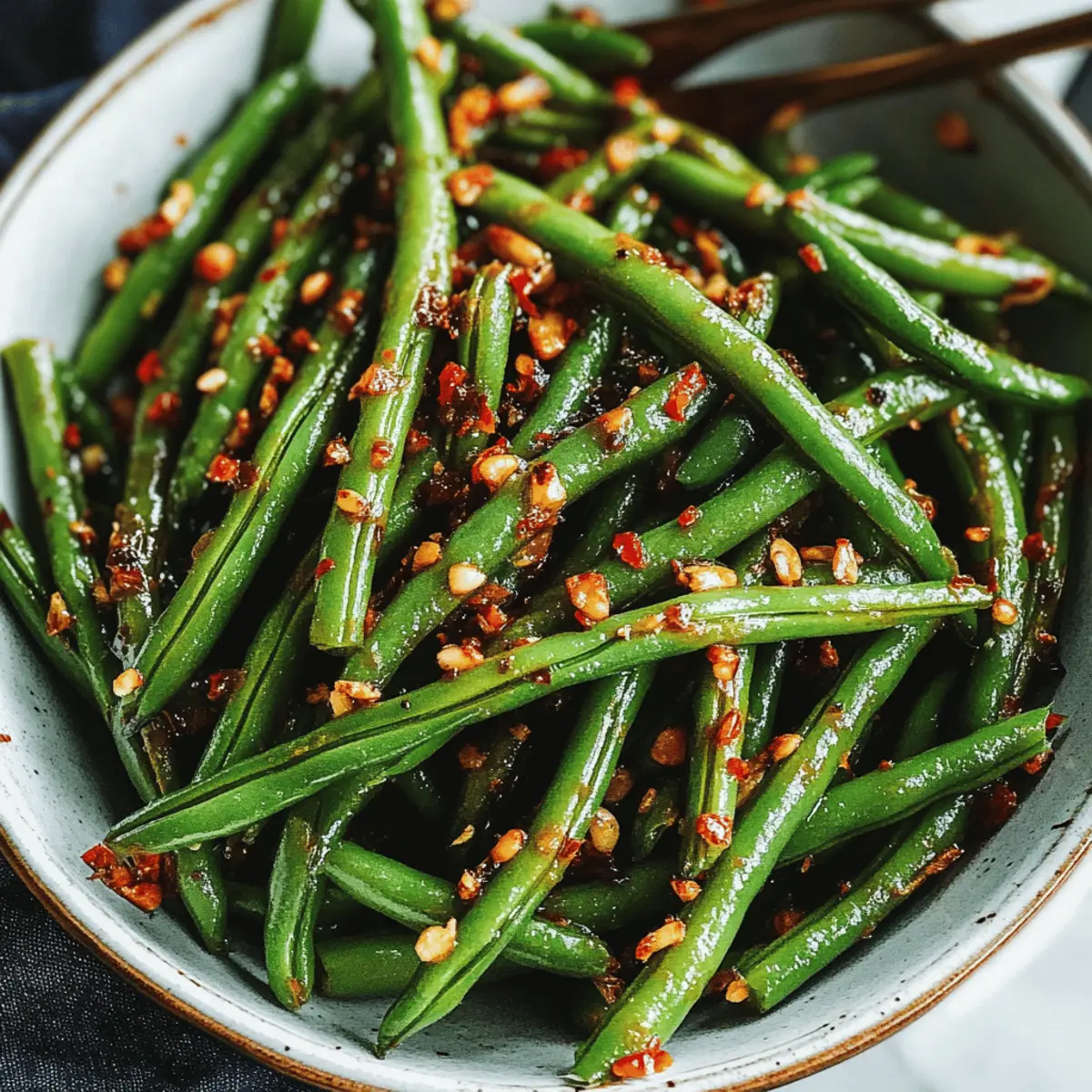 Wenn das Aroma von frisch gebratenem Knoblauch in der Luft liegt, ist ein besonderes Essen nicht weit. Heute teile ich mein Geheimnis für das perfekte Rezept: Die Luftfrittier-Knoblauch-Grünen Bohnen. Diese einfache, aber köstliche Beilage benötigt nur fünf Zutaten und ist in weniger als zehn Minuten zubereitet – ideal für eine schnelle Mahlzeit. Der Luftfrittierer zaubert eine zart-knackige Textur und sorgt dafür, dass die grünen Bohnen mit dem kräftigen Knoblauchgeschmack und einem Hauch von Umami durch die Sojasauce gefüllt sind. Ob als Begleiter zu Grillgerichten oder als Teil einer veganen Bowl – diese grünen Bohnen sind ein wahres Highlight. Bist du bereit, deinen nächsten Kochabend mit diesem einfachen Rezept aufzupeppen? Warum werden Sie dieses Rezept lieben? Einfachheit in Perfektion: Diese Luftfritteuse Knoblauchgrüne Bohnen sind im Handumdrehen zubereitet und erfordern lediglich grundlegende Kochfähigkeiten. Würzige Geschmacksvielfalt: Der kräftige Knoblauch und die würzige Sojasauce sorgen für ein außergewöhnliches Geschmackserlebnis, das Ihre Sinne verführt. Gesunde Beilage: Mit nur 70 Kalorien pro Portion sind sie die perfekte gesunde Ergänzung zu jeder Mahlzeit, egal ob zu gegrilltem Fleisch oder Tofu. Vielseitige Variationen: Experimentieren Sie mit Chiliöl für eine scharfe Note oder fügen Sie etwas Zitrone hinzu, um frische Akzente zu setzen. Diese Bohnen sind ein echter Publikumsmagnet! Schnell und praktisch: In weniger als zehn Minuten servierbereit – ideal für hektische Abende, an denen Sie dennoch nicht auf gesundes Essen verzichten möchten. Neugierig auf weitere einfache Rezepte? Schauen Sie sich unser Air Fryer Pasta oder die Krosse Blumenzwiebel Rezept an! Knoblauchgrüne Bohnen Zutaten • Das Rezept ist vegan und glutenfrei anpassbar, ideal für alle, die frisches Gemüse lieben. Für die Bohnen • Grüne Bohnen – Frische Bohnen sorgen für die beste Textur; gefrorene Bohnen können ohne Auftauen verwendet werden, sind jedoch weniger knusprig. • Olivenöl – Fügt Geschmack hinzu und hilft beim Kochen; alternativ kann auch Pflanzen- oder Avocadoöl verwendet werden. • Salz – Verstärkt den Geschmack und rundet das Gericht ab. • Knoblauch – Liefert den kräftigen, herzhaften Geschmack, der diese Bohnen auszeichnet. • Sojasauce – sorgt für einen umami Geschmack; nutzen Sie Tamari für eine glutenfreie Option. • Chiliöl (Optional) – Verleiht eine aromatische Schärfe; für weniger Schärfe kann es weggelassen werden. Schritt-für-Schritt-Anleitung für Schnelle Luftfritteuse Knoblauchgrüne Bohnen Schritt 1: Bohnen vorbereiten Trocknen Sie die grünen Bohnen gründlich mit einem Küchentuch ab. Heizen Sie die Luftfritteuse auf 200 °C (400 °F) vor. Das Trocknen ist entscheidend, um die perfekten, blisterten Bohnen zu erhalten. Achten Sie darauf, dass die Bohnen gleichmäßig auf der Oberfläche liegen, damit sie sich gut rösten. Schritt 2: Bohnen würzen Geben Sie die abgetrockneten grünen Bohnen in eine große Schüssel. Fügen Sie Olivenöl und eine Prise Salz hinzu und vermengen Sie alles gut, sodass die Bohnen gleichmäßig überzogen sind. Diese würzige Mischung verleiht den Luftfritteuse Knoblauchgrüne Bohnen das köstliche Aroma, das Sie lieben werden. Schritt 3: Luftfritteuse befüllen Verteilen Sie die gewürzten Bohnen gleichmäßig im Korb der Luftfritteuse, um eine Überfüllung zu vermeiden. Garen Sie die Bohnen für 4-5 Minuten, bis sie blätterig und leicht angebräunt sind. Beobachten Sie die Bohnen während des Garens, um sicherzustellen, dass sie nicht überkochen, und genießen Sie den köstlichen Geruch. Schritt 4: Knoblauch und Sojasauce hinzufügen Wenn die ersten Bohnen fertig sind, nehmen Sie sie vorsichtig aus der Luftfritteuse und geben Sie sie in eine große Schüssel. Fügen Sie hackten Knoblauch, Sojasauce und optional Chiliöl hinzu und vermengen Sie alles gründlich. Diese Schritte sorgen dafür, dass der Knoblauch perfekt in die Luftfritteuse Knoblauchgrüne Bohnen eingearbeitet wird. Schritt 5: Weiter garen Legen Sie die Mischung wieder in den Korb der Luftfritteuse und garen Sie für weitere 2-3 Minuten. Achten Sie darauf, bis die Bohnen die gewünschte Zartheit erreicht haben. Während dieses Schrittes entsteht eine wunderbare Kombination aus Aromen, die den Geschmack vollständig entfalten. Schritt 6: Servieren Nehmen Sie die Bohnen aus der Luftfritteuse und präsentieren Sie sie heiß auf einem Teller als köstliche Beilage. Die Kombination aus knusprigen, blätterigen Bohnen und dem intensiven Knoblauchgeschmack macht diese Schnelle Luftfritteuse Knoblauchgrüne Bohnen zu einem Highlight jeder Mahlzeit. Was passt zu Schnelle Luftfritteuse Knoblauchgrüne Bohnen? Diese köstlichen grünen Bohnen sind nicht nur schnell zubereitet, sondern eignen sich auch hervorragend, um Ihr nächstes Abendessen zu bereichern. Gegrilltes Hähnchen: Das zarte Hähnchen harmoniert perfekt mit den knusprigen Bohnen und sorgt für eine ausgewogene Mahlzeit. Tofu mit Sojasauce: Gebratenes Tofu ergänzt die Aromen der Bohnen und ist eine großartige vegane Option. Zitronenreis: Der frische, zitrusartige Geschmack des Reises bietet eine erfrischende Balance zu den herzhaften Bohnen. Röstkartoffeln: Die knusprigen Röstkartoffeln bringen eine tolle Texturvielfalt ins Spiel und machen das Menü komplett. Wakame-Salat: Dieser leichte Algensalat bringt eine erfrischende Note, die die Aromen der Bohnen wunderbar ergänzt. Chili-Öl-Dip: Für eine scharfe Auswahl bietet ein Dip mit Chili-Öl das richtige Maß an Würze zu den Bohnen. Weißwein: Ein glas leichter Weißwein, wie Sauvignon Blanc, rundet das Dinner ab und hebt die Aromen hervor. Schokoladenmousse: Als Dessert ist eine fluffige Schokoladenmousse die perfekte süße Ergänzung nach dem herzhaften Hauptgericht. Aufbewahrungstipps für die Luftfritteuse Knoblauchgrünen Bohnen Zimmertemperatur:: Diese Bohnen sollten nicht bei Raumtempera