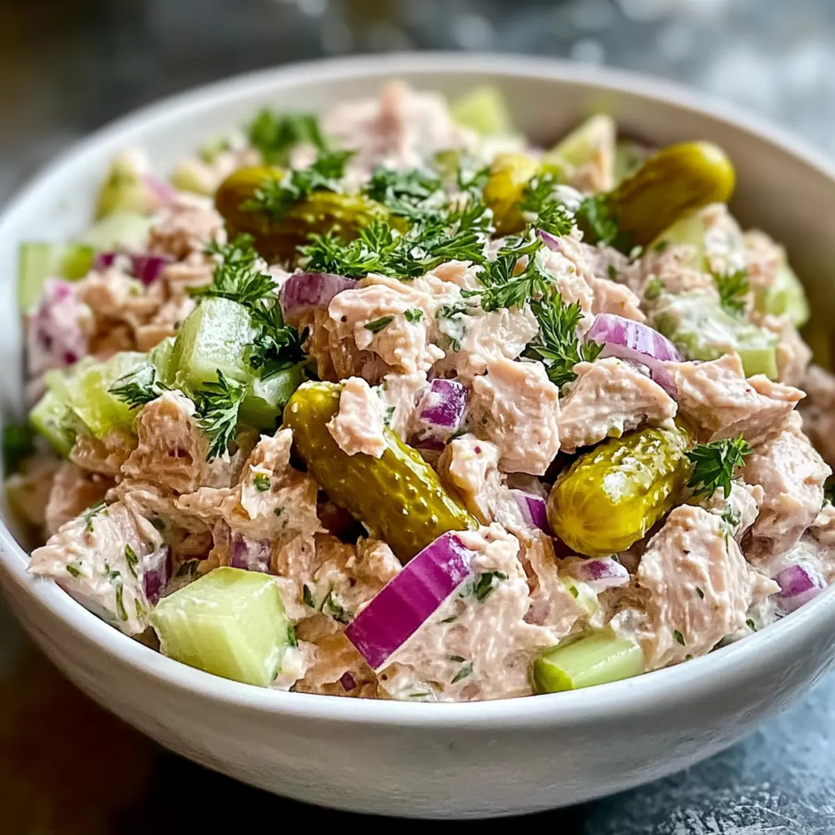 Ein schneller und geschmackvoller Dillgurken Thunfischsalat, perfekt für warme Tage.