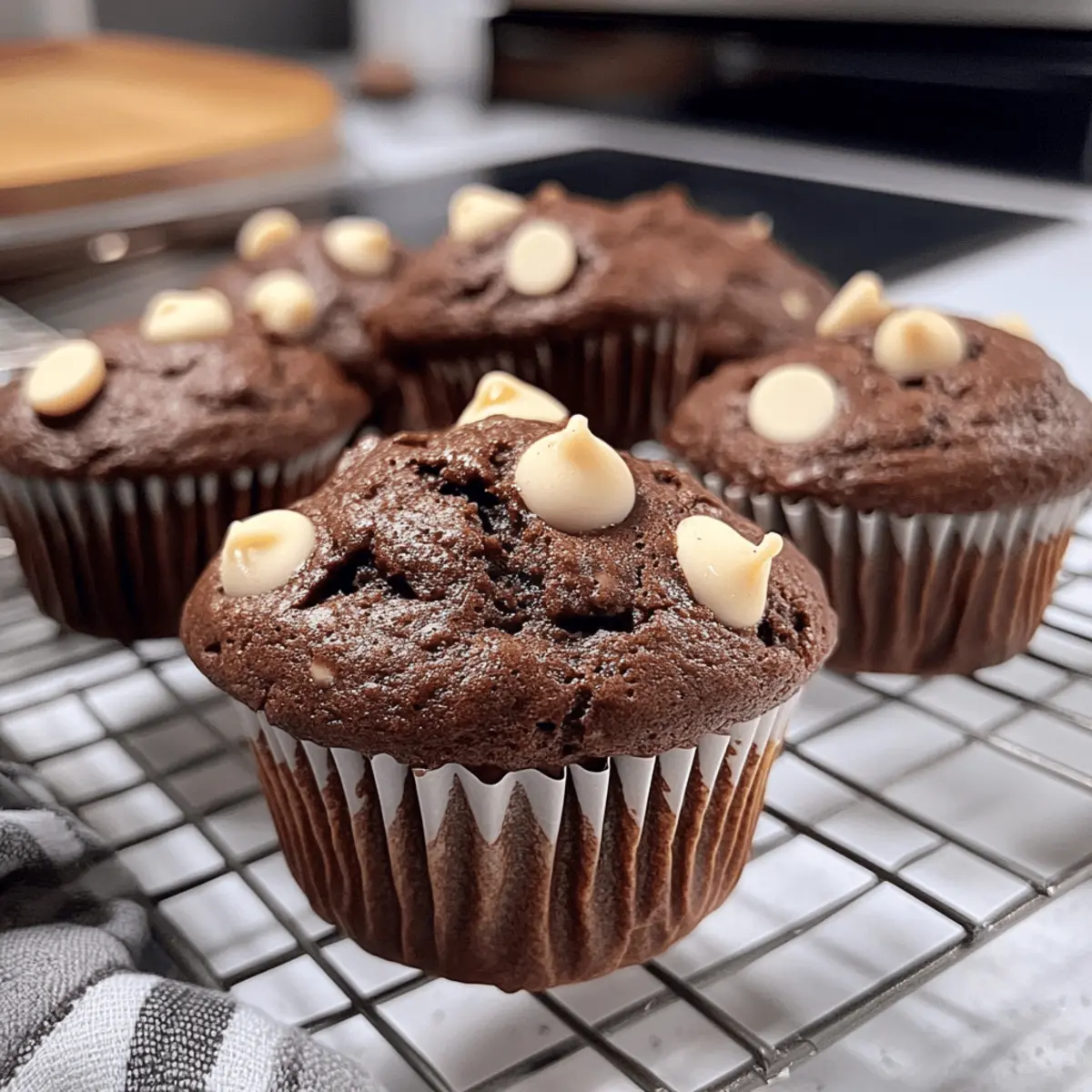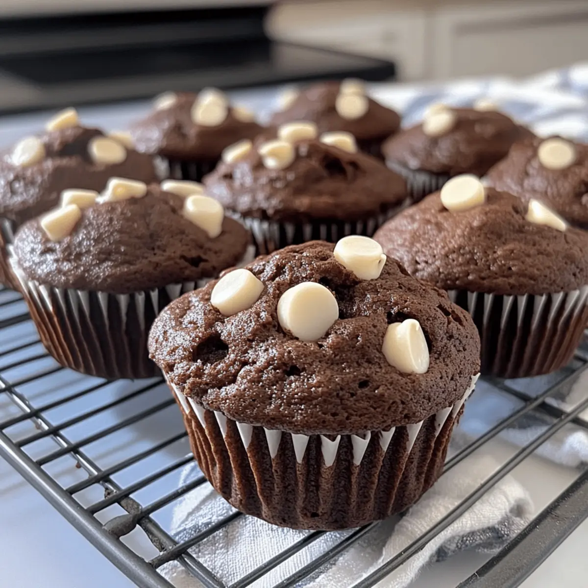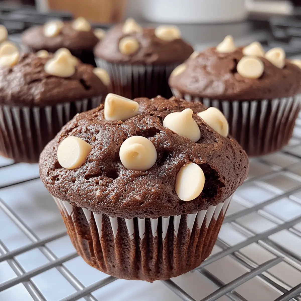 Während ich gestern in der Küche stand und den verführerischen Duft von frisch gebackenem Gebäck einatmete, wusste ich, dass es der perfekte Moment für meine feuchten Double Chocolate White Chocolate Chip Muffins war. Diese Muffins sind nicht nur ein wahres Geschmackserlebnis, sondern auch unglaublich einfach zuzubereiten – ideal für hektische Morgen oder für einen süßen Snack zwischendurch. Mit der perfekten Mischung aus reichhaltigem Schokoladengeschmack und cremigen, süßen weißen Schokoladenstückchen sind sie ein Hit bei der ganzen Familie. Ob zum Frühstück oder als süße Belohnung nach einem langen Tag, diese Schokoladenmuffins werden jedes Herz erobern. Bereit, in die Welt der köstlichen Muffins einzutauchen? Lass uns gemeinsam herausfinden, wie du diese Leckerei zaubern kannst! Warum sind diese Muffins unwiderstehlich? Verführung in jeder Biss: Diese Muffins vereinen doppelten Schokoladengenuss mit süßen weißen Schokoladenstückchen, die beim Backen wunderbar schmelzen. Einfachheit pur: Das Rezept ist unkompliziert und benötigt nur wenige Zutaten, perfekt für Anfänger und erfahrene Bäcker. Vielseitigkeit: Du kannst sie nach Belieben anpassen, indem du z.B. Nüsse oder Trockenfrüchte hinzufügst. Familienfreundlich: Die Kombination aus Schokolade und Süßem macht sie zu einem Hit bei Kindern und Erwachsenen. Lass dich auch von unserer Krosse Zucchini Chips inspirieren, um den perfekten Snack für zwischendurch zu finden! Zutaten für die Doppelte Schokoladen-Muffins • Die perfekten Muffins sind zum Greifen nah! Für den Teig Allzweckmehl – bildet die Basis; benutze das reguläre Allzweckmehl für die besten Ergebnisse. Kakaopulver – sorgt für intensiven Schokoladengeschmack; du kannst ungesüßtes Kakaopulver als Alternative verwenden. Backpulver – sorgt für Lockerheit und Volumen; überprüfe, ob es frisch ist für den optimalen Aufstieg. Salz – verstärkt den Geschmacksausgleich; ersetzbar durch Himalaya- oder Meersalz. Butter – bringt Reichhaltigkeit und Feuchtigkeit; sowohl gesalzene als auch ungesalzene Butter sind geeignet. Avocadoöl (oder Pflanzenöl) – sorgt für zusätzliche Feuchtigkeit; kann durch geschmolzenes Kokosöl ersetzt werden. Hauszucker – sorgt für die nötige Süße; kann durch biologischen Rohrzucker ersetzt werden. Brauner Zucker – verleiht Tiefe und Kaubarkeit; helle oder dunkle Sorten sind austauschbar. Eier – binden die Zutaten und verbessern die Textur; idealerweise auf Zimmertemperatur bringen. Vanilleextrakt – fügt ein aromatisches Aroma hinzu; setze auf reinen Extrakt für mehr Tiefe. Milch – sorgt für Feuchtigkeit; kann durch jede Milch, auch pflanzliche Optionen, ersetzt werden. Naturjoghurt (oder Sauerrahm) – erhöht den Feuchtigkeitsgehalt; regulärer Joghurt oder Buttermilch sind ebenfalls geeignet. Weiße Schokoladenstückchen – süßen und ergänzen die Schokolade; können durch Milchschokolade nach Belieben ersetzt werden. Step-by-Step Instructions for Doppelte Schokoladen-Muffins mit weißen Schokoladenstückchen Step 1: Ofen vorheizen Heize den Ofen auf 190 °C (375 °F) vor und lege ein Muffinblech mit Papierförmchen aus. Achte darauf, dass der Ofen gut vorgeheizt ist, um gleichmäßiges Backen zu gewährleisten. Eine vorgeheizte Temperatur ist entscheidend für die perfekte Konsistenz deiner doppelten Schokoladen-Muffins mit weißen Schokoladenstückchen. Step 2: Trockene Zutaten mischen In einer großen Schüssel vermischst du das Allzweckmehl, das Kakaopulver, das Salz und das Backpulver gründlich. Verwende einen Schneebesen, um dämpfende Klumpen zu vermeiden und alles gut zu kombinieren. Diese Mischung bildet die Basis für die köstlichen Muffins, also achte darauf, dass die Zutaten gleichmäßig verteilt sind. Step 3: Feuchte Zutaten kombinieren In einer separaten Schüssel schmilzt du die Butter und fügst das Avocadoöl, den Hauszucker, den braunen Zucker und die Eier hinzu. Mische alles gut, bis die Masse glatt ist. Ergänze diese Mischung mit dem Vanilleextrakt, der Milch und dem Joghurt, um eine feuchtigkeitsspendende, reichhaltige Basis für deine Muffins zu schaffen. Step 4: Trockene und feuchte Zutaten vereinen Gib die trockenen Zutaten langsam in die Schüssel mit den feuchten Zutaten und falte sie vorsichtig unter. Achte darauf, nicht zu übermixen; die Kombination sollte gerade so verrührt sein, bis keine Mehlnester mehr sichtbar sind. Das sorgt dafür, dass deine doppelten Schokoladen-Muffins fluffig und zart bleiben. Step 5: Schokoladenstückchen hinzufügen Falte nun die weißen Schokoladenstückchen behutsam in den Muffinteig. Dies verleiht den Muffins nicht nur Süße, sondern sorgt auch für eine schöne, schmelzende Textur, die perfekt mit dem Schokoladenteig harmoniert. Sei dabei sanft, damit die Stückchen nicht zerdrückt werden. Step 6: Teig in die Muffinförmchen füllen Verteile den Muffinteig gleichmäßig auf die vorbereiteten Muffinförmchen, wobei du sie fast bis zur Oberkante füllst. So erhältst du schön hochaufgegangene Muffins. Achte darauf, dass die Muffinförmchen gut gefüllt sind, damit das Backergebnis optimal ist. Step 7: Muffins backen Backe die Muffins etwa 22-24 Minuten im vorgeheizten Ofen. Die Muffins sind fertig, wenn ein Zahnstocher in der Mitte sauber herauskommt. Halte während des Backens ein Auge darauf, um sicherzustellen, dass sie nicht überbacken werden – dies führt zu trockenen Muffins. Step 8: Auskühlen lassen Nach dem Backen lasse die Muffins einige Minuten im Blech abkühlen, bevor du sie auf ein Kuchengitter legst. Dies verhindert, dass sie am Boden anbrennen. Sobald sie vollständig abgekühlt sind, kannst du sie genießen und dich an den feuchten, schokoladigen Leckerbissen erfreuen. Was passt gut zu Doppelte Schokoladen-Muffins mit weißen Schokoladenstückchen? Genieße diese köstlichen Muffins mit den perfekten Ergänzungen, um ein rundum befriedigendes Frühstück oder Snack-Erlebnis zu schaffen. Fri