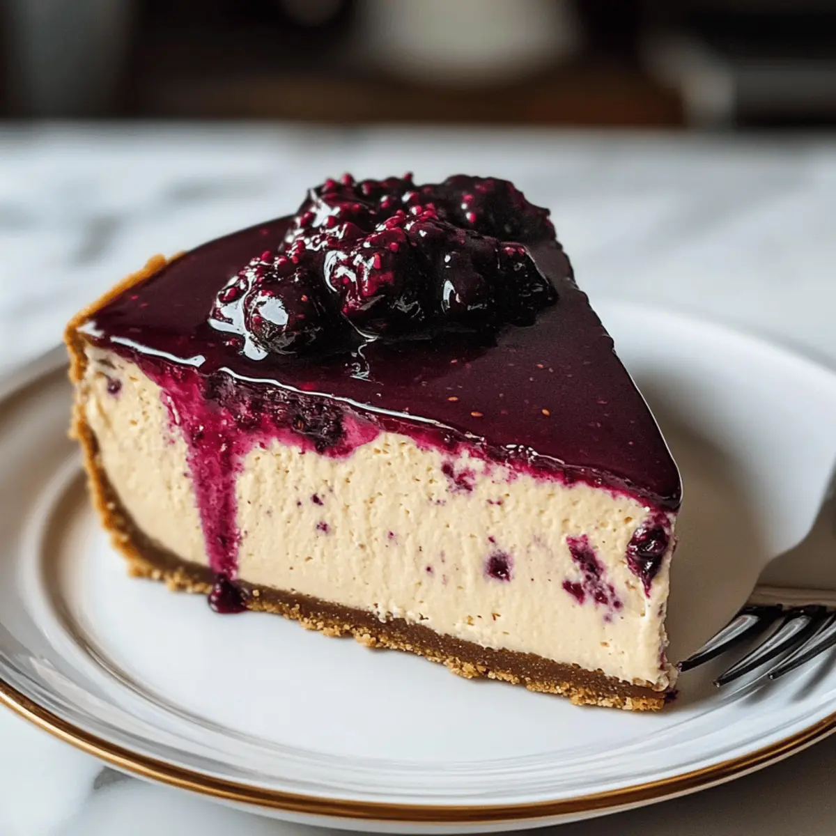 Während ich am Küchentisch sitze und die Aromen von frisch gebrühtem Earl Grey-Tee genieße, denke ich an das nächste Dessert, das ich zubereiten möchte: einen Earl Grey Mulberry Cheesecake. Diese Kombination aus blumigen Teearomen und süßer Mulberrsauce ist nicht nur ein Hochgenuss für Teeliebhaber, sondern auch eine köstliche Abwechslung zum traditionellen Käsekuchen. Das Beste daran? Diese Delikatesse lässt sich einfach und schnell zubereiten – perfekt für alle, die eine geschmackvolle Freude suchen, ohne aufwendige Zubereitungen. Zudem ist der Käsekuchen mit seiner leicht fruchtigen Note und seiner angenehmen Cremigkeit eine willkommene Abwechslung, die selbst die anspruchsvollsten Gäste begeistert. Wie wäre es, wenn wir gemeinsam in die Welt des Earl Grey Mulberry Cheesecakes eintauchen und ihn nach Hause bringen? Warum wirst du diesen Käsekuchen lieben? Einfachheit: Die Zubereitung dieses Kuchens ist unkompliziert und erfordert nur grundlegende Backkünste. Aromatischer Genuss: Die Kombination aus Earl Grey-Tee und süßer Mulberrsauce verleiht diesem Käsekuchen eine einzigartige Geschmacksnote. Vielfältige Variationen: Ob mit anderen Beeren oder unterschiedlichen Teesorten – dieser Käsekuchen lässt viel Raum für Kreativität! Perfekte Konsistenz: Der Kuchen hat eine seidige Textur, die jede Gabel zum Erlebnis macht. Beeindruckende Präsentation: Wird zusammen mit der Mulberrsauce serviert, sieht er nicht nur toll aus, sondern schmeckt auch himmlisch. Wenn du mehr über andere köstliche Käsekuchen erfahren möchtest, schau dir unsere Creme Brulee Kaesekuchen oder Kaffee Kaesekuchen Dessert Rezepte an! Earl Grey Maulbeer-Käsekuchen Zutaten Für den Boden • Graham Cracker Brösel – Bilden die Basis des Bodens; können durch zerdrückte Kekse ersetzt werden. • Zucker – Fügt Süße zum Boden und zur Füllung hinzu; verwende Kokoszucker für einen intensiveren Geschmack. • Geschmolzene Butter – Bindet die Zutaten des Bodens; vegane Alternativen sind möglich. Für die Füllung • Earl Grey Teebeutel – Verleiht dem Käsekuchen blumige Noten; entkoffeinierte Sorten können ersetzt werden. • Heißes Wasser – Dient zum Aufbrühen des Tees; hier sind keine Alternativen nötig. • Frischkäse – Kreiert eine reichhaltige und cremige Füllung; Neufchâtel-Käse kann eine leichtere Option sein. • Vanilleextrakt – Enhält den Geschmack; ist optional, falls nicht vorhanden. • Sauerrahm – Fügt eine gewisse Säure und Cremigkeit hinzu; kann durch griechischen Joghurt ersetzt werden. • Eier – Geben Struktur und Fülle zur Füllung; Leinsamen-Eier eignen sich als vegane Alternative. Für die Mulberrsauce • Maulbeeren – Topping, das Süße und Textur bietet; gefrorene Brombeeren oder Heidelbeeren können verwendet werden, wenn nötig. • Zitronensaft – Bringt Frische in die Mulberrsauce; Limettensaft kann ebenfalls verwendet werden, wenn nötig. Mit diesen Zutaten wird dein Earl Grey Maulbeer-Käsekuchen garantiert ein Hit! Step-by-Step Instructions for Earl Grey Maulbeer-Käsekuchen Step 1: Boden vorbereiten Mische die Graham Cracker Brösel mit Zucker und geschmolzener Butter, bis die Mischung die Konsistenz von feuchtem Sand hat. Drücke die Mischung gleichmäßig in eine gefettete Springform und achte darauf, dass der Boden fest ist. Lass ihn beiseite, während du die Füllung zubereitest. Step 2: Tee ziehen lassen Lass die Earl Grey Teebeutel zehn Minuten lang in heißem Wasser ziehen, damit der Tee intensiv durchzieht. Entferne danach die Beutel und lasse den Tee auf Zimmertemperatur abkühlen, während du mit der Füllung fortfährst. Step 3: Füllung herstellen Schlage den weichgemachten Frischkäse mit Zucker in einer großen Schüssel, bis die Mischung cremig und glatt ist. Füge dann den abgekühlten Earl Grey-Tee, Vanilleextrakt und Sauerrahm hinzu. Mische alles gut und gib die Eier einzeln dazu, bis sie gerade so eingearbeitet sind. Step 4: Backen Gieße die Füllung über den vorbereiteten Boden in der Springform und stelle sie in den vorgeheizten Ofen bei 160 °C (325 °F). Backe den Käsekuchen 55-60 Minuten lang, bis die Ränder fest sind, aber die Mitte noch leicht wackelt. Dies zeigt an, dass der Käsekuchen perfekt gegart ist. Step 5: Abkühlen Lass den Käsekuchen eine Stunde bei Zimmertemperatur abkühlen, bevor du ihn in den Kühlschrank stellst. Es ist wichtig, ihn mindestens vier Stunden oder über Nacht ruhen zu lassen, damit er gut durchkühlt und sich die Aromen entfalten können. Step 6: Sauce vorbereiten Erhitze in einem kleinen Topf die Maulbeeren zusammen mit etwas Wasser, Zucker und Zitronensaft. Lass die Mischung zehn bis zwölf Minuten köcheln, bis sie eindickt. Du kannst die Sauce entweder pürieren oder stückig lassen, je nach Vorliebe. Step 7: Servieren Nimm den gekühlten Earl Grey Maulbeer-Käsekuchen aus der Form und löffle die abgekühlte Mulberrsauce gleichmäßig darüber. Schneide den Käsekuchen in Stücke und serviere ihn sofort für ein unvergleichliches Geschmackserlebnis. Vorbereitung für den Earl Grey Maulbeer-Käsekuchen Der Earl Grey Maulbeer-Käsekuchen ist perfekt für alle, die ihre Mahlzeiten effizient planen möchten! Du kannst die Graham Cracker Brösel mit Zucker und geschmolzener Butter bis zu 24 Stunden im Voraus zubereiten und in die Springform drücken, um einen stabilen Boden zu erhalten. Auch die Füllung lässt sich ideal bis zu 3 Tage im Voraus anrühren; achte darauf, den Frischkäse vorher auf Zimmertemperatur zu bringen, um Klumpen zu vermeiden. Bei Bedarf kann der Käsekuchen nach dem Backen in den Kühlschrank gestellt werden, um sich über Nacht zu setzen. Für die Mulberrsauce kannst du die Zutaten ebenfalls vorab kochen und bis zu 3 Tage im Kühlschrank aufbewahren. So bleibt der Kuchen frisch und geschmackvoll, wenn du ihn servieren möchtest; einfach mit der Sauce überziehen und genießen – so sparst du wertvolle Zeit an hektischen Tagen! Variatione