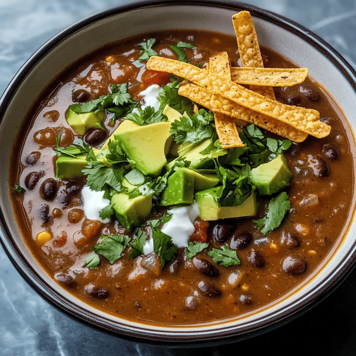 • Würze nach Geschmack: Passe die Menge an Chili-Pulver und Kreuzkümmel an deine Vorlieben an. So wird die Easy Black Bean Soup genau nach deinem Gusto!