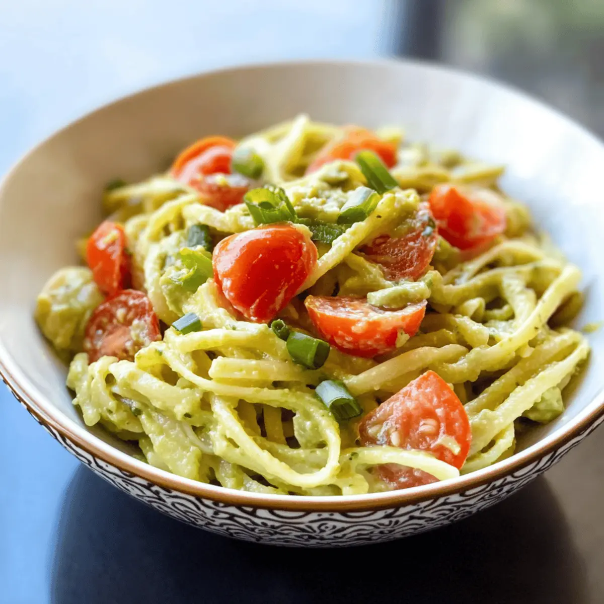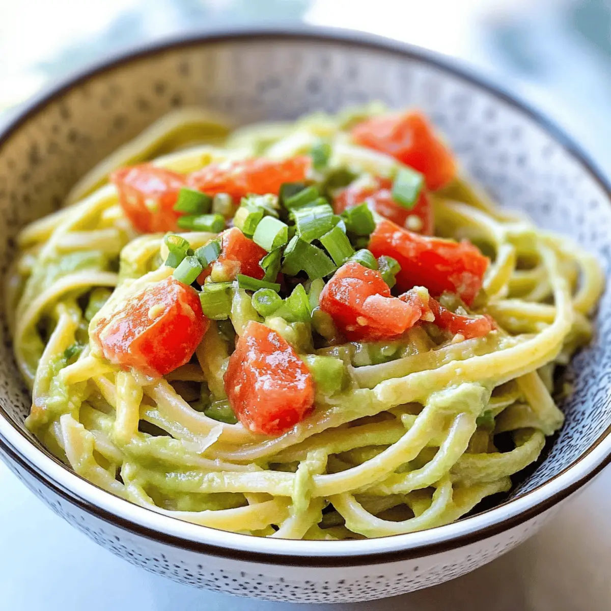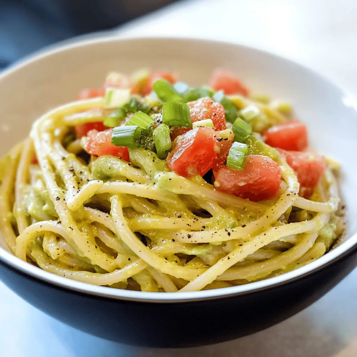 Es war ein hektischer Dienstagabend, als ich nach einem langen Arbeitstag in die Küche stürmte und etwas Schnelles, aber Köstliches zaubern wollte. So entstand mein Rezept für Easy Avocado Pasta – eine köstliche, geruchsneutrale Alternative, die in nur 15 Minuten fertig ist. Mit cremiger Avocado als Basis bietet dieses Rezept sowohl Geschmack als auch Nährstoffe und ist perfekt für alle, die auf der Suche nach einer schnellen, gesunden Mahlzeit sind. Das Beste daran? Kein Butter oder Sahne nötig! Diese Pasta ist nicht nur ein Genuss für die Geschmacksknospen, sondern auch ein echter Lebensretter an geschäftigen Abenden. Neugierig, wie eine so einfache Zubereitung so viel Genuss bieten kann? Warum wirst du dieses Rezept lieben? Einfachheit pur: Die Zubereitung ist blitzschnell und erfordert nur grundlegende Kochfähigkeiten – perfekt für hektische Abende. Gesunde Genuss: Mit einer cremigen Avocado-Sauce und frischen Zutaten ist dieses Rezept nicht nur lecker, sondern auch nährstoffreich. Vielseitigkeit: Du kannst die Pasta leicht anpassen, indem du verschiedene Gemüsesorten oder Proteinquellen hinzufügst, wie in unserem Rezept für Herzhafte Minestrone Suppe. Frischer Geschmack: Die Kombination aus Avocado, Zitrone und Tomaten verleiht diesem Gericht einen lebendigen Geschmack, der jeden begeistert. Schnelle Zubereitung: In nur 15 Minuten bist du fertig, sodass du mehr Zeit für deine Lieben hast, während du dich gleichzeitig gesund ernährst. Ein tolles Überraschungsgericht: Perfekt für Gäste – dieses Rezept wird sicherlich viele schmeichelhafte Kommentare einbringen! Einfaches Avocado Pasta Zutaten Für die Pasta Pasta – Wähle deine Lieblingssorte, wie Spaghetti oder Penne, um die perfekte Basis zu schaffen. Für die Avocado-Sauce Avocado – Eine reife Avocado sorgt für die optimale Cremigkeit der Sauce. Tomate – Frische, reife Tomaten bringen Säure und Balance in das Gericht. Frühlingszwiebel – Gibt einen milden Zwiebelgeschmack und Crunch; rote Zwiebel ist eine gute Alternativwahl. Knoblauch – Frischt die Sauce auf; verwenden einen Mikroplane für die beste Textur. Zitronensaft – Bringt Helligkeit ins Gericht; frischer Zitronensaft ist hier am besten. Salz und Pfeffer – Entscheidend für die Würze; nach Geschmack anpassen. Tipp: Diese einfache Avocado Pasta wird besonders cremig, wenn du die Sauce mit etwas von dem reservierten Nudelwasser verdünnst. Schritt-für-Schritt-Anleitung für Einfache Avocado Pasta Step 1: Pasta kochen Setze einen großen Topf mit gesalzenem Wasser auf und bringe ihn zum Kochen. Füge die Pasta deiner Wahl hinzu, z. B. Spaghetti oder Penne, und koche sie gemäß der Anweisungen auf der Verpackung al dente, was in der Regel etwa 8–10 Minuten dauert. Denke daran, eine halbe Tasse vom heißen Nudelwasser aufzuheben, bevor du die Pasta abtropfst. Step 2: Avocado-Sauce zubereiten Halbiere eine reife Avocado und entnehme das Fruchtfleisch. In einer großen Schüssel zerdrücke die Avocado mit einer Gabel, bis sie cremig ist. Rühre geriebenen Knoblauch, frischen Zitronensaft, Salz und Pfeffer unter. Füge 60 ml vom reservierten Nudelwasser hinzu, um die Sauce leichter und geschmeidiger zu machen. Step 3: Pasta und Sauce kombinieren Wenn die Pasta gekocht und abgetropft ist, gib sie sofort in die Schüssel mit der Avocado-Sauce. Füge die gewürfelten, reifen Tomaten und die in Ringe geschnittenen Frühlingszwiebeln hinzu. Mische alles gründlich, bis die Pasta gleichmäßig mit der cremigen Avocado-Sauce bedeckt ist. Wenn die Sauce zu dick ist, füge nach Bedarf mehr von dem reservierten Nudelwasser hinzu. Step 4: Servieren und genießen Richte die einfache Avocado Pasta auf Tellern an und garniere sie nach Belieben mit zusätzlichen Frühlingszwiebeln oder einem Spritzer Zitronensaft. Achte darauf, dass die Sauce schön glänzt und die Pasta gut durchzogen ist. Diese gesunde und leckere Mahlzeit ist nun bereit, serviert zu werden! Variationen der einfachen Avocado Pasta Lass deiner Kreativität freien Lauf und personalisiere dieses Rezept nach deinem Geschmack! Proteinreich: Füge gegrillte Garnelen oder gebackenen Tofu hinzu, um mehr Substanz zu erhalten. Diese Zutaten verleihen der Pasta nicht nur mehr Geschmack, sondern machen sie auch noch nährstoffreicher. Vollkorn-Pasta: Nutze Vollkorn- oder Kichererbsenpasta für mehr Ballaststoffe und Nährstoffe. Diese Alternativen bringen nicht nur mehr Farbe, sondern auch Gerichte die einem gesunden Lifestyle entsprechen. Käse-Liebhaber: Streue zerkrümelten Feta oder Parmesan über das fertige Gericht für einen cremigen, salzigen Akzent. Der Käse ergänzt die Aromen perfekt und sorgt für eine zusätzliche Schicht Geschmack. Zitronige Note: Experimentiere mit mehr Zitronensaft oder -zesten für zusätzlichen frischen Schwung. Diese kleine Anpassung kann die gesamte Frische des Gerichts steigern. Schärfekick: Füge frischen Chili oder rote Pfefferflocken hinzu, um eine angenehme Schärfe zu erzielen. Eine kleine Menge bringt aufregende Würze und sorgt dafür, dass das Gericht alles andere als langweilig ist. Einfache Kräuter: Frische Kräuter wie Basilikum oder Koriander verleihen der Pasta ein lebhaftes Aroma und eine schöne Garnitur. Diese Kräuter ergänzen nicht nur die Avocado, sondern bringen auch ein frisches Gefühl in jedes Biss. Zusätzliche Gemüse: Integriere Zucchini, Spinats oder Erbsen für mehr Nährstoffe und eine bunte Präsentation. Diese gesunden Zutaten machen das Gericht nicht nur ansehnlicher, sondern auch noch vielseitiger. Denke daran, dass jede Variation das Gefühl, das du beim Genießen hast, bereichern kann. Wenn du nach weiteren köstlichen Rezepten suchst, schau dir unbedingt auch unser Rezept für Zucchini Scarpaccia oder die Brownies Rezept Lecker an! Meal Prep für die Einfache Avocado Pasta Die Einfache Avocado Pasta ist ideal für die Vorbereitung im Voraus! Du kannst die Avocado-Sauce bis 24 Stunden vorher zubereiten – einfach d