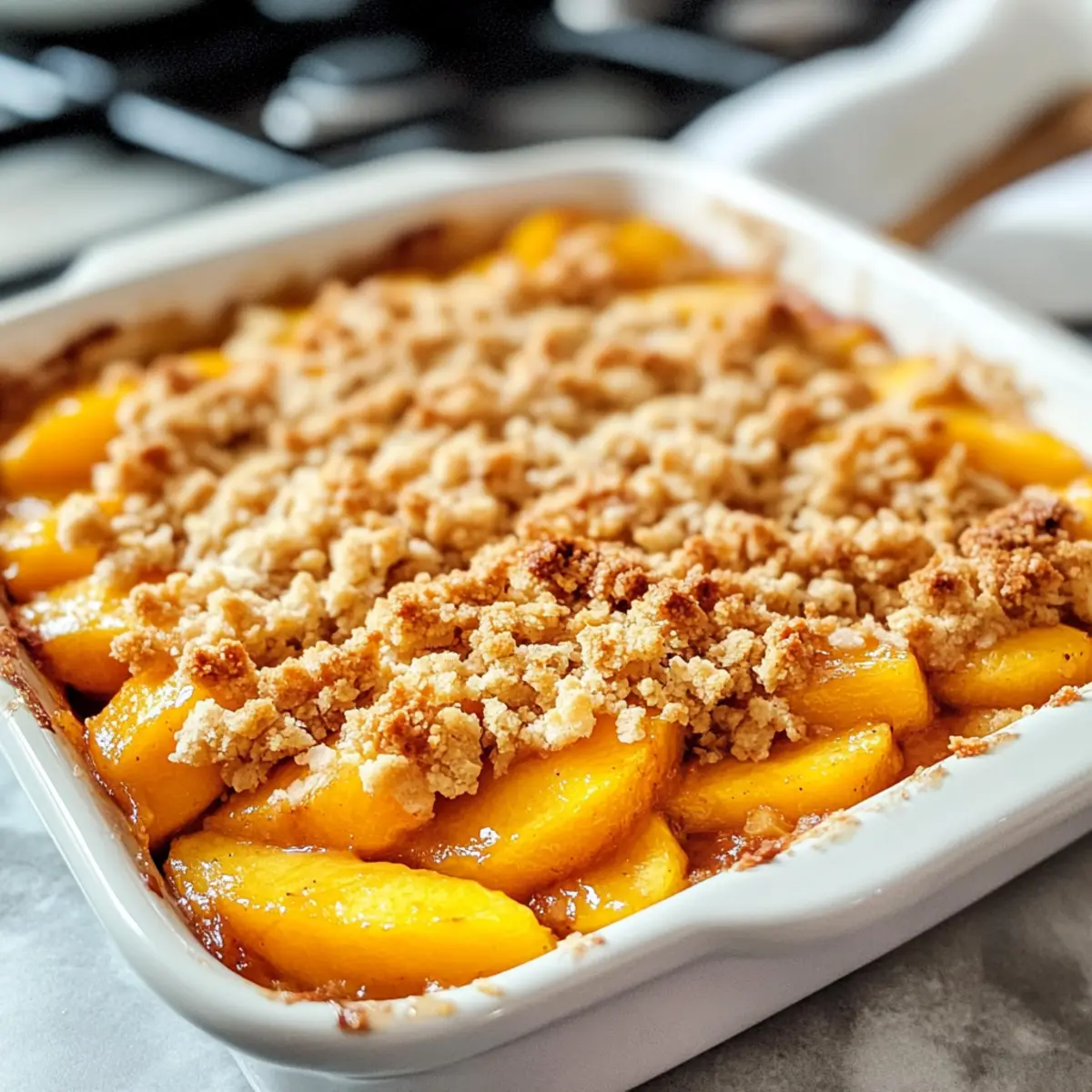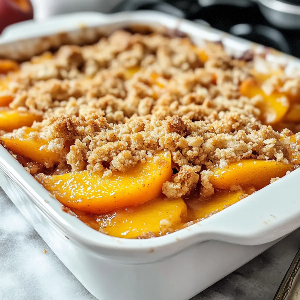 Ein flüchtiger Blick in meine Vorratskammer zeigt eine Dose mit saftigen Pfirsichen, die nur darauf warten, in etwas Leckeres verwandelt zu werden. Mit meinem Rezept für ein einfaches Dosenpfirsich-Crisp bringe ich die süße Essenz des Sommers ganz unkompliziert in meine Küche. Diese schmackhafte Nachspeise kombiniert zarte Dosenpfirsiche mit einer knusprigen, goldenen Kruste, die nicht nur schnell zuzubereiten ist, sondern auch jeden begeistern wird. Perfekt für spontane Feste oder einen gemütlichen Abend, ist dieses Rezept ein kinderleichtes Highlight, das sich auch für verschiedene Früchte anpassen lässt. Wer hätte gedacht, dass so viel Genuss mit so wenig Aufwand möglich ist? Lasst uns gemeinsam in die Welt des Desserts eintauchen! Warum ist dieses Rezept so besonders? Einfachheit: Das Rezept ist so unkompliziert, dass selbst Kochanfänger es leicht umsetzen können. Süßer Geschmack: Die Kombination aus saftigen Dosenpfirsichen und der knusprigen Kruste bietet einen unvergleichlichen Genuss. Vielseitigkeit: Du kannst die Dosenpfirsiche ganz nach Belieben durch andere Früchte ersetzen, um immer wieder neue Geschmackserlebnisse zu kreieren. Schnelle Zubereitung: In nur 35 Minuten hast du ein köstliches Dessert auf dem Tisch, ideal für spontane Einladungen oder einen gemütlichen Filmabend. Klassischer Komfort: Dieses Dosenpfirsich-Crisp ist ein echter Klassiker, der Erinnerungen an Sommerpicknicks weckt und perfekt zu einem großen Scoop Vanilleeis passt. Für weitere Ideen könntest du auch meine Herzhafte Minestrone Suppe oder Zitronen Brownies Einfach ausprobieren! Einfache Dosenpfirsich-Crisp Zutaten • Werfen wir einen Blick auf die köstlichen Zutaten, die dir bei der Zubereitung dieses einfachen Dosenpfirsich-Crisp zur Verfügung stehen! Für die Füllung Dosenpfirsiche – Das Hauptzutat, das Süße und Feuchtigkeit liefert; du kannst auch frische oder gefrorene Pfirsiche benutzen und die Backzeit entsprechend anpassen. Zimt – Fügt warme Gewürznoten zur Füllung hinzu; du kannst die Menge erhöhen, wenn du einen intensiveren Geschmack wünschst. Muskatnuss – Verstärkt die Geschmacksintensität; mehr Zimt kann als einfache Alternative verwendet werden. Salz – Balanciert die Süße im Rezept; verwende Meersalz oder grobes Salz. Vanilleextrakt – Sorgt für aromatische Tiefe in der Pfirsichfüllung; für einen intensiveren Geschmack ist reiner Vanilleextrakt ideal. Für den Belag Weizenmehl – Die Basis des Crisp-Belags für Struktur; du kannst glutenfreies Mehl als Ersatz verwenden. Haferflocken – Trägt zur Textur und Kaubarkeit des Belags bei; schnelle Haferflocken sind ebenfalls geeignet. Brauner Zucker – Liefert Süße und einen Hauch von Melassegeschmack; weißer Zucker ist eine Alternative, könnte jedoch den Geschmack verändern. Kaltes Butter – Wichtig für eine flockige, knusprige Textur des Belags; benutze ungesalzene Butter und halte sie kalt, um die Textur zu bewahren. Das Rezept für einfache Dosenpfirsich-Crisp ist perfekt für die warme Jahreszeit und lässt sich ganz wunderbar abwandeln! Schritt-für-Schritt-Anleitung für Einfache Dosenpfirsich-Crisp Step 1: Ofen vorheizen Heize deinen Ofen auf 175 °C vor und fette eine 9×9-Zoll Backform leicht ein. Dies ist der erste Schritt für deine Einfache Dosenpfirsich-Crisp und sorgt dafür, dass der Teig gleichmäßig bräunt. Während der Ofen aufheizt, kannst du die Vorbereitungen für die Füllung treffen. Step 2: Füllung zubereiten In einer großen Schüssel kombinierst du die Dosenpfirsiche, einschließlich des aufgefangenen Saftes, mit Zimt, Muskatnuss, Salz und Vanilleextrakt. Rühre alles gut um, bis sich die Zutaten vermischen. Diese aromatische Mischung wird die Basis für deine köstliche Einfache Dosenpfirsich-Crisp bilden. Step 3: Peach Mixture in die Form geben Gieße die Pfirsichmischung gleichmäßig in die vorbereitete Backform. Achte darauf, dass die Früchte gut verteilt sind, damit sie gleichmäßig backen. Die Farbe und der süße Duft dieser Mischung machen schon jetzt Appetit auf mehr! Step 4: Belag zubereiten In einer separaten Schüssel vermischst du das Weizenmehl, die Haferflocken, den braunen Zucker und Zimt. Schneide die kalte Butter mit einem Teigmischer oder deinen Fingerspitzen ein, bis die Mischung krümelig ist. Diese Mischung wird den knusprigen Belag für deine Einfache Dosenpfirsich-Crisp bilden. Step 5: Belag auf die Füllung verteilen Verteile den krümeligen Belag gleichmäßig über die Pfirsiche in der Backform. Achte darauf, dass die Schicht nicht zu dick ist, damit der Belag schön knusprig wird, während er backt. Der Anblick des goldbraunen Belags wird dich schon auf die kommenden Aromen vorbereiten. Step 6: Backen Schiebe die Backform in den vorgeheizten Ofen und backe die Einfache Dosenpfirsich-Crisp für 30 bis 35 Minuten. Achte darauf, dass der Belag goldbraun ist und die Pfirsichsäfte an den Rändern sprudeln. Das köstliche Aroma, das während des Backens durch die Küche zieht, wird alle anlocken. Step 7: Abkühlen lassen und servieren Lasse die Einfache Dosenpfirsich-Crisp nach dem Backen etwa 10 Minuten abkühlen. Dies hilft, die Aromen zu setzen. Serviere das warme Dessert am besten mit einer Kugel Vanilleeis für einen herrlichen Kontrast. Tipps zur Vorbereitung für dein Einfaches Dosenpfirsich-Crisp Einfache Dosenpfirsich-Crisp eignet sich hervorragend zur Vorbereitung, was dir viel Zeit während hektischer Tage spart! Du kannst die Pfirsichfüllung bereits bis zu 24 Stunden im Voraus zubereiten: Mische einfach die Dosenpfirsiche mit Zimt, Muskatnuss, Salz und Vanille und bewahre sie in einem luftdichten Behälter im Kühlschrank auf, um ihre Frische zu bewahren. Ebenso kannst du die Streuselmischung für den Belag im Voraus zubereiten und bis zu 3 Tage im Kühlschrank aufbewahren. Achte darauf, die kalte Butter bis zur Verarbeitung gut gekühlt zu lassen, um die knusprige Textur zu garantieren. Wenn es Zeit ist, dein Einfach