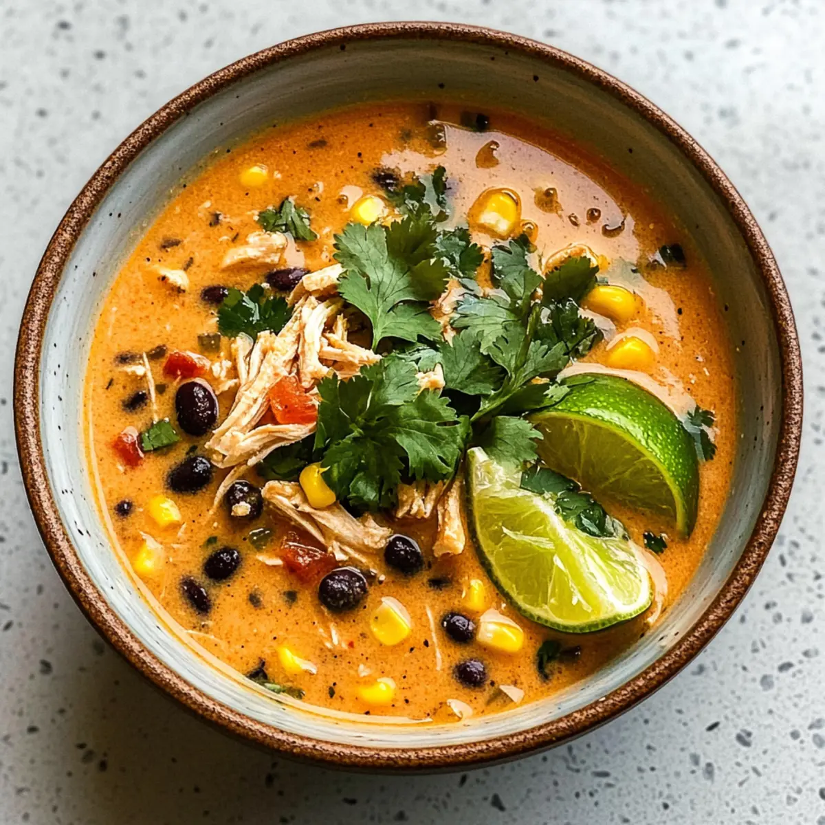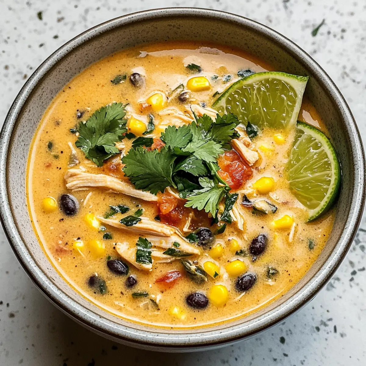 Eine cremige Suppe, die zarte Hähnchenstücke mit rauchigen Poblano-Paprikas und nahrhaften schwarzen Bohnen kombiniert, perfekt für schnelle Abendessen.