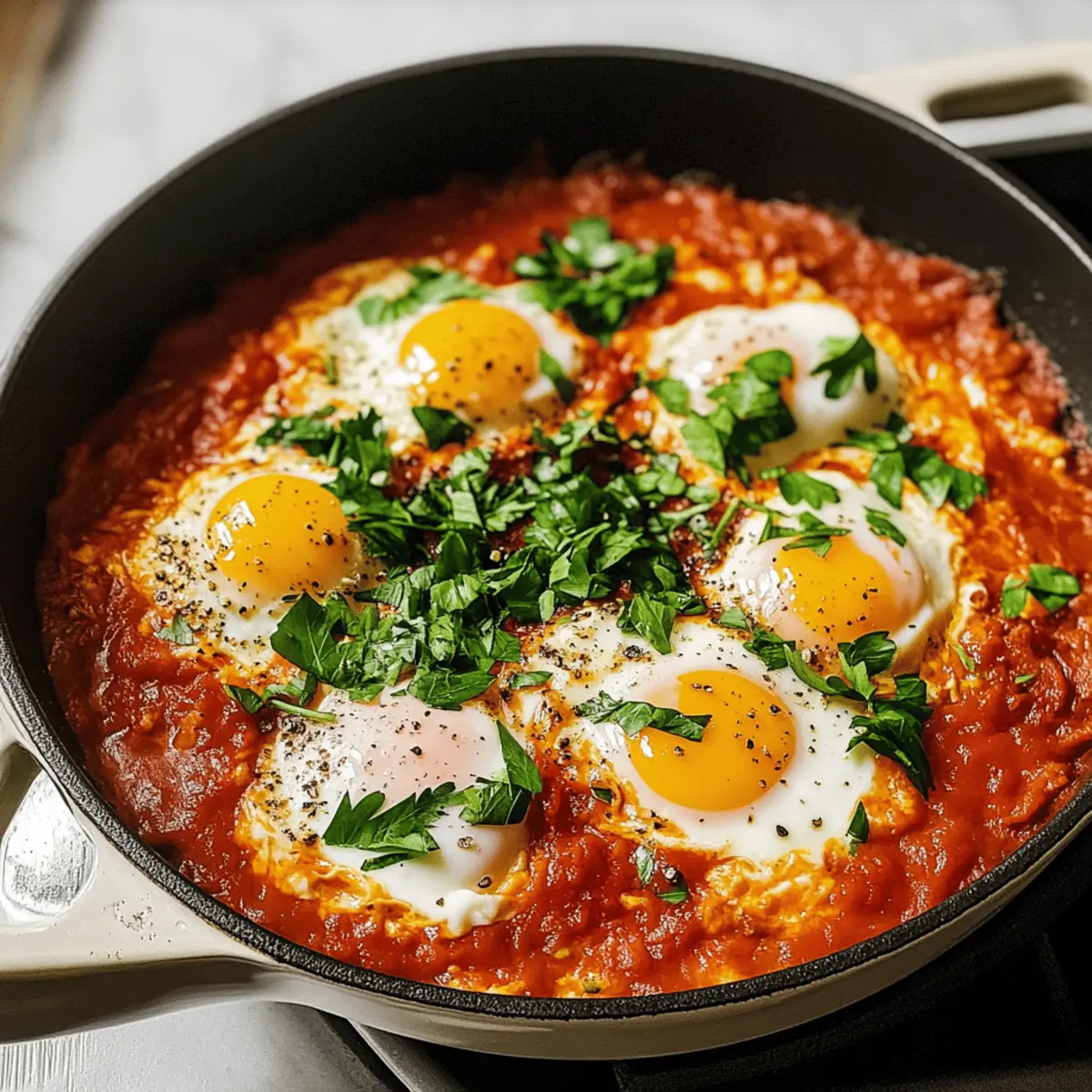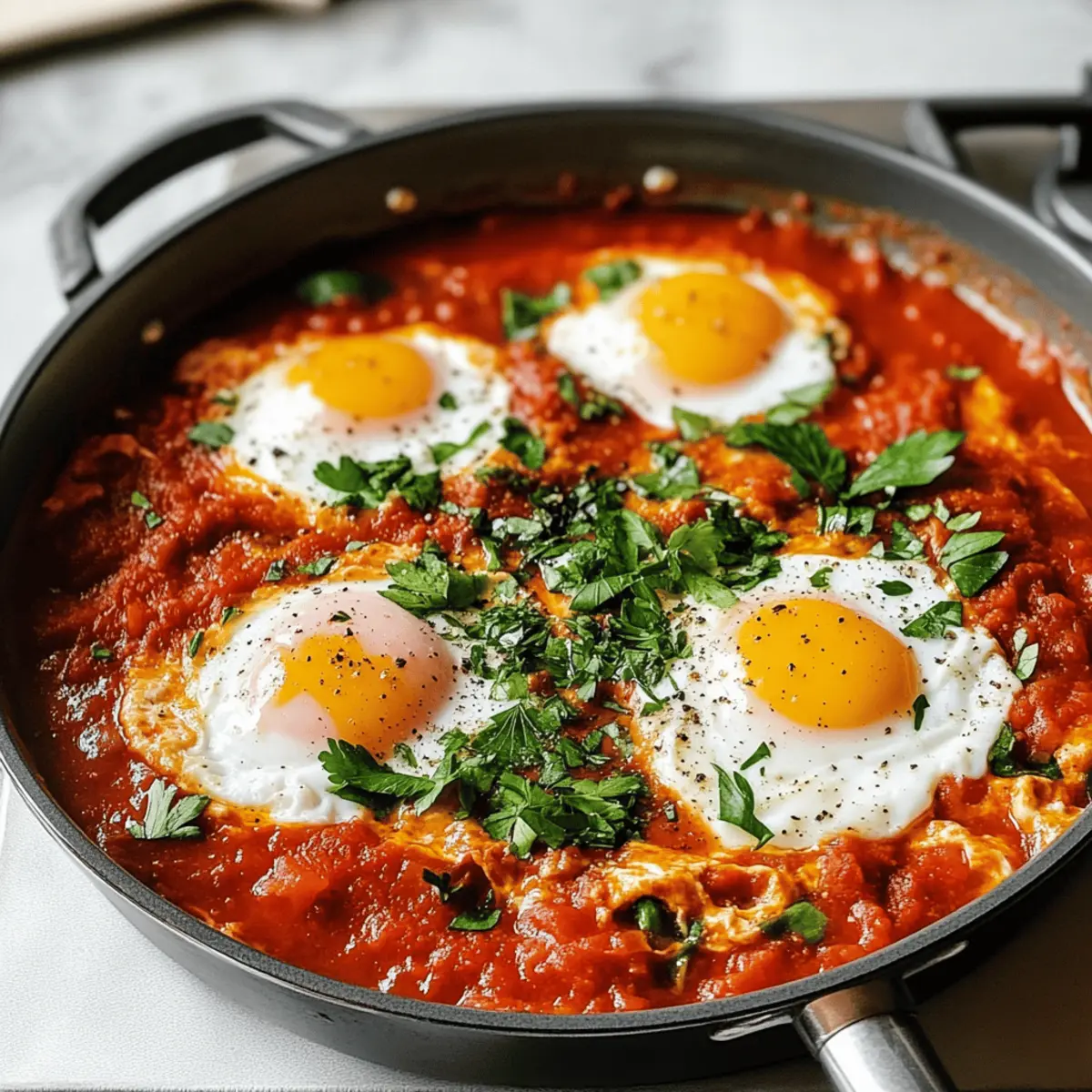 Das Straßenleben in Tel Aviv hat mich immer fasziniert – die lebhaften Märkte und die köstlichen Düfte, die aus kleinen Garküchen strömen. Als ich das erste Mal Shakshuka probierte, war ich sofort begeistert. Diese traditionelle Speise vereint die kräftigen Aromen von reifen Tomaten, Zwiebeln, Knoblauch und Gewürzen in einem herzhaften Gericht, das sowohl zum Frühstück als auch zum Abendessen perfekt ist. Das Beste an meinem Easy Traditional Shakshuka-Rezept ist, dass es nicht nur gesund und vegetarisch ist, sondern auch in weniger als 30 Minuten zubereitet werden kann – ideal für Menschen, die frisches, hausgemachtes Essen lieben, aber wenig Zeit haben. Mit der Möglichkeit, verschiedene Variationen auszuprobieren, wie die grüne oder orange Shakshuka, lässt dieses Gericht sicher auch bei dir Platz für Kreativität. Bist du bereit, dein Leben mit einem Hauch von Tel Aviv zu bereichern? Warum wirst du dieses Rezept lieben? Vielseitigkeit: Dieses Shakshuka-Rezept bietet unzählige Variationen, von der traditionellen bis zur grünen oder orange Variante, sodass du deiner Kreativität freien Lauf lassen kannst. Schnelle Zubereitung: In weniger als 30 Minuten ist dieses Gericht fertig – perfekt für vielbeschäftigte Genießer! Gesund und nahrhaft: Mit frischen Zutaten und wenig Fett ist es eine gesunde Option für jede Mahlzeit. Herzhaft und lecker: Die Kombination aus würziger Tomatensauce und zarten, pochierten Eiern sorgt für ein unvergleichliches Geschmackserlebnis. Perfektes Comfort Food: Ob zum Frühstück oder Abendessen, Shakshuka bringt Gemütlichkeit und Genuss auf den Tisch. Unbedingt dazu empfehlen: genieße es mit frischem Brot oder Pita, um die köstliche Sauce aufzutunken. Shakshuka Zutaten • Zutaten für die Sauce und Eier Olivenöl – ist das ideale Kochfett, um die Gemüsebasis zu sautieren; verwende für zusätzlichen Geschmack ein hochwertiges Olivenöl. Zwiebel – bringt Süße und Tiefe in die Sauce; du kannst sie auch durch Schalotten ersetzen. Rote Paprika – sorgt für eine süße Note und schöne Farbe; gelbe oder grüne Paprika sind ebenfalls gute Alternativen. Knoblauch – intensiviert den Geschmack; frisch gehackt ist am besten, während Knoblauchpulver nur bedingt geeignet ist. Paprika – fügt Wärme und einen sanften Rauchgeschmack hinzu; geräucherte Paprika kann dem Gericht zusätzlichen Tiefgang verleihen. Kreuzkümmel – trägt zu den erdigen, aromatischen Noten bei; Caraway kann als interessante Variante verwendet werden. Chilipulver – bringt eine milde Schärfe; passe die Menge nach deinem Geschmack an, für mehr Kick kann Cayenne genutzt werden. Ganze geschälte Tomaten – bilden die Basis der Sauce und zerfallen beim Kochen leicht; du kannst auch frische gewürfelte Tomaten verwenden, benötigst jedoch längere Kochzeit. Große Eier – werden in der Sauce pochiert und fügen wertvolles Protein hinzu; für eine leichtere Variante können auch nur Eiweiße verwendet werden. Salz und Pfeffer – unverzichtbare Gewürze, um Aromen zu intensivieren; nach Belieben anpassen. Frischer Koriander & Petersilie – bringen frische Aromen ins Gericht; alternativ kannst du auch Basilikum oder Minze verwenden. Die Zutaten sind perfekt, um deine eigene Shakshuka zu kreieren und dir die Aromen von Tel Aviv nach Hause zu holen! Schritt-für-Schritt-Anleitung für die einfache Shakshuka Schritt 1: Gemüse anbraten Erhitze in einer großen Pfanne bei mittlerer Hitze ein paar Esslöffel Olivenöl. Füge die gewürfelte Zwiebel und die rote Paprika hinzu und brate sie etwa 5 Minuten lang an, bis die Zwiebel glasig wird. Achte darauf, dass das Gemüse nicht anbrennt, rühre regelmäßig um. Schritt 2: Gewürze hinzufügen Gib den gehackten Knoblauch sowie Paprika, Kreuzkümmel und Chilipulver in die Pfanne. Koche die Mischung für eine weitere Minute, bis die Aromen freigesetzt werden und der Knoblauch duftet. Die einfache Shakshuka wird jetzt aromatisch und appetitlich! Schritt 3: Tomaten einrühren Gieße die ganzen geschälten Tomaten in die Pfanne. Zerdrücke die Tomaten mit einem Spatel, damit sie sich in die Sauce integrieren. Würze die Mischung mit Salz und Pfeffer und bringe sie zum Simmern. Lasse die Sauce ca. 10 Minuten köcheln, bis sie leicht eingedickt ist. Schritt 4: Eier pochieren Verwende einen Löffel, um kleine Vertiefungen in die Tomatensauce zu formen, und schlage vorsichtig die großen Eier in jede Vertiefung. Reduziere die Hitze auf niedrig und lasse die Eier 5-8 Minuten garen, bis das Eiweiß fest ist, die Eigelbe jedoch noch leicht flüssig bleiben. Decke die Pfanne ab, um den Garprozess zu beschleunigen. Schritt 5: Gericht anrichten Sobald die Eier den gewünschten Gargrad erreicht haben, nimm die Pfanne vom Herd. Garniere die Shakshuka mit frisch gehacktem Koriander und Petersilie für einen zusätzlichen Farb- und Frischekick. Serviere das Gericht heiß, idealerweise mit frischem Brot oder Pita zum Dippen! Meal Prep für deine Shakshuka Die Easy Traditional Shakshuka ist ideal für die Vorbereitung im Voraus! Du kannst die Tomatensauce bis zu 3 Tage im Voraus zubereiten und im Kühlschrank aufbewahren. Einfach alle Zutaten wie Zwiebel, Paprika, Knoblauch und Gewürze in der Pfanne anbraten und die geschälten Tomaten einrühren. Ebenso kannst du die Eier bis zu 24 Stunden im Voraus vorbereiten, indem du sie einzeln in kleine Schalen schägst, um eine kontrollierte Zubereitung zu gewährleisten. Wenn du bereit bist zu genießen, erhitze die Sauce in der Pfanne, forme die Vertiefungen und schlage die Eier hinein, die du dann für 5-8 Minuten köcheln lässt bis das Eiweiß fest und die Eigelbe noch leicht flüssig sind – so bleibt die Shakshuka einfach köstlich und frisch! Variationen und Alternativen Gestalte dein Shakshuka-Rezept ganz nach deinem Geschmack und verwandle es in etwas Einzigartiges! Grüne Shakshuka: Verwende frischen Spinat und Rosenkohl für eine grüne Variante, die eine tolle Farbexplosion auf