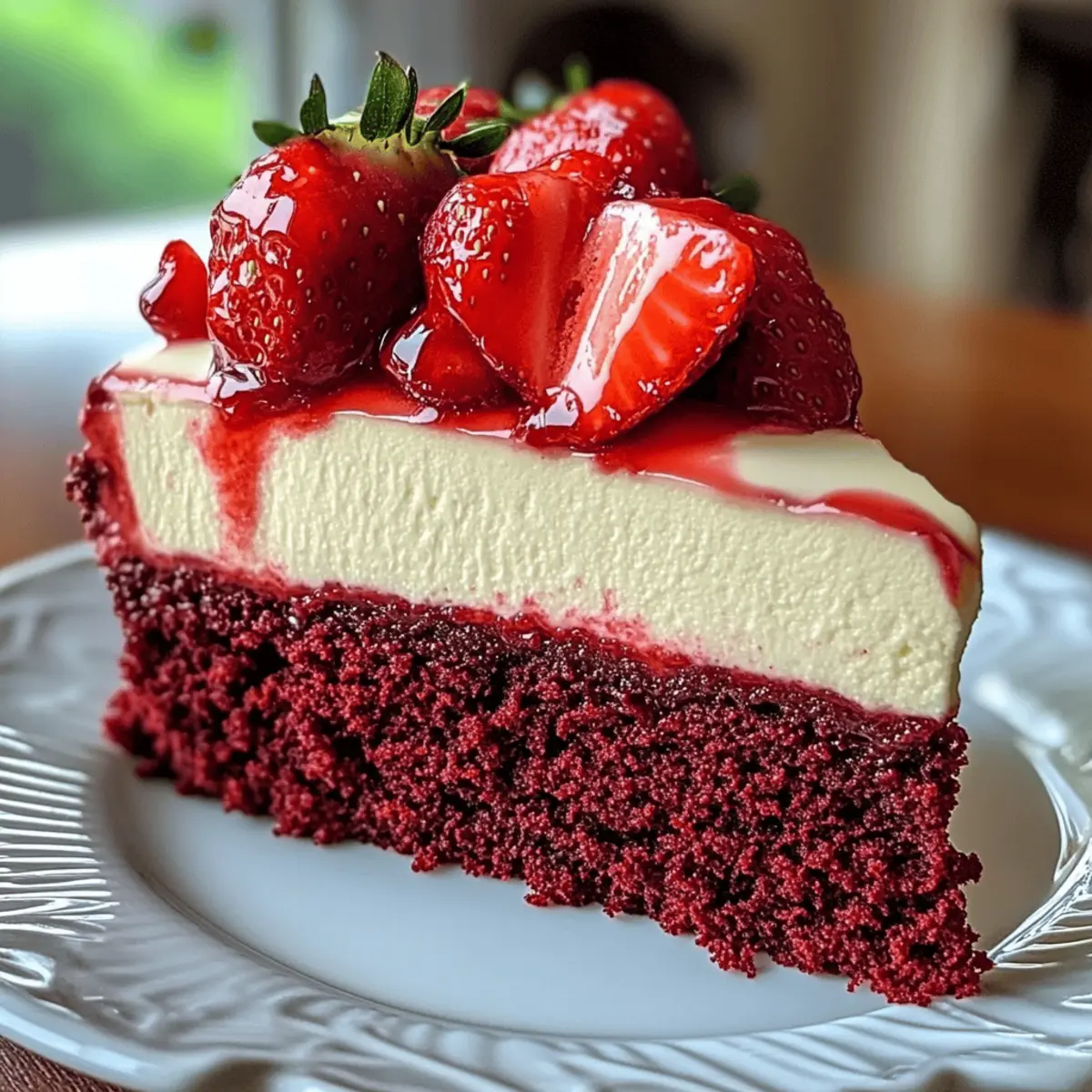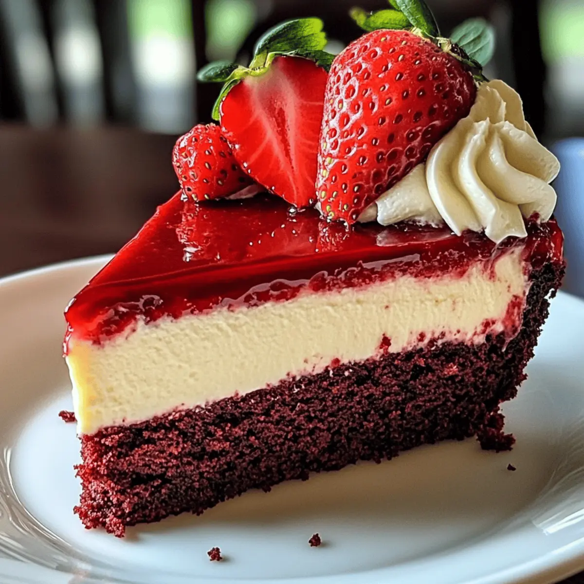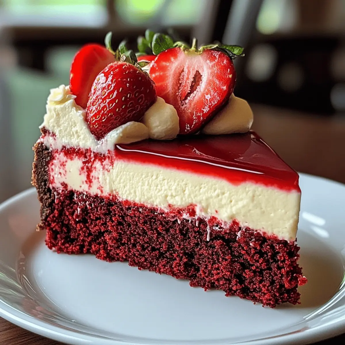 Wenn ich an besondere Anlässe denke, kommt mir sofort der Traum von einem perfekten Dessert in den Sinn: der Strawberry Red Velvet Cheesecake Delight. Diese himmlische Kombination vereint die samtige Fülle eines Red Velvet Kuchens mit der cremigen Köstlichkeit einer Cheesecake-Schicht. Jeder Biss ist ein purer Genuss, verfeinert mit prickelnden frischen Erdbeeren und einem verführerischen Glanz, der diesem Dessert nicht nur Geschmack, sondern auch ein beeindruckendes Aussehen verleiht. Ein wahrer Genuss, der nicht nur das Herz von Feinschmeckern höher schlagen lässt, sondern auch im Handumdrehen vorbereitet ist. Wer kann da widerstehen? Bereit, mehr über die Zubereitung dieses unwiderstehlichen Desserts zu erfahren? Warum wirst du dieses Rezept lieben? Einfachheit: Die Zubereitung ist unkompliziert und benötigt keine speziellen Fähigkeiten. Mit nur wenigen Schritten entsteht ein beeindruckendes Dessert. Reichhaltiger Geschmack: Die Kombination aus zartem Red Velvet und cremigem Cheesecake sorgt für ein Geschmackserlebnis, das überrascht und begeistert. Vielseitigkeit: Dieses Rezept ist perfekt für besondere Anlässe, ob Geburtstage oder Feiertage. Du kannst auch mit verschiedenen Früchten experimentieren, wie in der Vanille Creme Rezept. Ein Publikumsliebling: Jeder wird dieses Dessert lieben, von Freunden bis zur Familie. Die visuelle Präsentation und der Geschmack sorgen für wow-Momente! Zeitersparnis: Mit nur wenigen Stunden Chill-Zeit kannst du es am Vortag vorbereiten und in Ruhe genießen. Probiere auch das Kaffee Kaesekuchen Dessert für eine weitere köstliche Option! Perfekte Textur: Die Kombination aus fudgy Kuchen und cremigem Kern macht jeden Biss zu einem himmlischen Erlebnis. Erdbeer Red Velvet Cheesecake Zutaten Für den Red Velvet Kuchen • Rote Samt Kuchenmischung – verleiht dem Kuchen den charakteristischen Geschmack und die schöne Farbe. Hinweis: Kann durch Schokoladenkuchenmischung ersetzt werden. • Eier – binden die Zutaten zusammen und sorgen für Struktur. Wichtig: Verwende große Eier bei Raumtemperatur für eine bessere Mischung. • Allzweckmehl – gibt dem Kuchenteig Fülle. Hinweis: Eine glutenfreie Mehlmischung ist eine gute Alternative. • Ungesüßtes Kakaopulver – verstärkt den Schokoladengeschmack im Red Velvet. Hinweis: Hochwertiges Kakaopulver wird für den besten Geschmack empfohlen. • Zucker (nicht braun) – sorgt für die Süße im Kuchen. Hinweis: Reduziere die Menge für eine weniger süße Variante. Für die Cheesecake-Schicht • Frischkäse – gibt der Cheesecake-Schicht ihre cremige Textur. Hinweis: Mascarpone kann als süßere Variante verwendet werden. • Zucker – süßt die Cheesecake-Schicht. Hinweis: Verwende weniger für eine weniger süße Cheesecake-Schicht. • Eier – sorgen für die Bindung des Käsekuchens. Wichtig: Die Eier sollten ebenfalls bei Raumtemperatur sein. Für die Garnitur • Frische Erdbeeren – bieten frische Noten und Kontrast zu den reichen Schichten. Hinweis: Auch andere Beeren sind möglich, aber Erdbeeren sind bevorzugt. • Erdbeer-Glasur – fügt Süße und visuelle Anziehung hinzu. Hinweis: Selbstgemacht sorgt für besseren Geschmack. Genieße die Herstellung dieser köstlichen Erdbeer Red Velvet Cheesecake und lasse dich von seiner Vielfalt begeistern! Schritt-für-Schritt-Anleitung für Erdbeer Red Velvet Cheesecake Traum Step 1: Red Velvet Boden vorbereiten Trenne die trockenen Zutaten (Kuchenmischung, Mehl, Kakaopulver, Zucker) von den feuchten Zutaten (Eier, Öl). Mische die trockenen Zutaten in einer großen Schüssel und die feuchten Zutaten in einer anderen. Kombiniere beide Mischungen vorsichtig, bis sie gerade vermischt sind. Gieße den Teig in eine gefettete Springform und backe ihn bei 175 Grad Celsius für 30-35 Minuten, bis ein Zahnstocher sauber herauskommt. Step 2: Cheesecake-Schicht herstellen Schlage den Frischkäse in einer großen Schüssel mit einem Handmixer, bis er glatt ist. Füge schrittweise den Zucker hinzu und mixe weiter. Gib die Eier nacheinander hinzu und rühre jede neue Zugabe gut unter. Wenn die Mischung cremig und homogen ist, gieße sie vorsichtig über den abgekühlten Red Velvet Boden. Step 3: Cheesecake backen Backe die Cheesecake-Schicht bei 160 Grad Celsius für etwa 45 Minuten. Achte darauf, dass die Ränder fest und die Mitte leicht wackelig ist, wenn du die Form schüttelst. Dies stellt sicher, dass der Cheesecake nach dem Abkühlen die perfekte Textur hat. Step 4: Kühlen Lasse den Cheesecake nach dem Backen etwa 1 Stunde bei Raumtemperatur stehen, bevor du ihn in den Kühlschrank stellst. Lass ihn mindestens 4 Stunden oder über Nacht kühlen, damit die Aromen sich vollständig entfalten können und die Textur fest wird. Step 5: Mit Erdbeeren und Glasur garnieren Vor dem Servieren die frischen Erdbeeren gleichmäßig auf dem Cheesecake anrichten. Bereite die Erdbeer-Glasur vor und träufle sie über die Erdbeeren. Dieser Schritt bringt nicht nur einen frischen Geschmack, sondern macht deinen Erdbeer Red Velvet Cheesecake Traum auch optisch ansprechend. Rezept im Voraus vorbereiten Der Erdbeer Red Velvet Cheesecake Traum ist perfekt für deine Meal Prep-Planung! Du kannst die Red Velvet Kuchenbasis bis zu 24 Stunden im Voraus backen und gut abgedeckt im Kühlschrank aufbewahren, um die Frische zu erhalten. Auch die Cheesecake-Schicht lässt sich 3 Tage vorher zubereiten; achte darauf, dass der Cheesecake nach dem Backen abkühlt und mindestens 4 Stunden im Kühlschrank fest wird. Am Tag des Servierens einfach die frischen Erdbeeren auf dem Cheesecake anrichten und mit der Glasur beträufeln. So sparst du nicht nur Zeit, sondern erhältst ein ebenso köstliches Dessert, das dich und deine Gäste beeindrucken wird! Lagerungstipps für Erdbeer Red Velvet Cheesecake Kühlschrank: Bewahre den übrig gebliebenen Cheesecake in einem luftdichten Behälter im Kühlschrank auf. Er bleibt dort bis zu 3 Tage frisch und köstlich. Gefriersch