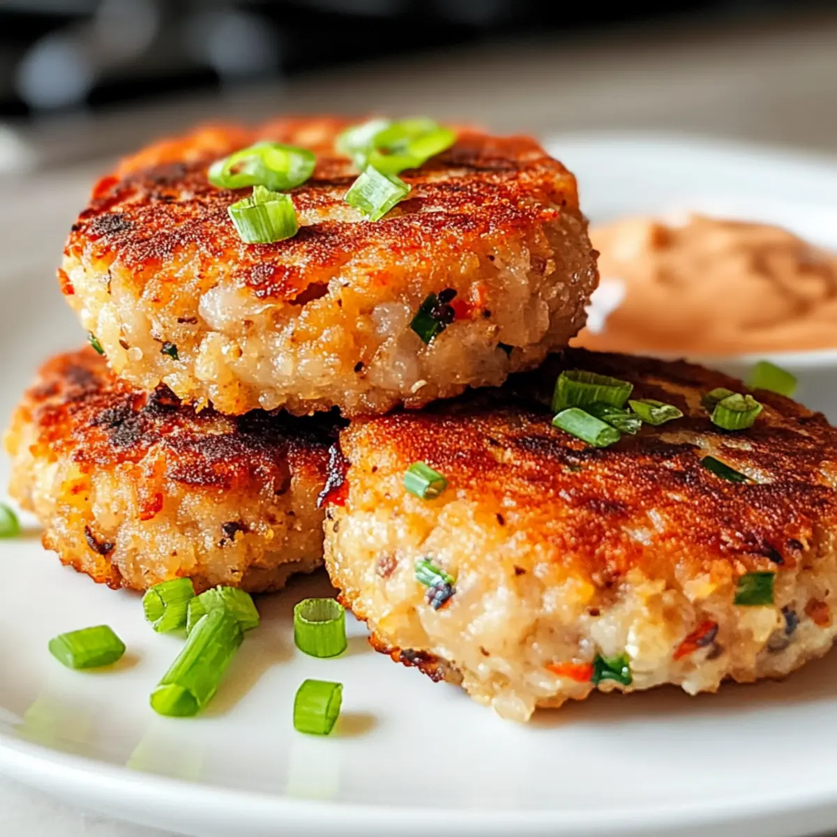 Als ich kürzlich mit Freunden am Tisch saß, bemerkte ich, wie ein einfaches Gericht in eine lebhafte Geschmacksexplosion verwandelt werden kann. Diese fetten asiatischen Thunfischkekse mit scharfer Mayonnaise sind genau das, was ich meine: außen knusprig, innen zart und gefüllt mit köstlichen, koreanisch inspirierten Aromen. In nur wenigen Minuten zubereitet, sind sie eine ideale Wahl für ein schnelles Mittagessen oder eine entspannte Abendessen-Option. Das Beste daran? Sie sind vollgepackt mit hochwertigem Protein und verwandeln ganz gewöhnliche Zutaten in ein einfaches, aber zufriedenstellendes Gericht. Wirst du dich trauen, diese köstlichen Kekse einmal auszuprobieren? Warum solltest du diese Thunfischkekse lieben? Einfachheit pur: Die Zubereitung dieser fetten asiatischen Thunfischkekse ist kinderleicht, sodass du mit minimalem Aufwand köstliche Ergebnisse erzielst. Vielseitig und anpassbar: Du kannst nicht nur Thunfisch, sondern auch Lachs verwenden oder mit verschiedenen Gemüsesorten experimentieren, um deinem Geschmack gerecht zu werden. Perfekte Textur: Die knusprige Außenschicht, kombiniert mit dem zarten Inneren, sorgt für ein unvergessliches Genusserlebnis. Proteinreich und nährend: Diese Kekse sind eine großartige Proteinquelle und machen sie zu einer gesunden Mahlzeit, die auch deine Liebsten begeistern wird. Schnell zubereitet: In nur wenigen Minuten stehen sie bereit, ideal für geschäftige Tage oder spontane Zusammenkünfte. Probier sie zusammen mit einem erfrischenden Spinatsalat mit Feta für eine vollständige Mahlzeit oder genieße sie als Snack! Zutaten für Fette asiatische Thunfischkekse • Entdecke die essenziellen Zutaten, um diese köstlichen Thunfischkekse zuzubereiten! Für die Mischung Canned Tuna – Hauptproteinquelle; darauf achten, dass er gut abgetropft ist, um die optimale Textur zu erhalten. Eggs – Binden die Mischung und sorgen für Feuchtigkeit; frische Eier liefern die besten Ergebnisse. Flour – Wirkt als Bindemittel; kann durch Vollkorn- oder glutenfreies Mehl ersetzt werden. Chopped Onion – Fügt Geschmack und etwas Knusprigkeit hinzu; gelbe oder grüne Zwiebeln sind ideal. Carrot – Bringt Süße und Farbe; frische, geriebene Karotten verbessern die Textur. Green Onion – Für Frische und zusätzlichen Geschmack; optional, aber empfehlenswert. Salt & Pepper – Grundgewürze; nach Geschmack anpassen. Vegetable Oil – Zum Braten; verwende ein neutrales Öl mit hohem Rauchpunkt. Für die scharfe Mayonnaise Mayonnaise – Basis für die scharfe Mayo; kann durch griechischen Joghurt für eine leichtere Variante ersetzt werden. Gochujang – Koreanische Chilipaste für Schärfe und Tiefe; Menge je nach Vorliebe anpassen. Lemon Juice – Bringt Frische in die Mayo; frischer Saft ist am besten. Sugar – Balanciert die Schärfe des Gochujang in der Sauce aus. Genieße das Zusammenspiel dieser Zutaten und entdecke, wie köstlich und vielseitig fette asiatische Thunfischkekse mit scharfer Mayonnaise sein können! Schritt-für-Schritt-Anleitung für fette asiatische Thunfischkekse mit scharfer Mayonnaise Schritt 1: Mischung vorbereiten In einer großen Schüssel kombinierst du den gut abgetropften Thunfisch, die gehackte Zwiebel, die geriebene Karotte, die Frühlingszwiebel, Salz, Pfeffer, die Eier und das Mehl. Mische alles gründlich mit einem Löffel oder deinen Händen, bis die Zutaten gut verbunden sind. Du solltest eine formbare Masse erhalten, die nicht zu feucht ist. Schritt 2: Keksformen Forme aus der Mischung kleine Patties, etwa 5–7 cm im Durchmesser. Diese fetten asiatischen Thunfischkekse sollten gleichmäßig geformt sein, damit sie gleichmäßig garen. Du solltest ungefähr 8 Patties erhalten. Lege die Patties auf einen gefetteten Teller oder ein Backblech, während du dich auf das Braten vorbereitest. Schritt 3: Patties braten Erhitze in einer beschichteten Pfanne bei mittlerer Hitze ausreichend Pflanzenöl, sodass der Boden leicht bedeckt ist. Wenn das Öl heiß genug ist (etwa 180 °C), lege vorsichtig die Patties in die Pfanne. Brate die Kekse für 2–3 Minuten, bis sie goldbraun und außen knusprig sind, bevor du sie mit einem Pfannenwender wendest. Schritt 4: Spicy Mayo zubereiten Während die Patties braten, bereite die scharfe Mayonnaise zu. In einer kleinen Schüssel vermischst du die Mayonnaise, Gochujang, den Zitronensaft und den Zucker. Rühre alles gut um, bis eine glatte, homogene Sauce entsteht. Diese scharfe Mayo verleiht den Keks aus Thunfisch den letzten Schliff. Schritt 5: Servieren Sobald die Patties goldbraun und knusprig sind, nimm sie mit einem Schaumlöffel aus der Pfanne und lege sie auf ein mit Küchenpapier ausgelegtes Teller, um überschüssiges Öl zu entfernen. Serviere die fetten asiatischen Thunfischkekse warm, zusammen mit der vorbereiteten scharfen Mayonnaise. Sie sind perfekt als Snack oder leichtes Abendessen! Expertentipps für fette asiatische Thunfischkekse Thunfisch gut abtropfen: Achte darauf, dass der Thunfisch gründlich abgetropft ist, um eine matschige Konsistenz der fetten asiatischen Thunfischkekse zu vermeiden. Gemüse frisch verwenden: Frische, geriebene Karotten und Frühlingszwiebeln sorgen nicht nur für Geschmack, sondern auch für eine angenehme Textur. In Chargen braten: Brate die Kekse in kleinen Mengen, um sicherzustellen, dass sie gleichmäßig garen und schön knusprig werden. Vorsicht beim Mischen: Übermische die Zutaten nicht, da dies zu zähen Keksen führen kann; mische nur so lange, bis alles gut kombiniert ist. Öl richtig erhitzen: Stelle sicher, dass das Öl heiß genug ist, bevor du die Kekse hinzufügst, um eine perfekte Bräunung zu erreichen. Was dazu servieren mit Fetten asiatischen Thunfischkeksen mit scharfer Mayonnaise? Diese köstlichen Thunfischkekse sind die perfekte Hauptspeise, doch wie kannst du dein Gericht zu einem echten Festmahl erweitern? Frischer Spinatsalat: Eine knackige, grüne Beilage ergänzt die herzhaften Aromen und biet