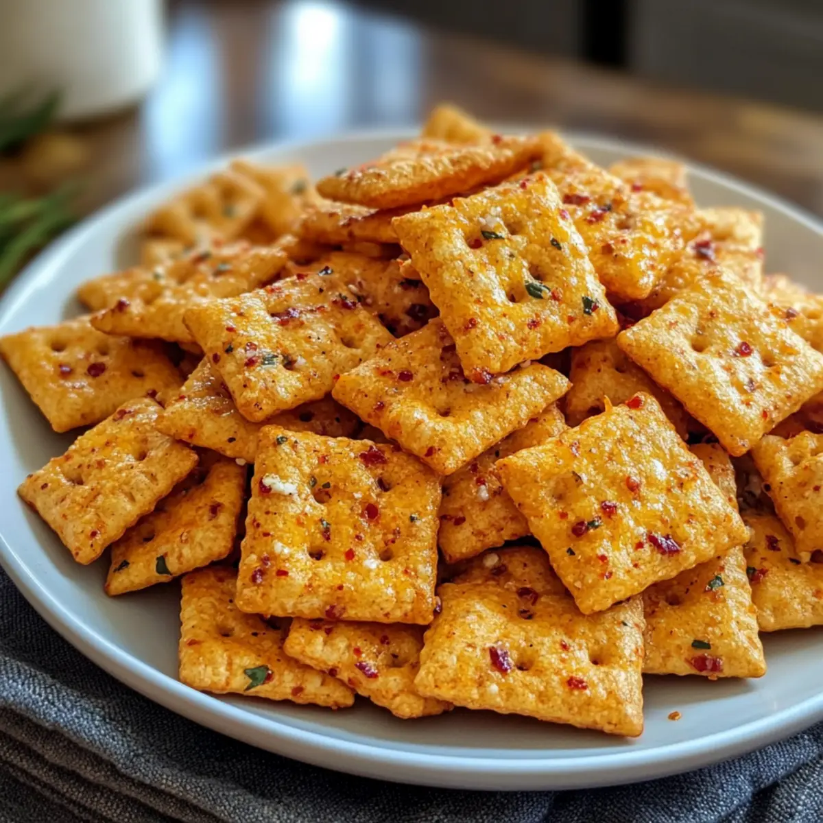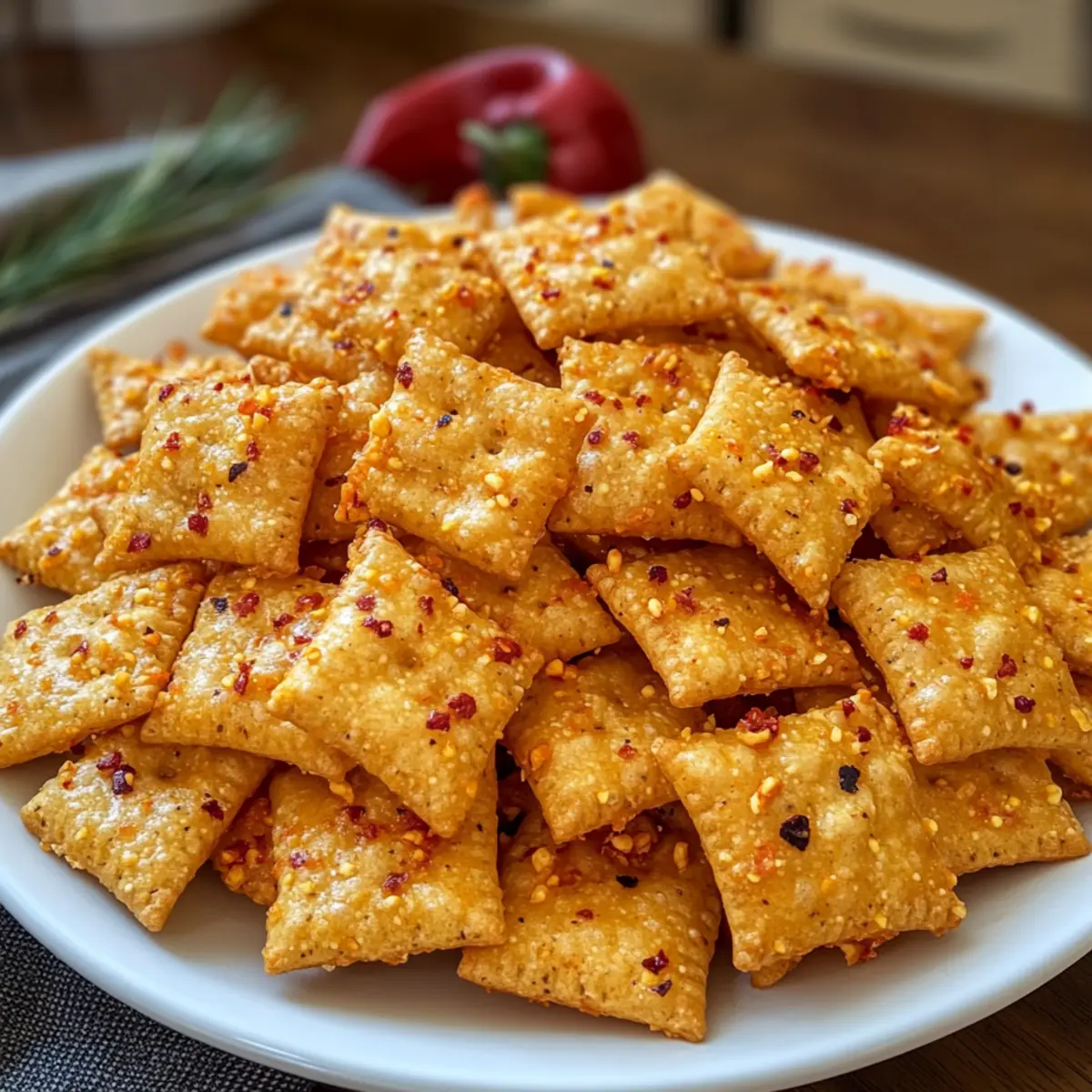 • Auf die Backzeit achten: Überwache die Cheez-Its während des Backens genau, um ein Verbrennen zu vermeiden. Sie sollten goldbraun, aber nicht zu dunkel sein!