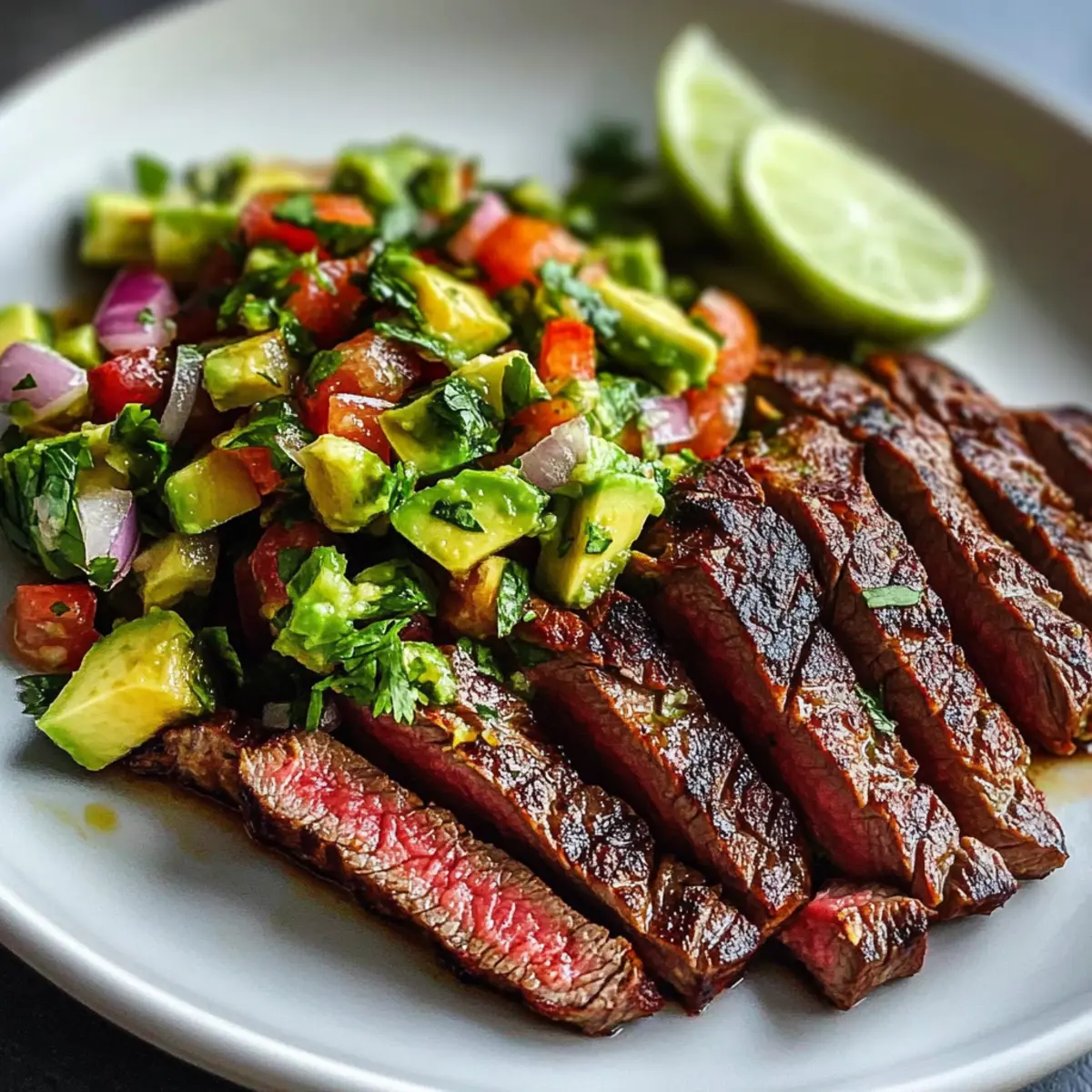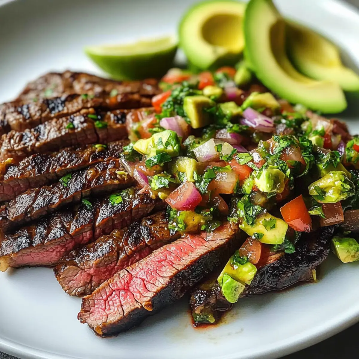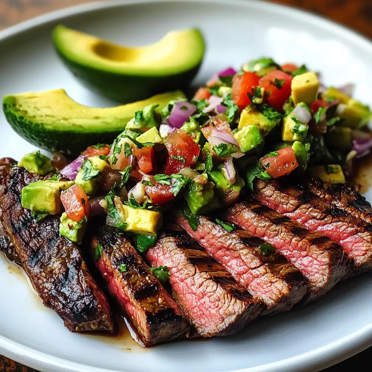 Genieße dieses köstliche Flanksteak mit Avocado-Salsa, das einfach zuzubereiten ist und perfekt für jeden Anlass geeignet ist.