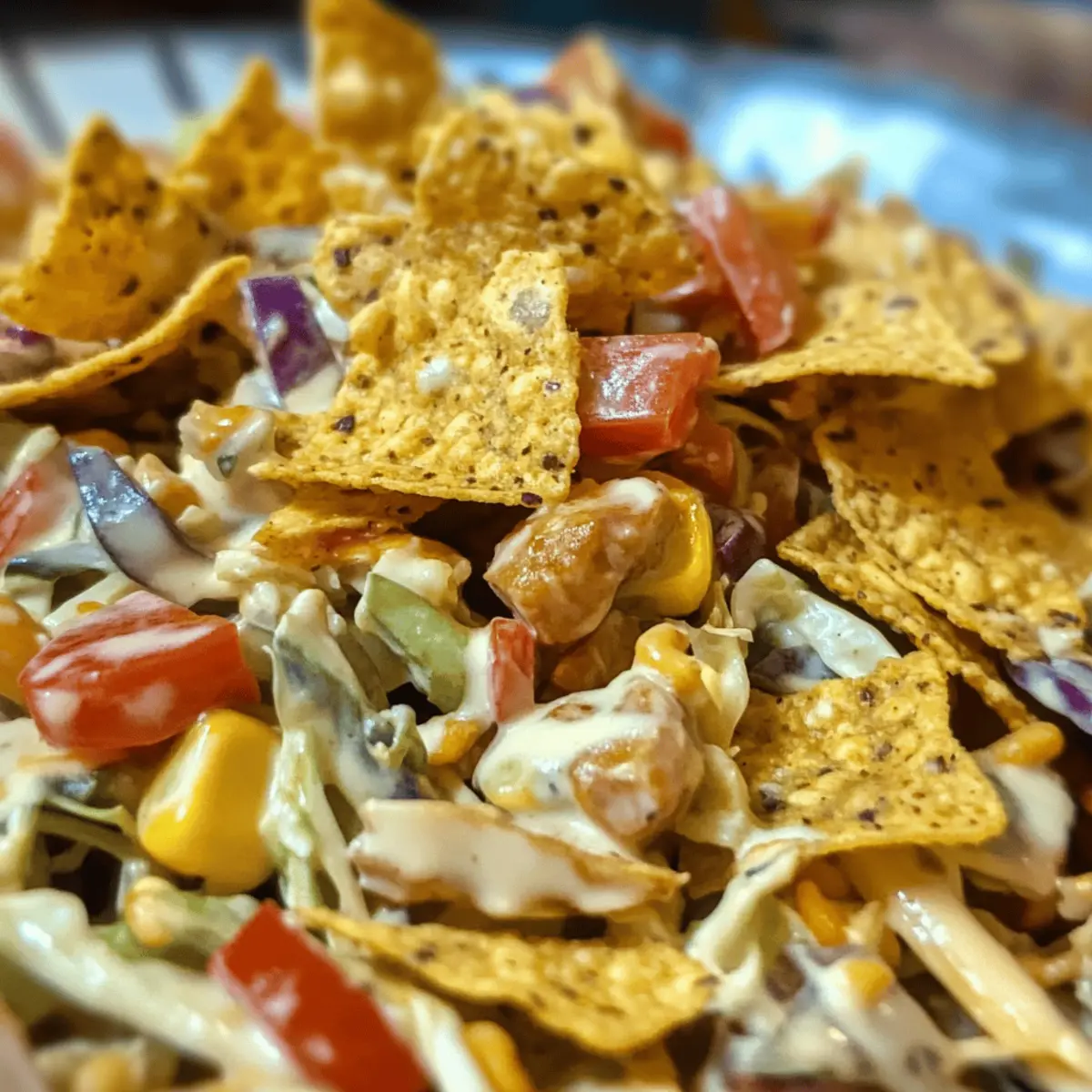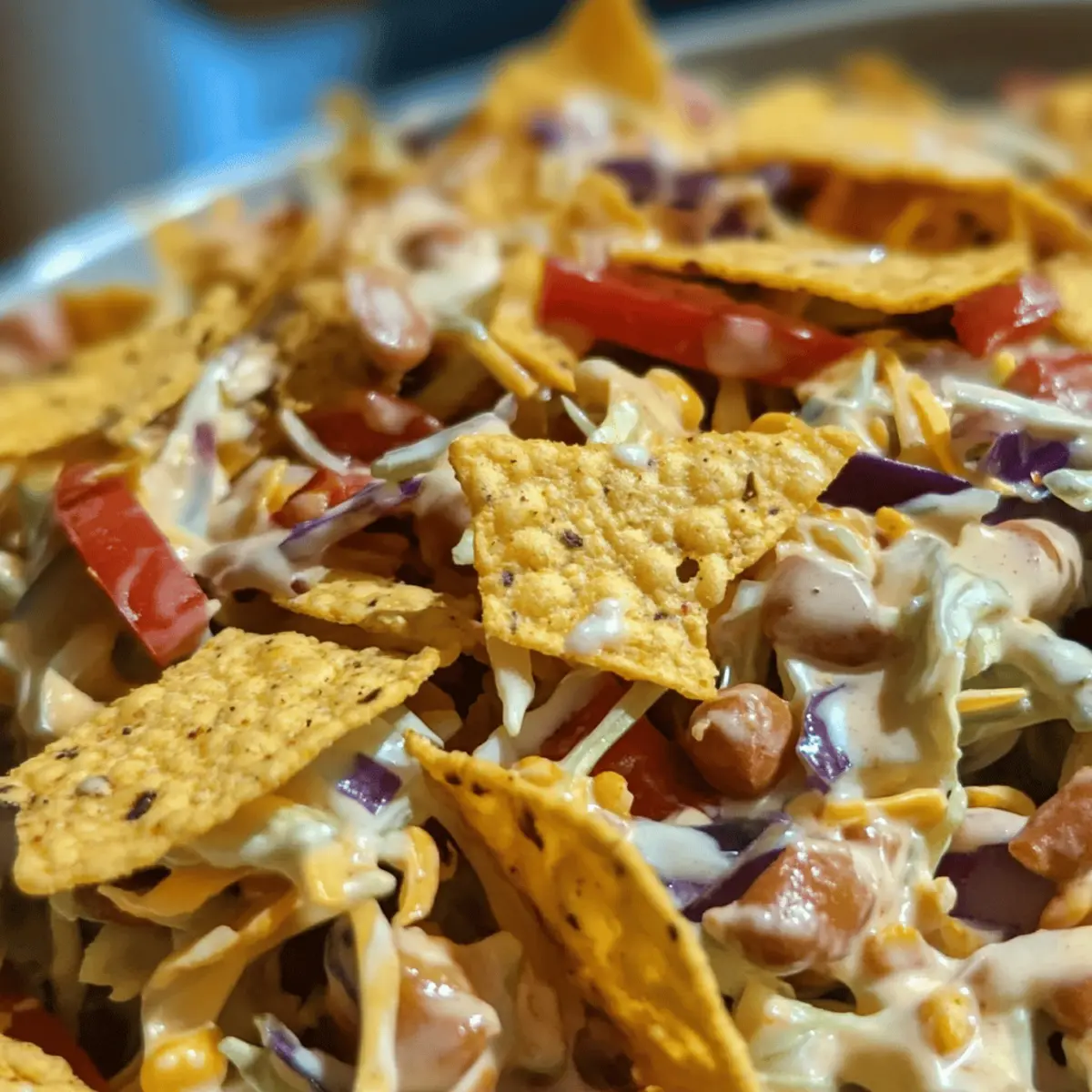 Eines Abends, als ich in der Küche stand und überlegte, was ich als Beilage zu unserem Grillabend machen könnte, kam mir die Idee, etwas Frisches und Knackiges zuzubereiten. So entstand der Fritos Cowboy Cabbage Salad – ein schneller und einfacher Salat, der nicht nur meine Familie begeistert, sondern auch jedes Potluck zu einem Hit macht. Die Kombination aus frischen Gemüse, cremigem Dressing und dem knusprigen Topping aus Fritos sorgt für eine aufregende Textur, die jeden Bissen zu einem Genuss macht. Diese bunte Salatvariation bringt nicht nur Lebendigkeit auf den Tisch, sondern ist auch perfekt für alle, die auf der Suche nach einer leckeren, vegetarischen Option sind, die ohne Kochen auskommt. Neugierig, wie Sie diesem Rezept eine persönliche Note geben können? Lassen Sie sich inspirieren! Warum ist dieser Salat so besonders? Frische Zutaten, die jeden Bissen zum Erlebnis machen: Der Fritos Cowboy Krautsalat kombiniert knackiges Gemüse mit einem cremigen Dressing, das die Aromen perfekt vereint. Einfachheit wird hier großgeschrieben: Ohne Kochen bereiten Sie in wenigen Schritten eine köstliche Beilage zu. Vielseitig in der Zubereitung – variieren Sie die Bohnen oder fügen Sie Avocado hinzu, um ihn nach Ihrem Geschmack zu gestalten. Crowd-Pleaser: Ob beim Grillabend oder beim Potluck, dieser Salat sorgt garantiert für Begeisterung! Zeitersparnis ist ein weiterer Pluspunkt, denn Sie können ihn bis zu zwei Stunden im Voraus zubereiten und problemlos im Kühlschrank aufbewahren. Lassen Sie sich von schnellen Rezepten inspirieren! Fritos Cowboy Krautsalat Zutaten Für das Dressing • Mayonnaise – Sorgt für Cremigkeit; ersetzen Sie es durch griechischen Joghurt für eine gesündere Variante. • Sauerrahm – Bringt eine angenehme Säure; kann auch durch weitere Mayonnaise oder eine milchfreie Alternative ersetzt werden. • Limettensaft – Fügt Frische hinzu; frische Limetten sind ideal, aber abgepresster Saft ist ebenfalls okay. • Chipotles in Adobosoße – Fügt Rauchigkeit und Schärfe hinzu; weglassen für milderen Geschmack oder mit geräuchertem Paprika ersetzen. • Taco-Gewürz – Verleiht zusätzliche Würze; selbstgemachte Gewürzmischung kann für mehr Individualität verwendet werden. • Kreuzkümmel – Bringt einen warmen, erdigen Geschmack; unerlässlich für die Geschmacksintensität. Für den Salat • Coleslaw-Mischung – Basis des Salats; können auch geraspelter Kohl oder Grünkohl verwendet werden. • Rote Paprika – Fügt Süße und Knackigkeit hinzu; jede andere Paprika kann problemlos genutzt werden. • Jalapeño-Pfeffer – Sorgt für Schärfe; nach Belieben weglassen oder durch milde Paprika ersetzen. • Frühlingszwiebeln – Bringt milden Zwiebelgeschmack; kann durch Schnittlauch ersetzt werden. • Koriander – Fügt Frische und Geschmacksintensität hinzu; kann weggelassen werden, falls nicht gewünscht. • Mais – Sorgt für Süße und Textur; sowohl frischer als auch Konservendosen-Mais funktioniert gut. • Schwarze Bohnen – Fügt Protein und erdigen Geschmack hinzu; können durch Kidneybohnen ersetzt werden. Für das Topping • Chili Cheese Fritos – Bieten eine knusprige und geschmackvolle Krönung; für milderen Geschmack können normale Fritos verwendet werden. Schritt-für-Schritt-Anleitung für Fritos Cowboy Krautsalat Schritt 1: Dressing zubereiten In einer kleinen Schüssel Mayonnaise, Sauerrahm, Limettensaft, Chipotles, Taco-Gewürz und Kreuzkümmel gründlich vermischen. Verwenden Sie einen Schneebesen, um sicherzustellen, dass alle Zutaten gut miteinander verbunden sind. Lassen Sie das Dressing dann beiseite, damit die Aromen sich entfalten können, während Sie den restlichen Salat zubereiten. Schritt 2: Gemüse vorbereiten In einer großen Schüssel die Coleslaw-Mischung, rote Paprika, Jalapeño, Frühlingszwiebeln, Koriander, Mais und schwarze Bohnen zusammengeben. Mischen Sie alles vorsichtig, bis die Zutaten gleichmäßig verteilt sind und die Farben lebendig zur Geltung kommen. Achten Sie darauf, all das frische Gemüse gut zu kombinieren, bevor Sie das Dressing hinzufügen. Schritt 3: Dressing hinzufügen Gießen Sie das vorbereitete Dressing über die Gemüse-Mischung und werfen Sie alles sanft um, um sicherzustellen, dass jedes Stück gleichmäßig mit dem Dressing bedeckt ist. Achten Sie darauf, nicht zu grob vorzugehen, um die Struktur der frischen Zutaten zu erhalten. Der Fritos Cowboy Krautsalat ist nun bereit für das finale Topping. Schritt 4: Topping hinzufügen Kurz bevor Sie den Salat servieren, fügen Sie die Chili Cheese Fritos hinzu, um einen knusprigen und geschmackvollen Abschluss zu erzielen. Mischen Sie die Fritos vorsichtig unter, um sicherzustellen, dass sie beim Servieren frisch und knusprig bleiben. Genießen Sie diesen kreativen Salat als Beilage zu Ihren Grillgerichten oder bei einem Potluck. Fritos Cowboy Krautsalat für die einfache Vorbereitung vorab Die Zubereitung des Fritos Cowboy Krautsalats ist perfekt für alle, die Zeit sparen möchten! Sie können das Dressing bereits bis zu 24 Stunden im Voraus zubereiten, indem Sie Mayonnaise, Sauerrahm, Limettensaft, Chipotles, Taco-Gewürz und Kreuzkümmel in einer kleinen Schüssel gut vermengen und im Kühlschrank aufbewahren. Zudem können Sie die Gemüse-Mischung mit Coleslaw, Paprika, Jalapeño, Frühlingszwiebeln, Koriander, Mais und schwarzen Bohnen ebenfalls bis zu 3 Tage im Voraus vorbereiten und in einem luftdichten Behälter im Kühlschrank lagern. Achten Sie darauf, die Fritos erst kurz vor dem Servieren hinzuzufügen, damit sie knackig bleiben. Mischen Sie das Dressing einfach mit dem Gemüse, bevor Sie es mit den Fritos toppen, und genießen Sie so einen schnellen, frischen Genuss ohne den Stress des letzten Moments! Lagerungstipps für Fritos Cowboy Krautsalat Zimmertemperatur: Der Salat sollte nicht länger als 2 Stunden bei Zimmertemperatur stehen, um die Frische der Zutaten zu bewahren. Kühlschrank: Im Küh