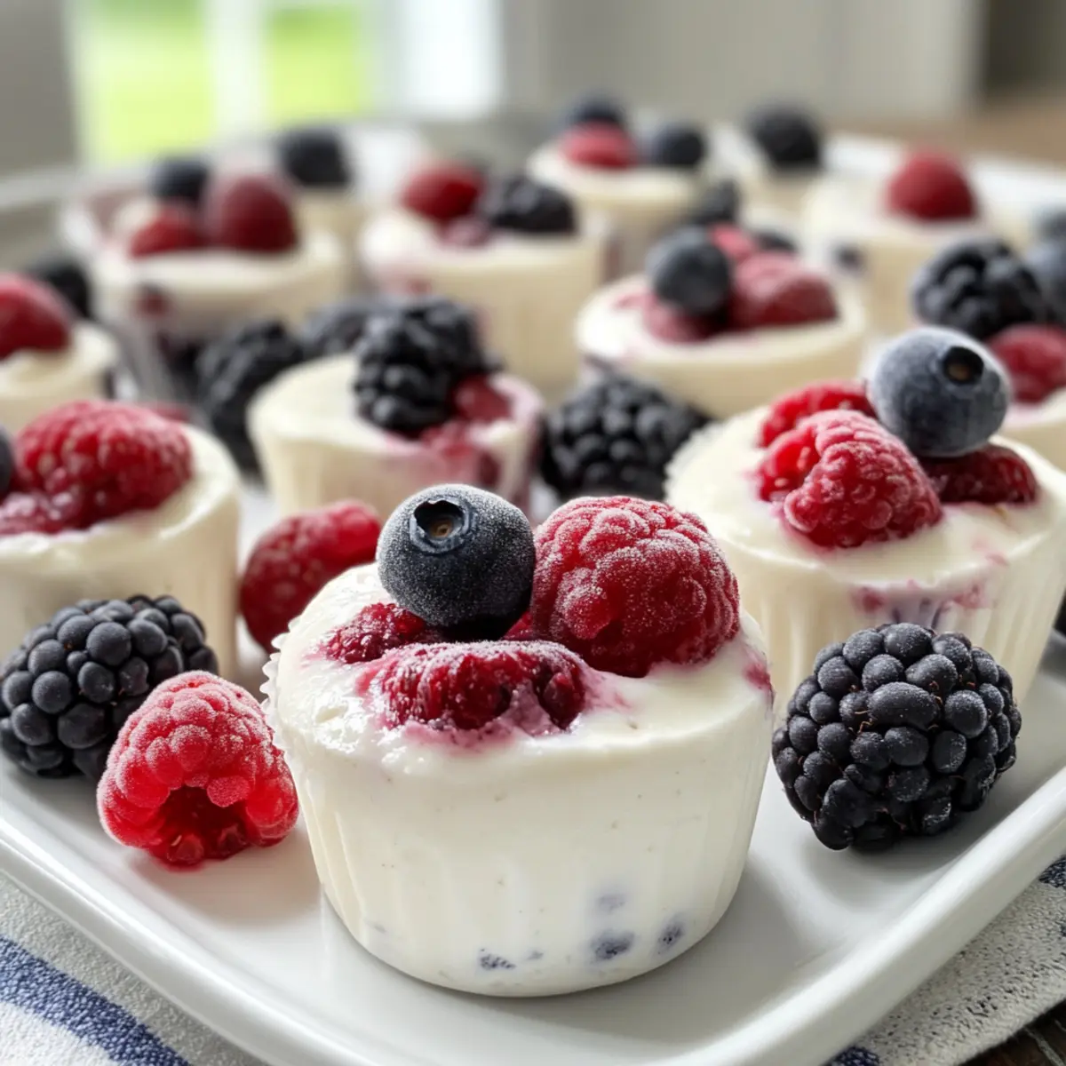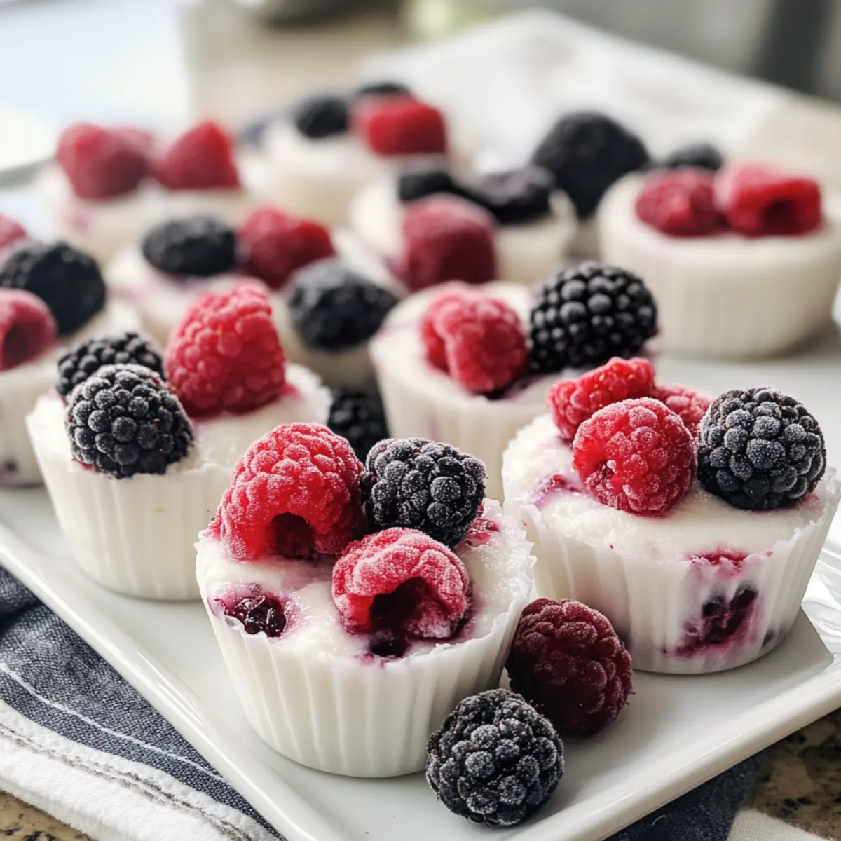 Der Sommer klopft an die Tür, und mit ihm die Sehnsucht nach erfrischenden Snacks! Heute präsentiere ich euch meine gefrorenen Joghurt-Beerenbissen, die perfekt sind, um euch an heißen Tagen einen kühlen Genuss zu bieten. Diese unkomplizierte, no-bake Rezeptur ist nicht nur gesund, sondern auch unglaublich vielseitig: Egal, ob ihr frische oder gefrorene Beeren verwenden möchtet, mit diesem Rezept könnt ihr alle glücklich machen. Die cremige Joghurtbasis, angereichert mit bunten Früchten, sorgt für einen proteinreichen Snack, der nicht nur schnell zubereitet ist, sondern auch kinderfreundlich. Lasst uns gemeinsam entdecken, wie einfach und lecker gesunde Snacks sein können! Wer kann da schon widerstehen? Warum lieben alle gefrorene Joghurt-Beerenbissen? Gesund und lecker: Diese gefrorenen Joghurt-Beerenbissen sind nicht nur ein Genuss, sondern auch eine nährstoffreiche Wahl für alle, die auf ihre Gesundheit achten. Einfachheit pur: Mit minimalem Aufwand könnt ihr diesen gesunden Snack zaubern, der perfekt für warme Tage ist. Vielfältig einsetzbar: Egal, ob ihr frische oder gefrorene Beeren sowie verschiedene Toppings wie Granola oder Nussbutter verwenden möchtet, es gibt unzählige Varianten, die jeden Geschmack treffen. Kindgerechter Snack: Diese leckeren Bissen sind ideal für Kinder und sorgen dafür, dass sie gesunde Snacks lieben lernen. Vorratstauglich: Ihr könnt sie in großen Mengen vorbereiten und sie jederzeit als schnelle, erfrischende Leckerei genießen. Testet doch auch mal, wie gut diese Beerenbissen zu einem gemütlichen Picknick passen! Zutaten für gefrorene Joghurt-Beerenbissen • Um die Neugier zu wecken, folgt jetzt die perfekte Zutatenliste für eure gefrorenen Joghurt-Beerenbissen! Für die Beerenmischung Mischbeeren – Sie sorgen für natürliche Süße und fruchtigen Geschmack; frisch oder gefroren, je nach Verfügbarkeit. Griechischer Joghurt – Das Hauptzutat, die Cremigkeit und Protein hinzufügt; sollte dick sein, um die Form beim Einfrieren zu halten. Für die Süße Honig oder Ahornsirup – Fügt eine Prise Süße hinzu, um die Säure der Beeren auszugleichen; die Menge kann nach Geschmack angepasst werden. Für die zusätzliche Textur Granola (optional) – Gibt einen schönen Crunch und kann in die Mischung eingearbeitet oder als Topping verwendet werden. Nussbutter (optional) – Verleiht zusätzliche Cremigkeit und gesunde Fette; gute Alternativen sind Mandel- oder Erdnussbutter. Schritt-für-Schritt-Anleitung für gefrorene Joghurt-Beerenbissen Step 1: Joghurt und Süße mischen In einer großen Schüssel den griechischen Joghurt mit Honig oder Ahornsirup gut vermengen, bis eine cremige, gleichmäßige Masse entsteht. Diese Mischung sollte mild süß und glatt sein, um die Säure der Beeren auszugleichen. Achten Sie darauf, einen Löffel oder einen Schneebesen zu verwenden, um alle Zutaten gründlich zu vermischen. Step 2: Beeren unterheben Die gewählten Mischbeeren, ob frisch oder gefroren, vorsichtig in die Joghurt-Masse einrühren. Seien Sie sanft, damit die Beeren nicht zerdrückt werden, und achten Sie darauf, dass sie gleichmäßig verteilt sind. Diese Schritt sorgt für eine fruchtige Textur in den gefrorenen Joghurt-Beerenbissen und macht das Endprodukt besonders appetitlich. Step 3: Formen wählen Entscheiden Sie, ob Sie die Mischung in mini Muffinförmchen oder in einer flachen Form verteilen möchten. Bei Verwendung von Muffinförmchen füllen Sie diese gleichmäßig, während Sie bei einer flachen Form die Mischung mit einem Spatel glatt streichen. Dieses Detail hilft den gefrorenen Joghurt-Beerenbissen, ihre Form zu halten, wenn sie eingefroren sind. Step 4: Gefrieren Die vorbereiteten Förmchen oder die flache Form ins Gefrierfach stellen und für mindestens 2 Stunden gefrieren lassen. Nach einer Stunde können Sie durch leichtes Klopfen prüfen, ob die Mischung fest wird. Die gefrorenen Joghurt-Beerenbissen sind perfekt, wenn sie fest und leicht gefroren sind, sodass sie beim Herausnehmen nicht zerfallen. Step 5: Entfernen und servieren Nach der Gefrierzeit die gefrorenen Joghurt-Beerenbissen aus den Förmchen oder der Form vorsichtig entfernen. Bei Verwendung einer flachen Form schneiden Sie die Mischung in quadratische Stücke. Verwenden Sie dafür ein scharfes Messer, um gleichmäßige Teile zu erzeugen, die sich leicht servieren lassen. Step 6: Lagerung Die gefrorenen Joghurt-Beerenbissen in einem luftdichten Behälter im Gefrierfach aufbewahren, damit sie frisch bleiben. Sie können mehrere Portionen gleichzeitig herstellen und die Leckereien so problemlos für eine schnelle, gesunde Snack-Option zur Verfügung haben. Ideal für heiße Tage oder nach dem Sport! Expert Tips für gefrorene Joghurt-Beerenbissen Joghurt-Konsistenz: Achten Sie darauf, dass der griechische Joghurt dick genug ist, um die Bissen beim Einfrieren zu stabilisieren. Ein zu dünner Joghurt führt zu schmelzenden Snacks. Beerenwahl: Verwenden Sie die Beeren, die in der Saison sind, um den besten Geschmack und die beste Frische zu erzielen. Gefrorene Beeren sind ebenso eine großartige Option! Vorsicht beim Servieren: Lassen Sie die gefrorenen Bissen einige Minuten bei Raumtemperatur stehen, bevor Sie sie servieren. So erhalten sie die perfekte Konsistenz und sind leichter zu genießen. Toppings anpassen: Experimentieren Sie mit verschiedenen Toppings wie Granola oder Nussbutter, um zusätzlichen Crunch und Geschmack hinzuzufügen. Dies macht die gefrorenen Joghurt-Beerenbissen noch vielseitiger! Mengen anpassen: Das Rezept lässt sich leicht verdoppeln oder halbieren, abhängig von der Anzahl der Gäste oder der eigenen Vorlieben. Machen Sie einfach die Menge, die Sie benötigen! Variationen für gefrorene Joghurt-Beerenbissen Gestalte dieses Rezept ganz nach deinem Geschmack und bringe eine neue Dimension in deine gefrorenen Joghurt-Beerenbissen! Frische Früchte: Verwende frische Beeren der Saison für ein noch fruchtigeres Erlebnis. Als lan